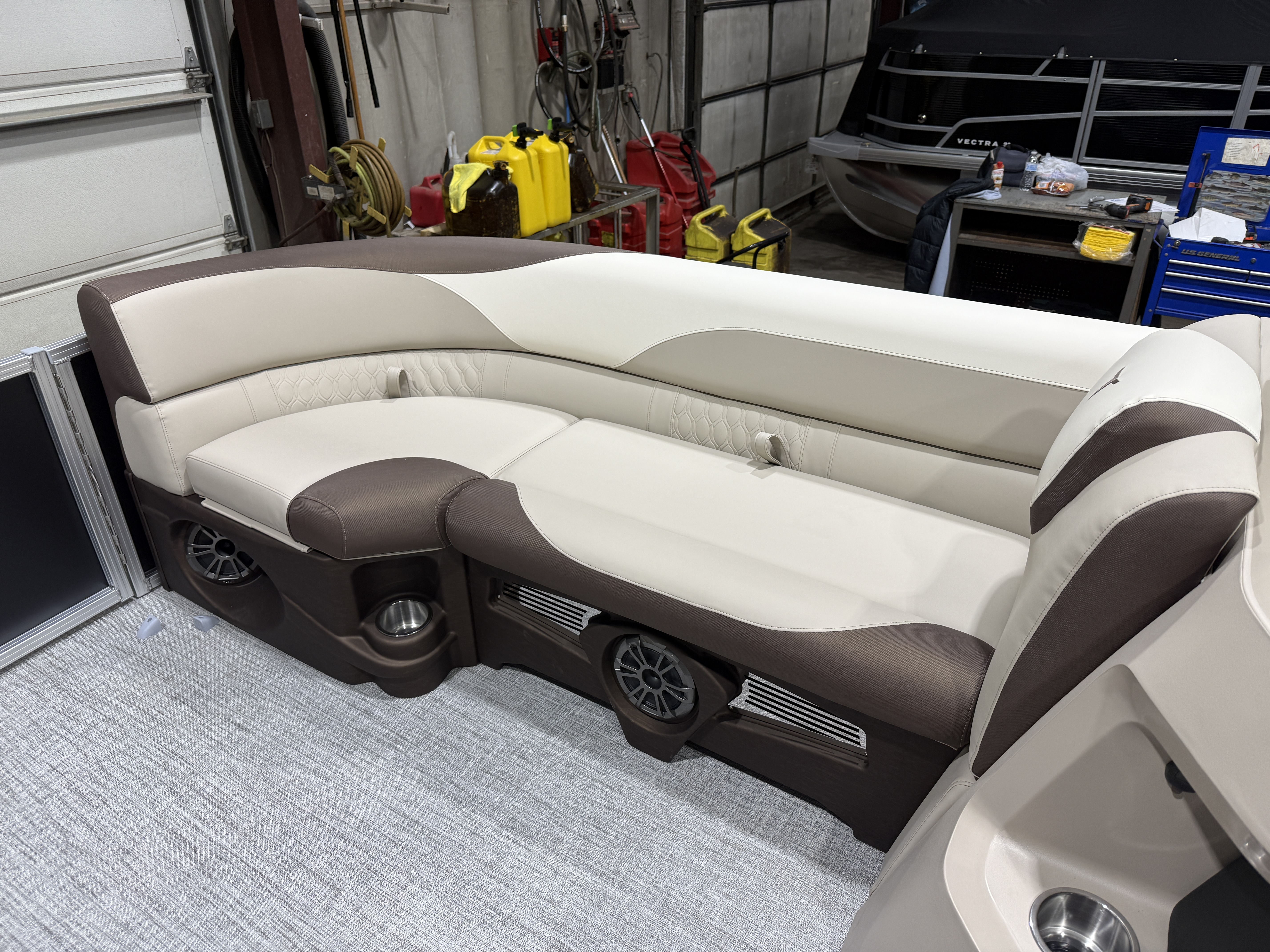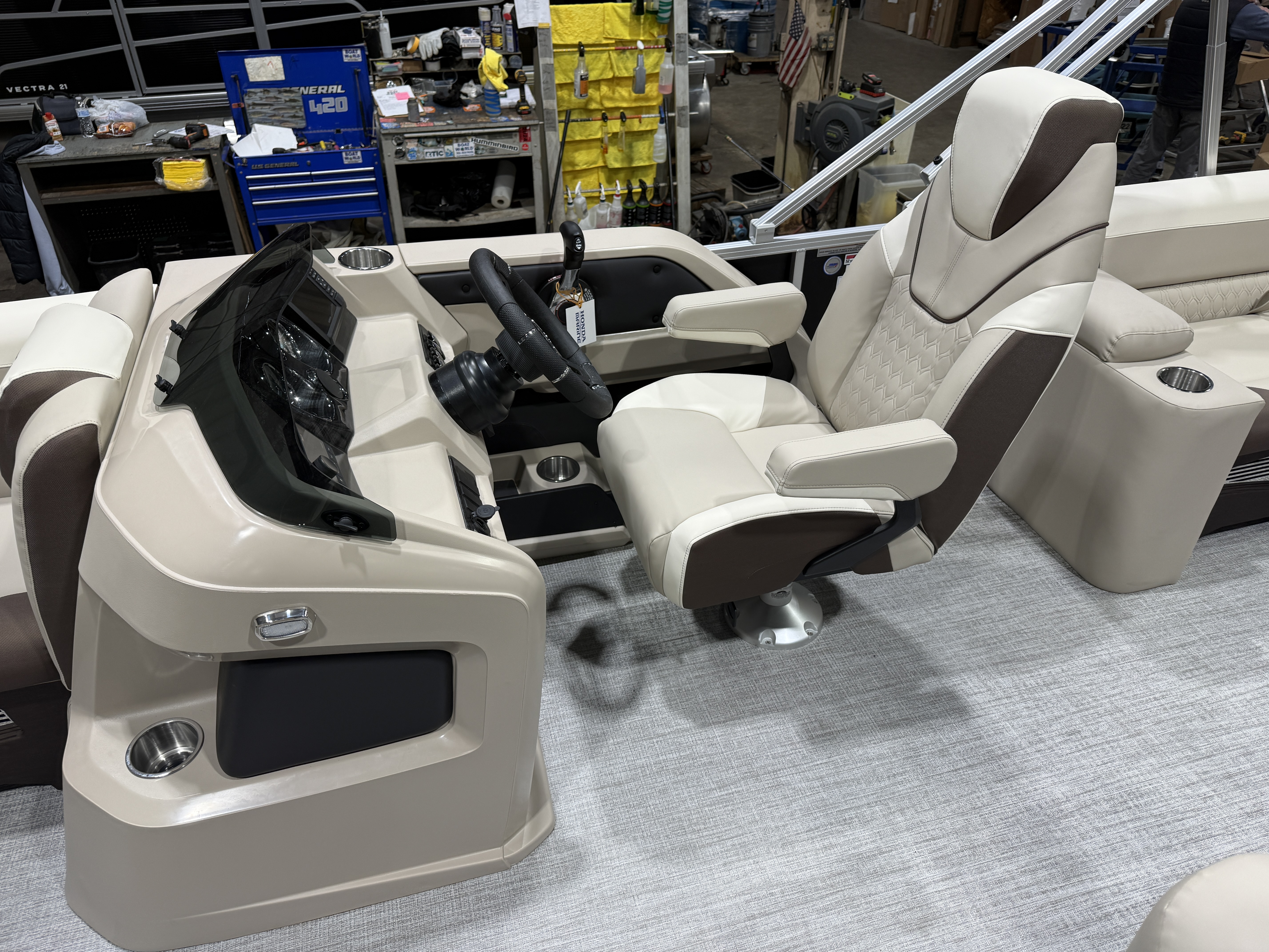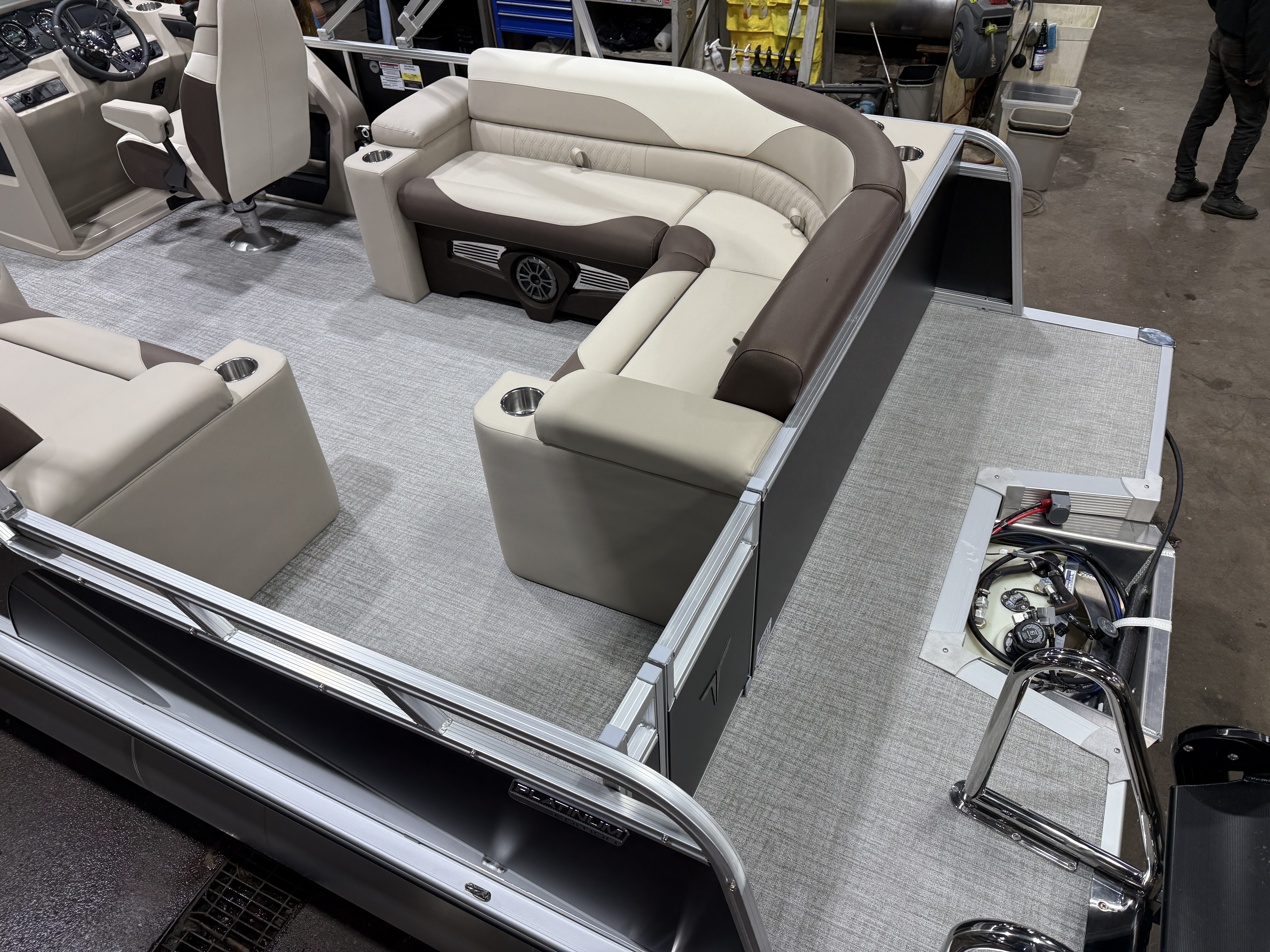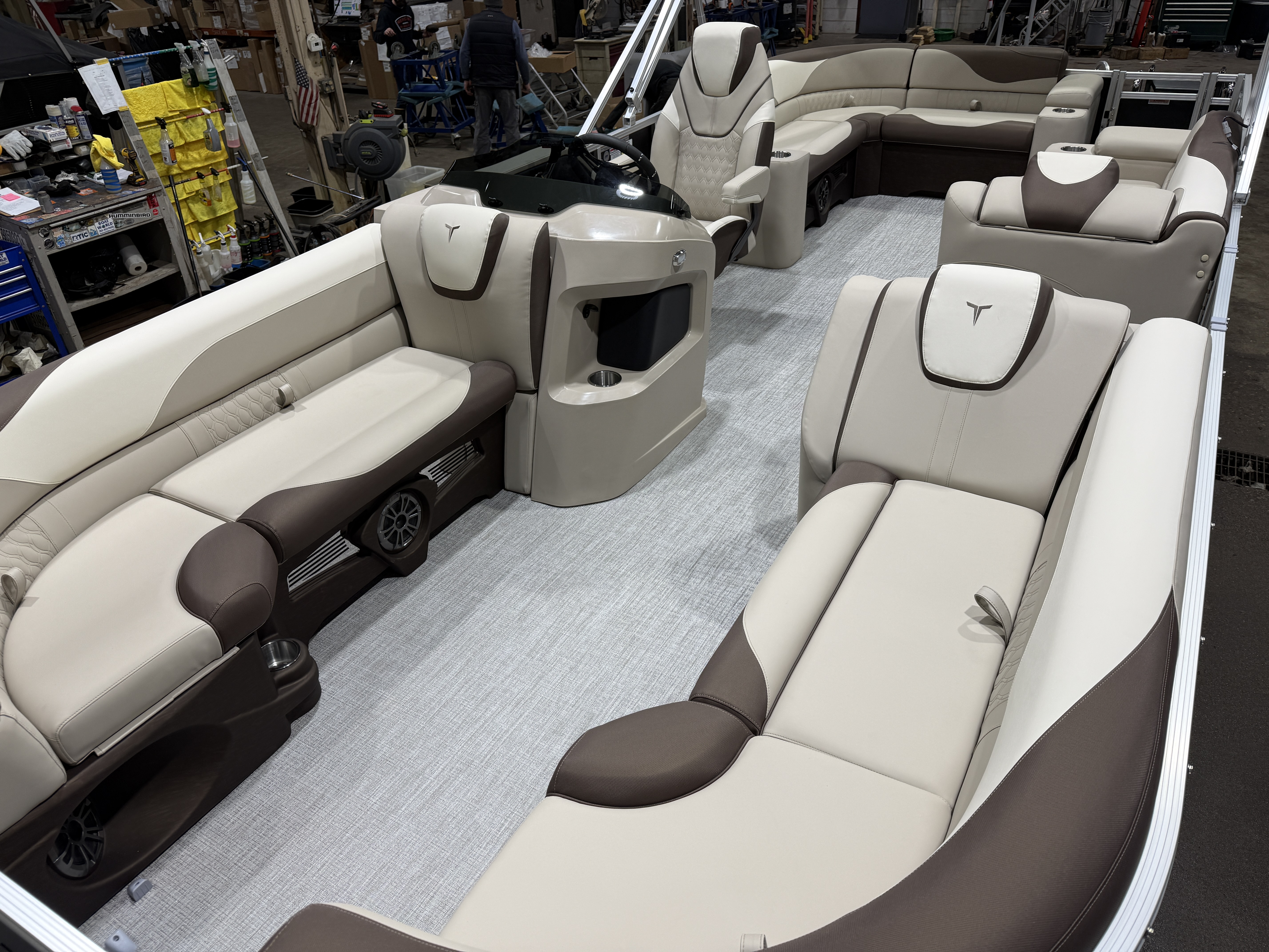 2026 Tahoe LTZ 2385 Elite Cruise Pontoon & Honda 4-Stroke EFI. This 23' Matte Black Walls Cruise Pontoon Has 2 Lounge Bench Seating Up Front With Storage, Side Chaise Lounge Seating With Storage (Great Spot For The Spotter), Rear Wrap Around Lounge Seating, Riptide Vinyl Floor, Built-In 25 Gallon Gas Tank, LTZ Platinum Package (Admiral Reclining Captain's Chair, Ultrafine Touch Vinyl Upgrade, Garmin 52CV GPS Depth Finder, SST Pull-Up Cleats, LED Smoked Docking Lights, SST Vent Covers, Polished Corner Caps, Platinum Edition Special Badging), Mooring Cover, Buckskin Vinyl Package w/Expresso Accent, LED Nav Lights, Gauge Package With Hour Meter, Bluetooth Fusion Radio With 6 Speakers & Amp, Tilt Steering, Lillipad Easy Step Ladder, Greywood Rectangle Table, Lifetime Aluminum Seat Frames, Adjustable 10' Bimini Top, 25" Tubes, Multiple Cup Holders, Battery Switch, Bow USB Charging Port, Smoked Chrome Logos, New Battery, Front And Rear Swim Deck. Rated For 11 People.