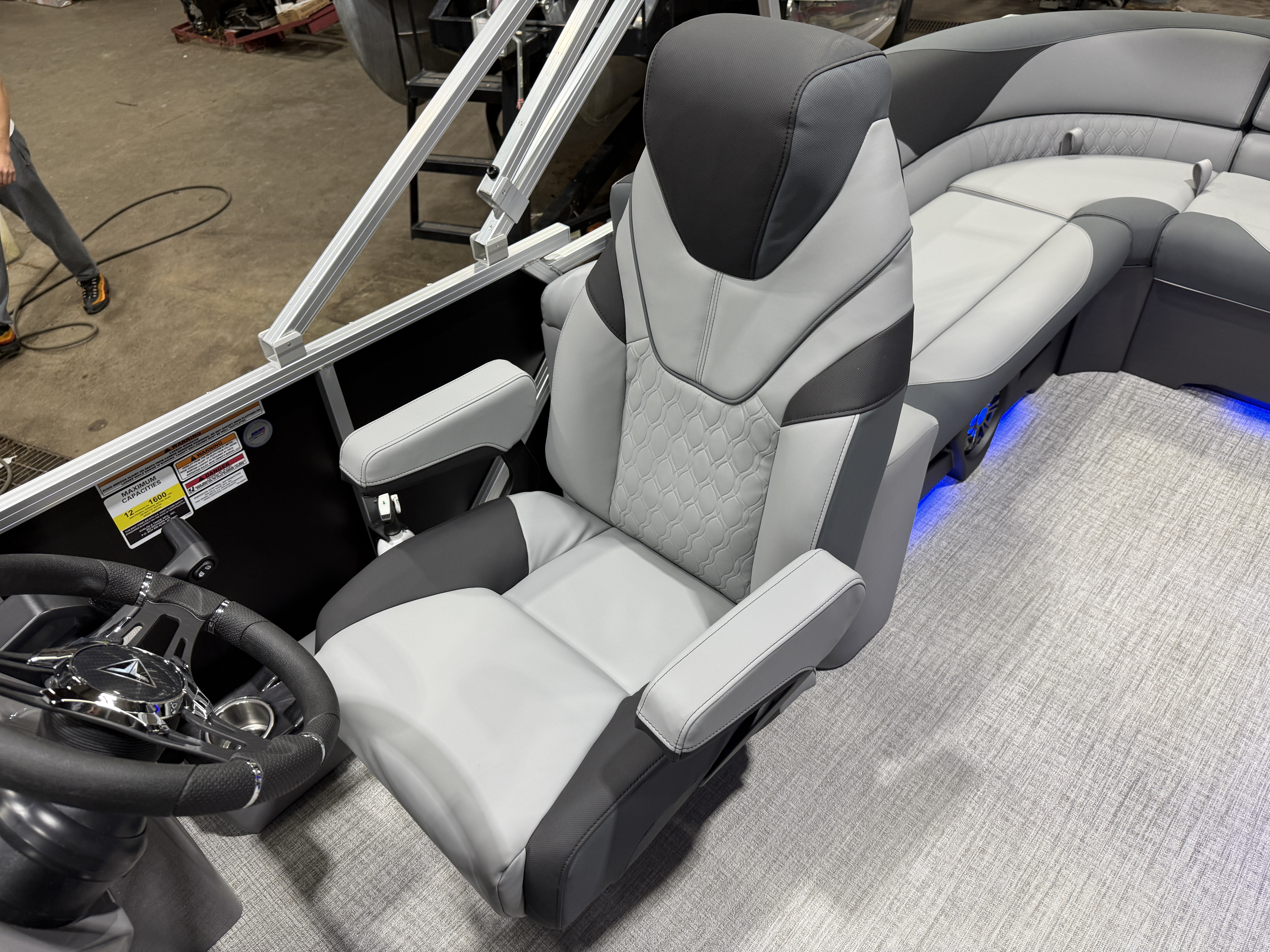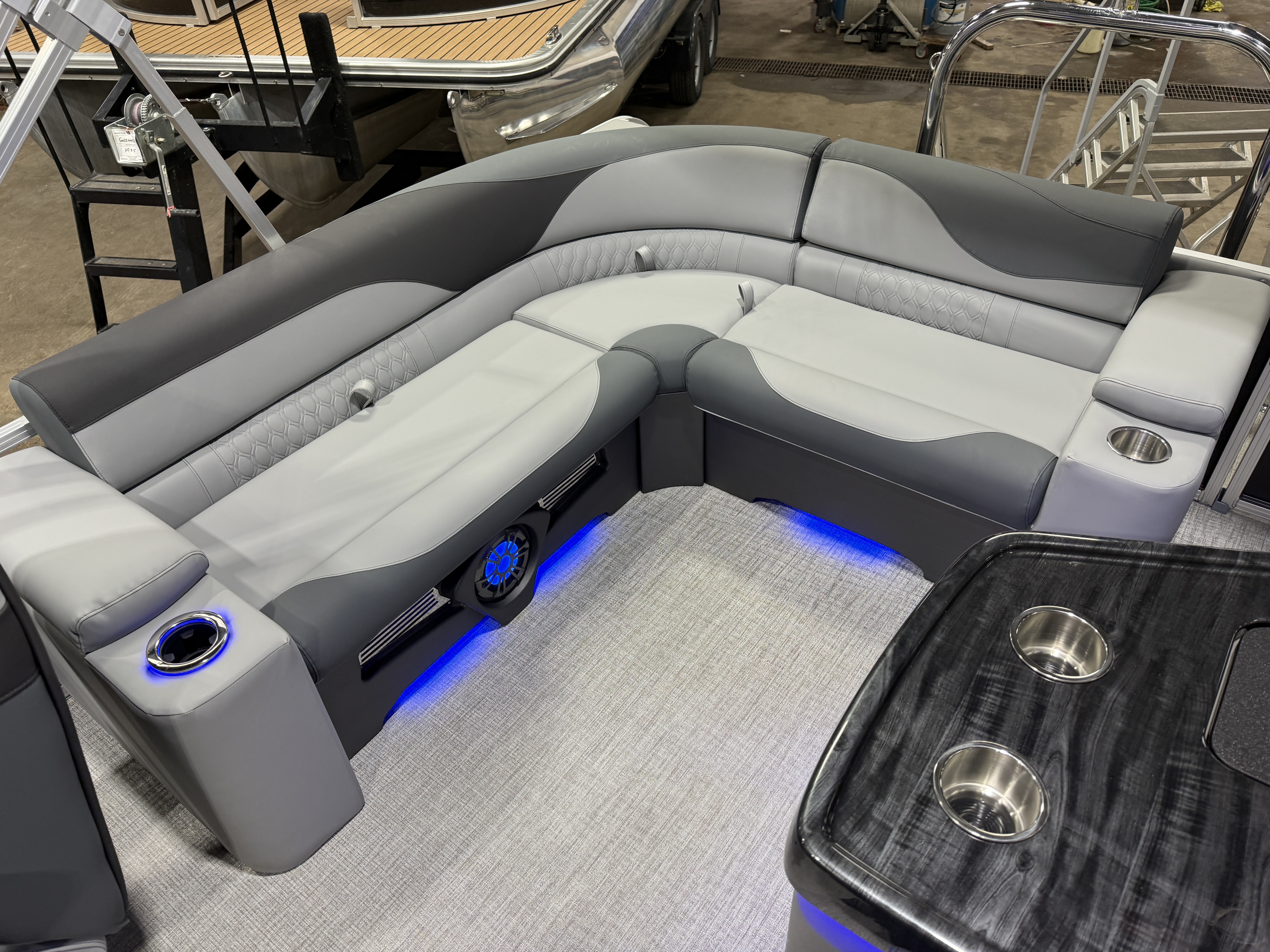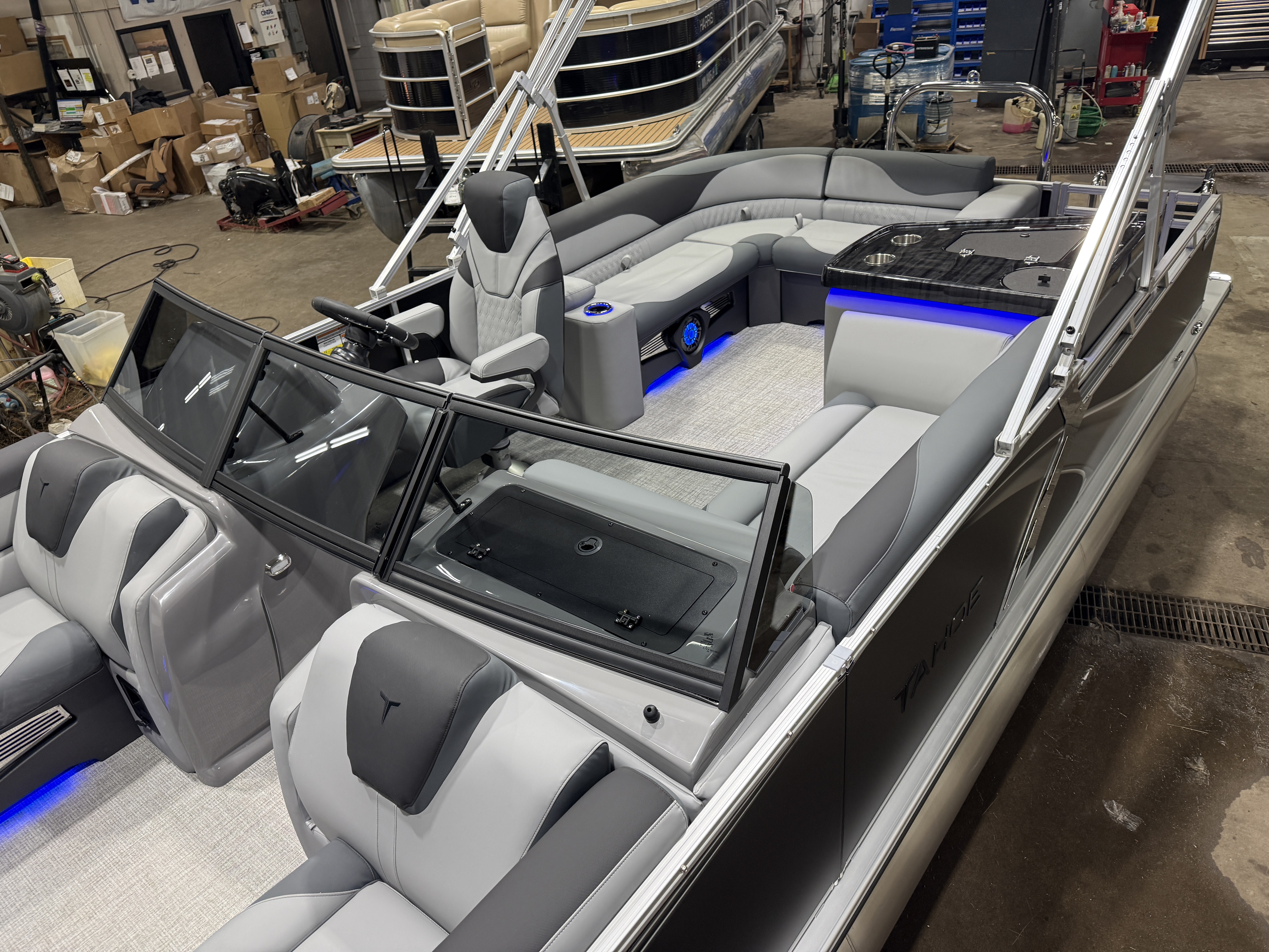 Arriving This Spring. 2026 Tahoe LTZ 2385 Elite Windshield Cruise Tritoon Pontoon & Honda 4-Stroke EFI. This Matte Black 23' Cruise Tri-Toon Has 2 Lounge Bench Seating Up Front With Storage, Side Lounge Seating With Storage, High Back Admiral Reclining Captain's Chair, Rear Wrap Around Lounge Seating With Sink, Paper Towel Holder & Cooler, Riptide Vinyl Floor, Built-In 38 Gallon Gas Tank, LTZ Platinum Edition ( Ultrafine Touch Vinyl Upgrade, Garmin 52CV GPS Depth Finder, SST Pull-Up Cleats, LED Smoked Chrome Docklights, Polished Corner Caps, SST Vent Covers, Platinum Edition Special Badging), Graphite Interior Package w/Koolfab Black Vinyl, Dimmable Blue Ice Package (Interior Mood Lighting, Lighted Cup Holders, Lighted Speakers), LED Nav Lights, Gauge Package With Hour Meter, Fusion Bluetooth Radio With 6 Speakers & Amp, Bow USB Charging Port, Hydraulic Tilt Steering, 25" Tubes, Duel USB Charging Port, 20 Quart Cooler, Aluminum Undersheeting, Lifting Strakes, Ski Tow Bar, Lillipad Easy Step Ladder, Mooring Cover, Greywood Rectangle Table, Lifetime Aluminum Seat Frames, Adjustable 10' Bimini Top, 25" Tubes, Multiple Cup Holders, Dual Battery Selector, Smoked Chrome Logos, New Battery, Front And Rear Swim Deck. Rated For 12 People.
