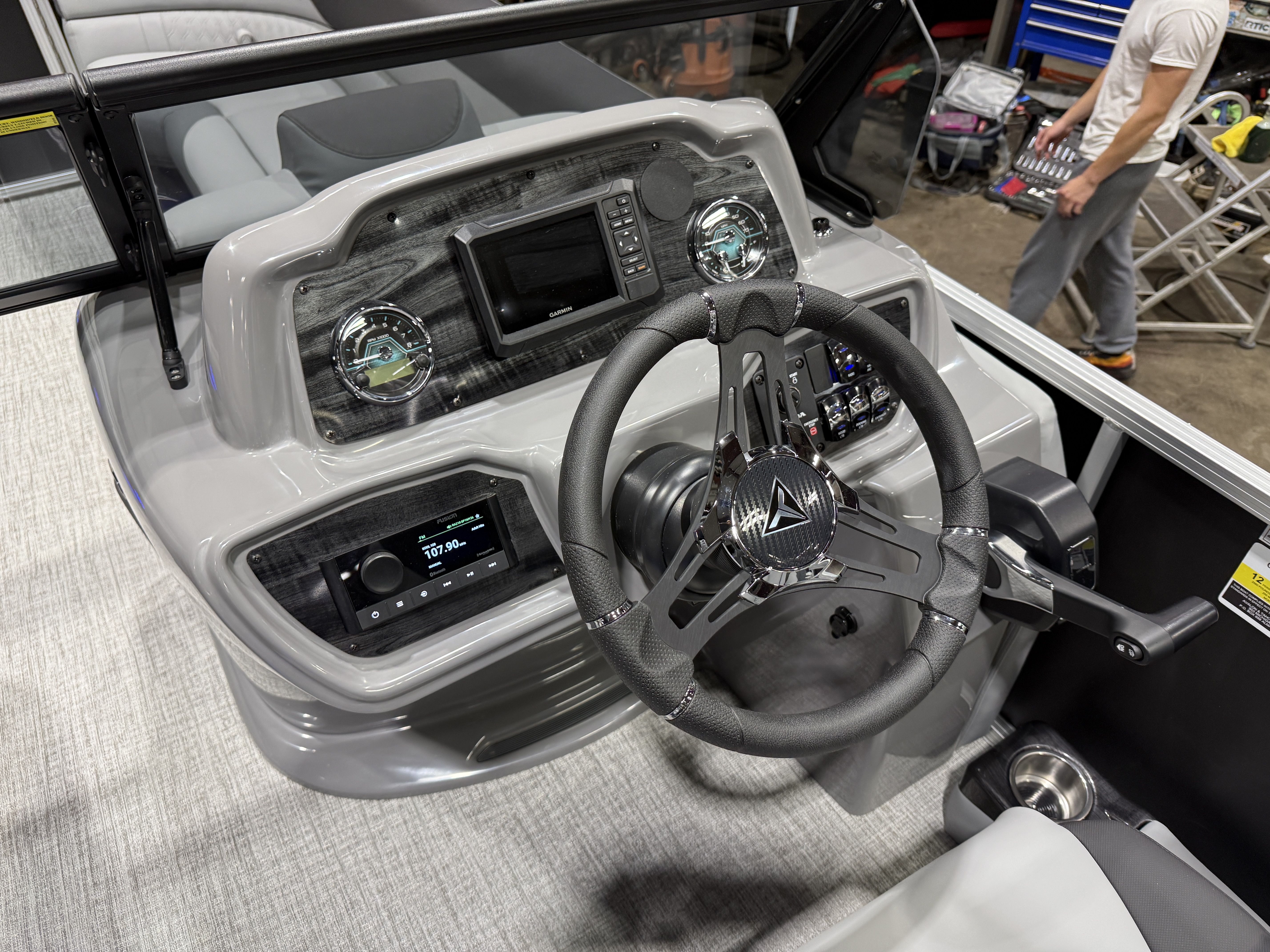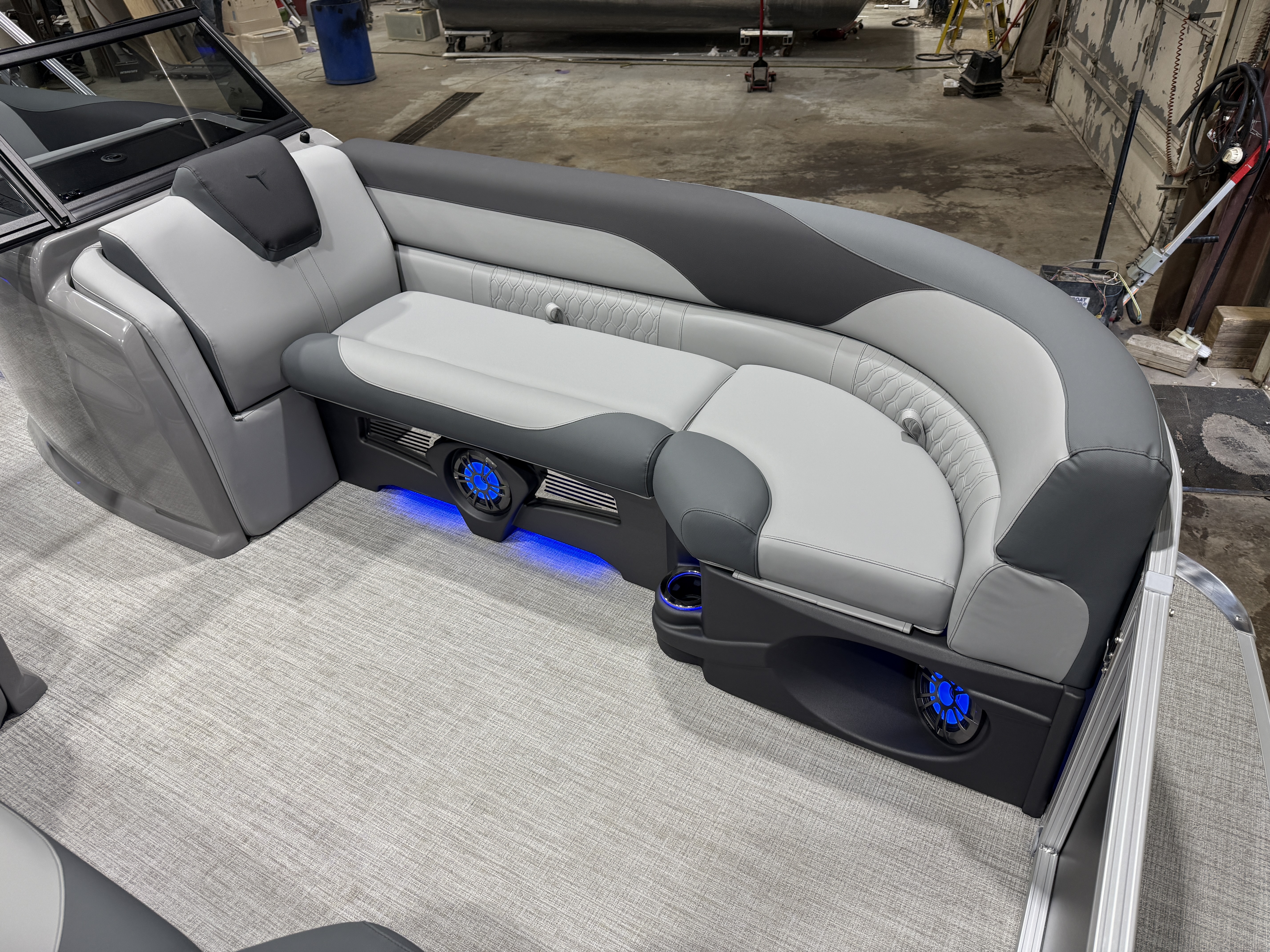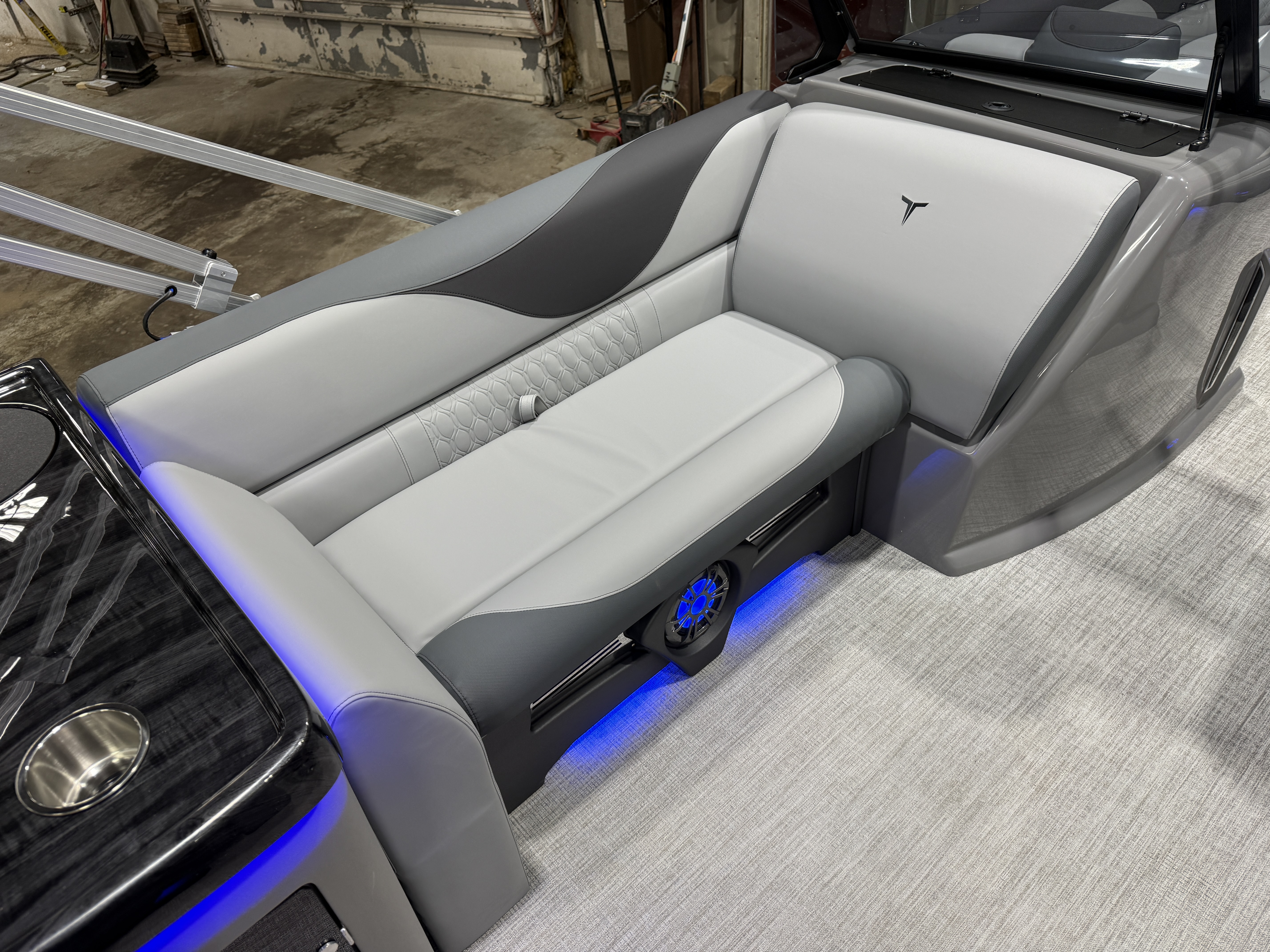 Arriving This Spring. 2026 Tahoe LTZ 2385 Elite Windshield Cruise Tritoon Pontoon & Honda 4-Stroke EFI. This Matte Black 23' Cruise Tri-Toon Has 2 Lounge Bench Seating Up Front With Storage, Side Lounge Seating With Storage, High Back Admiral Reclining Captain's Chair, Rear Wrap Around Lounge Seating With Sink, Paper Towel Holder & Cooler, Riptide Vinyl Floor, Built-In 38 Gallon Gas Tank, LTZ Platinum Edition ( Ultrafine Touch Vinyl Upgrade, Garmin 52CV GPS Depth Finder, SST Pull-Up Cleats, LED Smoked Chrome Docklights, Polished Corner Caps, SST Vent Covers, Platinum Edition Special Badging), Graphite Interior Package w/Koolfab Black Vinyl, Dimmable Blue Ice Package (Interior Mood Lighting, Lighted Cup Holders, Lighted Speakers), LED Nav Lights, Gauge Package With Hour Meter, Fusion Bluetooth Radio With 6 Speakers & Amp, Bow USB Charging Port, Hydraulic Tilt Steering, 25" Tubes, Duel USB Charging Port, 20 Quart Cooler, Aluminum Undersheeting, Lifting Strakes, Ski Tow Bar, Lillipad Easy Step Ladder, Mooring Cover, Greywood Rectangle Table, Lifetime Aluminum Seat Frames, Adjustable 10' Bimini Top, 25" Tubes, Multiple Cup Holders, Dual Battery Selector, Smoked Chrome Logos, New Battery, Front And Rear Swim Deck. Rated For 12 People.