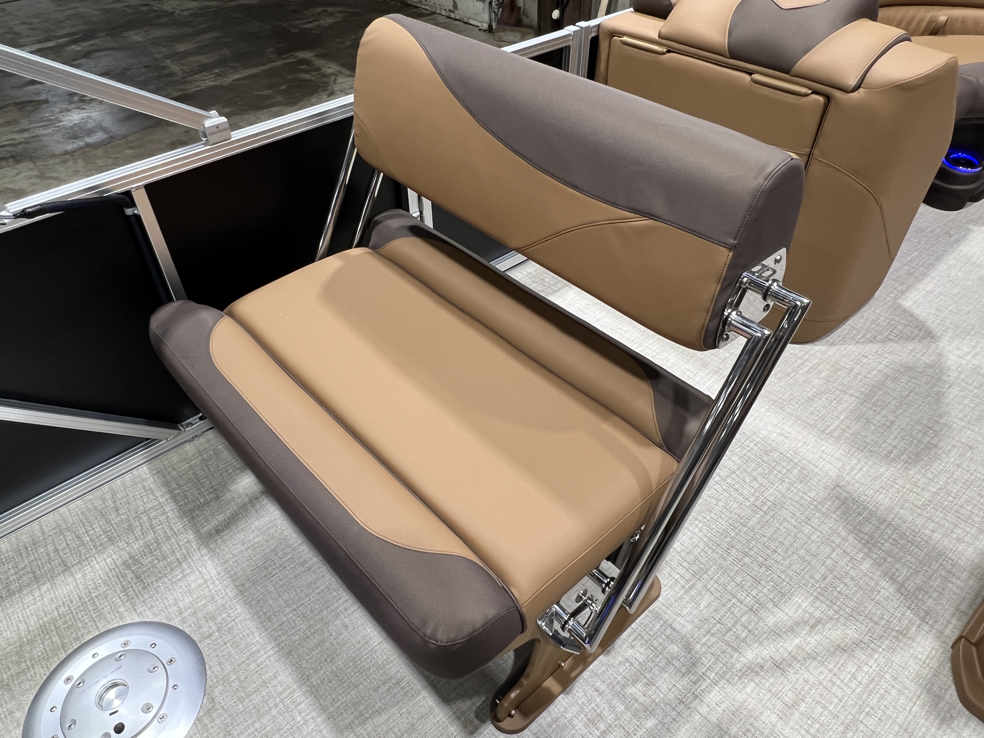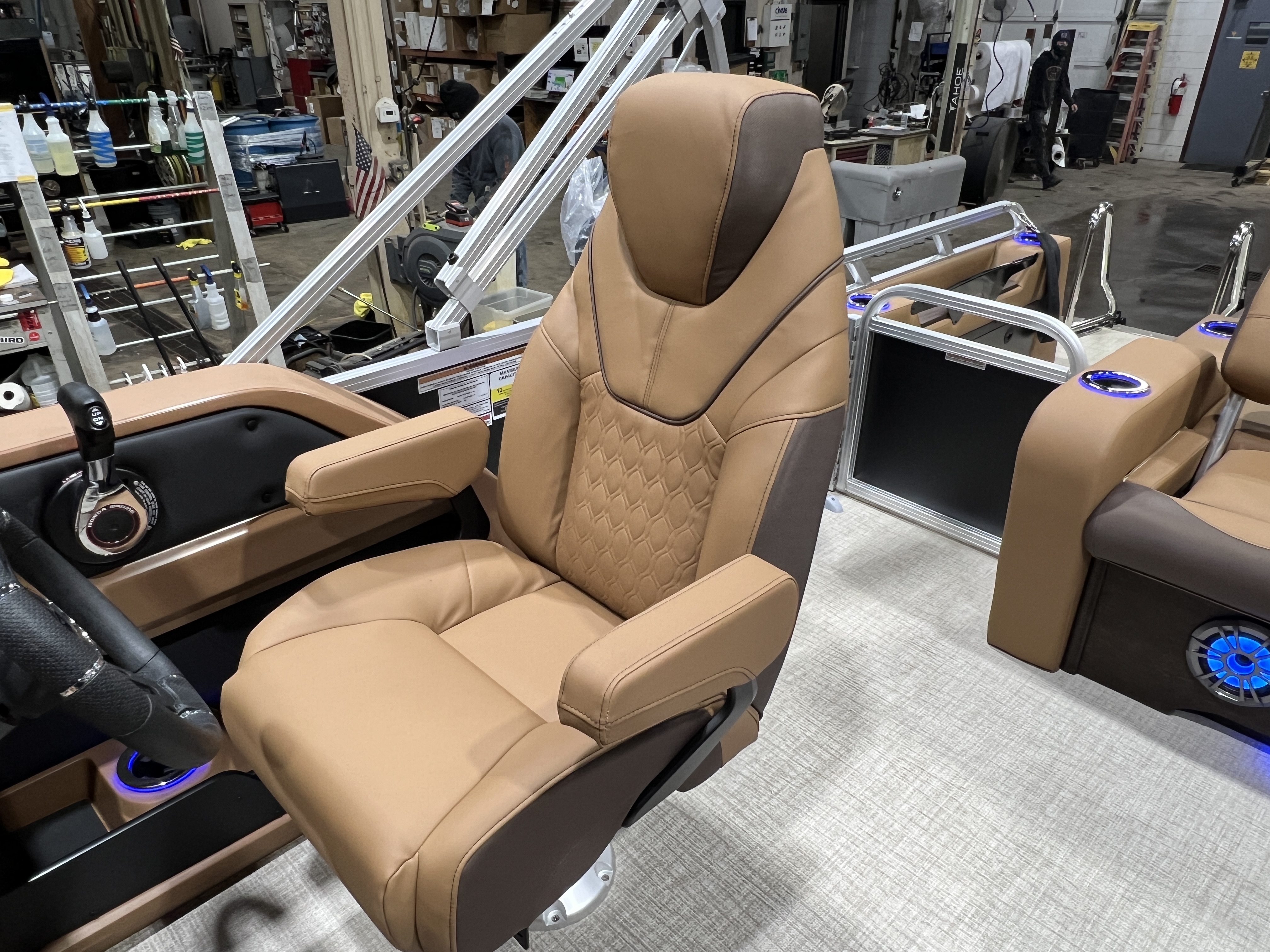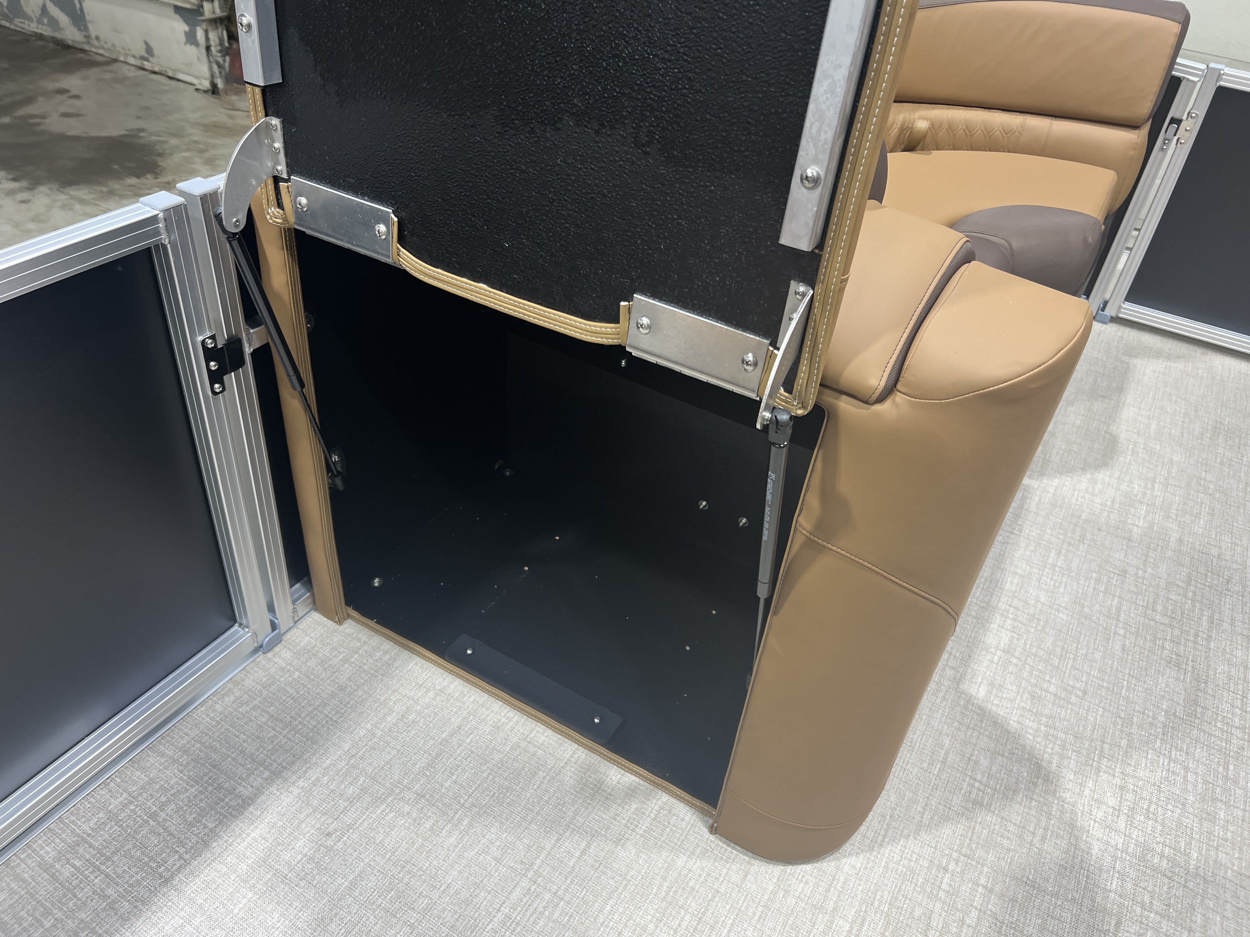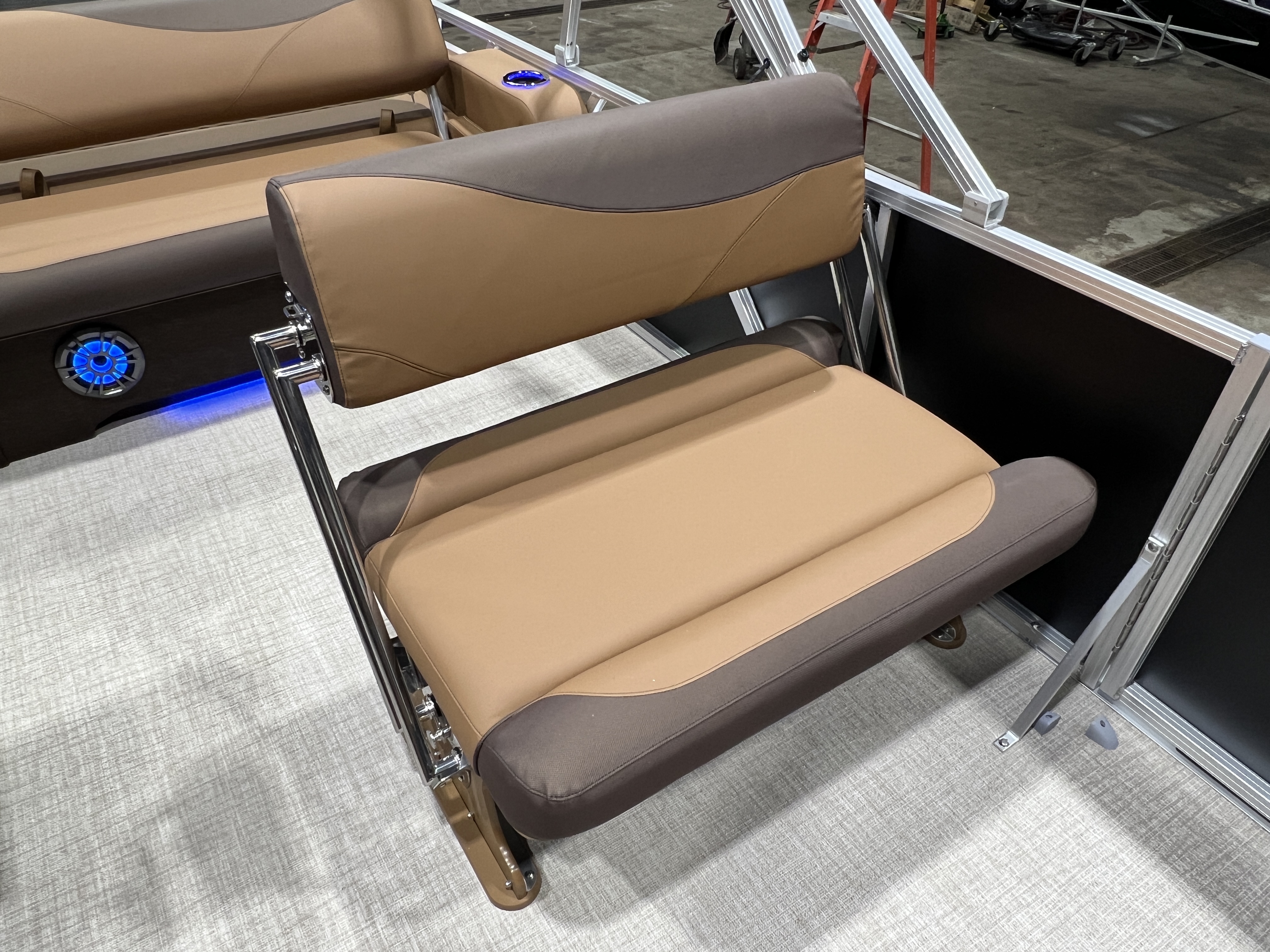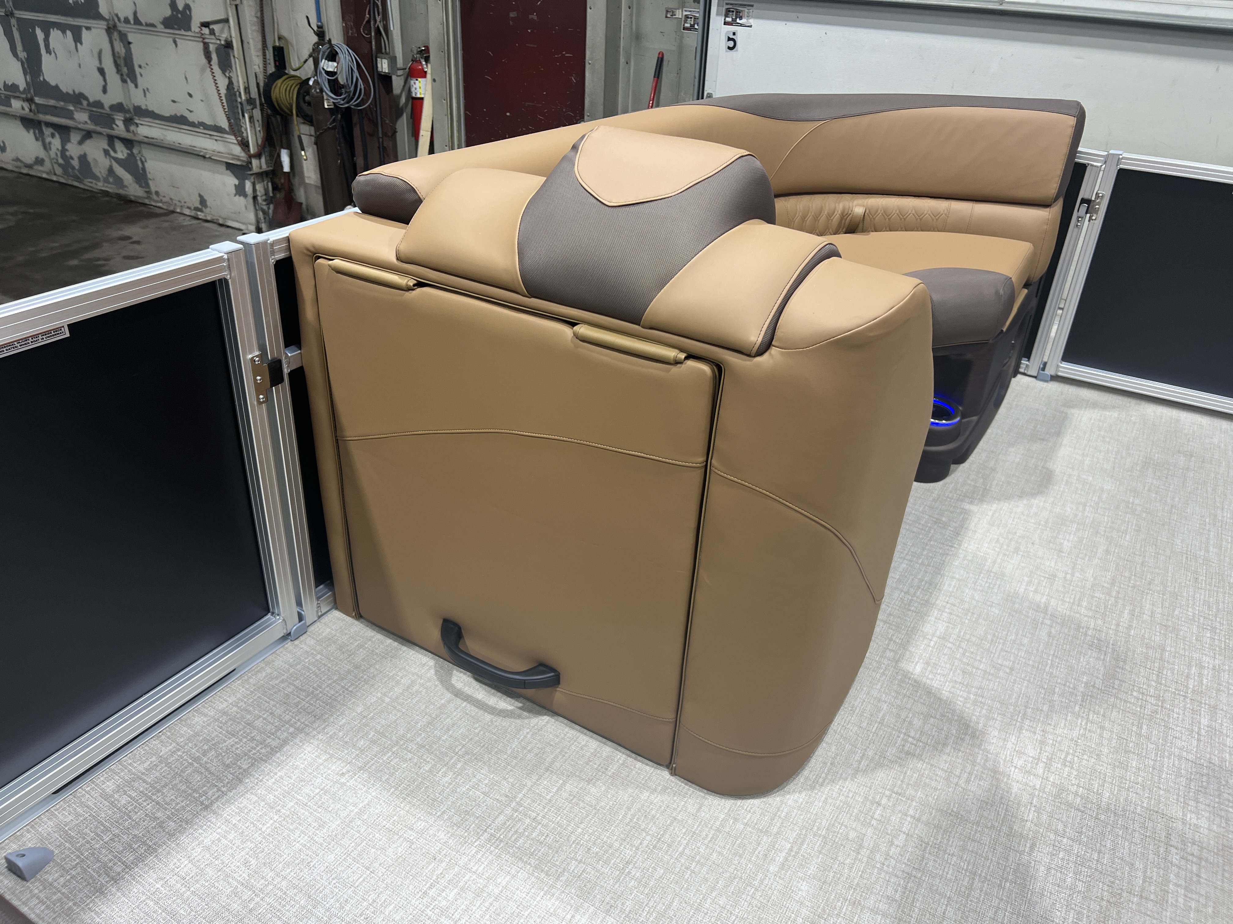 2026 Tahoe LTZ 2385 Entertainer Swingback Tritoon & Honda 4-Stroke EFI. This 23' Matte Black Walls Pontoon Has Front Chaise Lounge Seating With Storage, Admiral High Back Reclining Captain's Chair, Flip Flop Seat w/Table, Seating That Turns Into A Bed Or Front/Rear Facing Bench Seating, Rear Swim Deck, Cognac Vinyl Interior Package w/Brushed Bronze Cladding, Riptide Vinyl Flooring, LTZ Platinum Package (Ultra Fine Vinyl Upgrade, Garmin 52CV GPS Depth Finder, Stainless Steel Pull-Up Cleats, LED Smoked Chrome Docking Lights, Polished Corner Caps, Vent Covers For Cladding, Platinum Edition Special Badging) Fusion Bluetooth Radio w/6 Speakers, Blue Ice Package (Interior Mood Lighting, Lighted Cup Holders & Speakers), Hydraulic Steering, Underneath Sheeting, Lifting Strakes, 38 Gallon Gas Tank, Multiple Cup Holders, 25" Tubes, Ski Tow Bar w/Chains, 10' Bimini Top, Gated Aft, Cognac Interior Package, Bow & Aft USB Charging Ports, Lillipad Easy Step Ladder, Side Storage Behind Captain's Seat, Front Deck, Mooring Cover. Rated For 12 People.