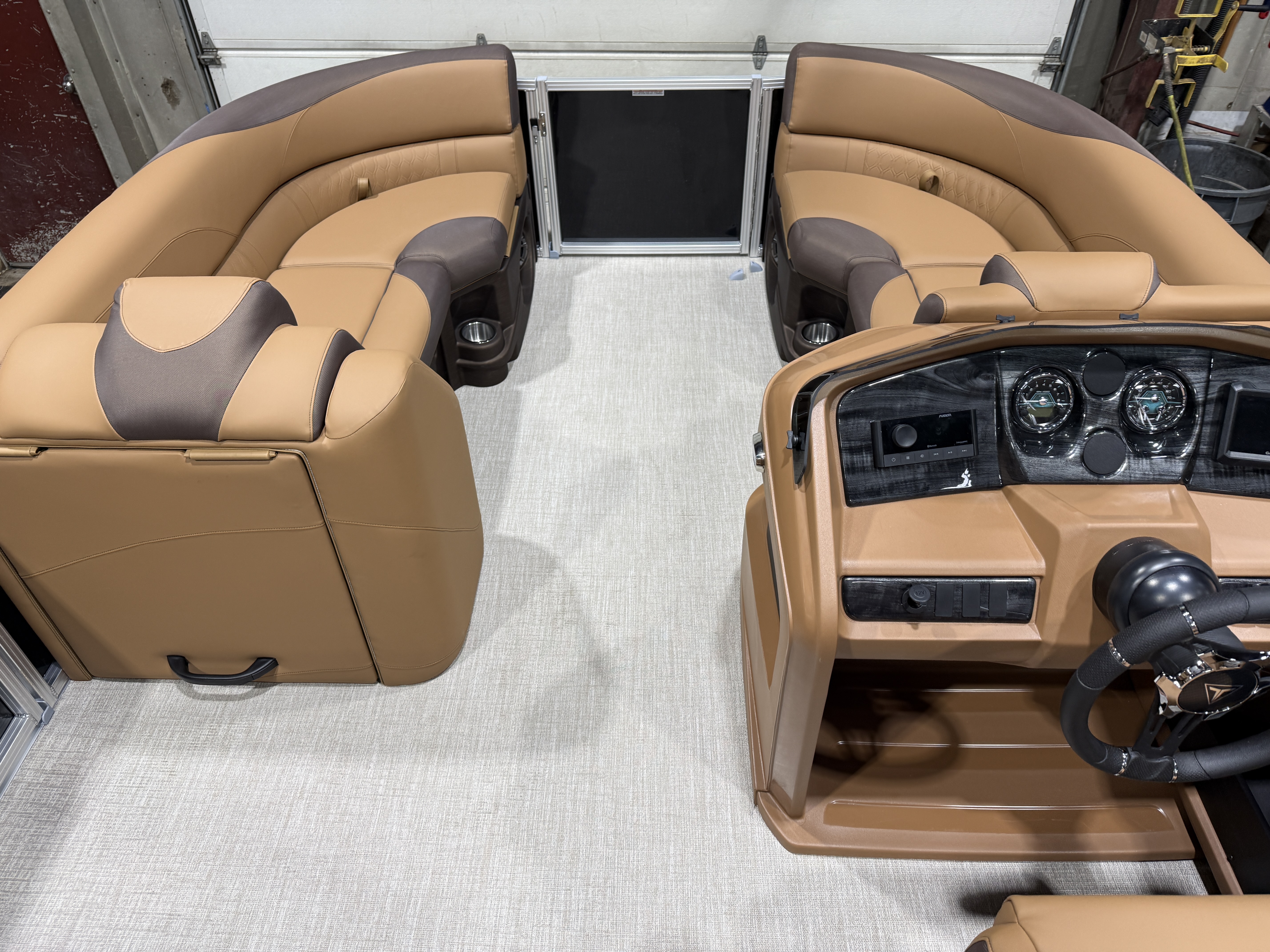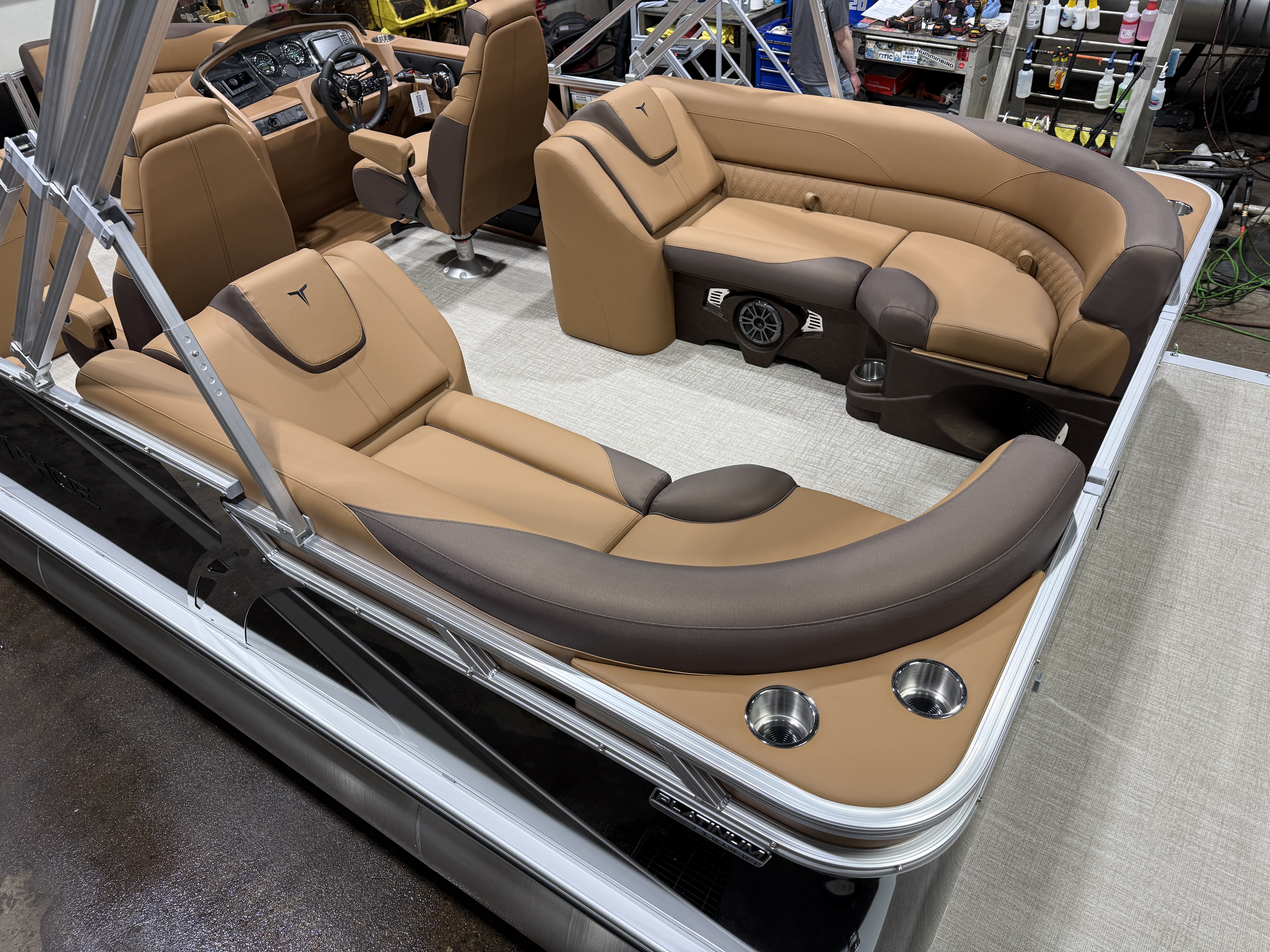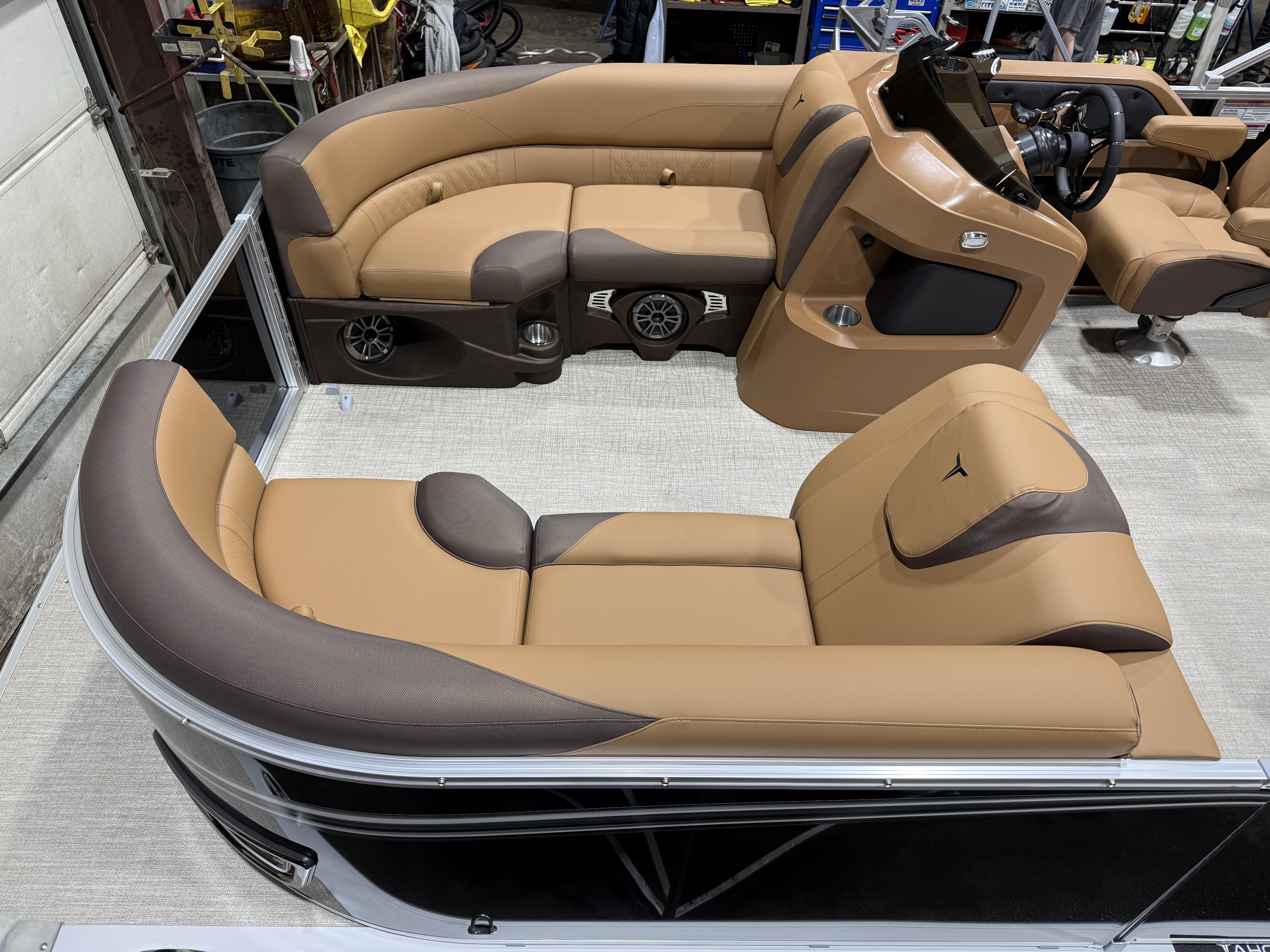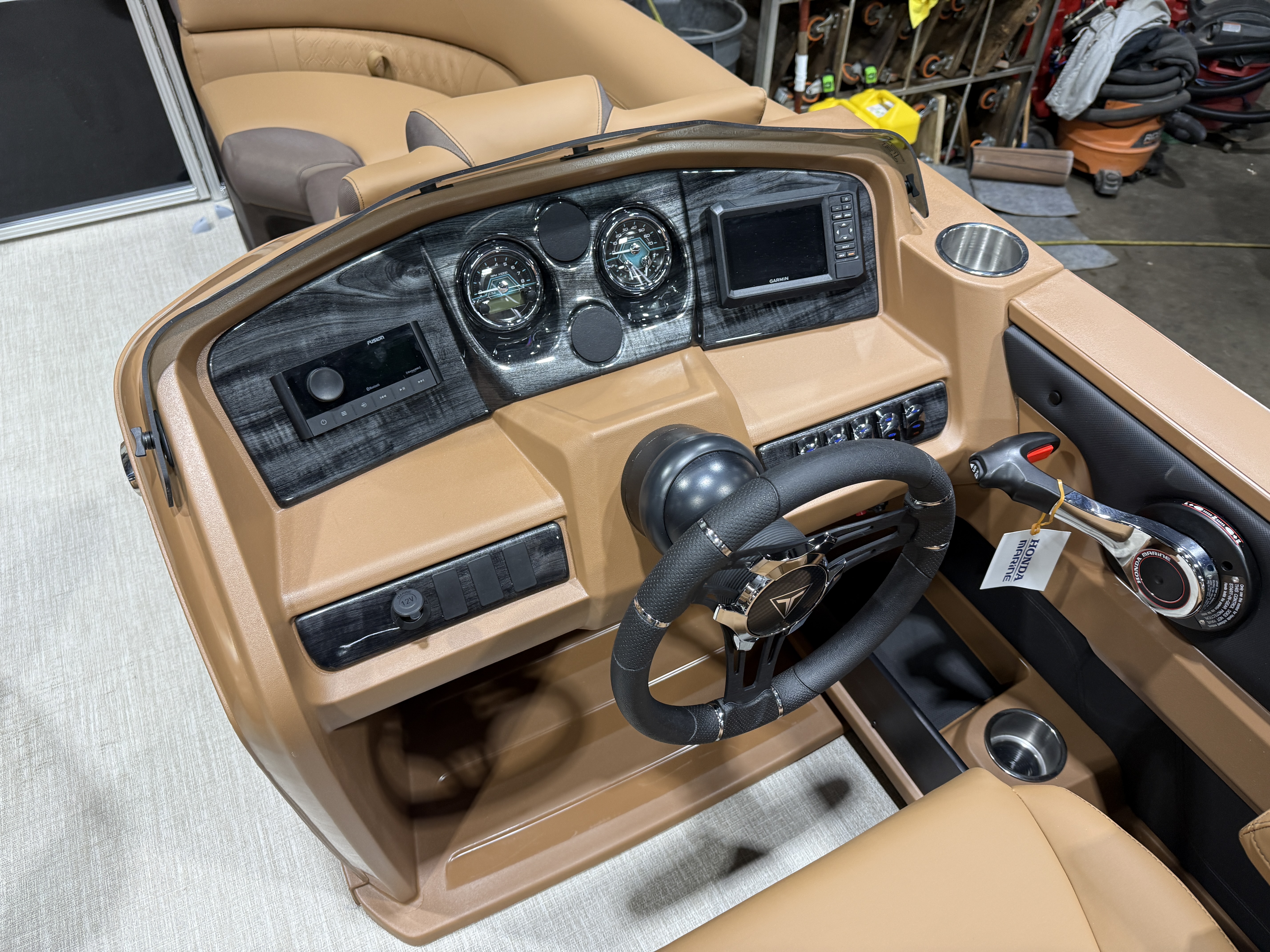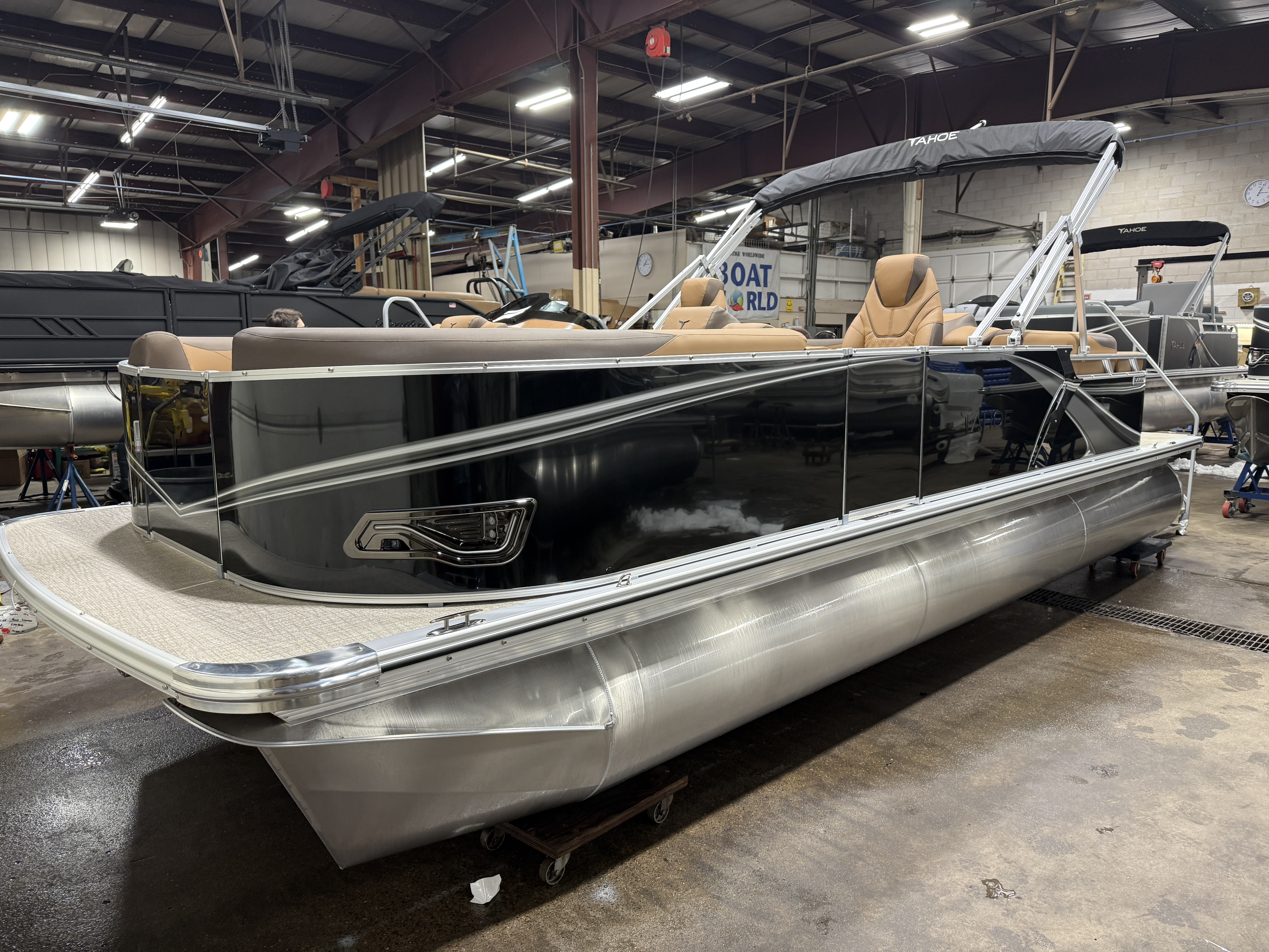 2026 Tahoe LTZ 2385 Quad Lounger Pontoon & Honda 4-Stroke EFI This Luxury Quad Lounger Pontoon Has 2 Chaise Lounge Seating Up Front With Storage, Side By Side High Back Admiral Reclining Captain's Chairs, Rear Facing Chaise Lounge Seating With Storage, Riptide Vinyl Floor, Tilt Steering, Built-In 25 Gallon Gas Tank, LTZ Platinum Edition (LED Smoked Chrome Docking Lights, SST Pull-Up Cleats, Polished Corner Caps, Garmin 52CV GPS Depth Finder, SST Vent Covers, Ultra Fine Touch Vinyl Upgrade, Platinum Edition Special Badging), LED Nav Lights, Gauge Package With Hour Meter, Bluetooth Fusion Radio With 6 Speakers & Amp, USB Input w/AUX, Bow USB Charging Port, Lillipad Easy Step Ladder, Greywood Rectangle Table, Lifetime Aluminum Seat Frames, Multiple Cup Holders, Cognac Interior Package w/Expresso Accent, Adjustable 10' Bimini Top, 25" Tubes, Smoked Chrome Logos, New Battery, Mooring Cover, Front And Rear Sun Deck. Rated For 11 People.