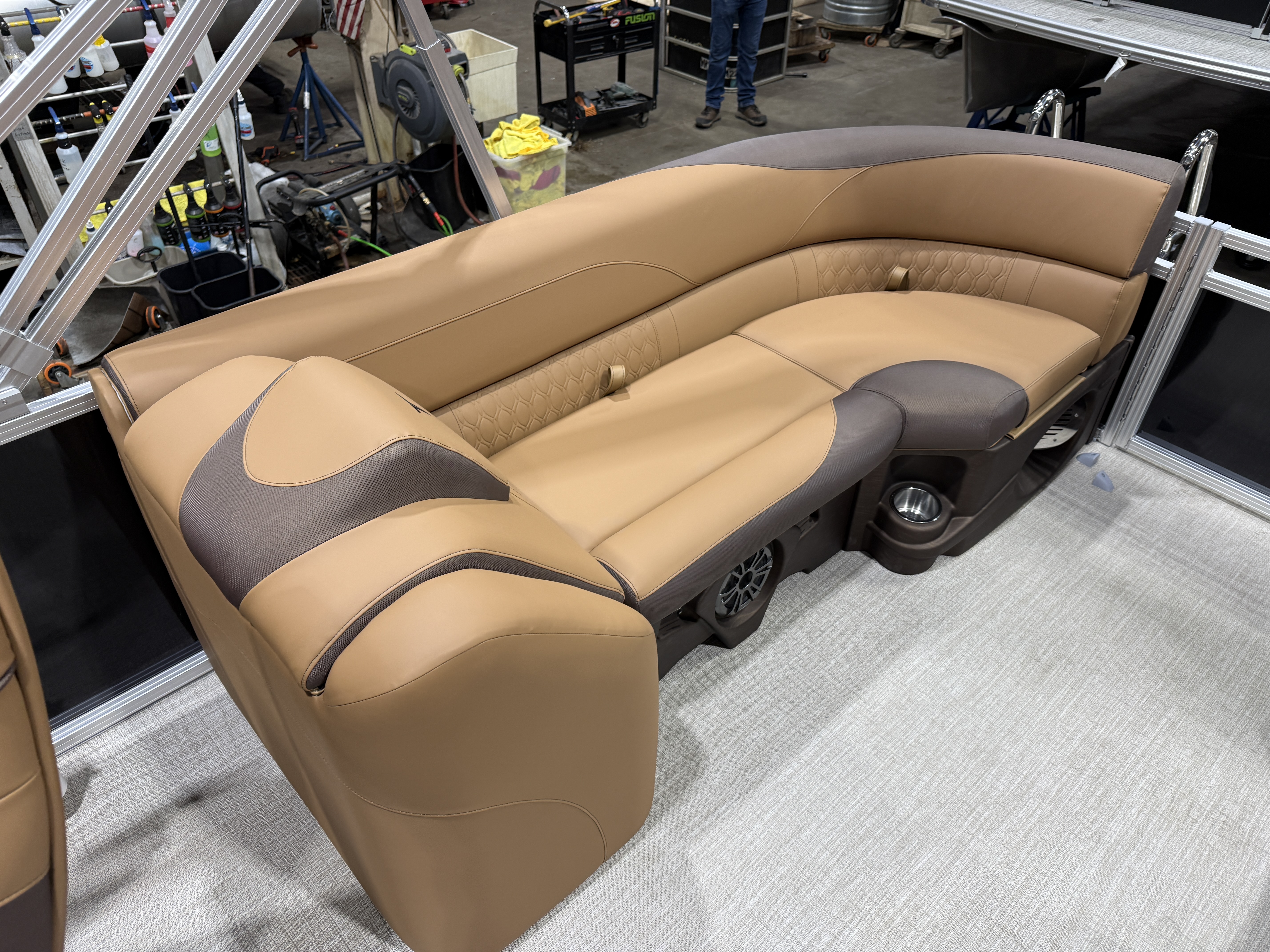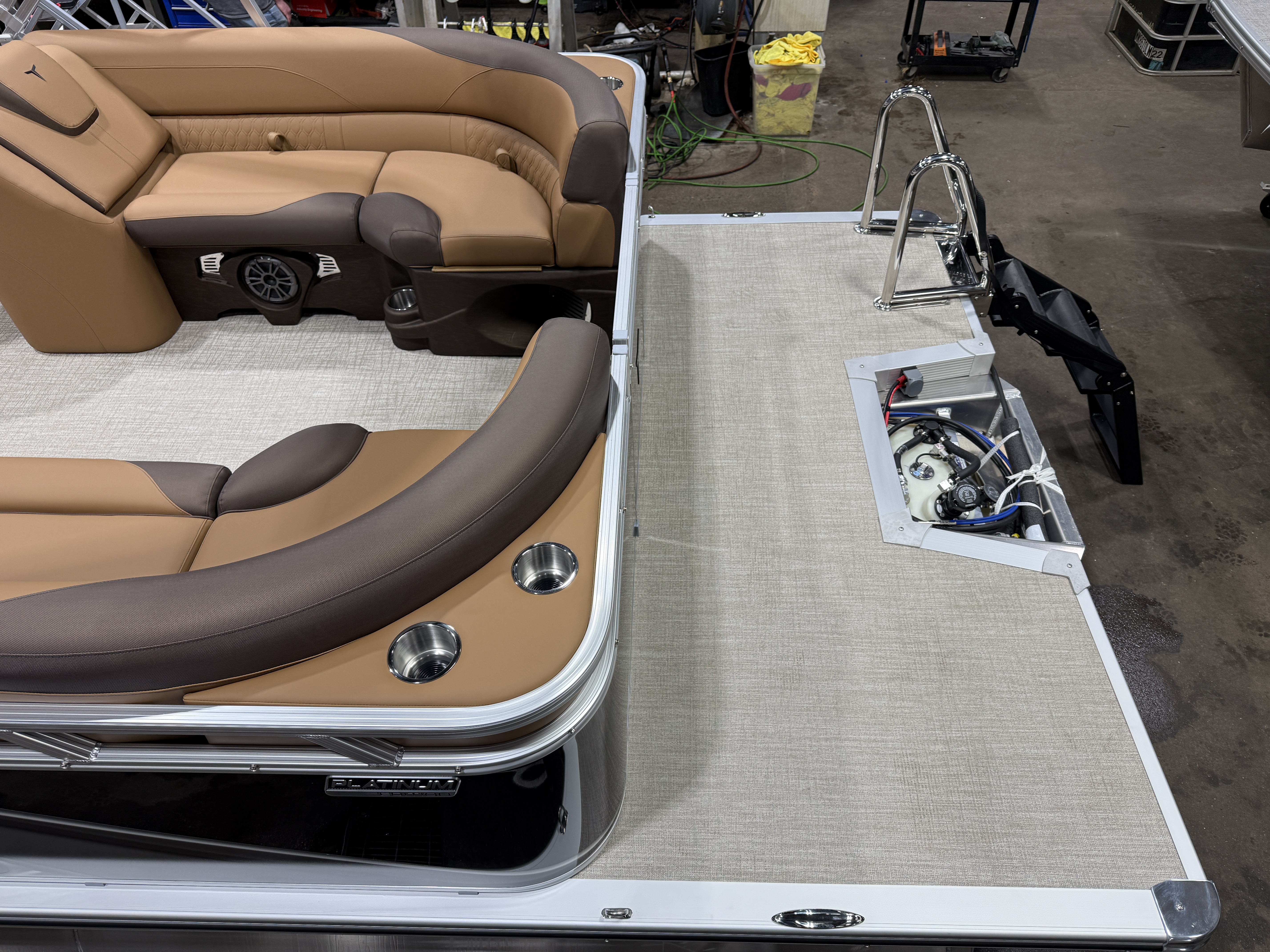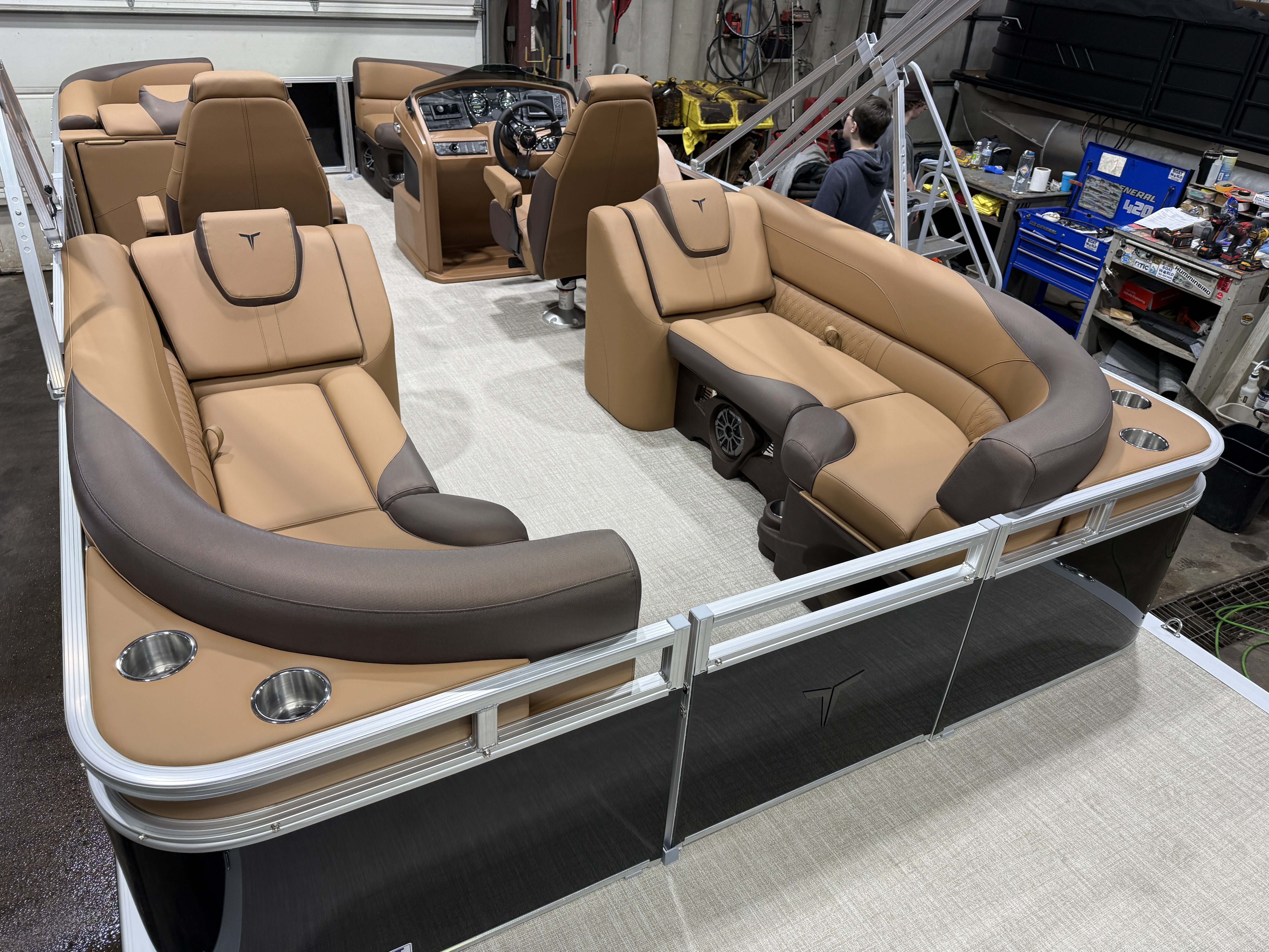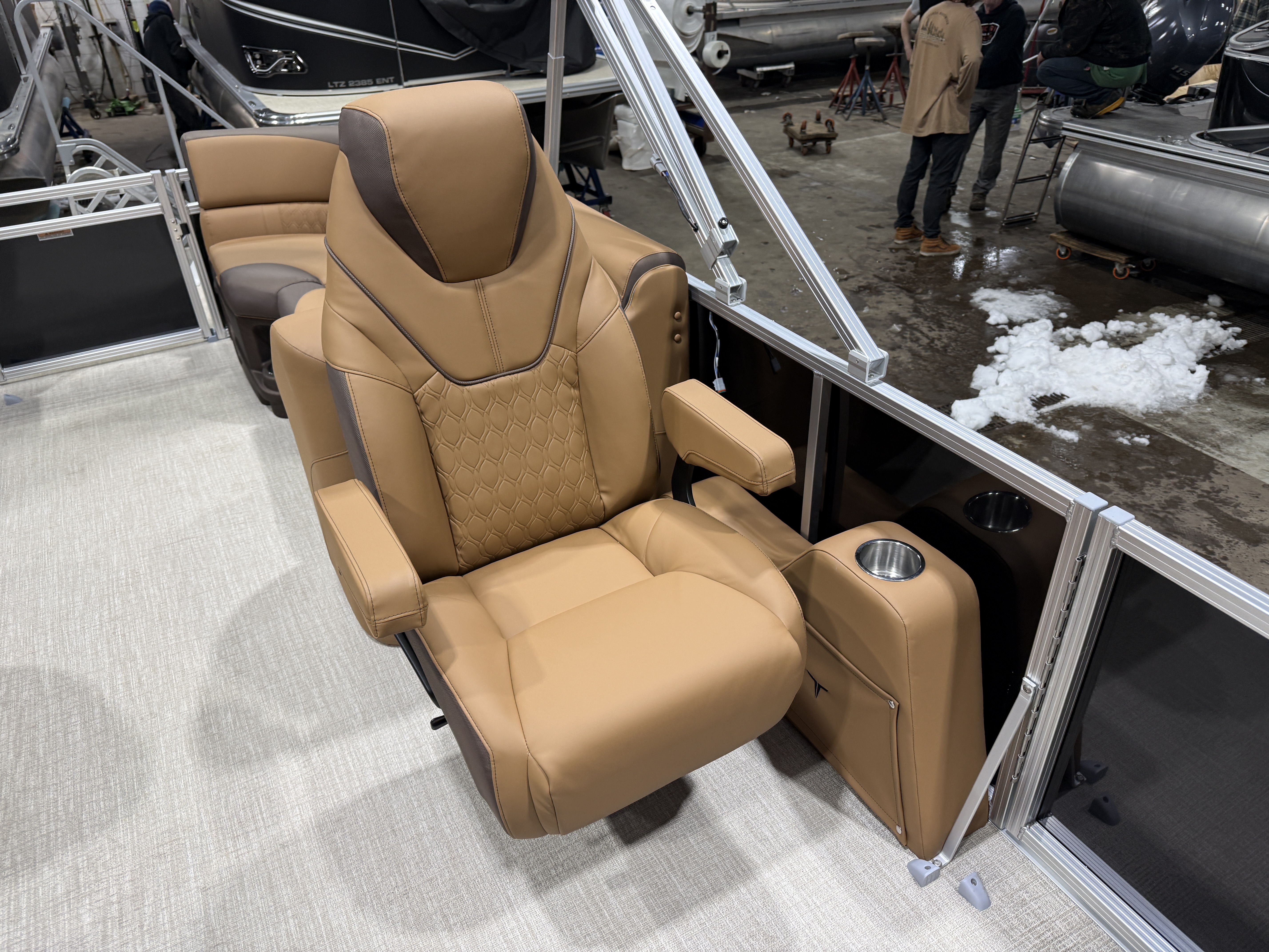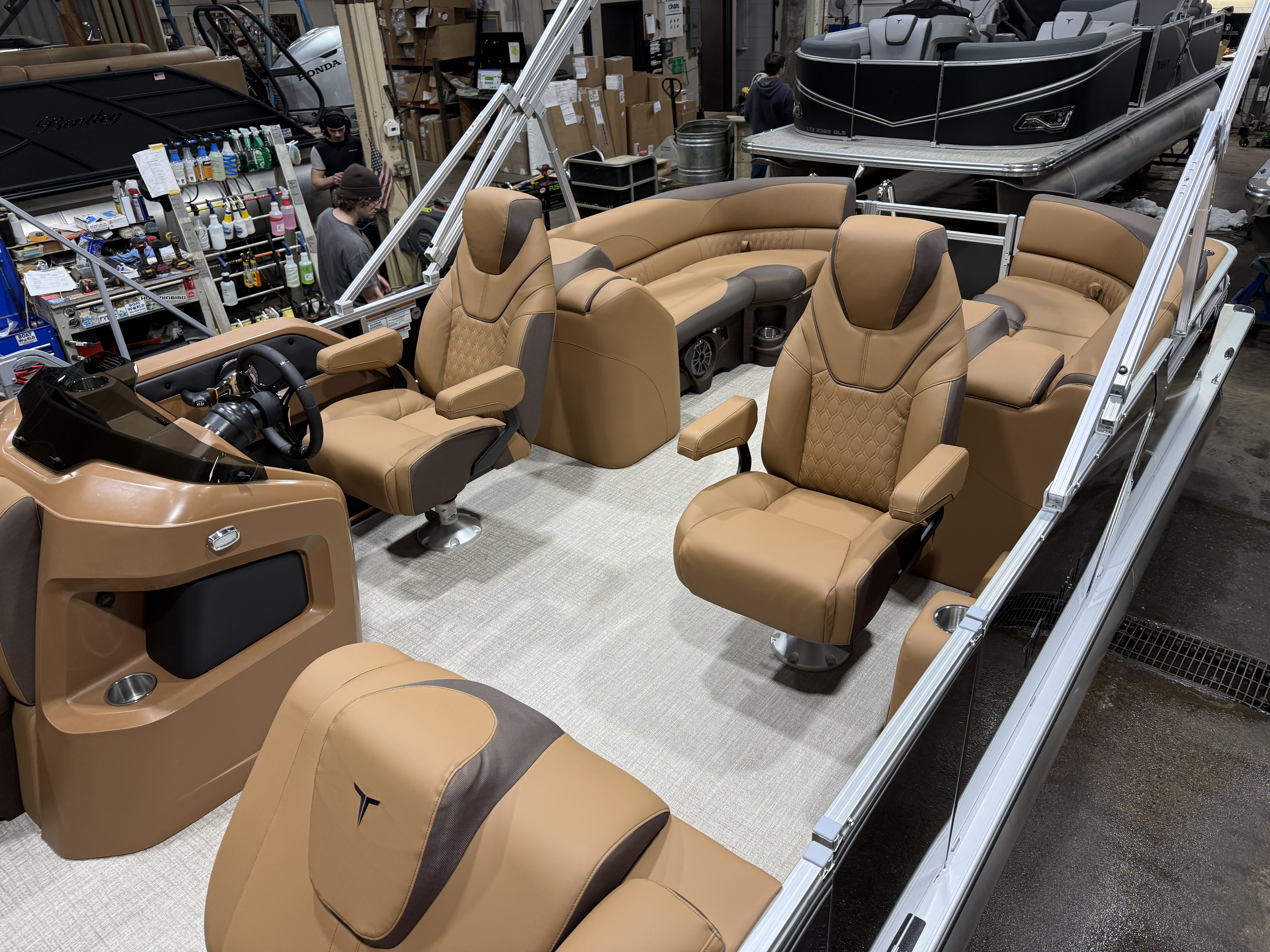 2026 Tahoe LTZ 2385 Quad Lounger Pontoon & Honda 4-Stroke EFI This Luxury Quad Lounger Pontoon Has 2 Chaise Lounge Seating Up Front With Storage, Side By Side High Back Admiral Reclining Captain's Chairs, Rear Facing Chaise Lounge Seating With Storage, Riptide Vinyl Floor, Tilt Steering, Built-In 25 Gallon Gas Tank, LTZ Platinum Edition (LED Smoked Chrome Docking Lights, SST Pull-Up Cleats, Polished Corner Caps, Garmin 52CV GPS Depth Finder, SST Vent Covers, Ultra Fine Touch Vinyl Upgrade, Platinum Edition Special Badging), LED Nav Lights, Gauge Package With Hour Meter, Bluetooth Fusion Radio With 6 Speakers & Amp, USB Input w/AUX, Bow USB Charging Port, Lillipad Easy Step Ladder, Greywood Rectangle Table, Lifetime Aluminum Seat Frames, Multiple Cup Holders, Cognac Interior Package w/Expresso Accent, Adjustable 10' Bimini Top, 25" Tubes, Smoked Chrome Logos, New Battery, Mooring Cover, Front And Rear Sun Deck. Rated For 11 People.