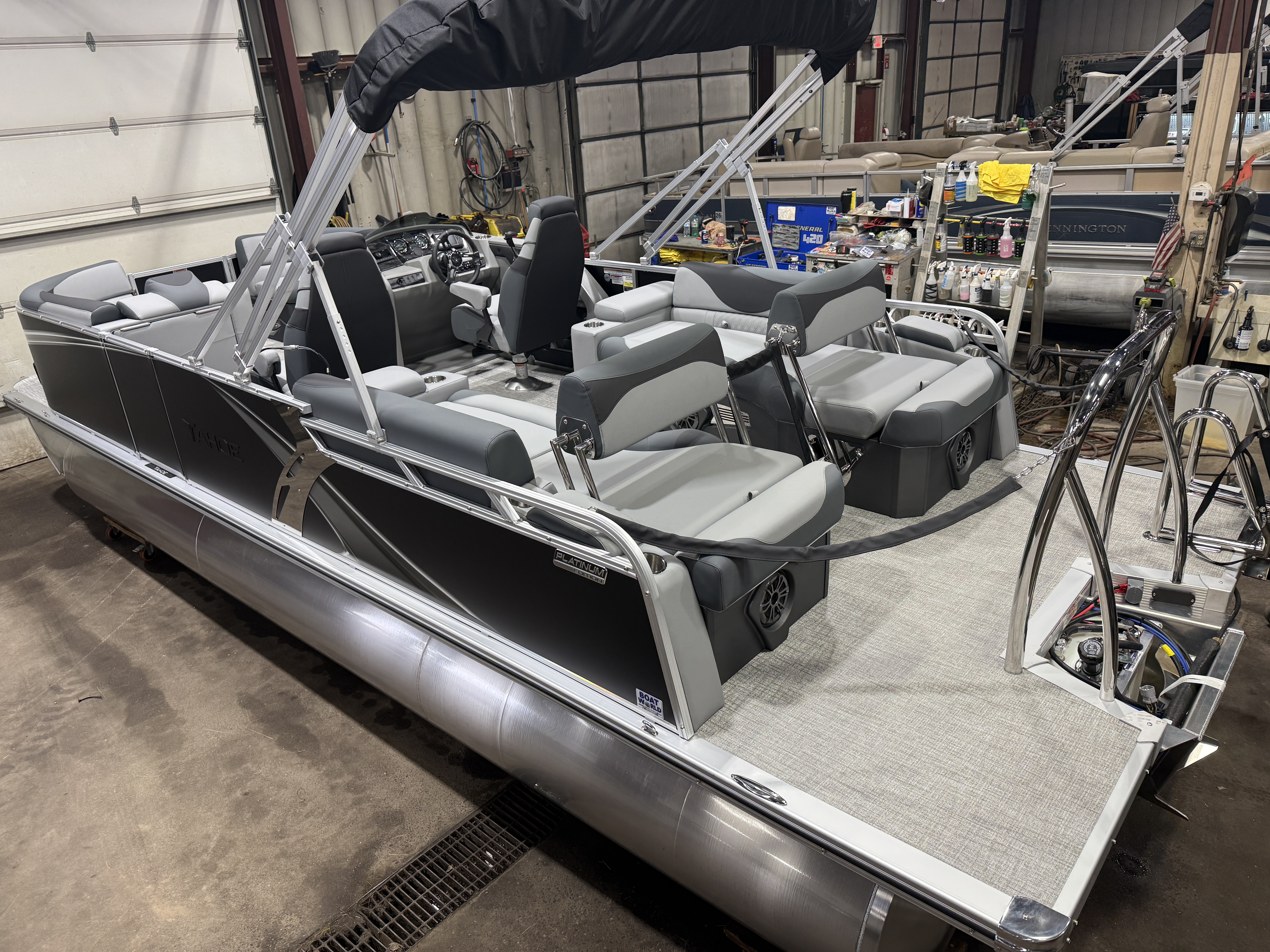 Luxury 23' Matte Black Walls Quad Lounger Pontoon Has 2 Chaise Lounge Seating Up