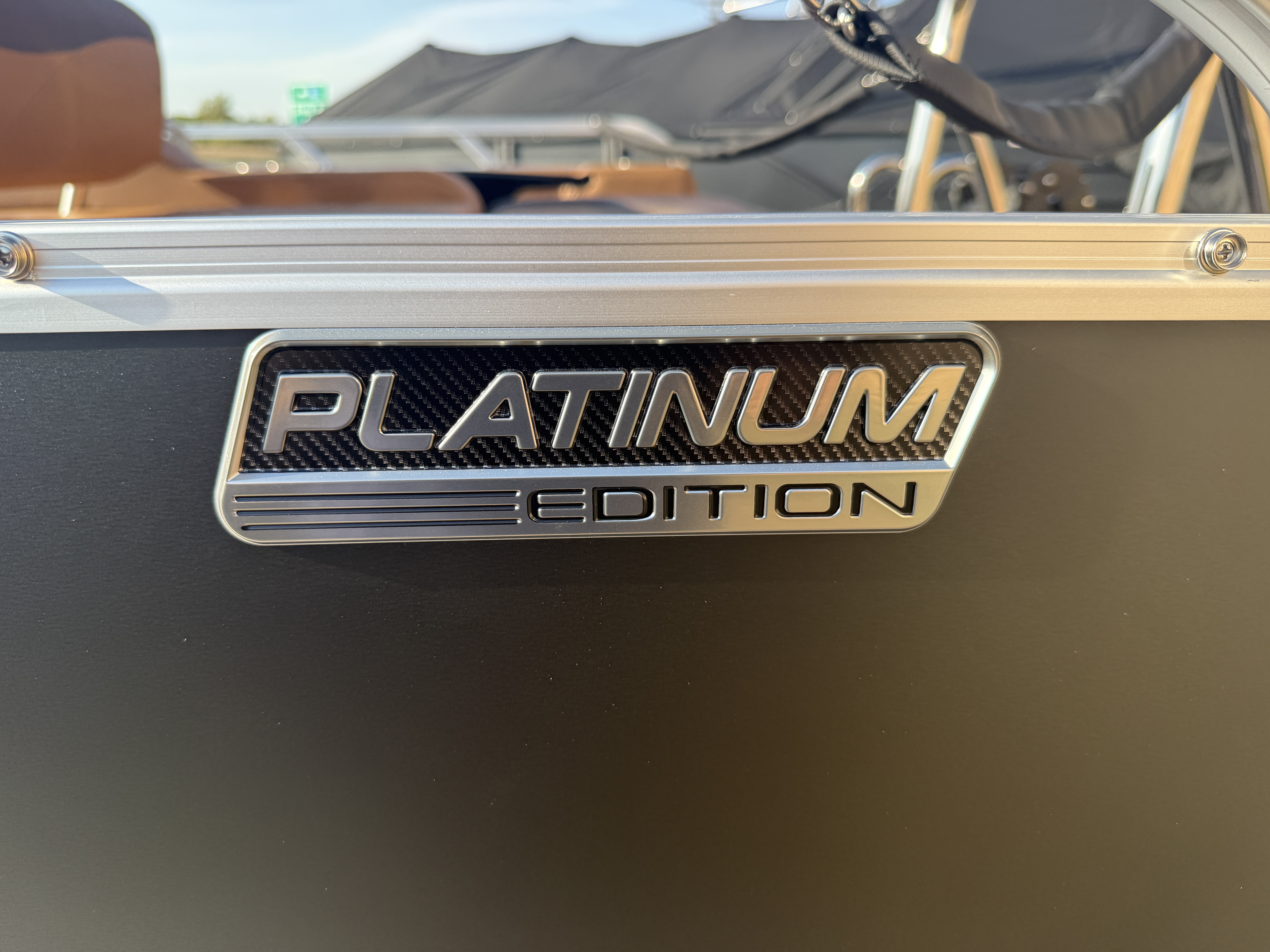 Matte Black Walls Pontoon Has Front Chaise Lounge Seating With Storage, Admiral