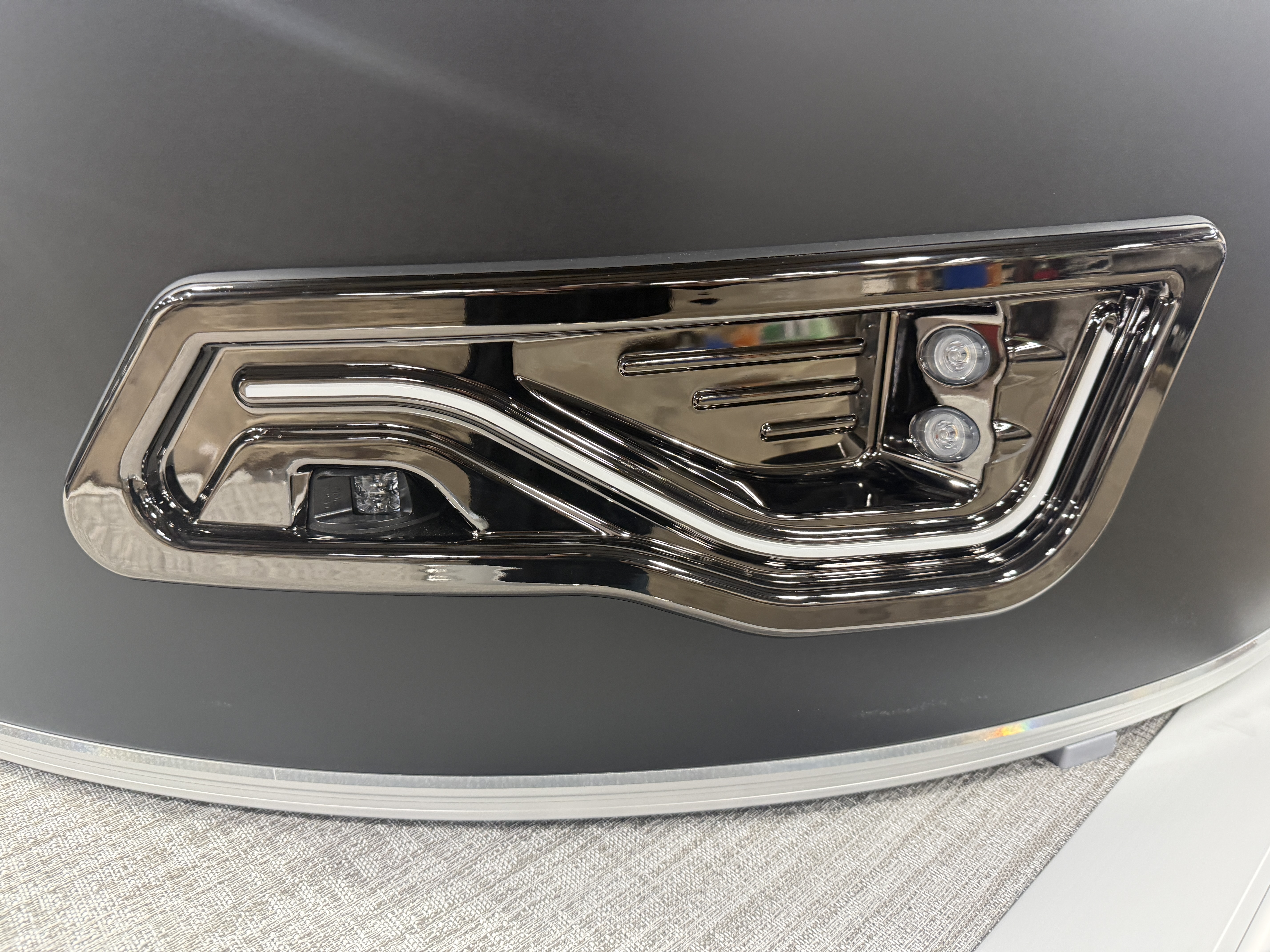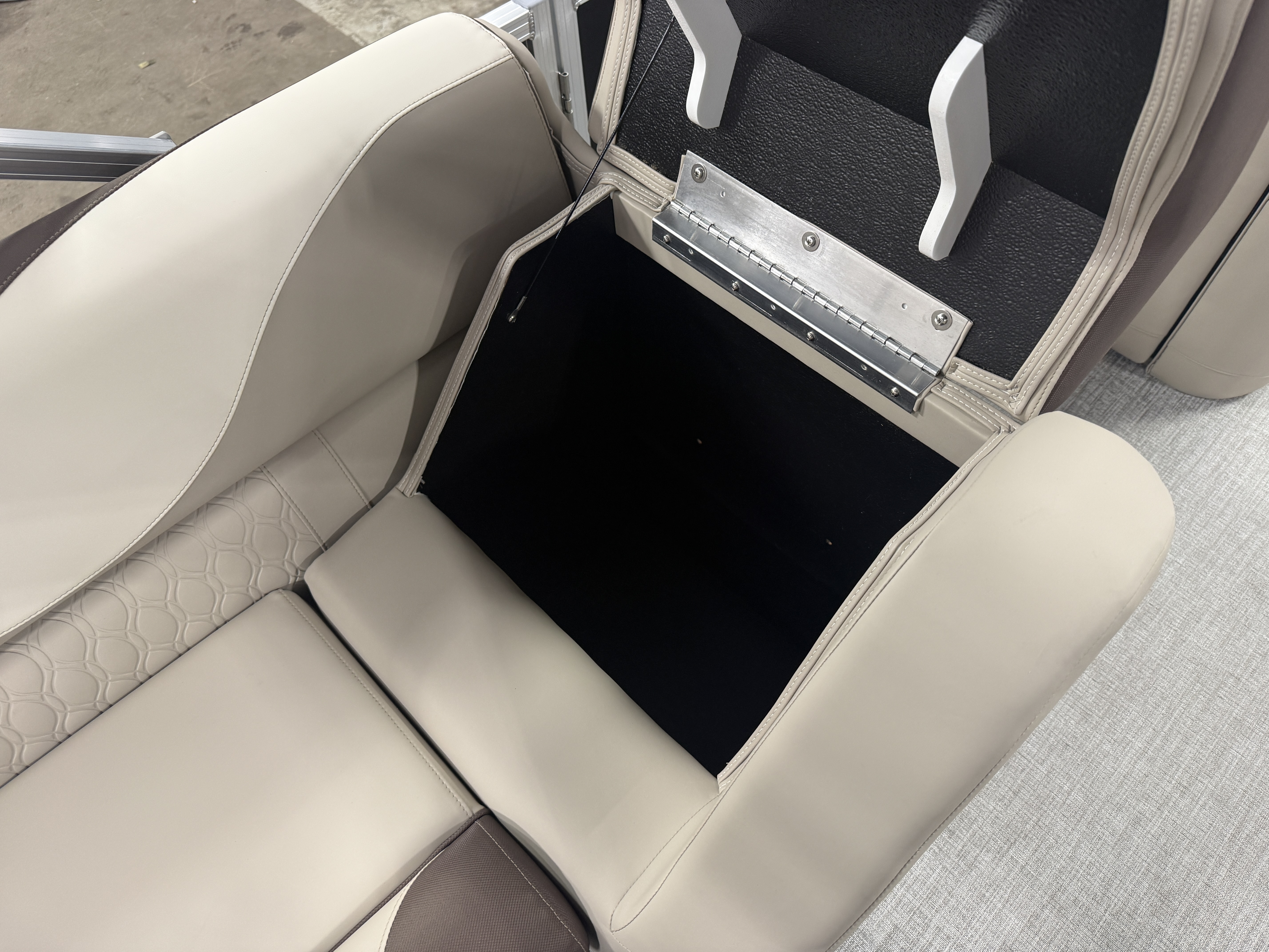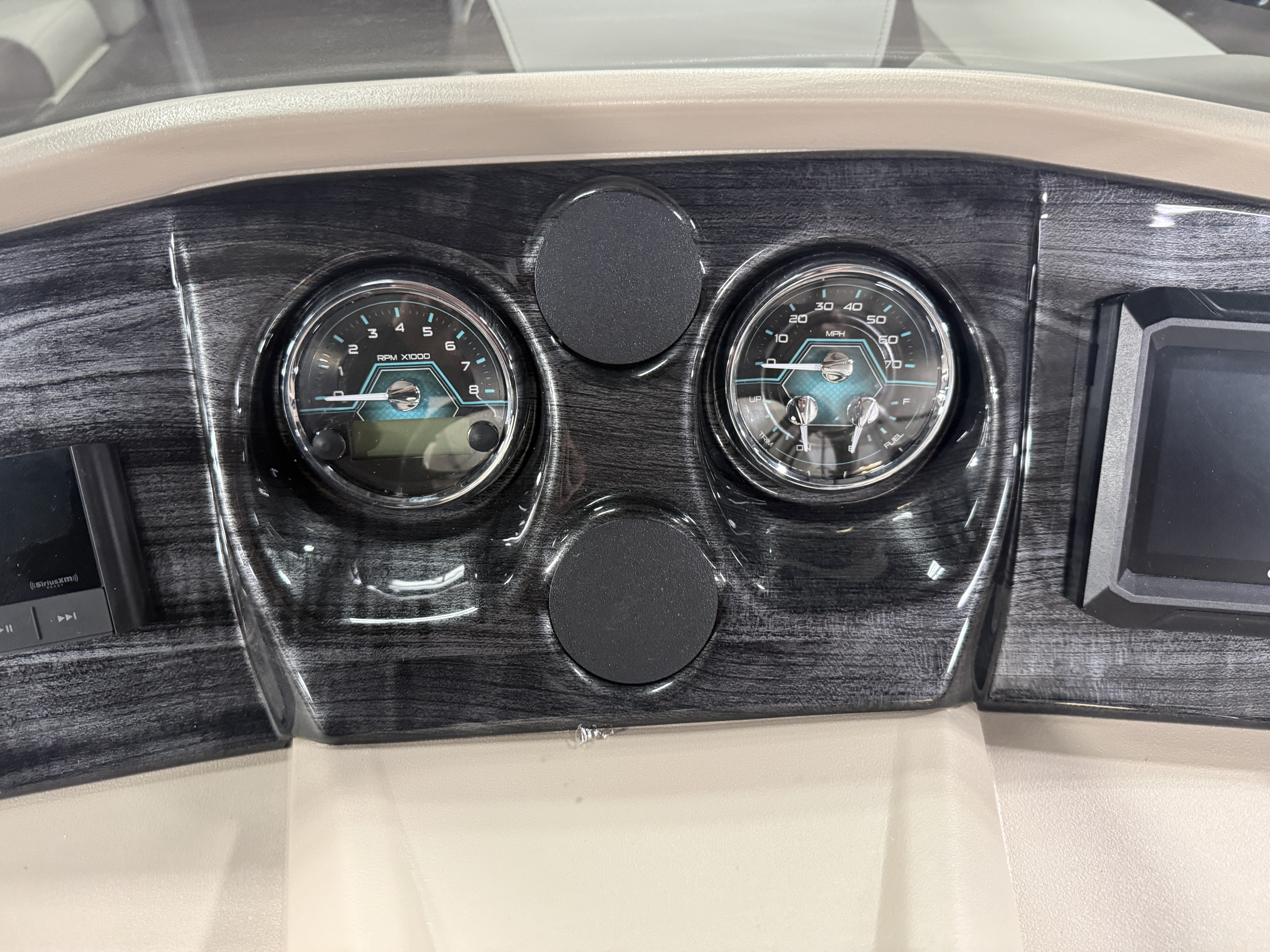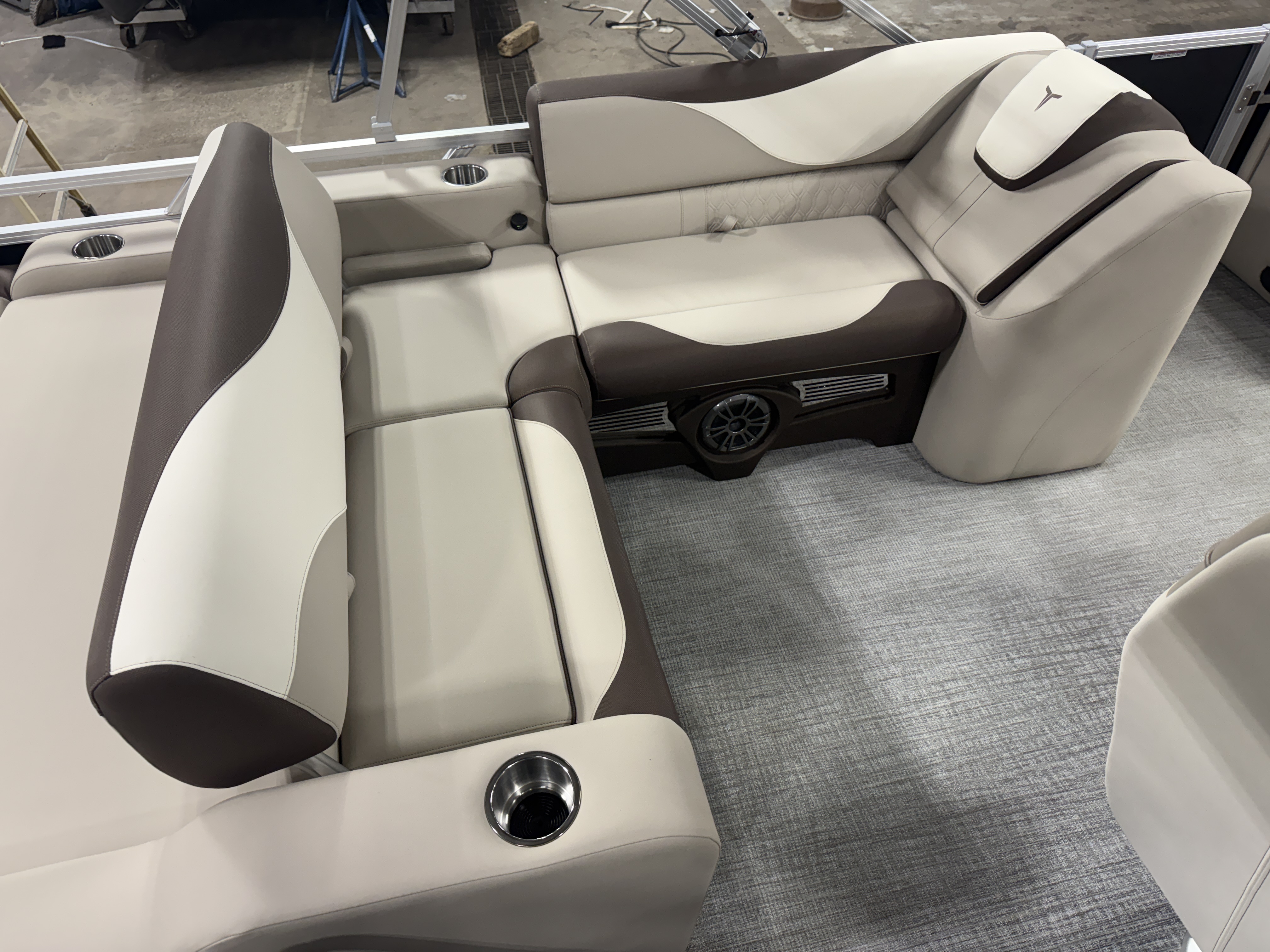 2026 Tahoe LTZ 2385 Versatile Rear Bench (VRB) Swingback Pontoon & Honda 4-Stroke EFI. This 23' Steel Blue Walls Pontoon Has Front Chaise Lounge Seating With Storage, Wrap Around Seating With Storage, Admiral Reclining Captain's Chair, Seating That Turns Into A Bed Or Rear Facing Bench Seating, Rear Swim Deck, Riptide Vinyl Flooring, LTZ Platinum Package (Ultrafine Touch Vinyl Upgrade, Garmin 52CV GPS Depth Finder, Pull-Up Cleats, LED Smoked Chrome Docking Lights, Vent Covers For Cladding, Platinum Edition Special Badging) Table, Bluetooth Radio w/6 Speakers, Multiple Cup Holders, 25" Tubes, 10' Bimini Top, Gated Aft, Buckskin Interior Package w/Expresso Accent, Brushed Bronze Seat Cladding, Built In 25 Gallon Gas Tank, LED NAV Lights, Ski Tow Bar w/Chains, Smoked Chrome Logos, Mooring Cover, Bow & Aft USB Charging Ports, Lillipad Easy Step Ladder, Side Storage Behind Captain's Seat, On/Off Battery Switch, Front Deck. Rated For 11 People.