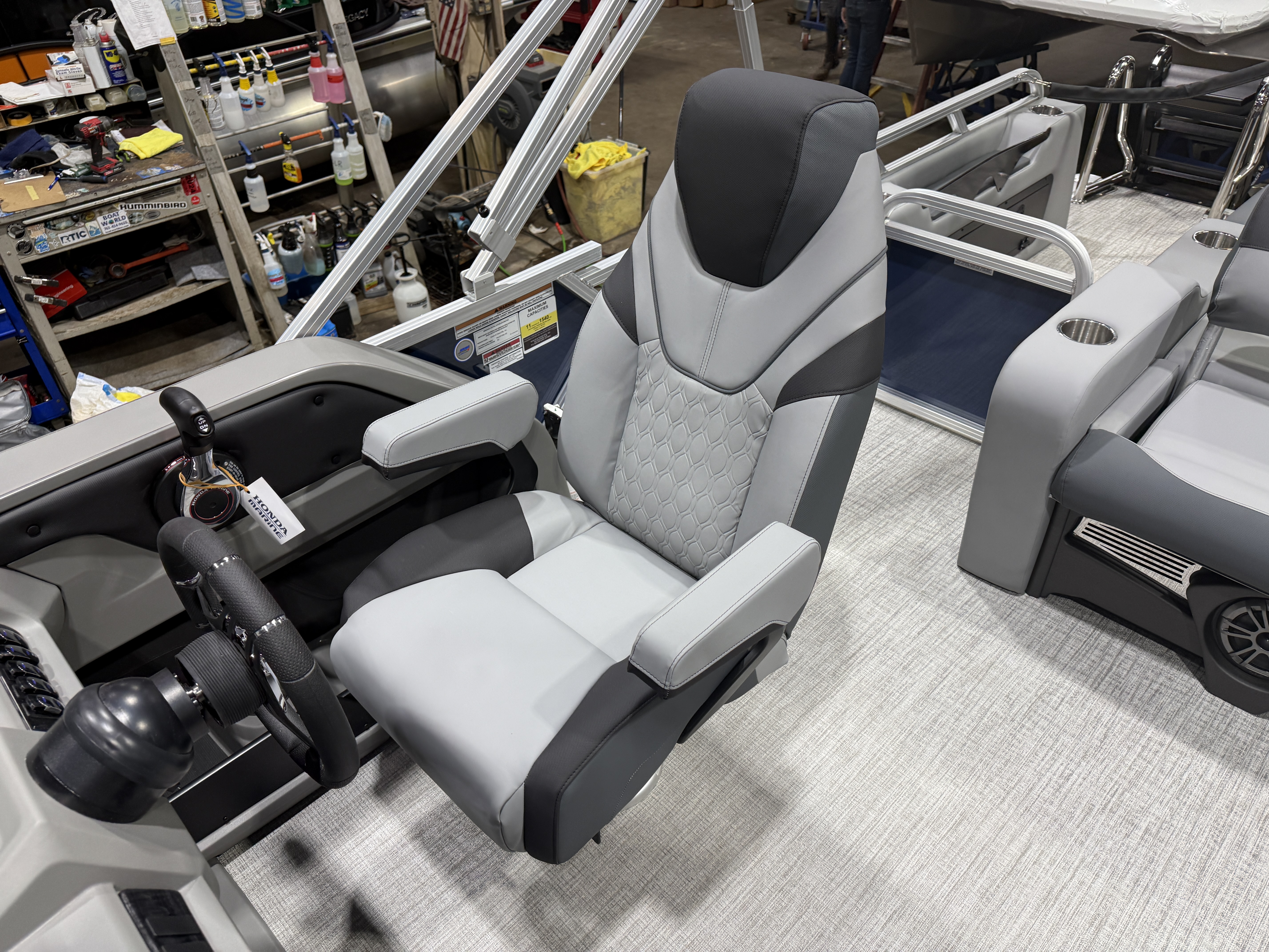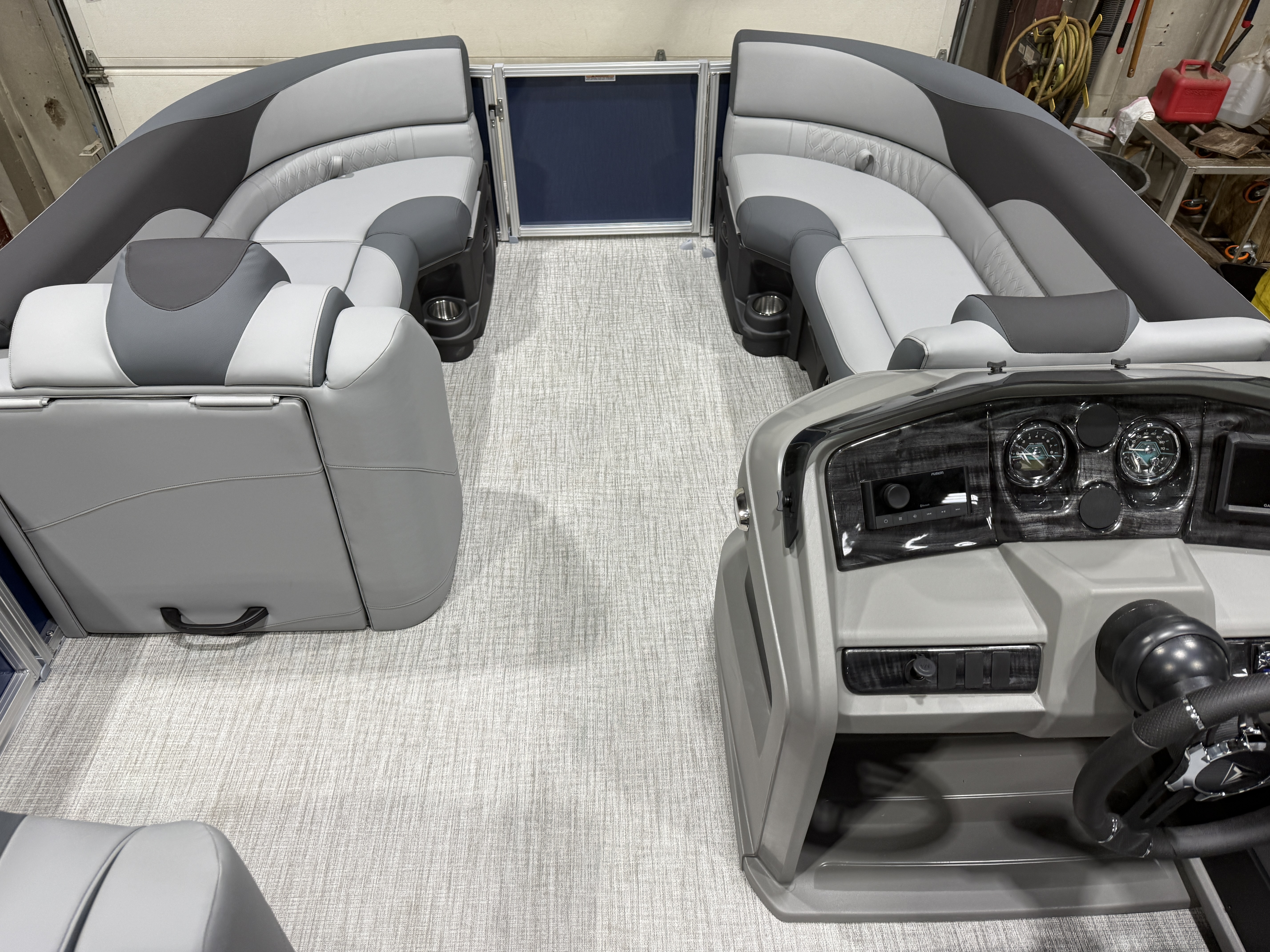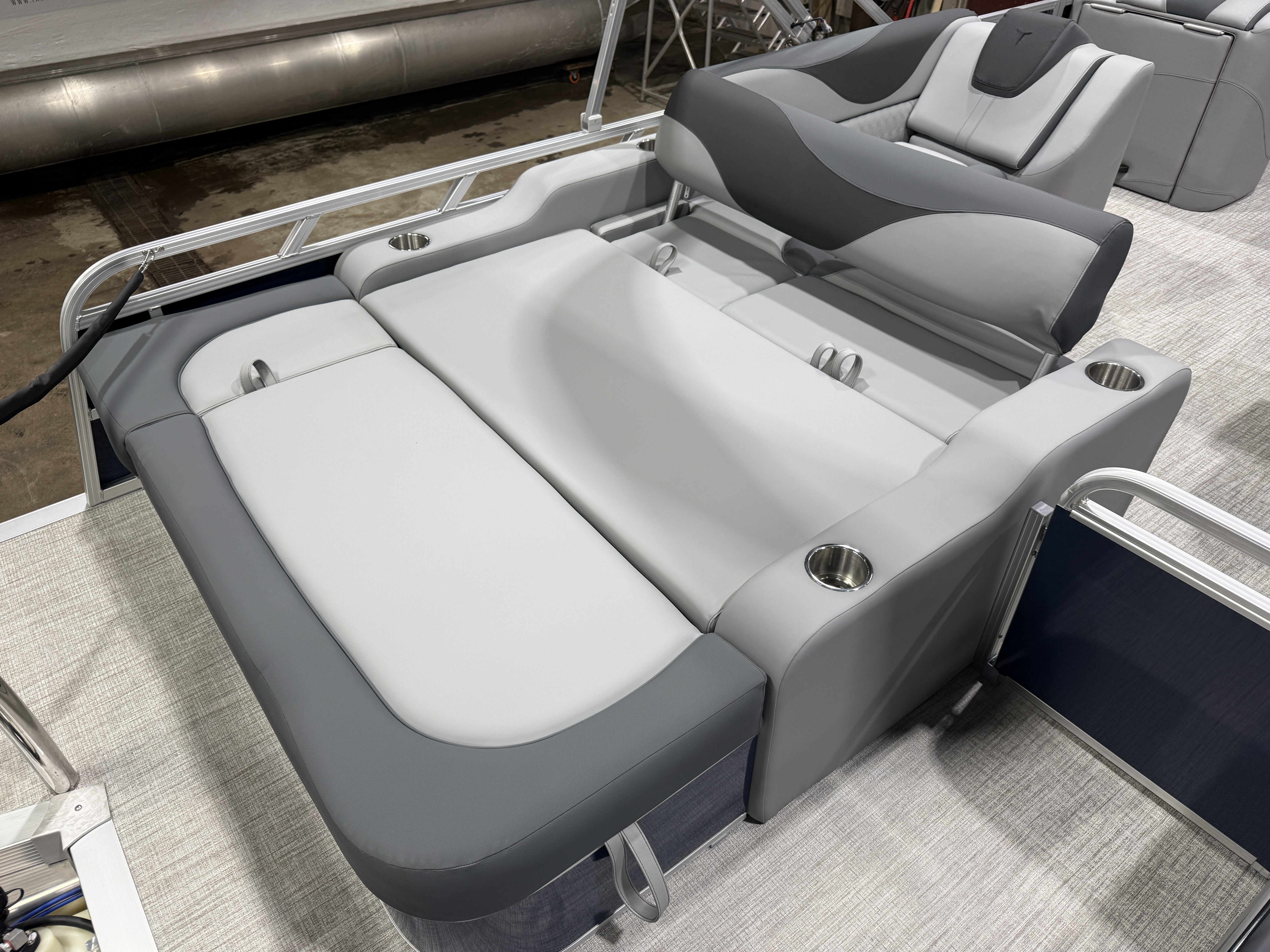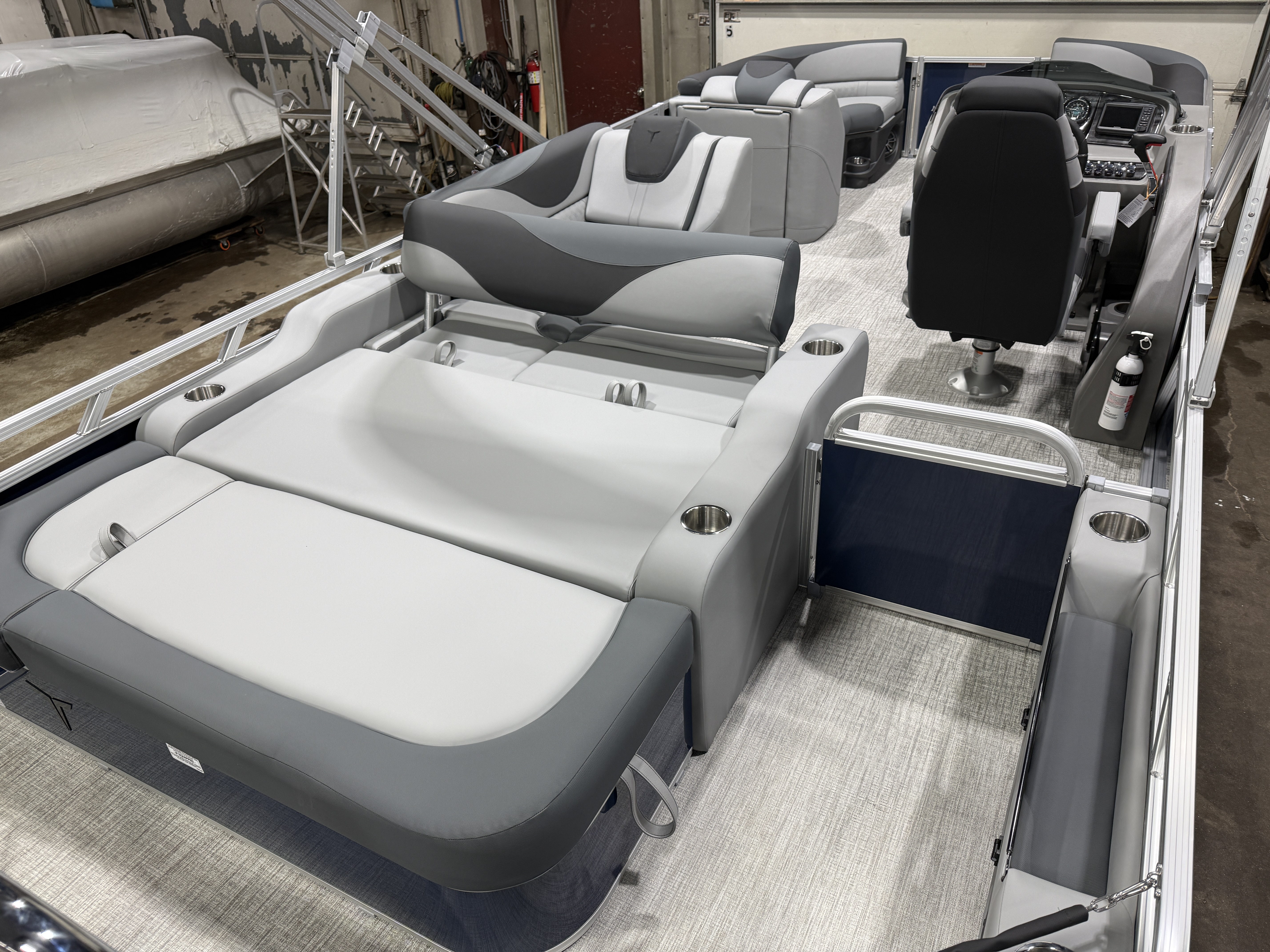 2026 Tahoe LTZ 2385 Versatile Rear Bench (VRB) Swingback Pontoon & Honda 4-Stroke EFI. This 23' Pontoon Has Front Chaise Lounge Seating With Storage, Wrap Around Seating With Storage, Admiral Reclining Captain's Chair, Seating That Turns Into A Bed Or Rear Facing Bench Seating, Rear Swim Deck, Riptide Vinyl Flooring, LTZ Platinum Package (Ultrafine Touch Vinyl Upgrade, Garmin 52CV GPS Depth Finder, Pull-Up Cleats, LED Smoked Chrome Docking Lights, Vent Covers For Cladding, Platinum Edition Special Badging) Table, Bluetooth Radio w/6 Speakers, Multiple Cup Holders, 25" Tubes, 10' Bimini Top, Gated Aft, Graphite Interior Package w/Koolfab Black & Charcoal Accent, Charcoal Seat Cladding, Built In 25 Gallon Gas Tank, LED NAV Lights, Ski Tow Bar w/Chains, Smoked Chrome Logos, Mooring Cover, Bow & Aft USB Charging Ports, Lillipad Easy Step Ladder, Side Storage Behind Captain's Seat, On/Off Battery Switch, Front Deck. Rated For 11 People.
