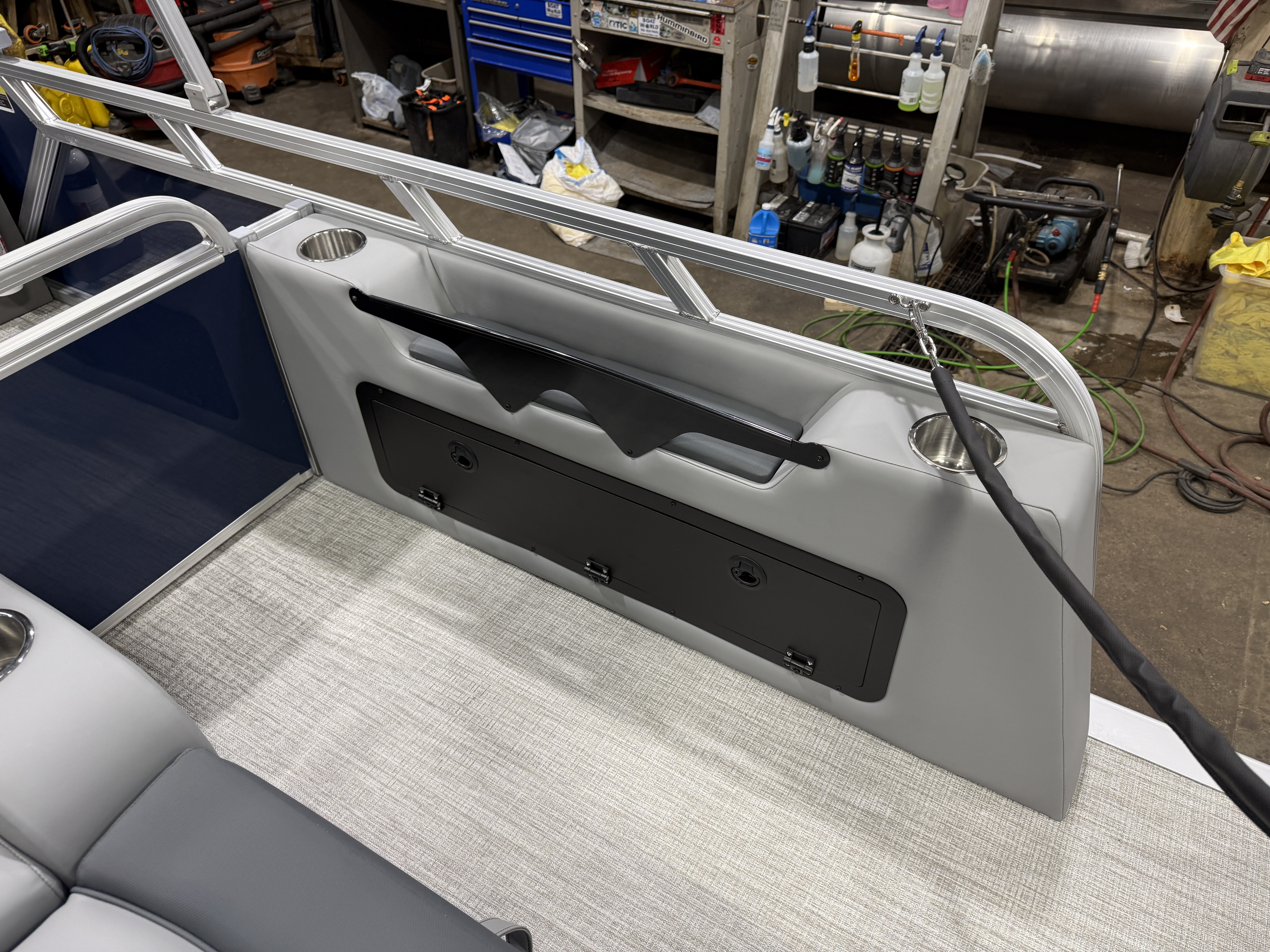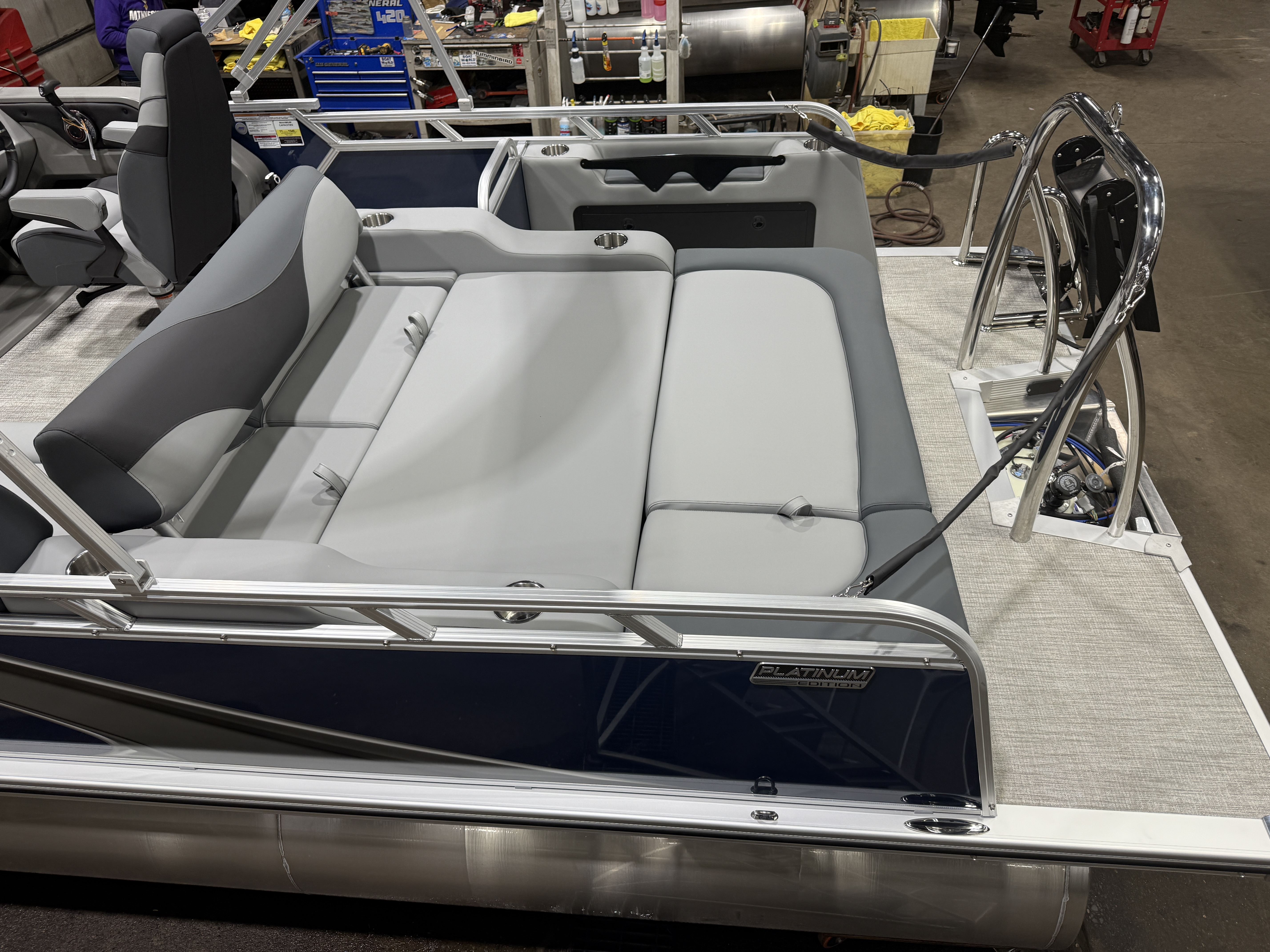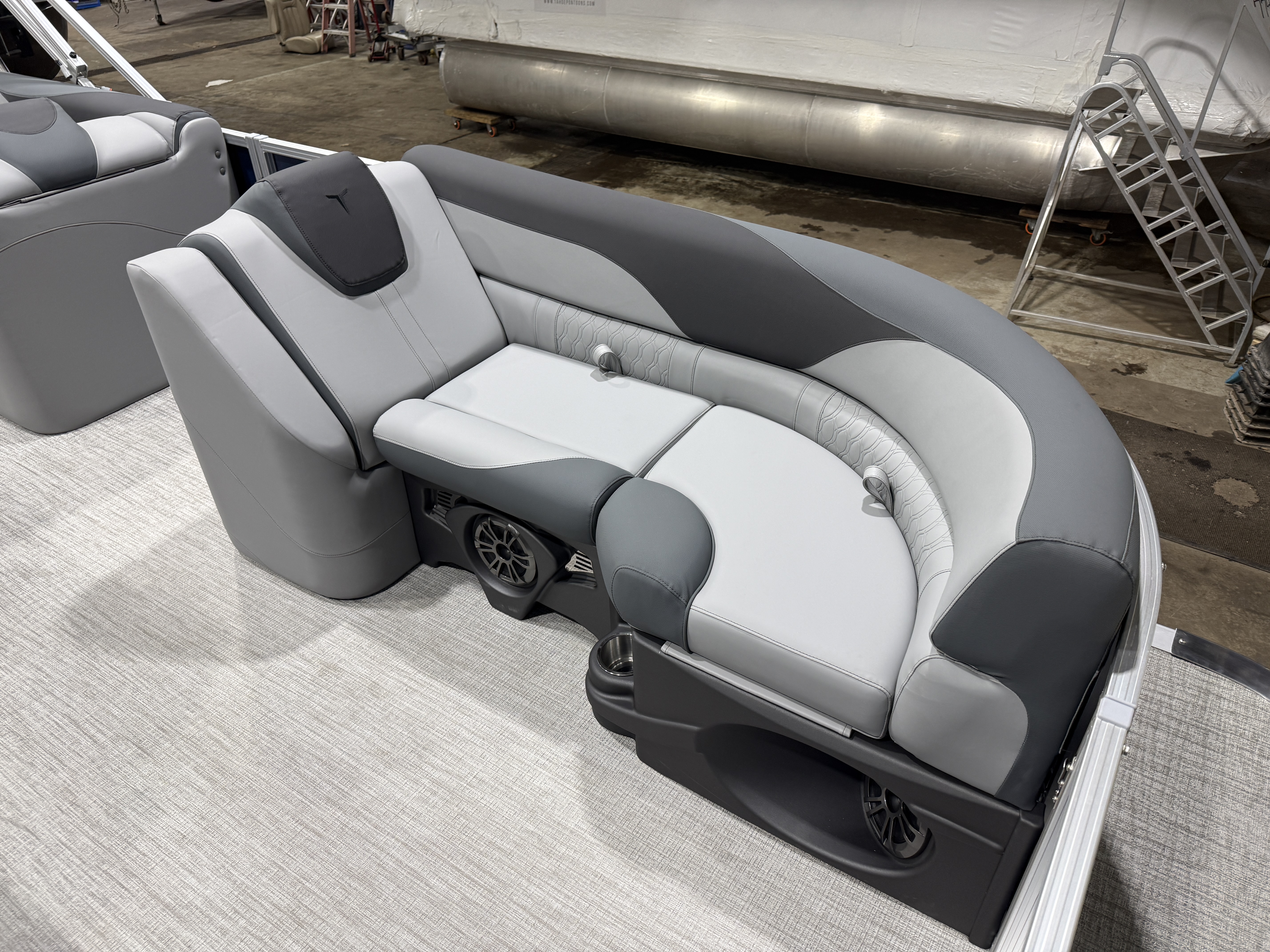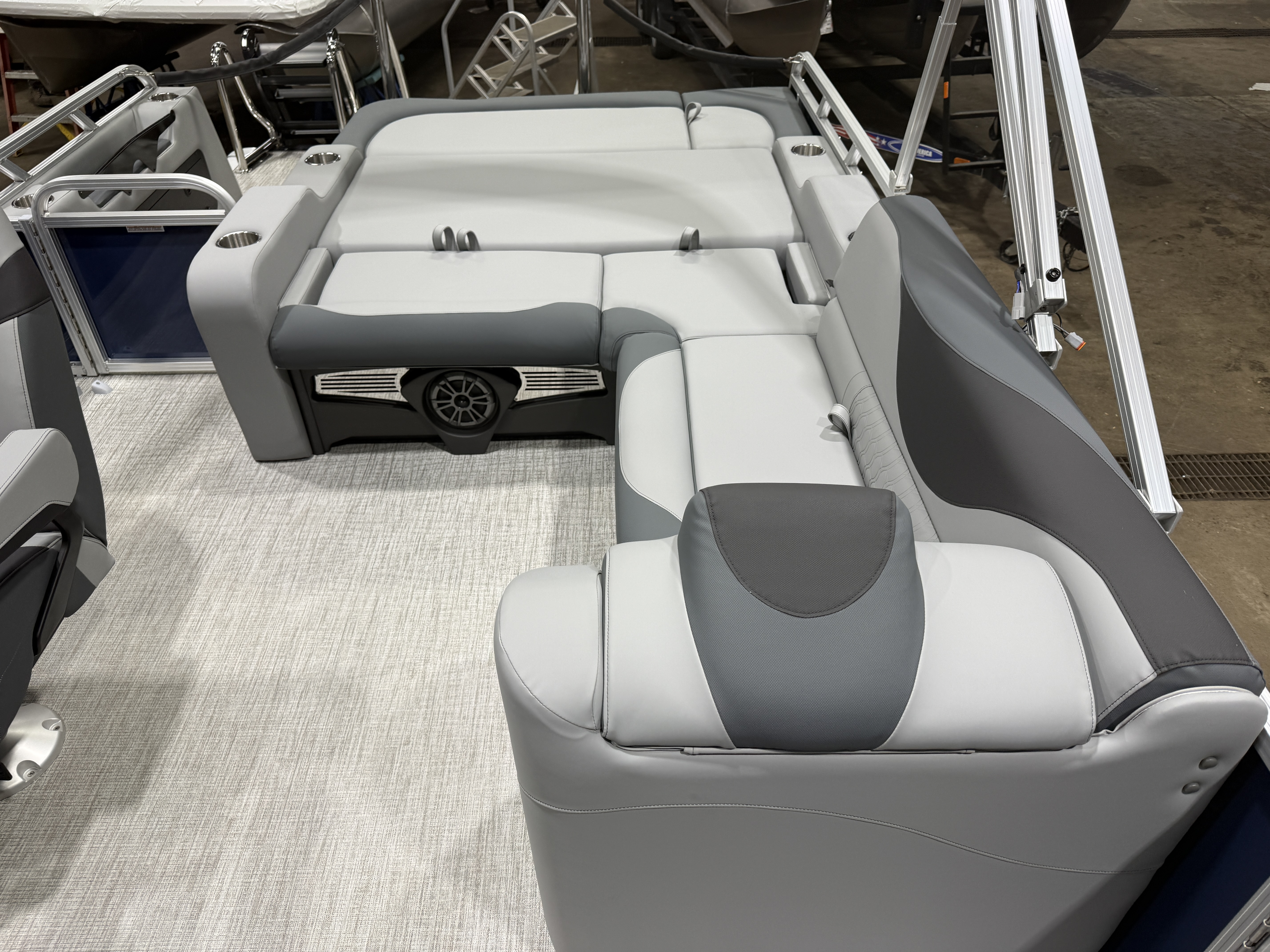 2026 Tahoe LTZ 2385 Versatile Rear Bench (VRB) Swingback Pontoon & Honda 4-Stroke EFI. This 23' Pontoon Has Front Chaise Lounge Seating With Storage, Wrap Around Seating With Storage, Admiral Reclining Captain's Chair, Seating That Turns Into A Bed Or Rear Facing Bench Seating, Rear Swim Deck, Riptide Vinyl Flooring, LTZ Platinum Package (Ultrafine Touch Vinyl Upgrade, Garmin 52CV GPS Depth Finder, Pull-Up Cleats, LED Smoked Chrome Docking Lights, Vent Covers For Cladding, Platinum Edition Special Badging) Table, Bluetooth Radio w/6 Speakers, Multiple Cup Holders, 25" Tubes, 10' Bimini Top, Gated Aft, Graphite Interior Package w/Koolfab Black & Charcoal Accent, Charcoal Seat Cladding, Built In 25 Gallon Gas Tank, LED NAV Lights, Ski Tow Bar w/Chains, Smoked Chrome Logos, Mooring Cover, Bow & Aft USB Charging Ports, Lillipad Easy Step Ladder, Side Storage Behind Captain's Seat, On/Off Battery Switch, Front Deck. Rated For 11 People.