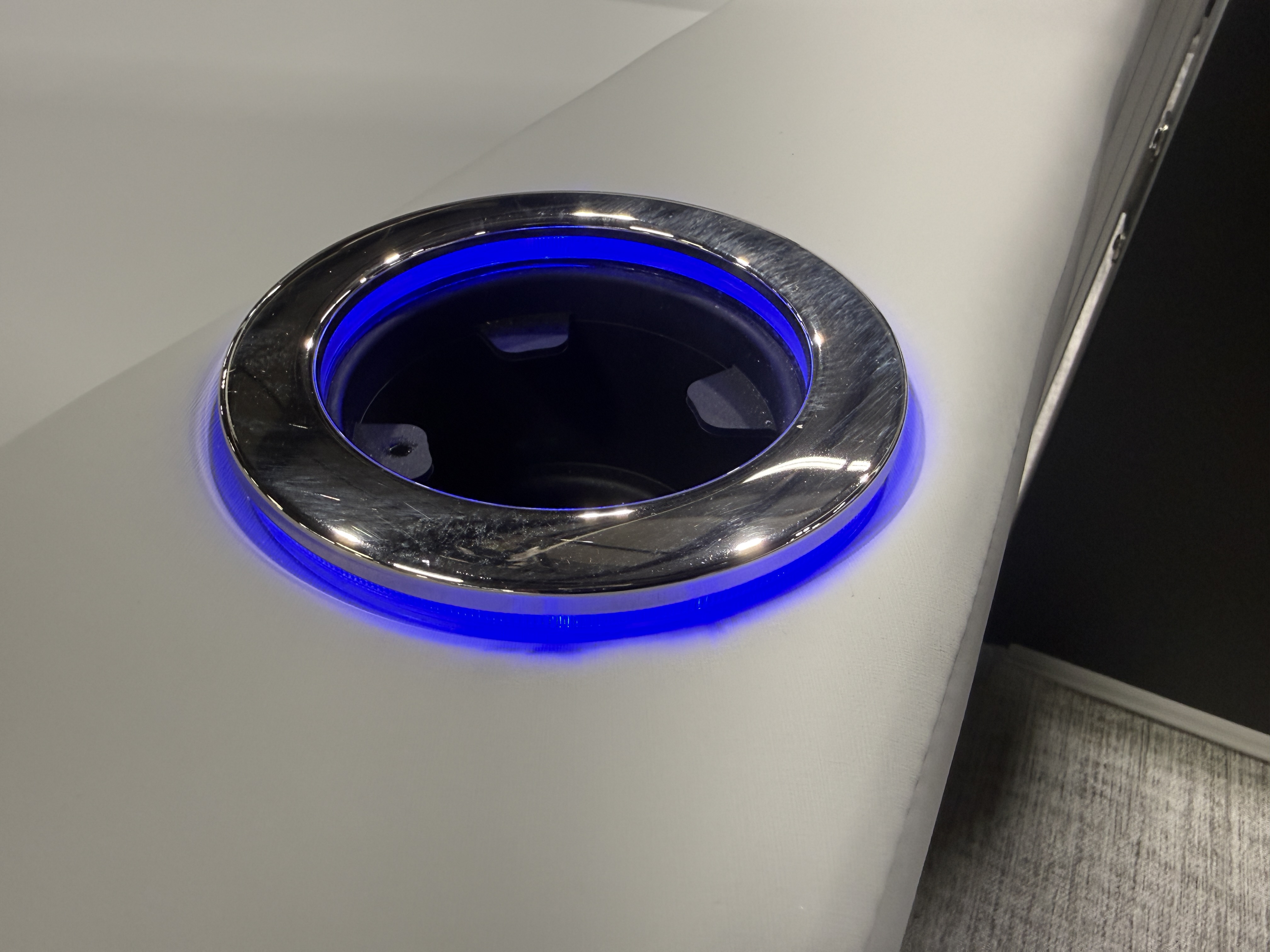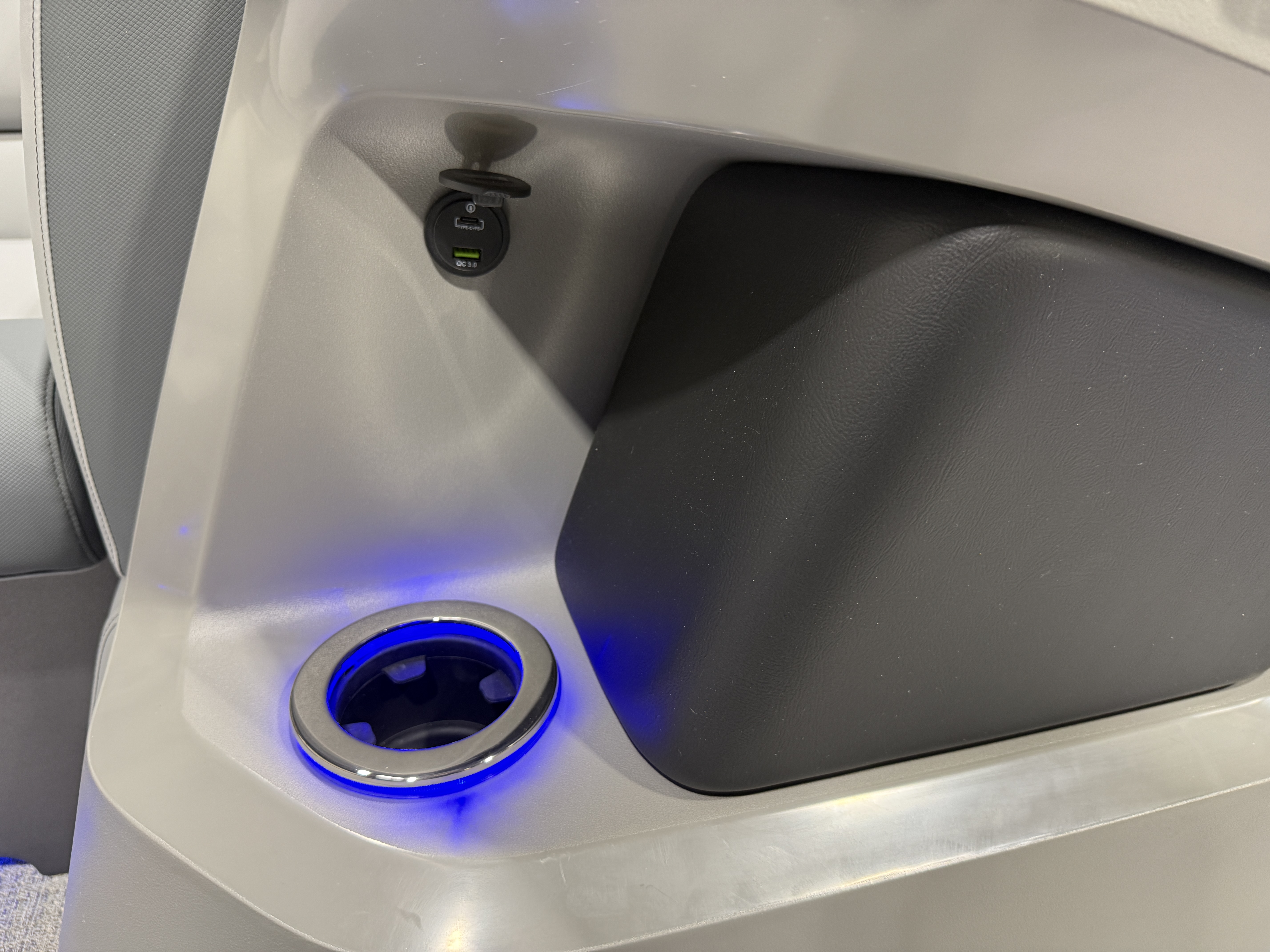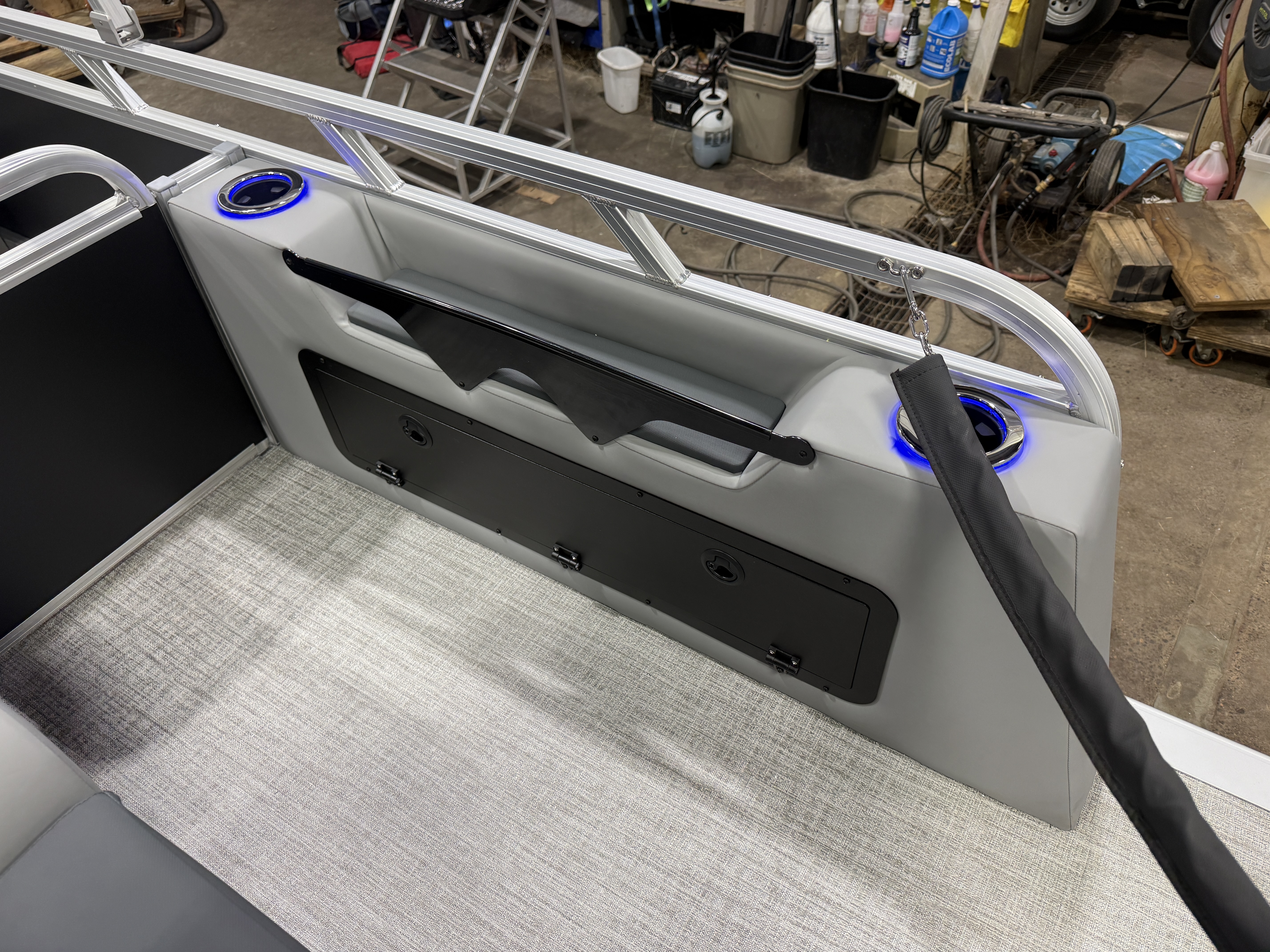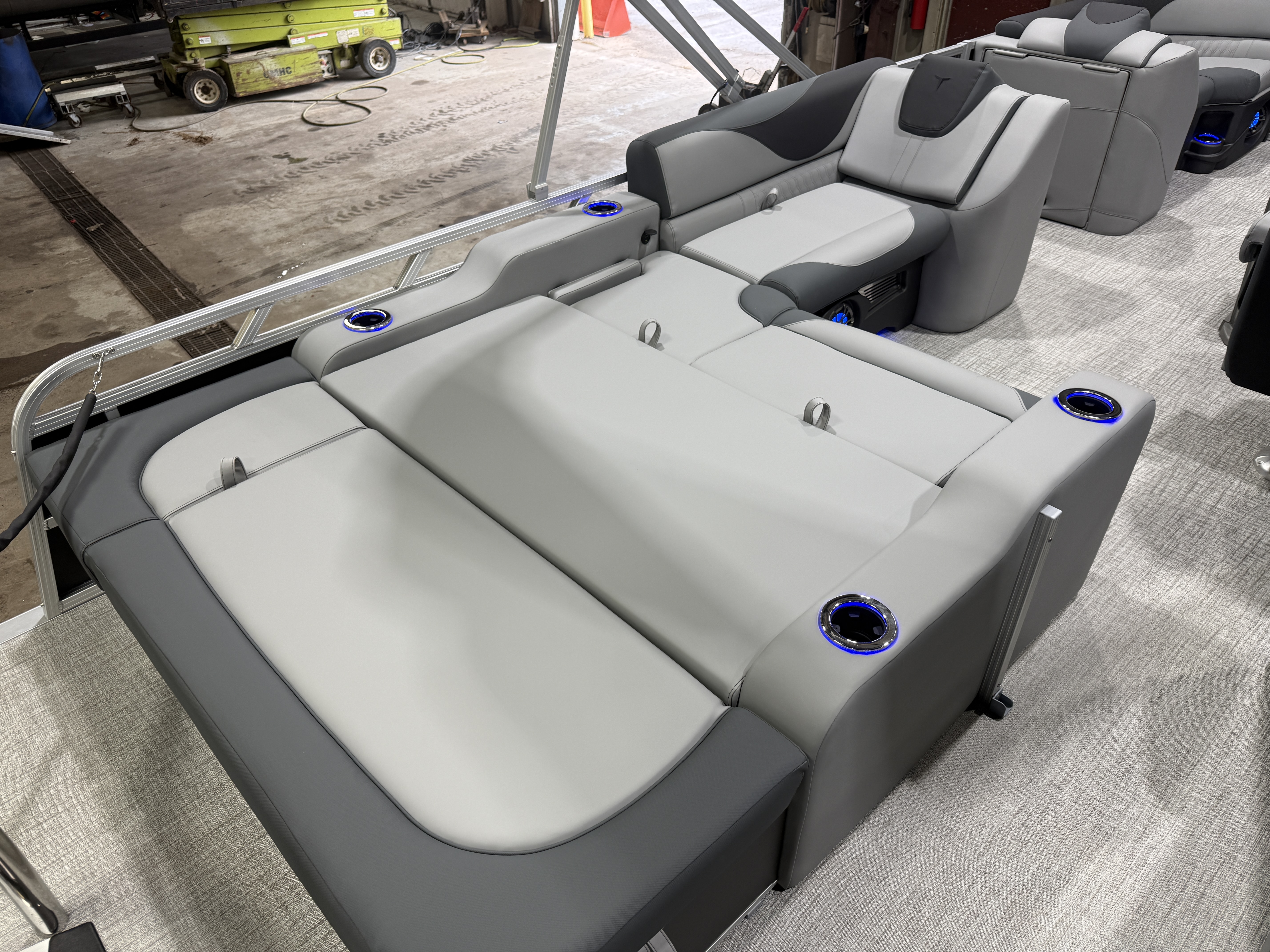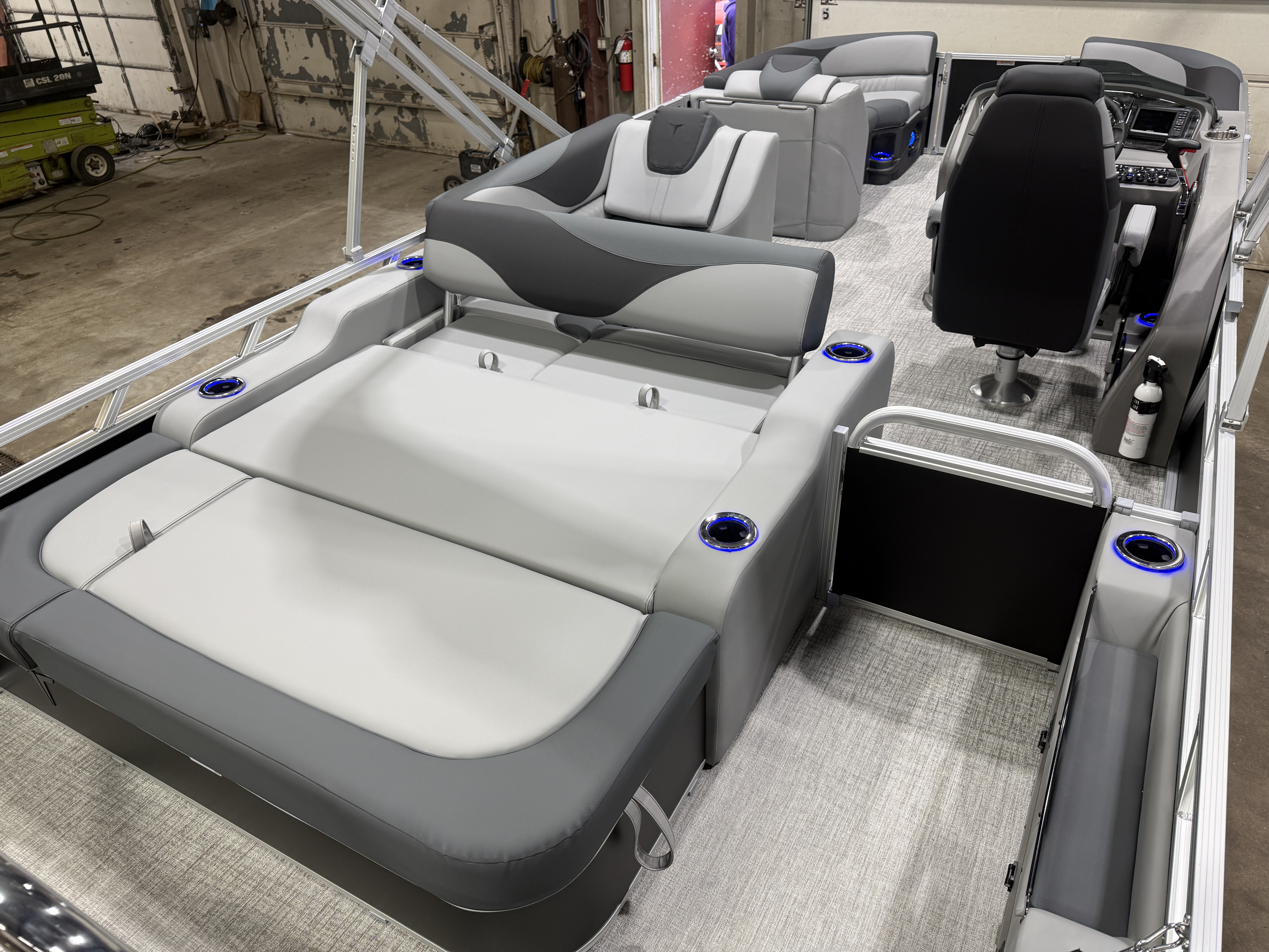 2026 Tahoe LTZ 2385 Versatile Rear Bench (VRB) Swingback Tritoon Pontoon Powered By Honda. This Matte Black Walls 23' Tri-Toon Has Front Lounge Seating With Storage, Admiral Reclining Captain's Chair, Versatile Rear Bench Seating With Storage, Gated Aft, Riptide Shadow Vinyl Flooring, Graphite Interior Package w/Koolfab Black & Koolfab Charcoal Accent, Platinum Package (Upgraded Ultra-Fine Vinyl Seats, LED Chrome Smoked Docklights, Polished Corner Caps, Garmin 52CV GPS Depth Finder, Pull Up Cleats, Vent Covers For Cladding, Platinum Edition Special Badging), Gauge Package w/Hour Meter, 10' Bimini Top, New Battery, Side Storage Behind Captain's Chair, Built-In 38 Gallon Gas Tank, Hydraulic Tilt Steering, Lifting Strakes, Underneath Aluminum Sheeting, Upgraded Greywood Rectangle Table, Blue Ice Package (Lighted Cup Holders, Speakers & Mood Lighting), Ski Tow Bar, Aft Chains, Multiple Cup Holders, Helm Side Storage, Mooring Cover, Fusion Bluetooth Radio w/6 Speakers & Amp, Lillipad Easy Step Ladder, Battery On/Off Switch, Tilt Steering, Bow & Aft USB Charging Ports, Nice Front And Rear Deck, New Battery, Charcoal Seat Cladding. Rated For 12 People.