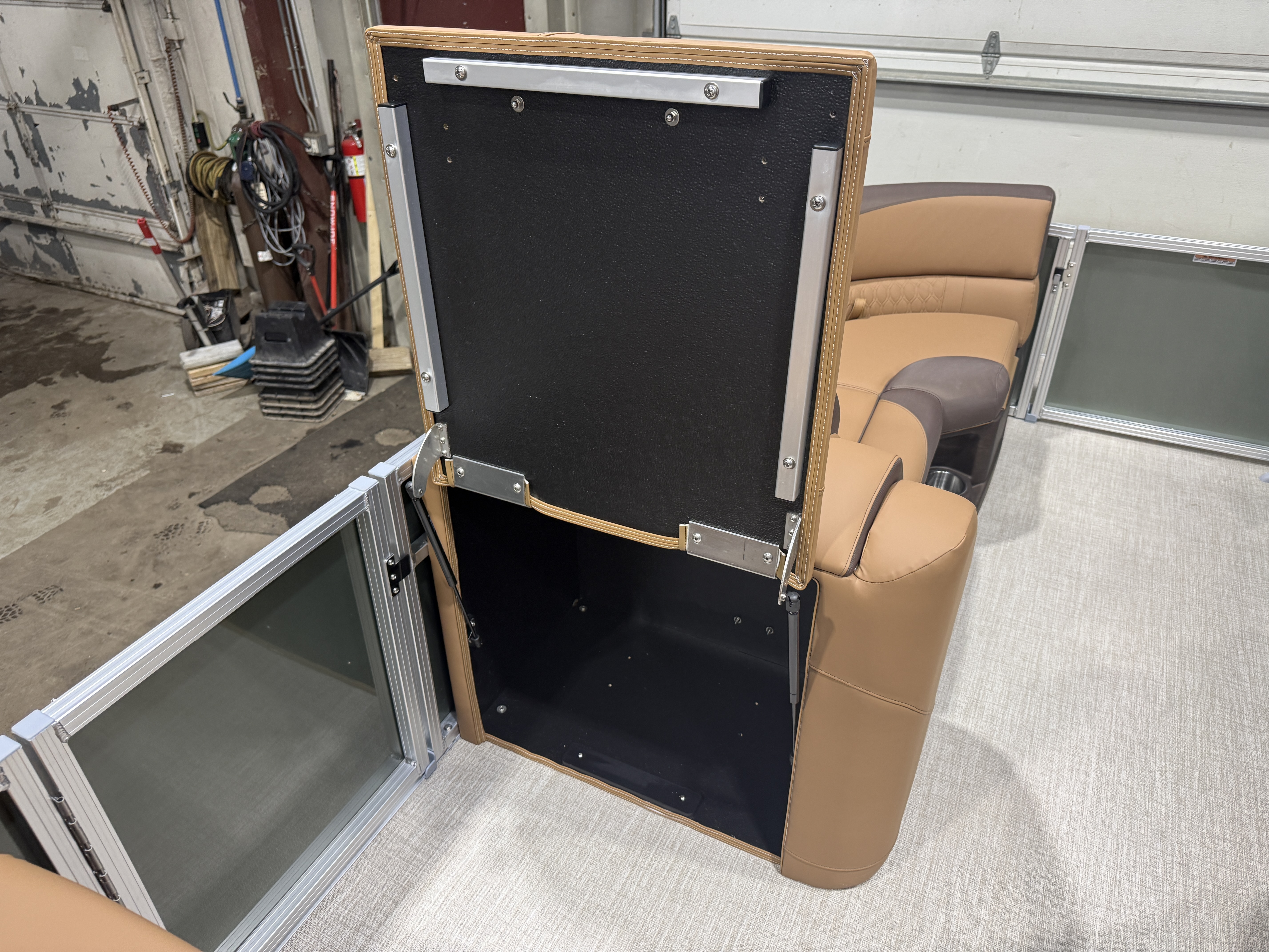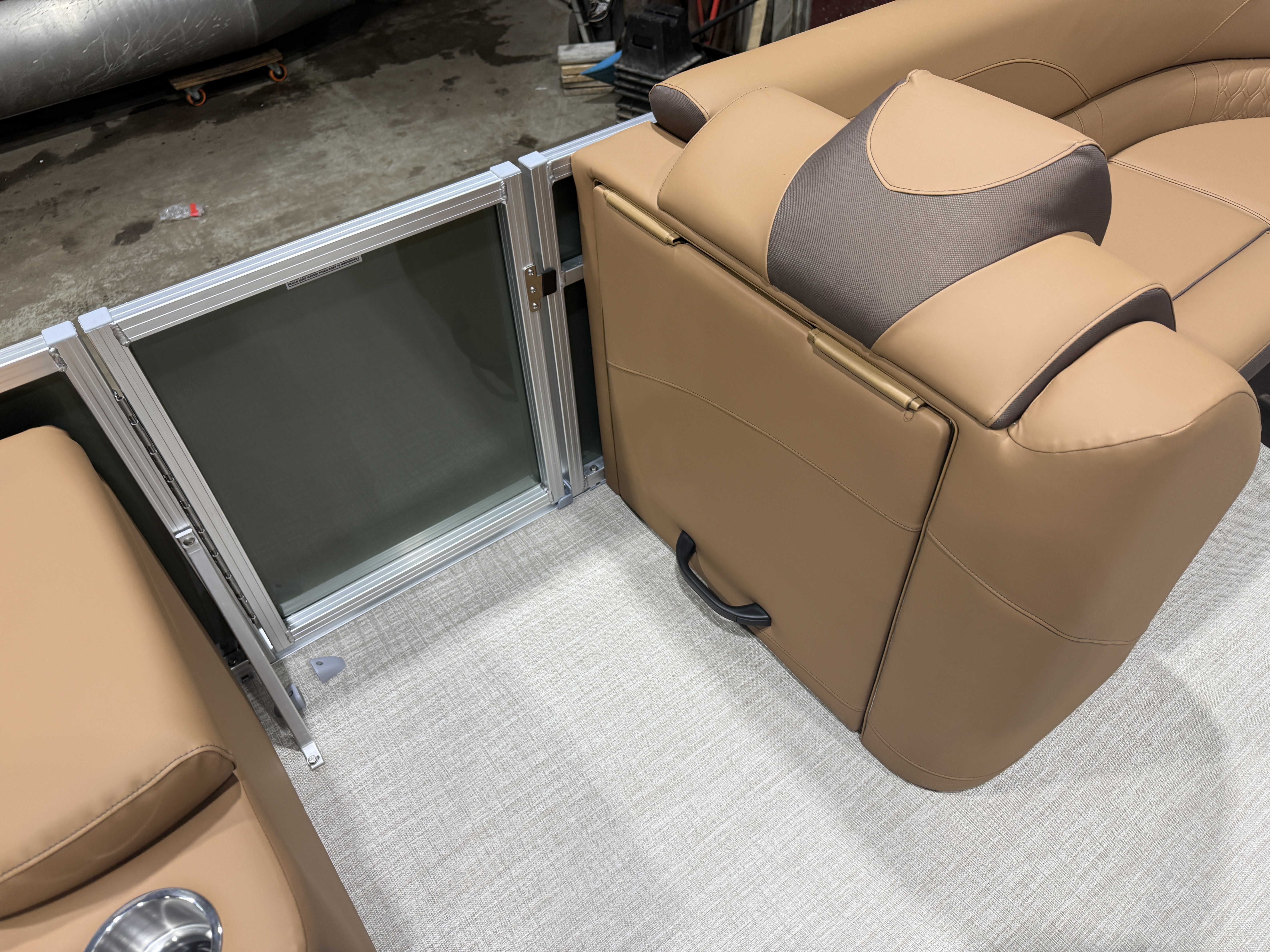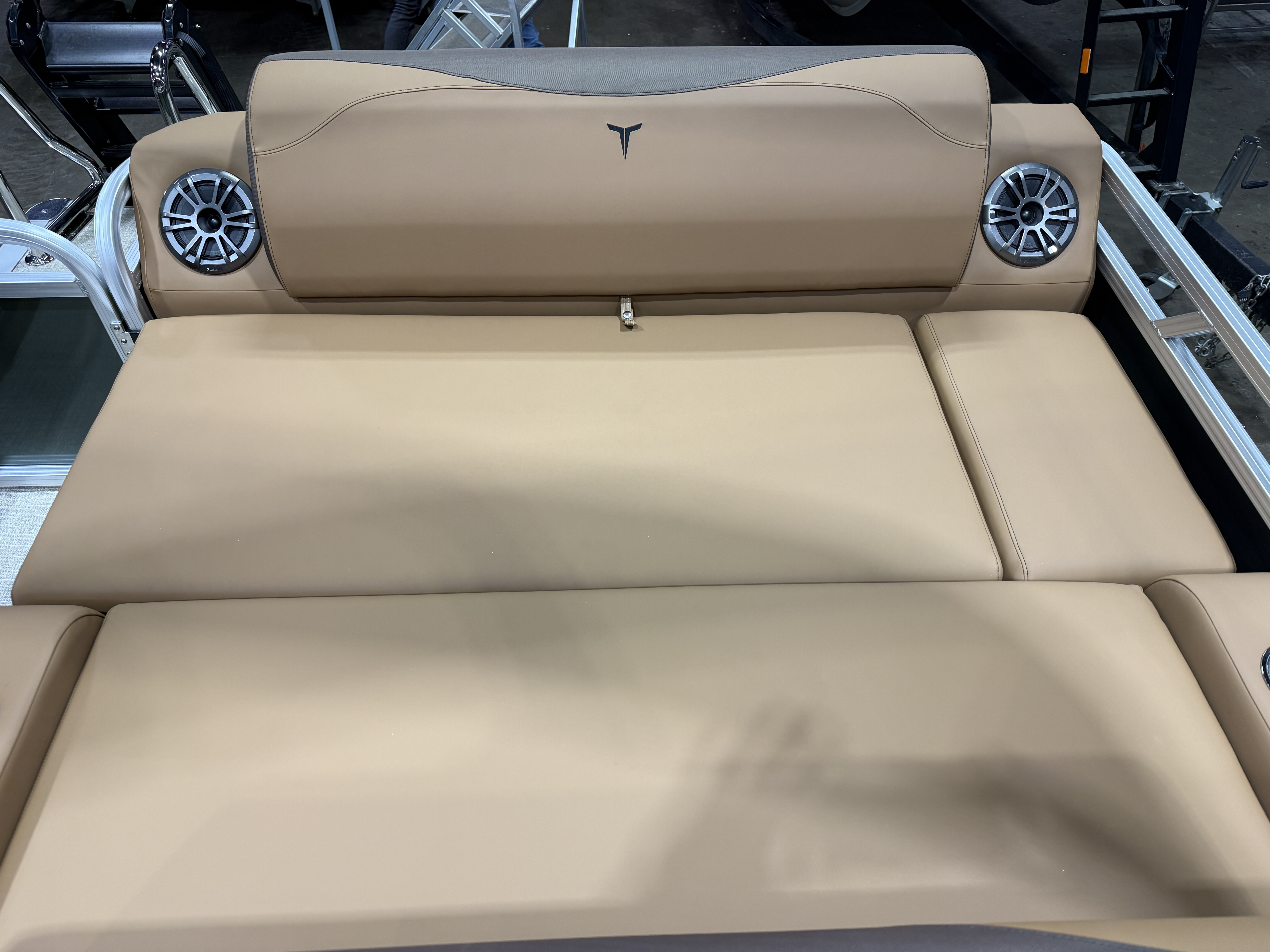 2026 Tahoe LTZ 2385 Versatile Rear Lounger (VRL) Pontoon Powered By Honda. This Pontoon Has Front Lounge Seating With Storage, Admiral Reclining Captain's Chair, Versatile Rear Lounge Seating With Storage & Built In Speakers, Gated Aft, Riptide Vinyl Flooring, Cognac Interior Package, LTZ Platinum Package (LED Chrome Smoked Docklights, Polished Corner Caps, Garmin 52CV GPS Depth Finder, Pull Up Cleats, Vent Covers For Cladding, Platinum Edition Badging), Gauge Package w/Hour Meter, Bimini Top, New Battery, Side Storage Behind Captain's Chair, Built-In Gas Tank, Multiple Cup Holders, Helm Side Storage, Mooring Cover, Fusion Bluetooth Radio w/6 Speakers & Amp, Lillipad Easy Step Ladder, Tilt Steering, Bow & Aft USB Charging Ports, Front And Rear Deck, New Battery, On/Off Battery Switch, Brushed Bronze Seat Cladding. Rated For 11 People.