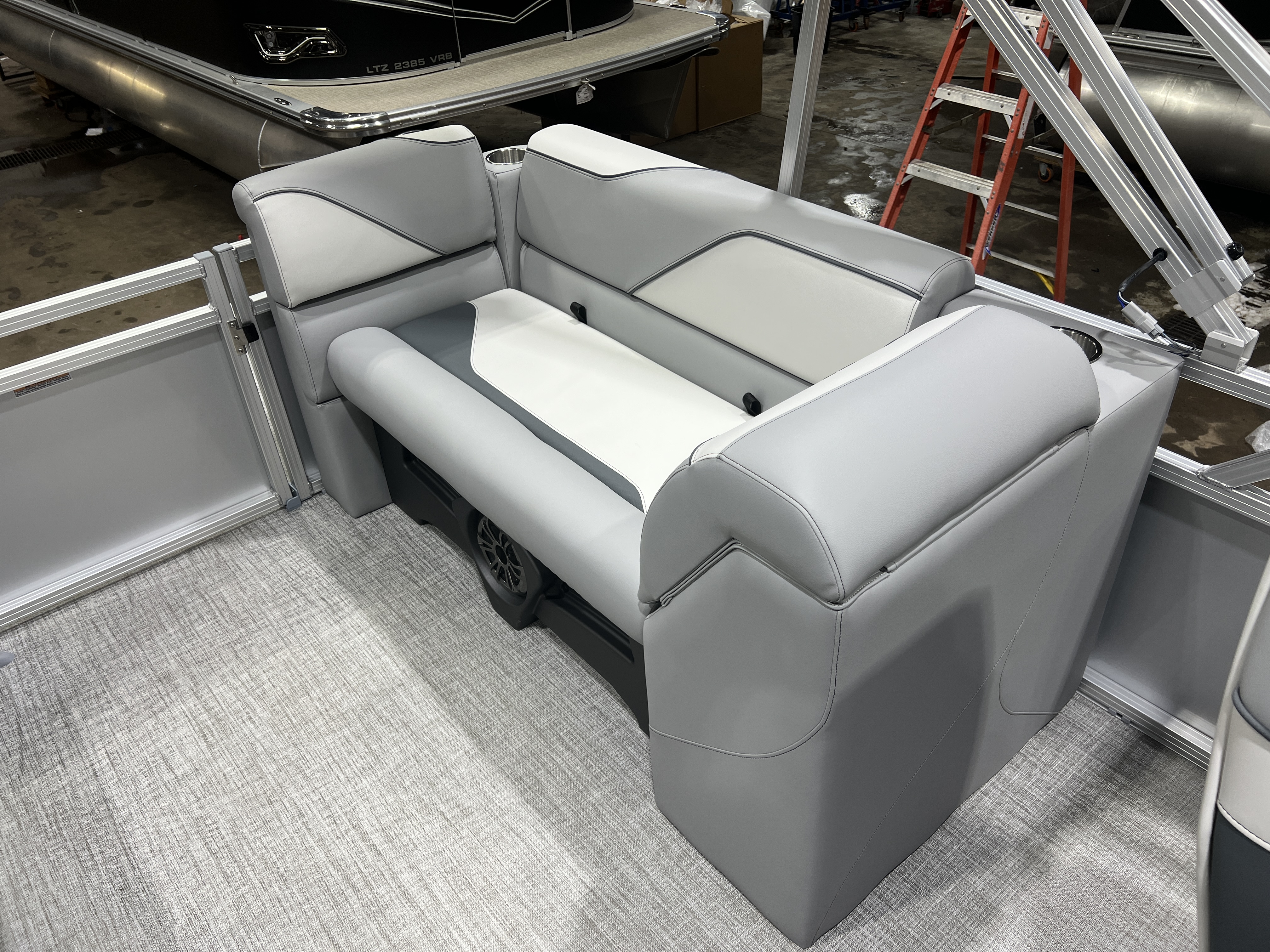QL Pontoon Has Chaise Lounge Seating Up Front With Storage, Aft Chaise Lounge