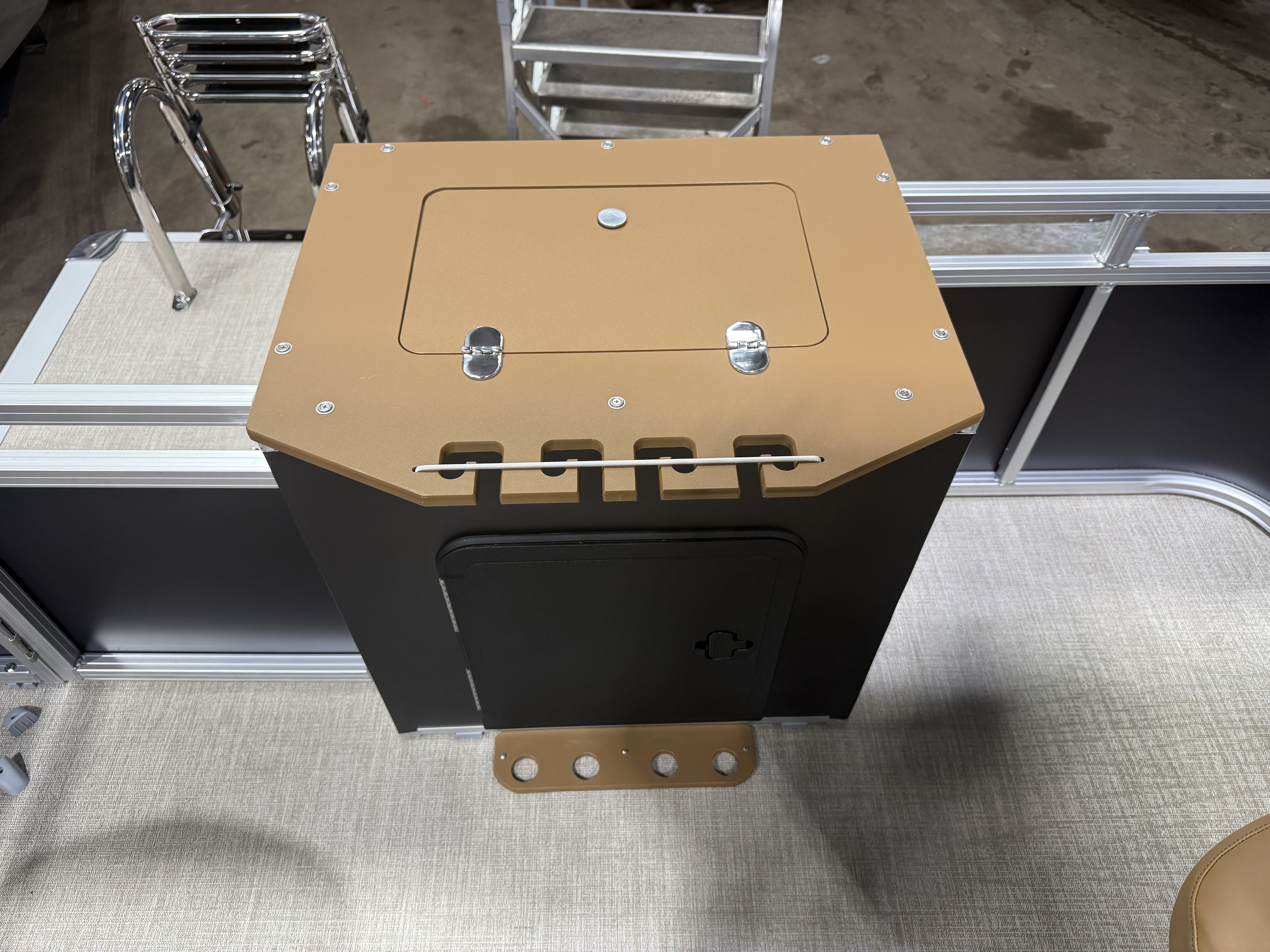 Stainless Steel Ladder, Built-In 25 Gallon Gas Tank, Mooring Cover, Helm