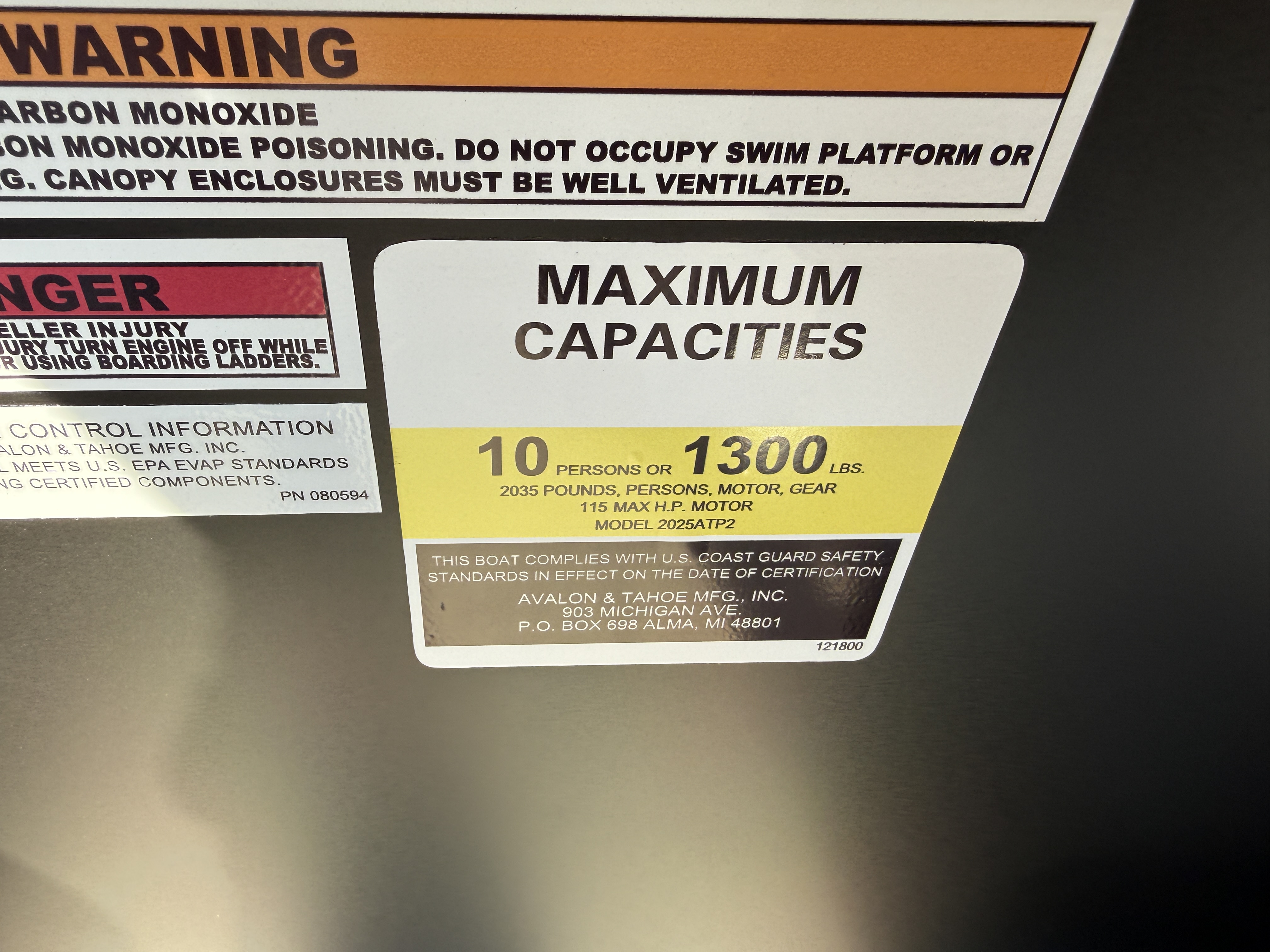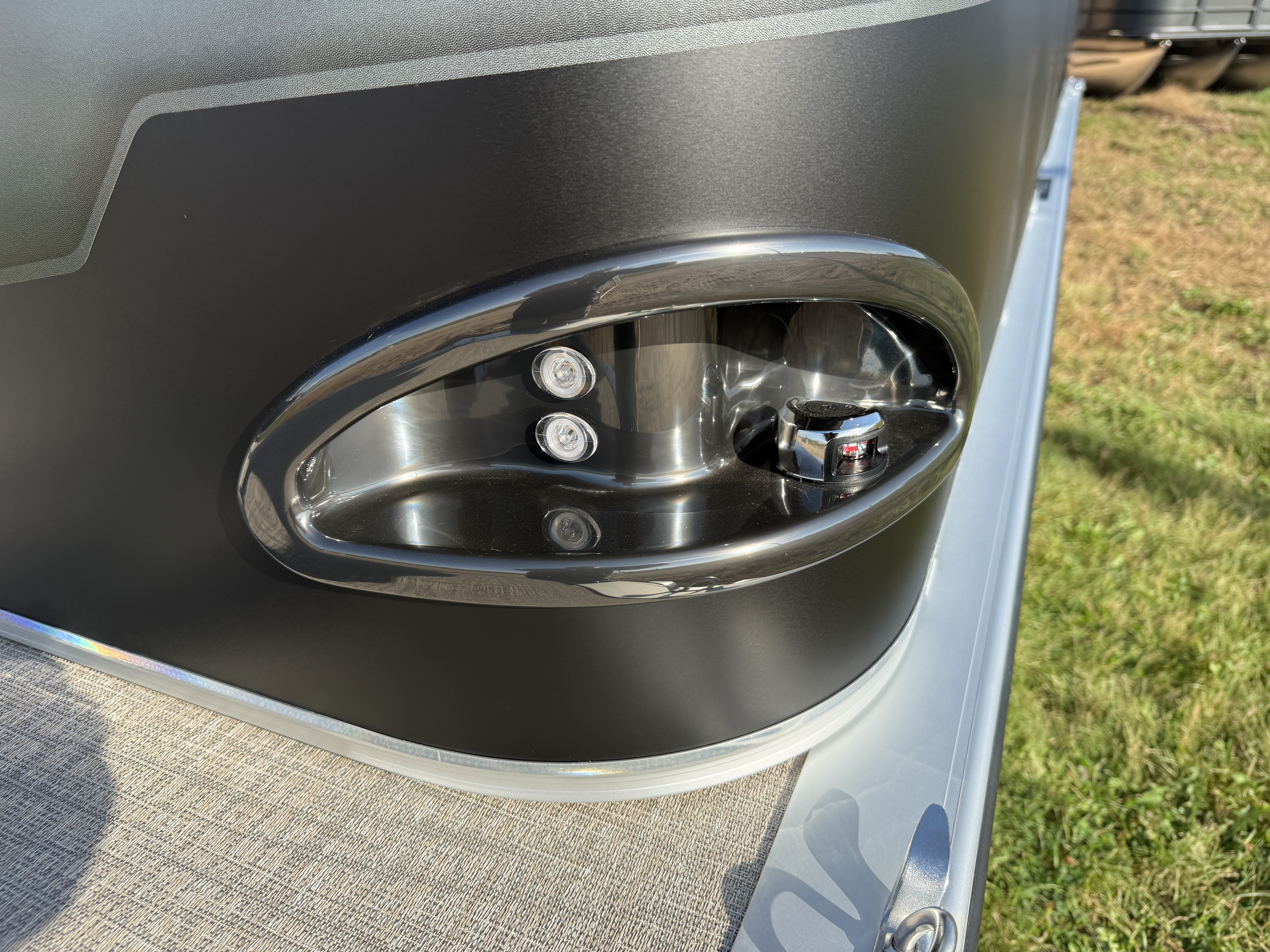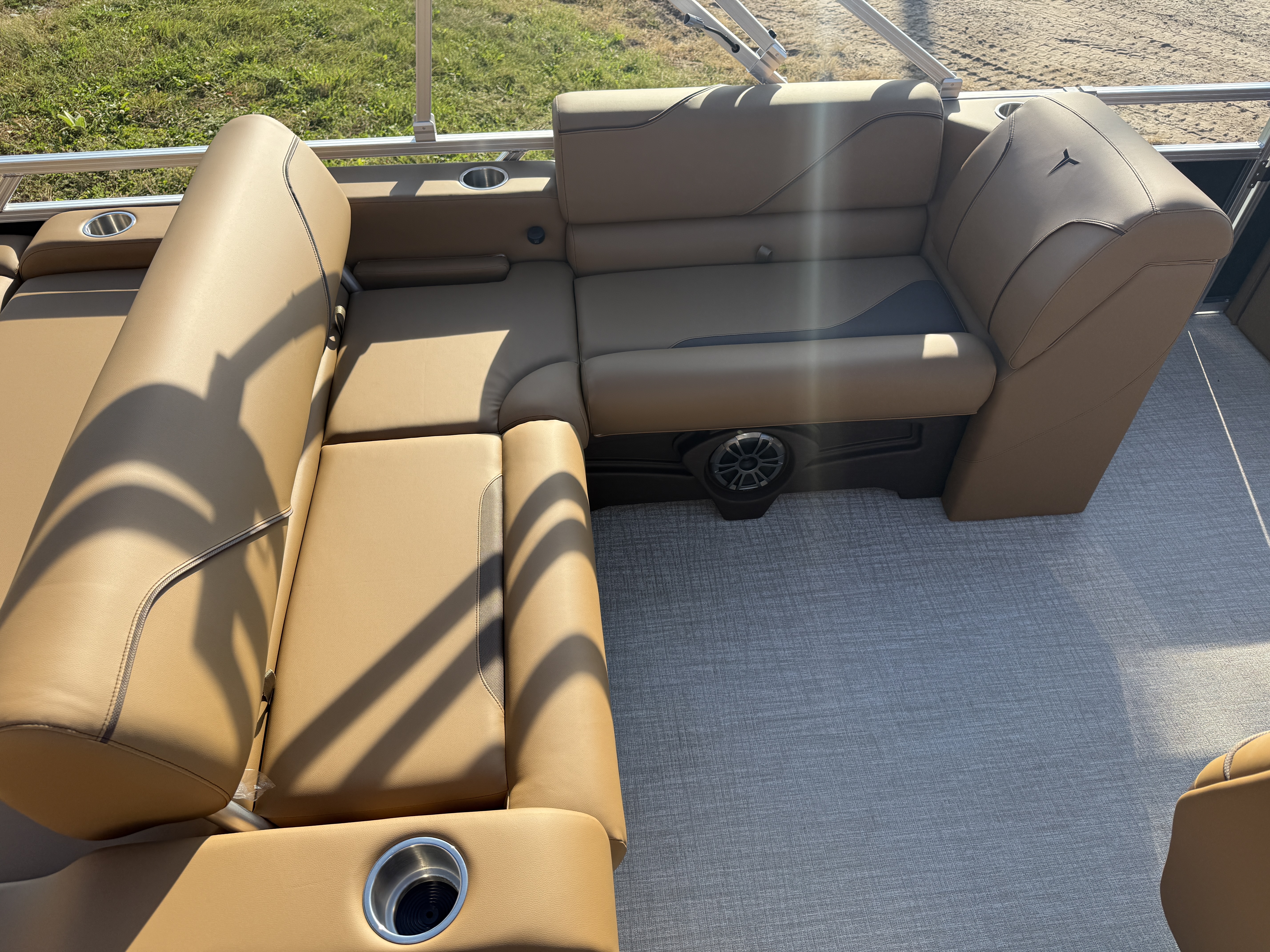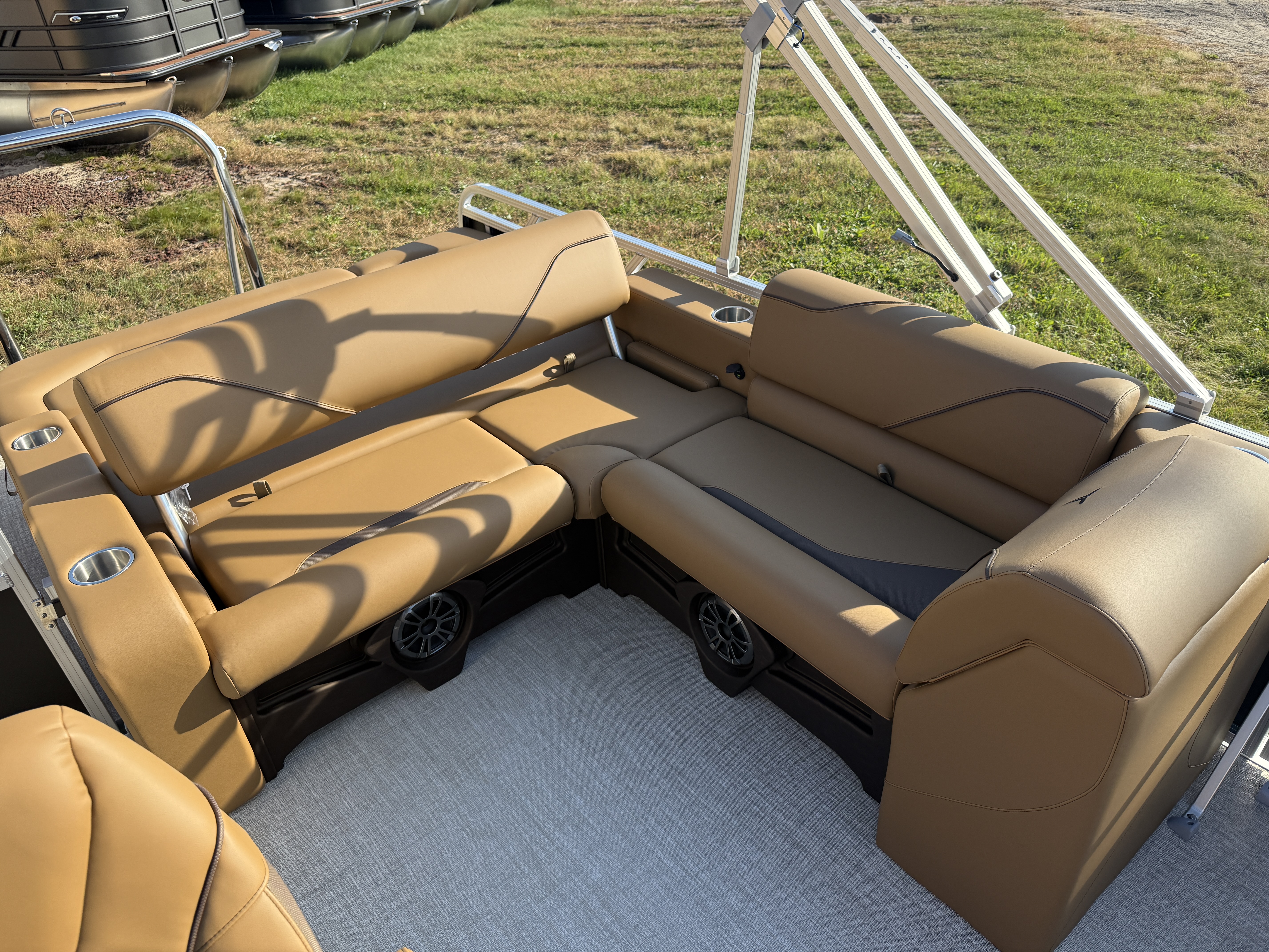 2026 Tahoe Sport 2180 Versatile Rear Bench (VRB) Swingback Pontoon & Honda 4-Stroke EFI. This 21' Matte Black Walls Platinum Edition Pontoon Has Front Chaise Lounge Seating With Storage, Upgraded Commander Reclining Captain's Chair, Wrap Around Chaise Lounge Seating With Storage, Seating That Turns Into A Bed Or Rear Facing Bench Seating, Sport Platinum Edition (Garmin 52CV GPS Depth Finder, Polished Corner Caps, 90 Degree LED Docking Lights, Platinum Edition Special Badging), Rear Swim Deck, Riptide Vinyl Flooring, Greywood Rectangle Table, Mooring Cover, Built-In 25 Gallon Gas Tank, Fusion Bluetooth Radio, Multiple Cup Holders, 25" Tubes, 10' Bimini Top, Gated Aft, Cognac Interior Package, Bow & Aft USB Charging Ports, Ladder, Battery On/Off Switch, Tilt Steering, Smoked Chrome Logos, Built-In Trash Can, Side Storage Behind Captain's Seat, Front Deck. Rated For 10 People