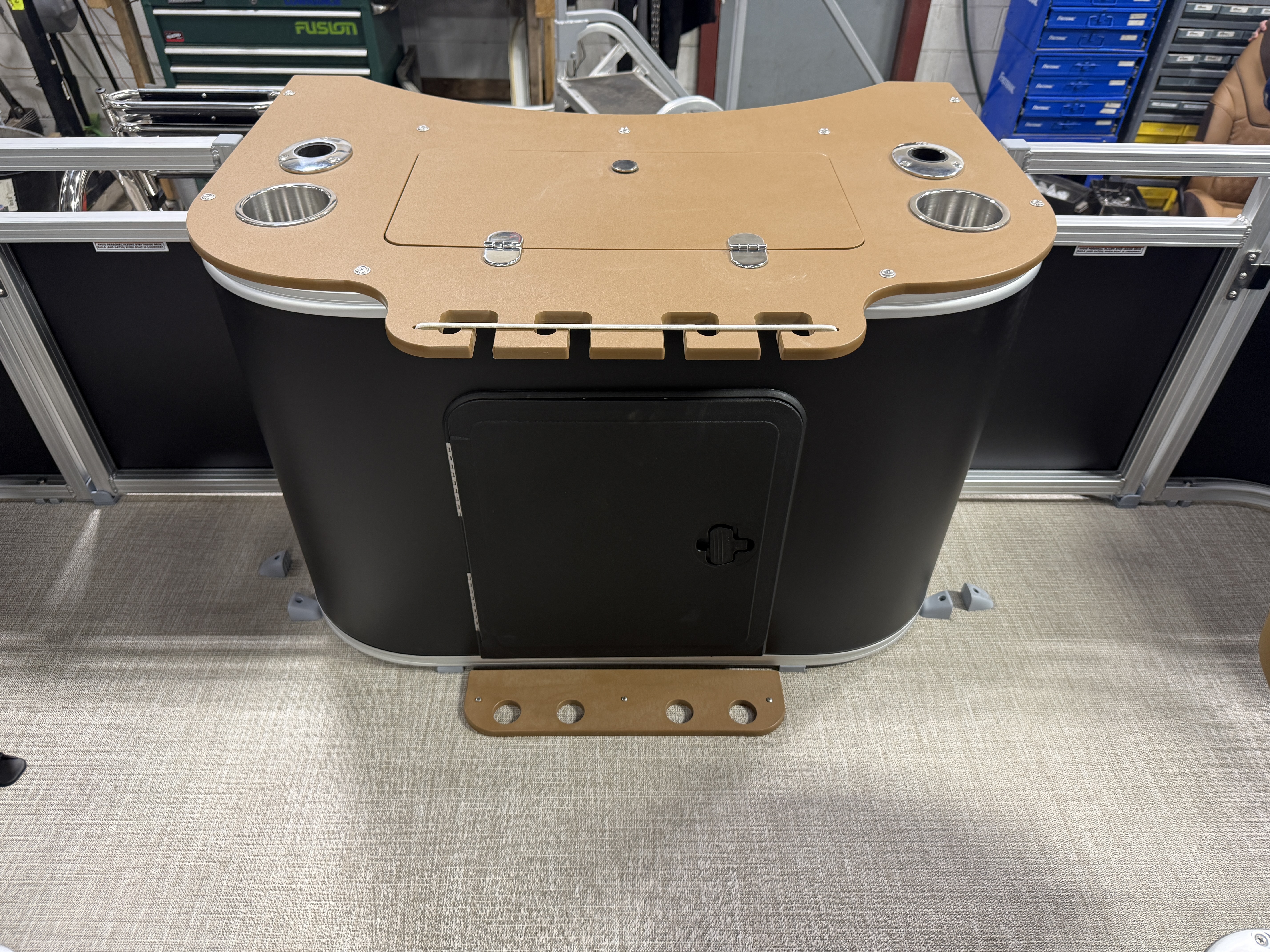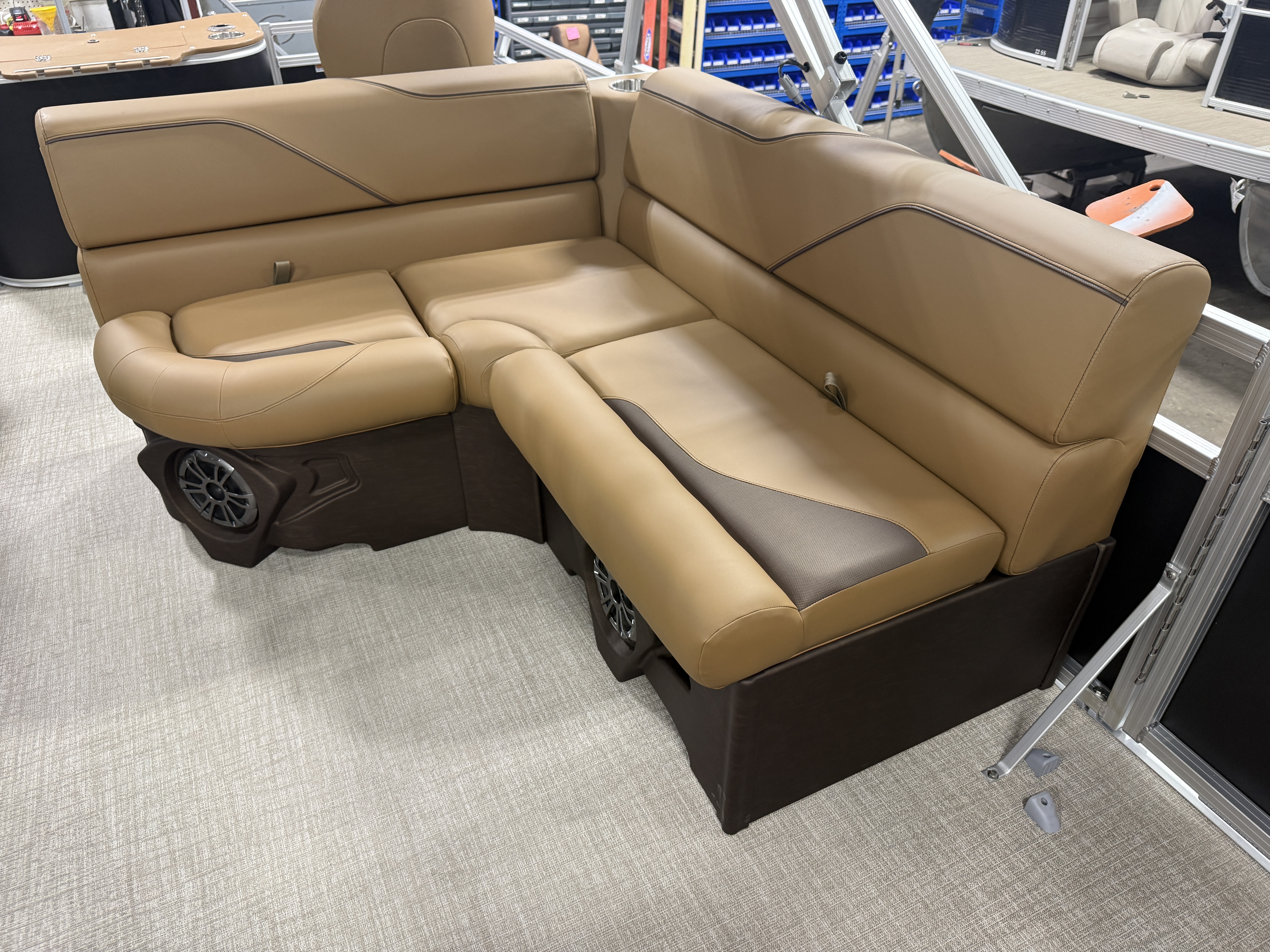 Black Walls Pontoon Has Front Lounge Seating With Storage, Wrap Around Seating