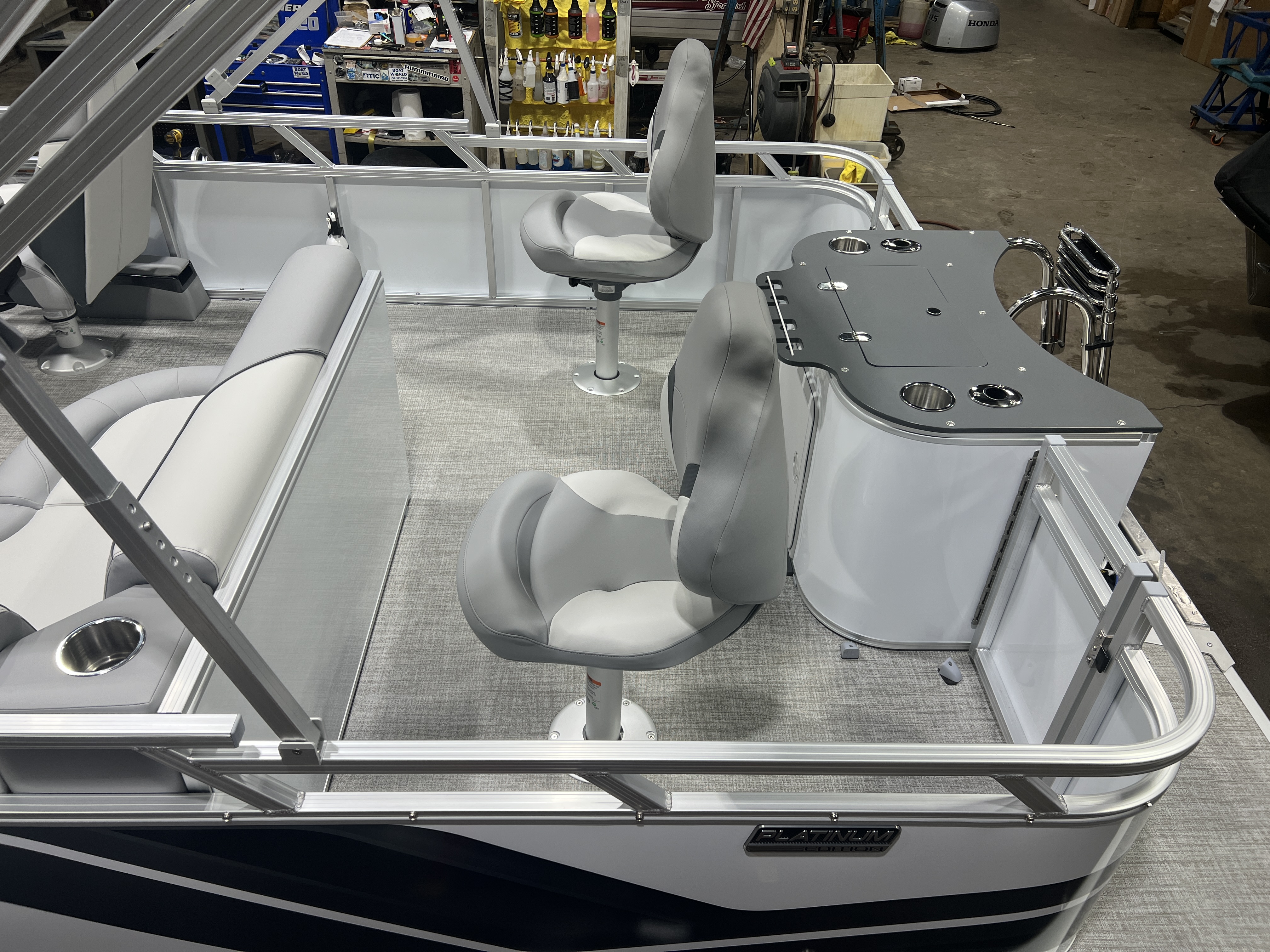 2026 Tahoe Sport 2185 Rear Fish Pontoon & Honda 4-Stroke EFI. This 21' Pontoon Has Front Lounge Seating With Storage, Wrap Around Seating With Storage, 2 Rear Fishing Seats, 4 Gates, Rear Live Well, Rod Holders, Multiple Cup Holders, Table, Sport Platinum Edition (Upgraded Mid Back Reclining Commander's Helm Seat, Garmin 52CV GPS Depth Finder, LED Smoked Chrome Docklights, Polished Corner Caps, Platinum Edition Special Badging), Bimini Top, Graphite Interior Package, LED Nav Lights, 25' Tubes, Riptide Vinyl Floor, Bluetooth Fusion Radio w/4 Speakers, Greywood Rectangle Table, Gauge Package w/Hour Meter, Battery On/Off Switch, Rear Starboard Stainless Steel Ladder, Built-In 25 Gallon Gas Tank, Mooring Cover, Helm Storage, New Battery And Prop, Front And Rear Deck, Tilt Steering. Rated For 10 People. Great Space In This Fish/Cruise Pontoon.