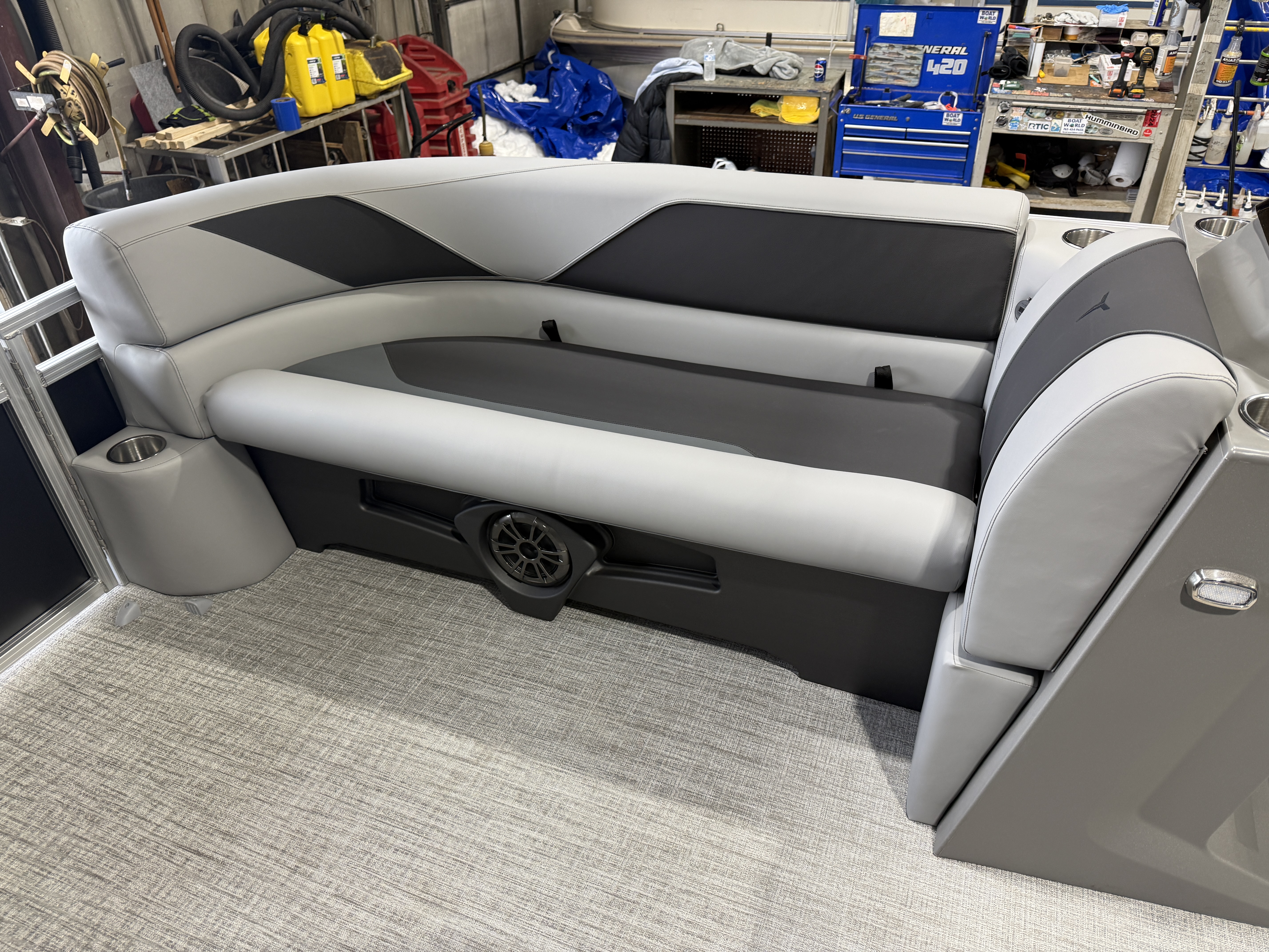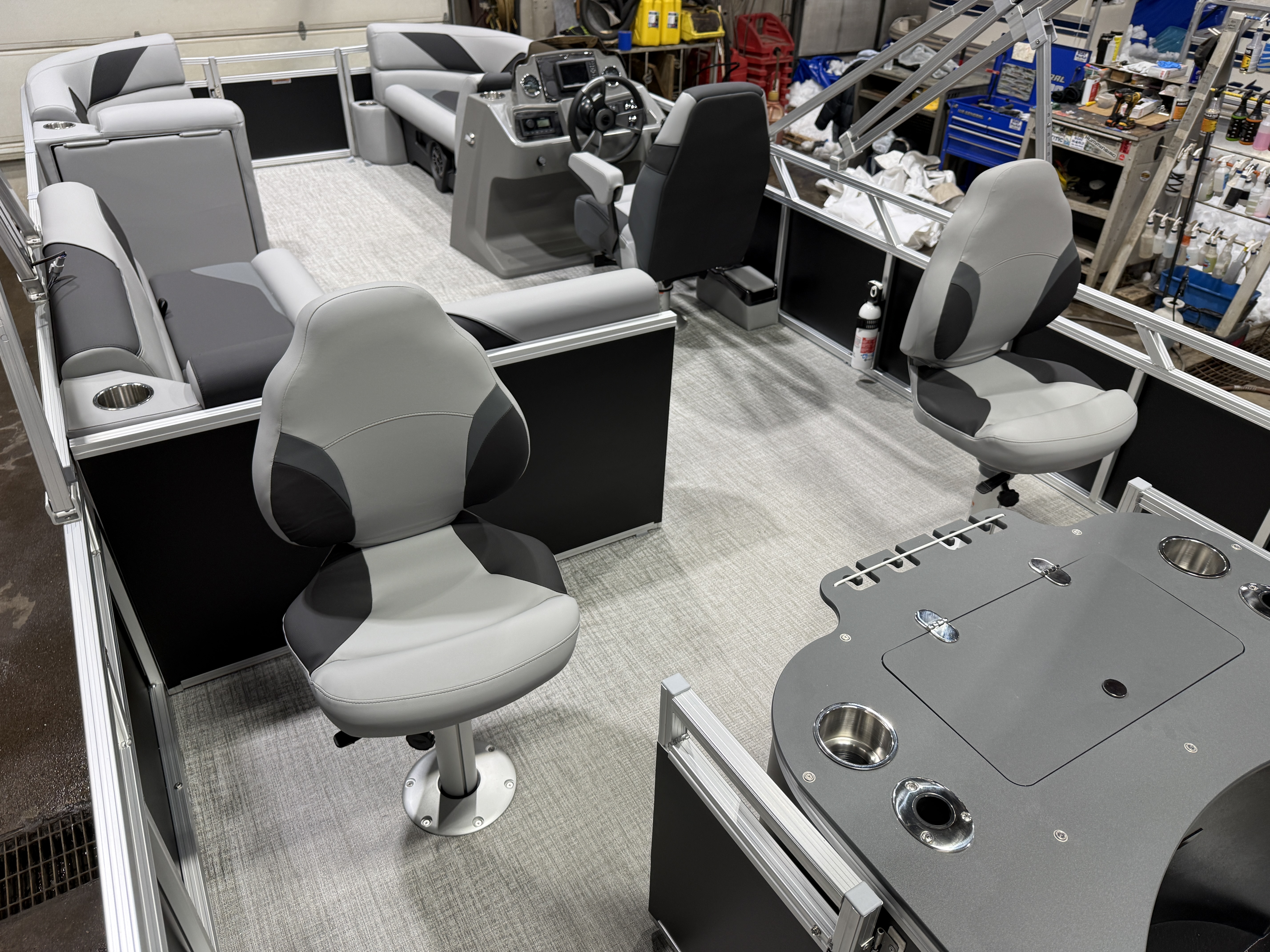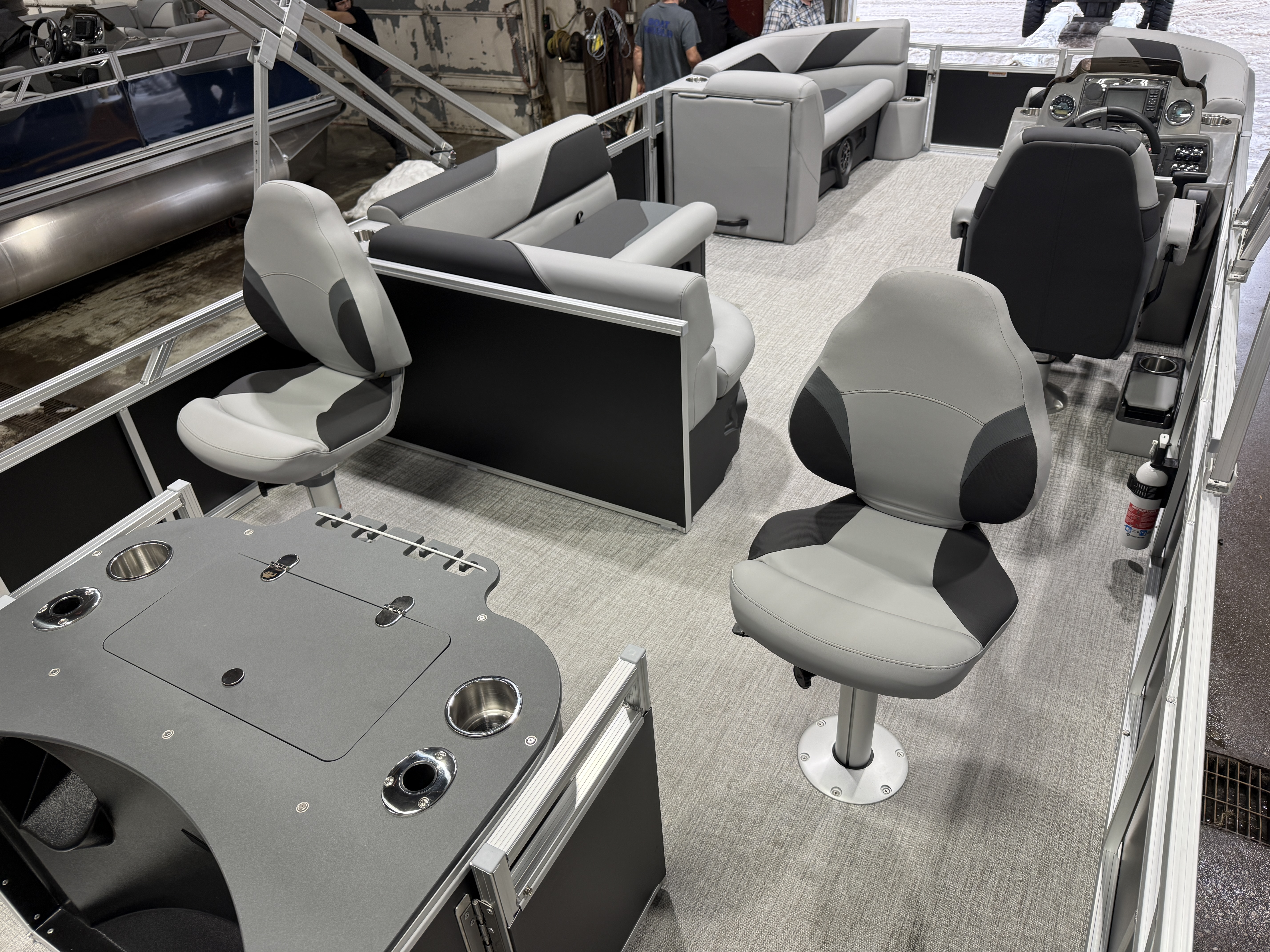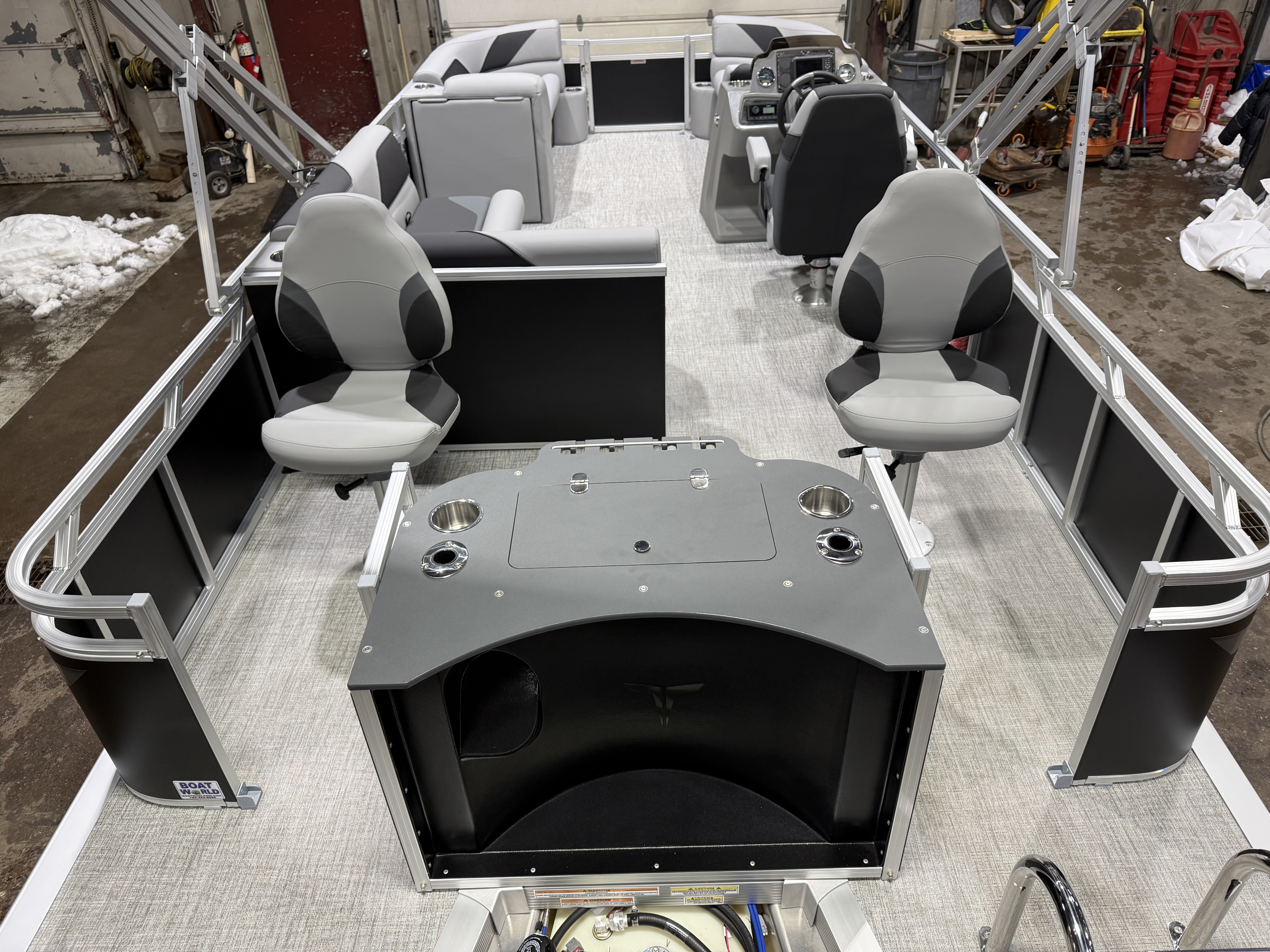 Black Walls Pontoon Has Front Lounge Seating With Storage, Wrap Around Seating