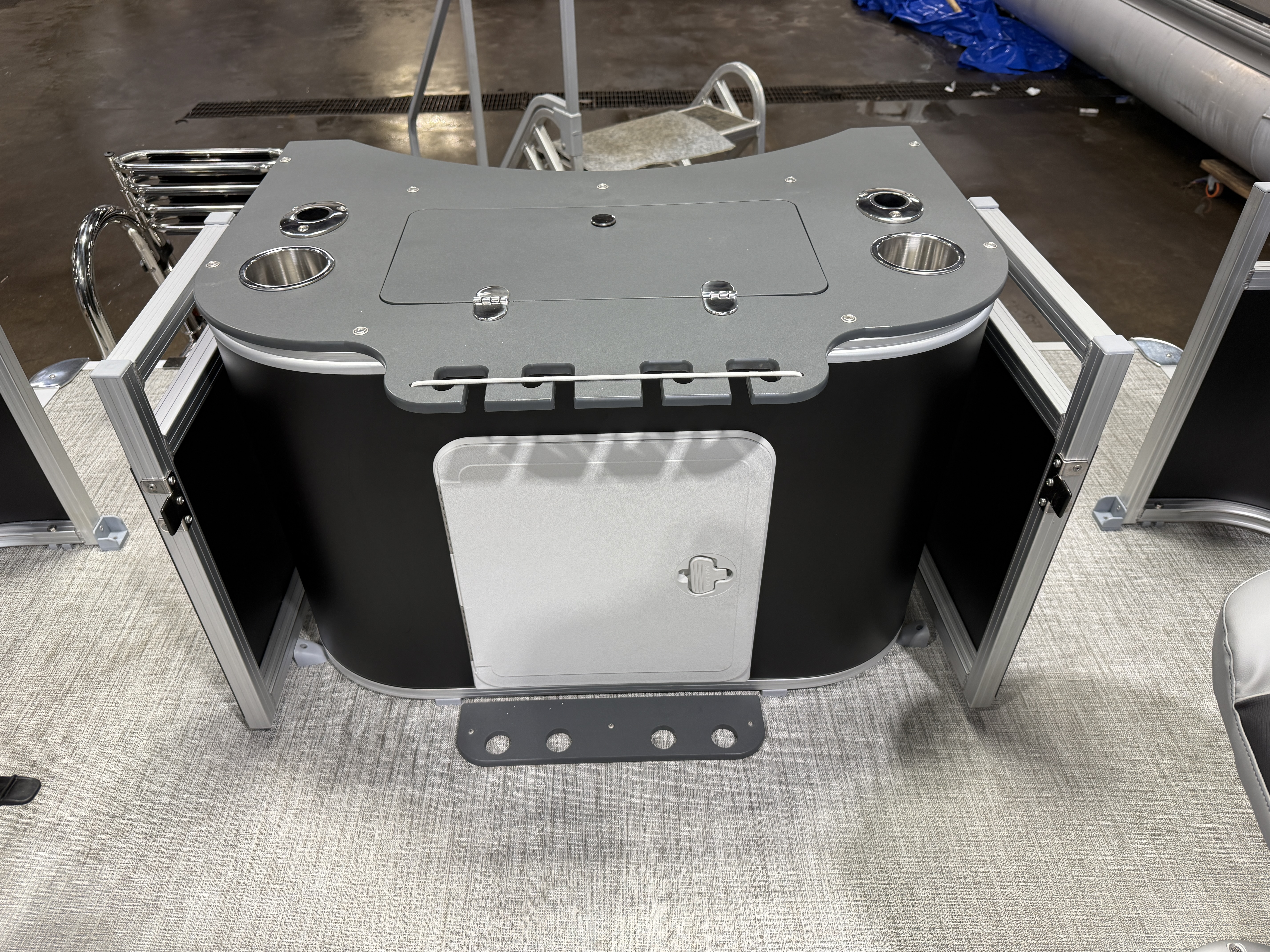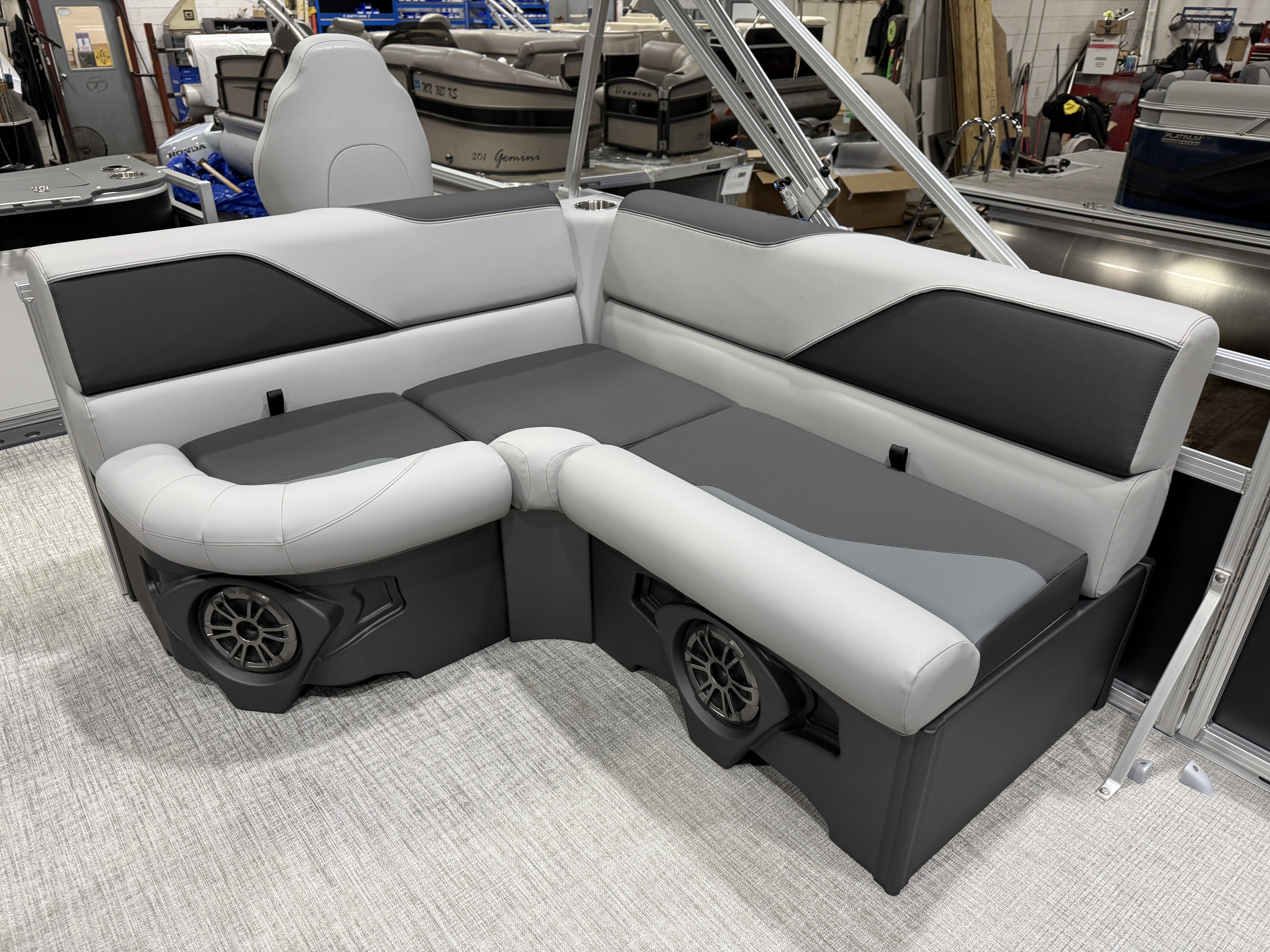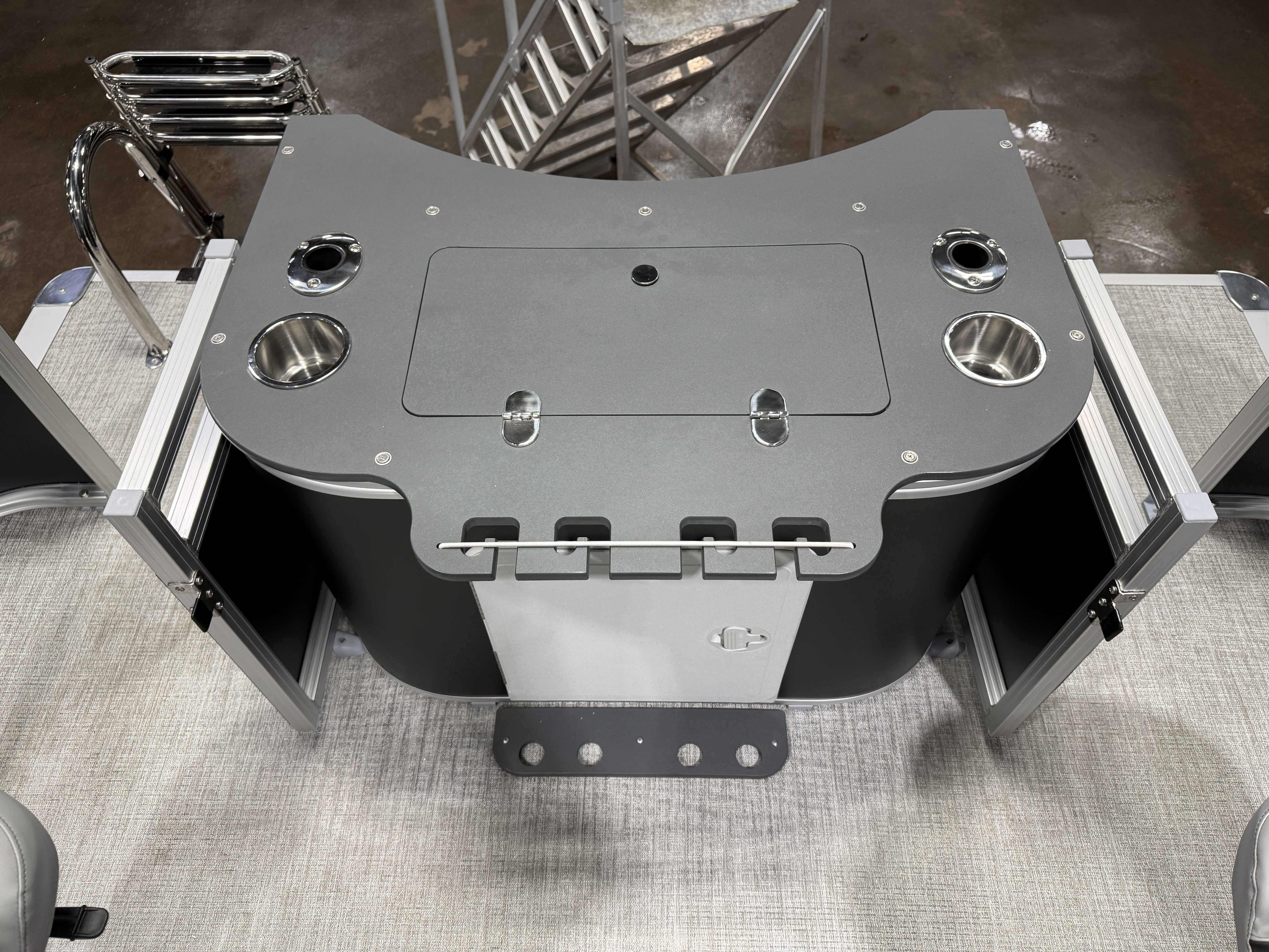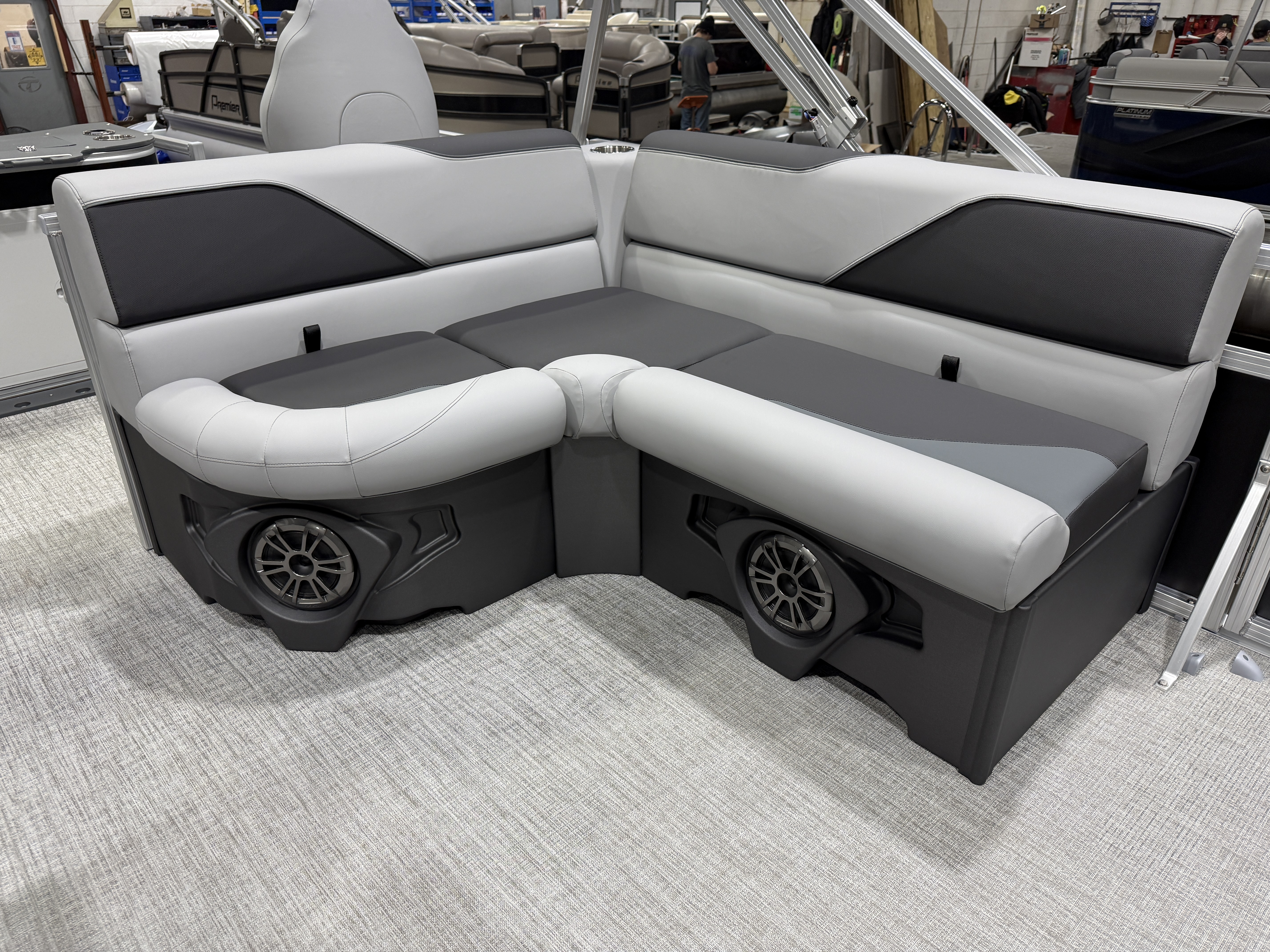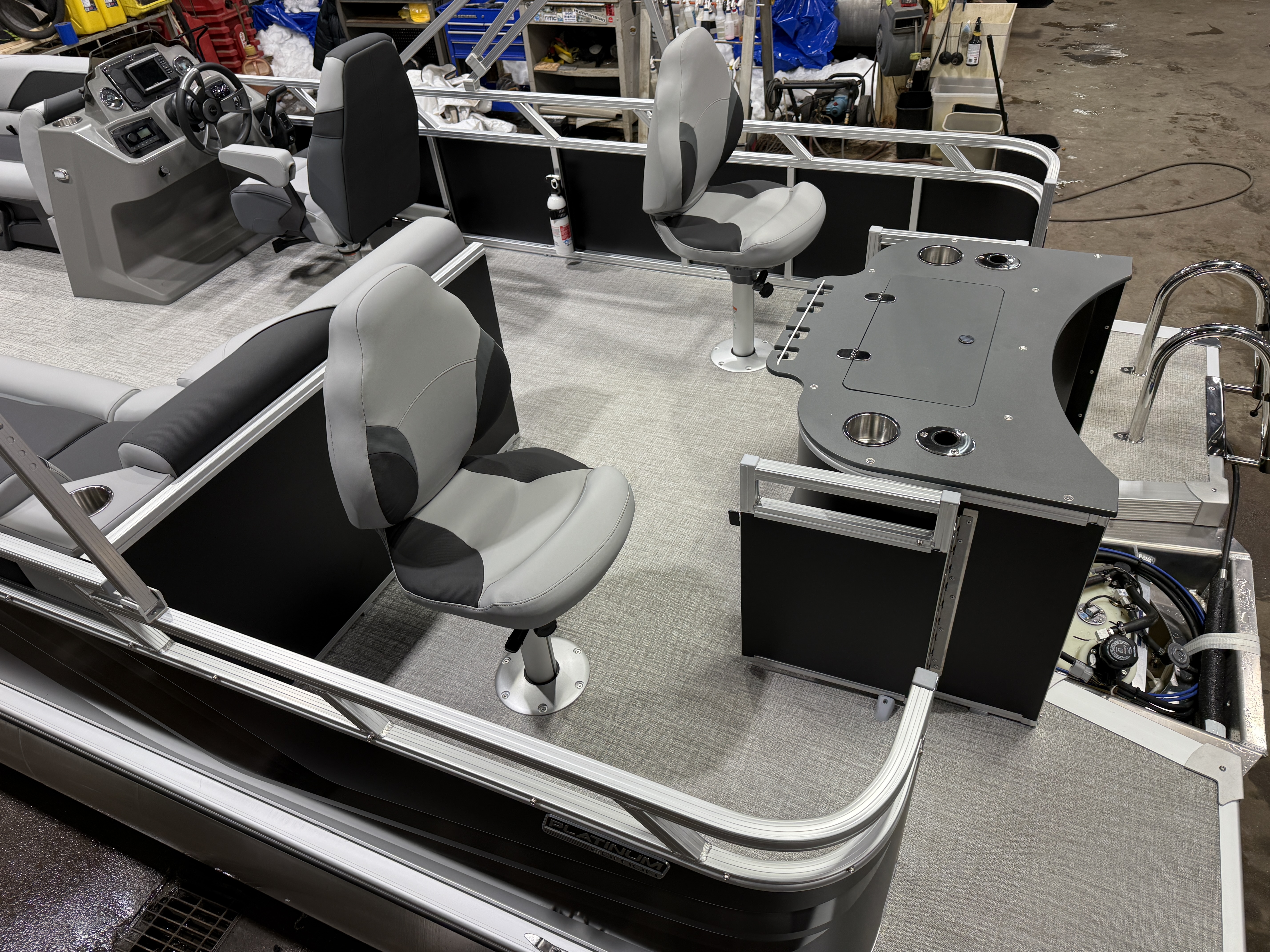 Black Walls Pontoon Has Front Lounge Seating With Storage, Wrap Around Seating