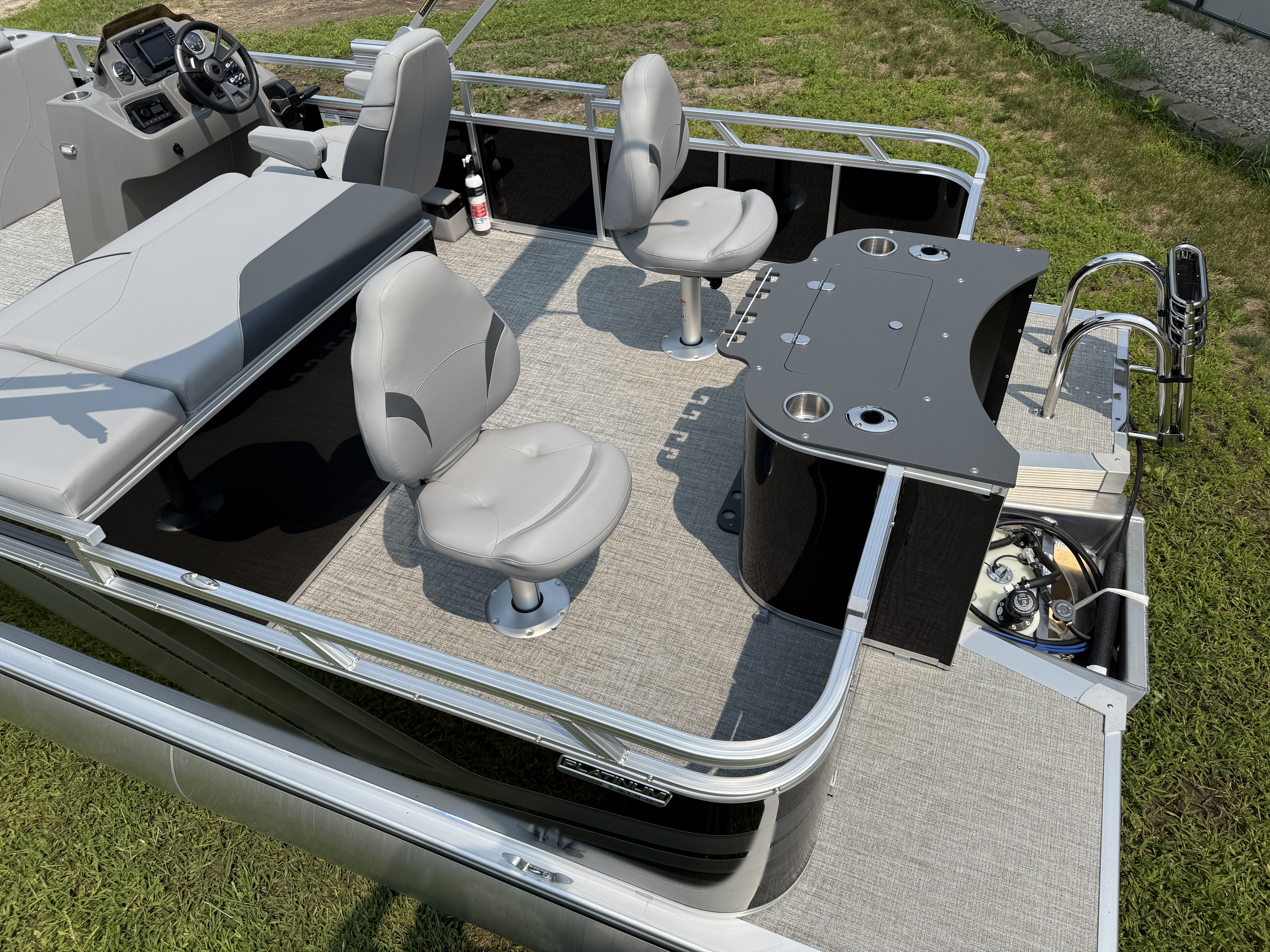 2026 Tahoe Sport 2385 Rear Fish Pontoon & Honda 4-Stroke EFI. This 23' Pontoon Has Front Lounge Seating With Storage, Wrap Around Seating With Storage, 2 Rear Fishing Seats, 5 Gates, Rear Sun Pad With Storage, Rear Live Well, Rod Holders, Multiple Cup Holders, Table, Sport Platinum Edition (Mooring Cover, Mid Back Reclining Commander's Helm Seat, Garmin 52CV GPS Depth Finder, LED Smoked Chrome Docklights, Platinum Edition Special Badging), Electric Bimini Top, Graphite Interior Package, LED Nav Lights, 25' Tubes, Riptide Vinyl Floor, Bluetooth Fusion Radio w/4 Speakers, Greywood Rectangle Table, Gauge Package w/Hour Meter, Rear Starboard Stainless Steel Ladder, Built-In 25 Gallon Gas Tank, Helm Storage, New Battery And Prop, Front And Rear Deck, Tilt Steering. Rated For 11 People. Great Space In This Fish/Cruise Pontoon. Stop By!