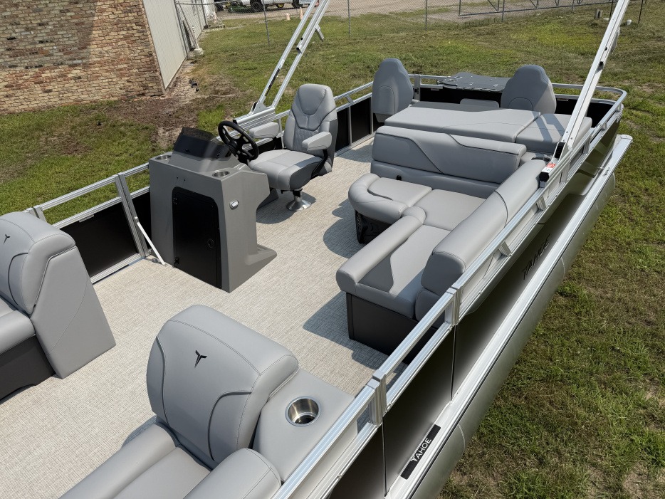 2026 Tahoe Sport 2385 Rear Fish Pontoon & Honda 4-Stroke EFI. This 23' Pontoon Has Front Lounge Seating With Storage, Wrap Around Seating With Storage, 2 Rear Fishing Seats, 5 Gates, Rear Sun Pad With Storage, Rear Live Well, Rod Holders, Multiple Cup Holders, Table, Sport Platinum Edition (Mooring Cover, Mid Back Reclining Commander's Helm Seat, Garmin 52CV GPS Depth Finder, LED Smoked Chrome Docklights, Platinum Edition Special Badging), Electric Bimini Top, Graphite Interior Package, LED Nav Lights, 25' Tubes, Riptide Vinyl Floor, Bluetooth Fusion Radio w/4 Speakers, Greywood Rectangle Table, Gauge Package w/Hour Meter, Rear Starboard Stainless Steel Ladder, Built-In 25 Gallon Gas Tank, Helm Storage, New Battery And Prop, Front And Rear Deck, Tilt Steering. Rated For 11 People. Great Space In This Fish/Cruise Pontoon. Stop By!