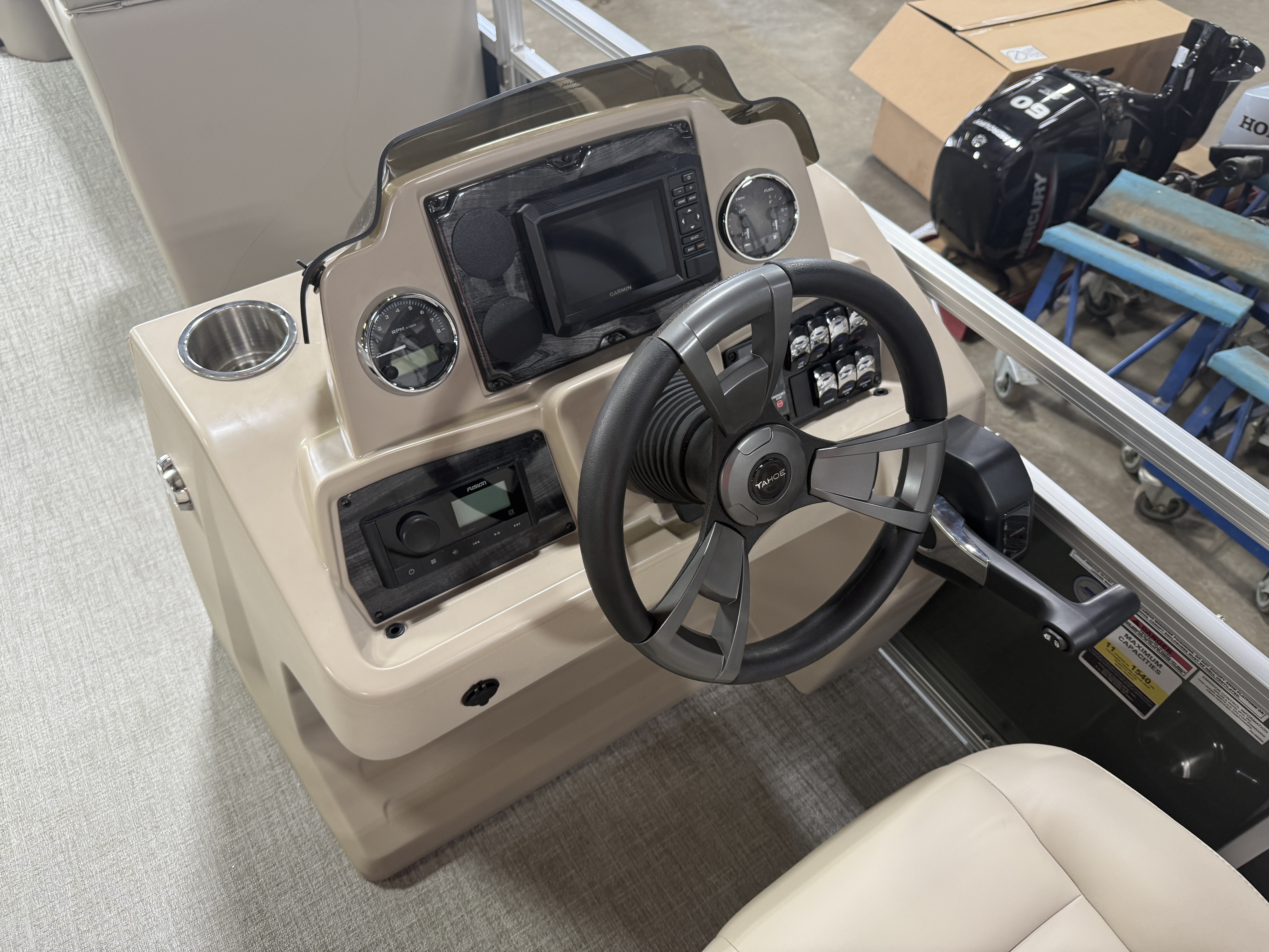 Reclining Commander's Helm Seat, Garmin 52CV GPS Depth Finder, LED Smoked Chrome