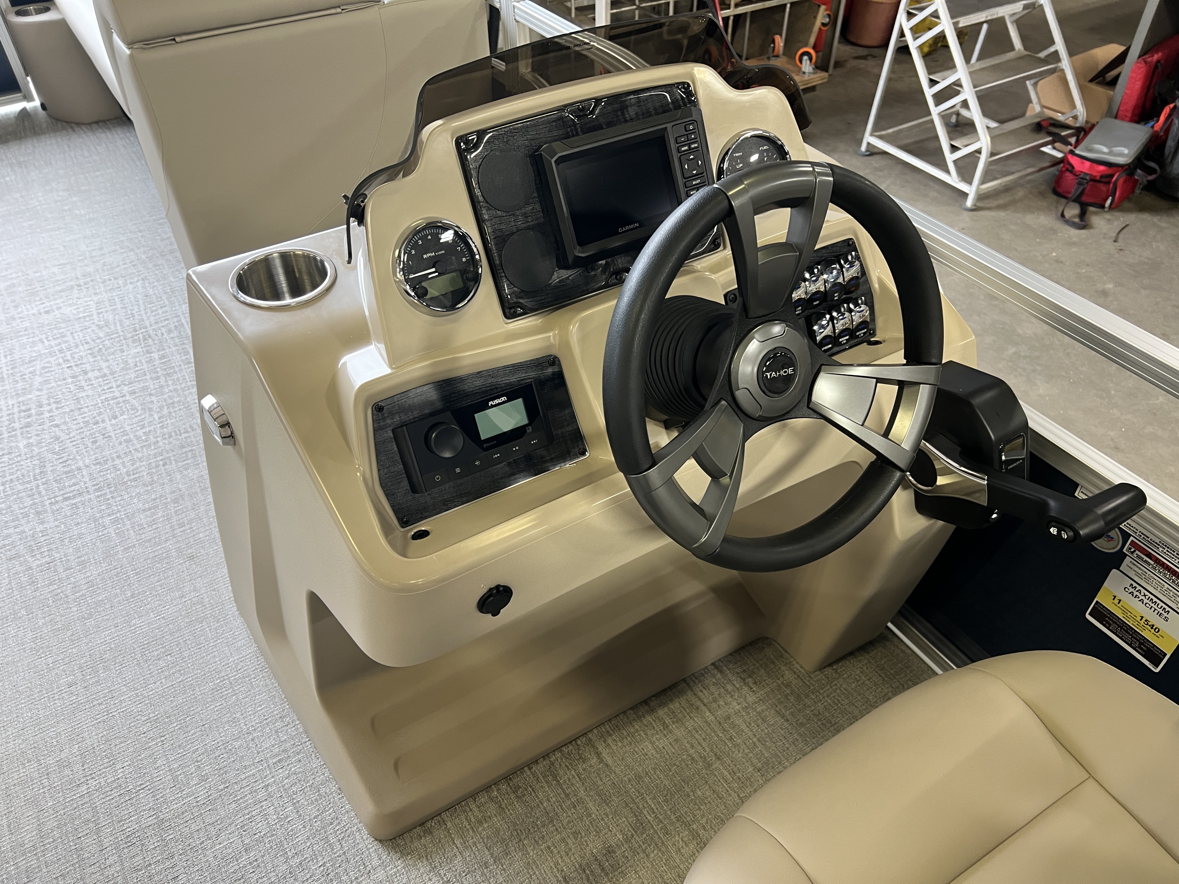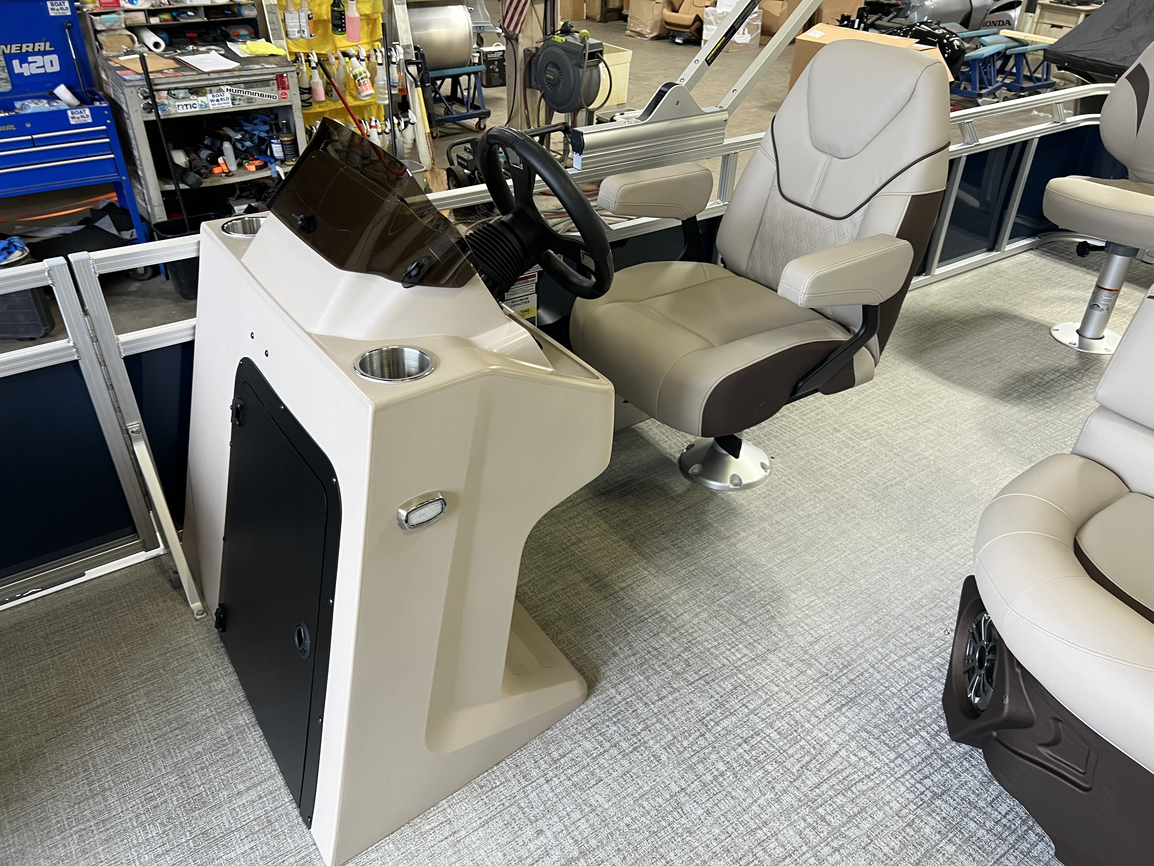 Reclining Commander's Helm Seat, Garmin 52CV GPS Depth Finder, LED Smoked Chrome