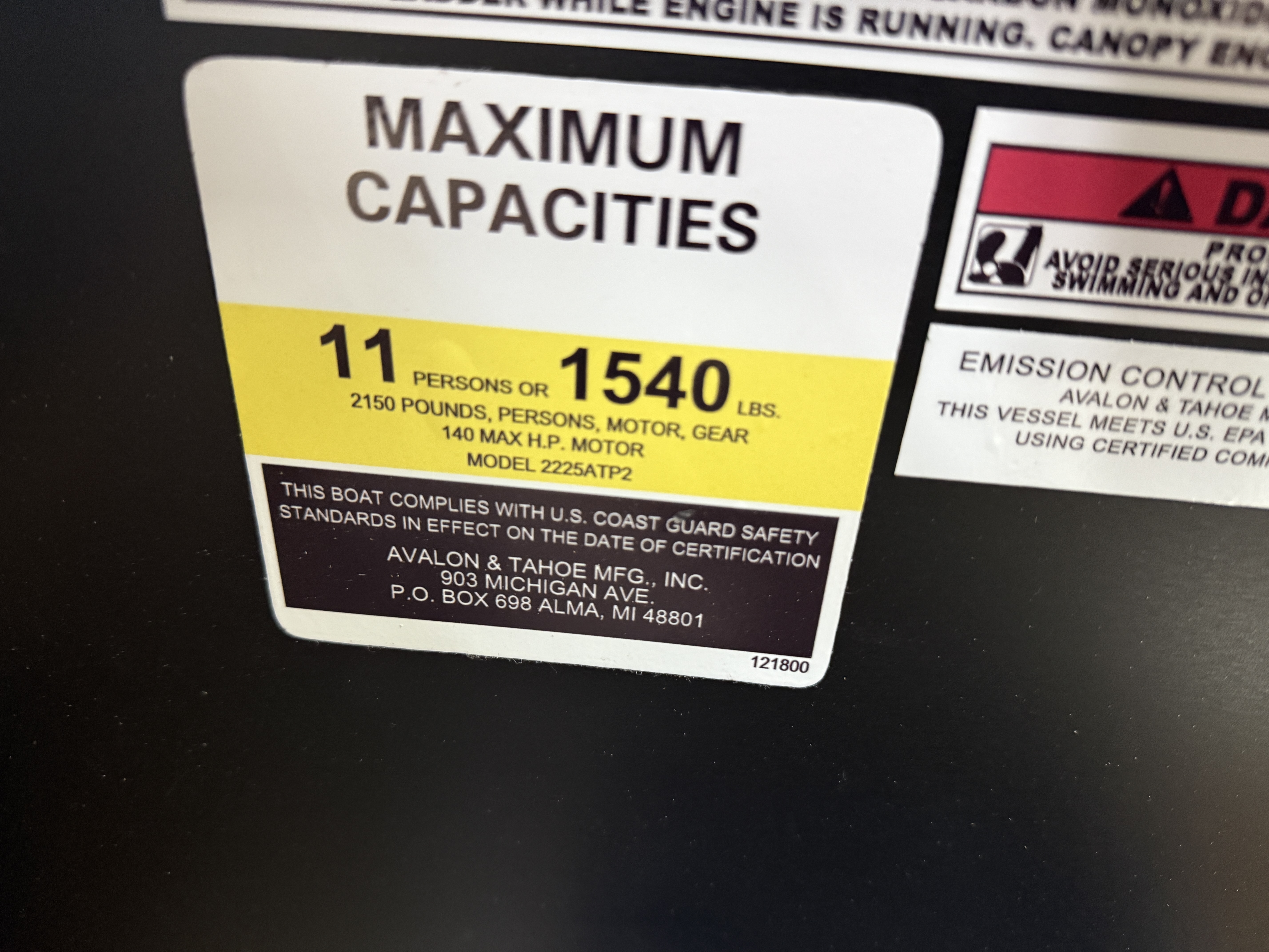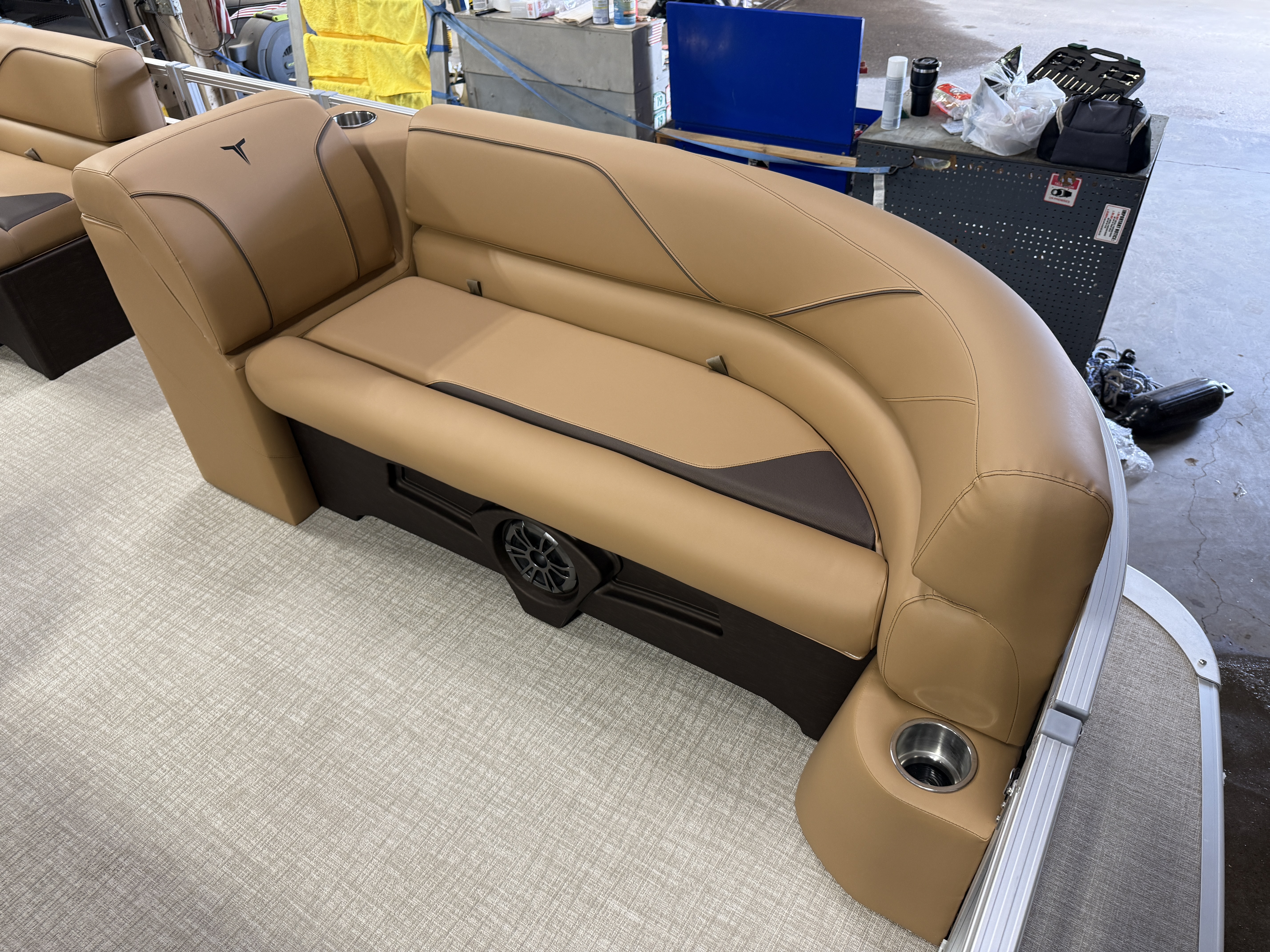 2026 Tahoe Sport 2385 Rear Fish Pontoon & Honda 4-Stroke EFI. This 23' Matte Black Walls Pontoon Has Front Lounge Seating With Storage, Wrap Around Seating With Storage, 2 Rear Fishing Seats, 5 Gates, Rear Sun Pad With Storage, Rear Live Well, Rod Holders, Multiple Cup Holders, Table, Sport Platinum Edition (Mooring Cover, Mid Back Reclining Commander's Helm Seat, Garmin 52CV GPS Depth Finder, LED Smoked Chrome Docklights, Platinum Edition Special Badging), Electric Bimini Top, Cognac Interior Package, LED Nav Lights, 25' Tubes, Riptide Vinyl Floor, Bluetooth Fusion Radio w/4 Speakers, Greywood Rectangle Table, Gauge Package w/Hour Meter, Rear Starboard Stainless Steel Ladder, Built-In 25 Gallon Gas Tank, Helm Storage, New Battery And Prop, Front And Rear Deck, Tilt Steering. Rated For 11 People. Great Space In This Fish/Cruise Pontoon. Stop By!