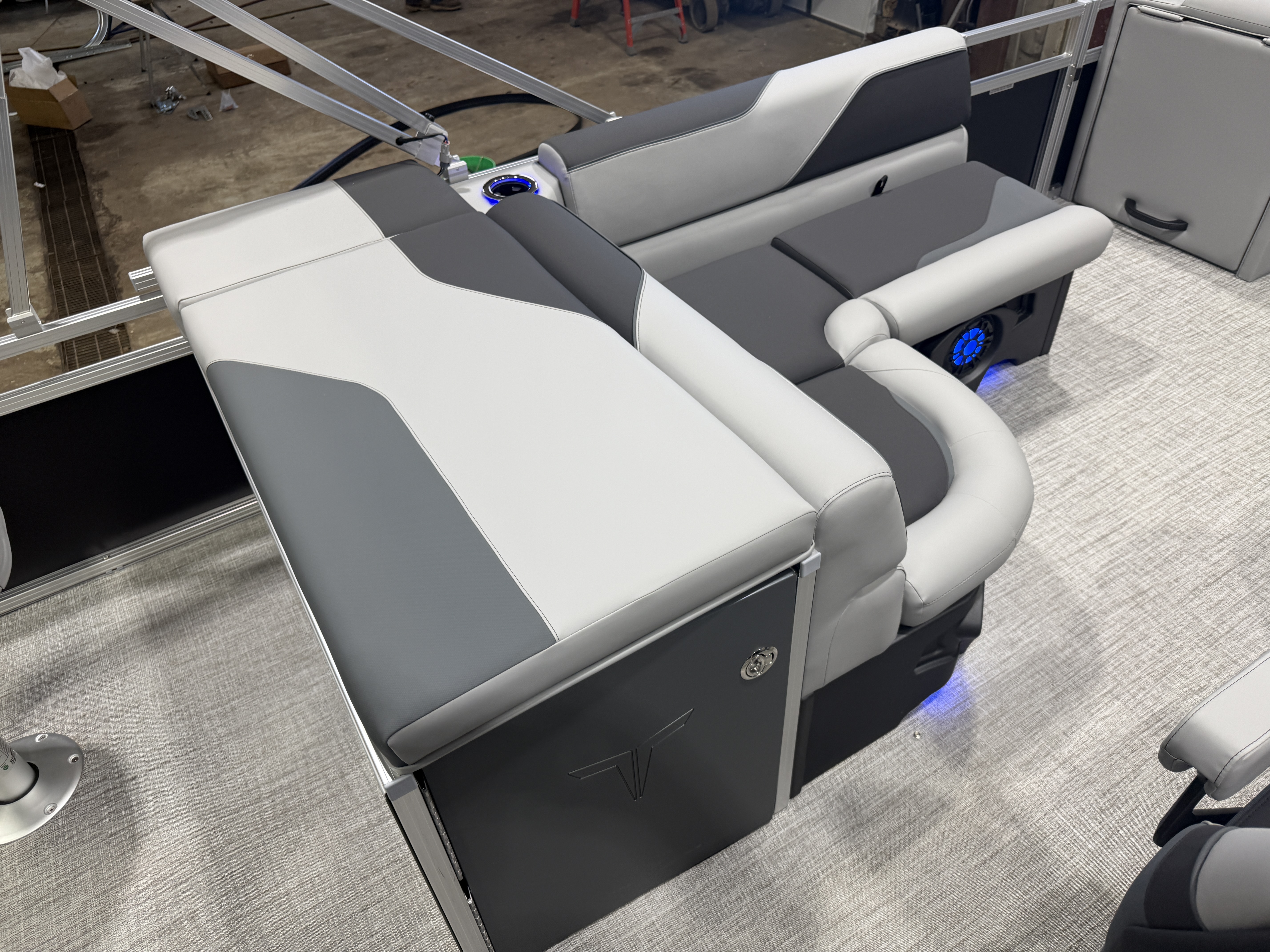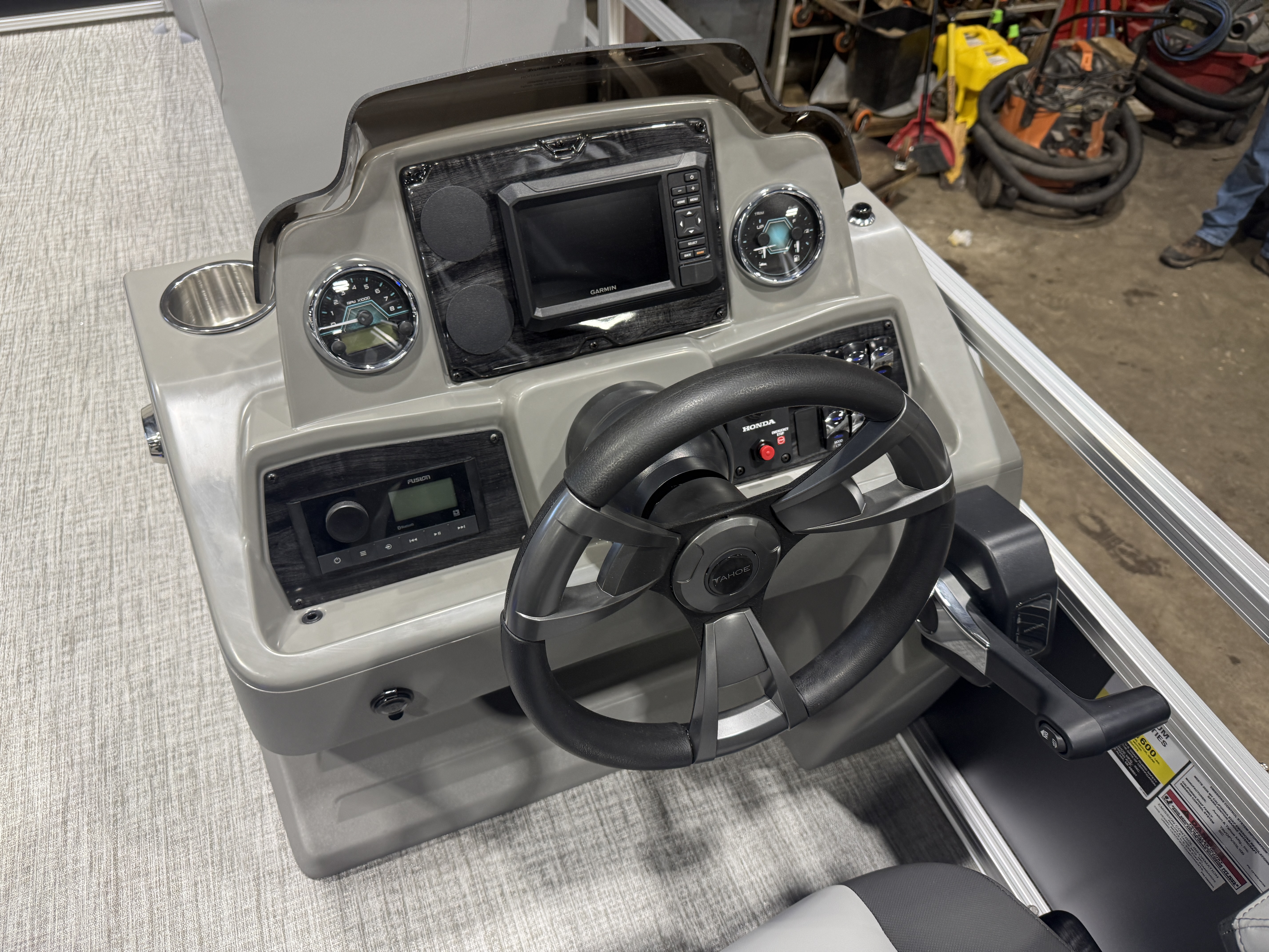 2026 Tahoe Sport 2385 Rear Fish Tritoon & Honda 4-Stroke EFI. This Matte Black Walls Tri-Toon Has Front Lounge Seating With Storage, Wrap Around Seating With Storage, 2 Rear Fishing Seats, 5 Gates, Rear Sun Pad With Storage, Rear Live Well, Rod Holders, Multiple Cup Holders, Table, Sport Platinum Edition (Mid Back Reclining Commander's Helm Seat, Garmin 52CV GPS Depth Finder, LED Smoked Chrome Docklights, Polished Corner Caps, Platinum Edition Special Badging), 10' Bimini Top, Graphite Interior Package w/Kool Fab Black & Charcoal Accent, LED Nav Lights, 25' Tubes, Riptide Vinyl Floor, Blue Ice Package (Lighted Cup Holders, Lighted Speakers & Mood Lighting), Lifting Strakes, Underneath Sheeting, Ski Tow Bar, Hydraulic Steering, Bluetooth Fusion Radio w/4 Speakers, Greywood Rectangle Table, Gauge Package w/Hour Meter, Rear Starboard Stainless Steel Ladder, Built-In 25 Gallon Gas Tank, Mooring Cover, Helm Storage, New Battery And Prop, Front And Rear Deck, Tilt Steering. Rated For 11 People. Great Space In This Fish/Cruise Pontoon. Stop By!
