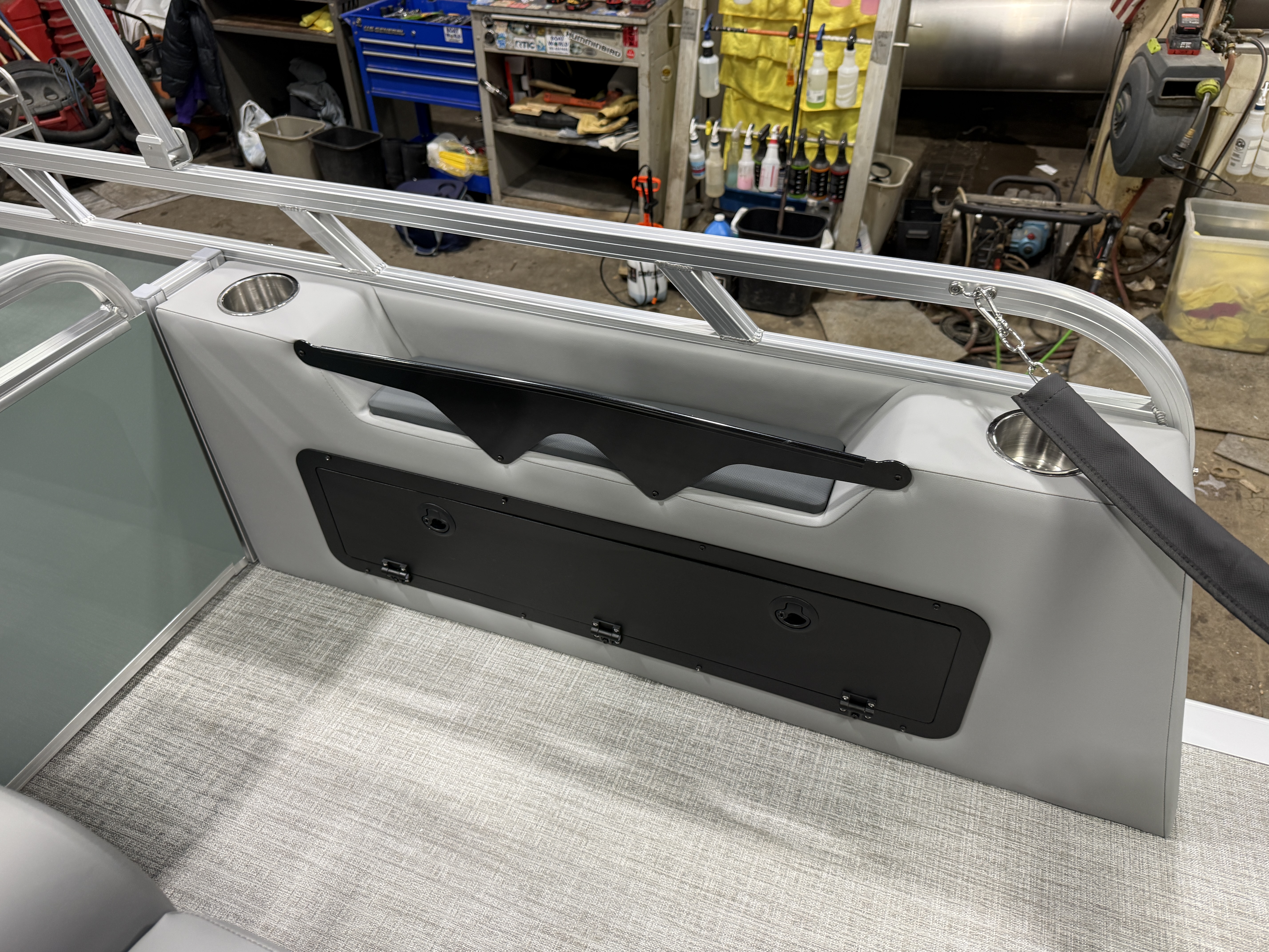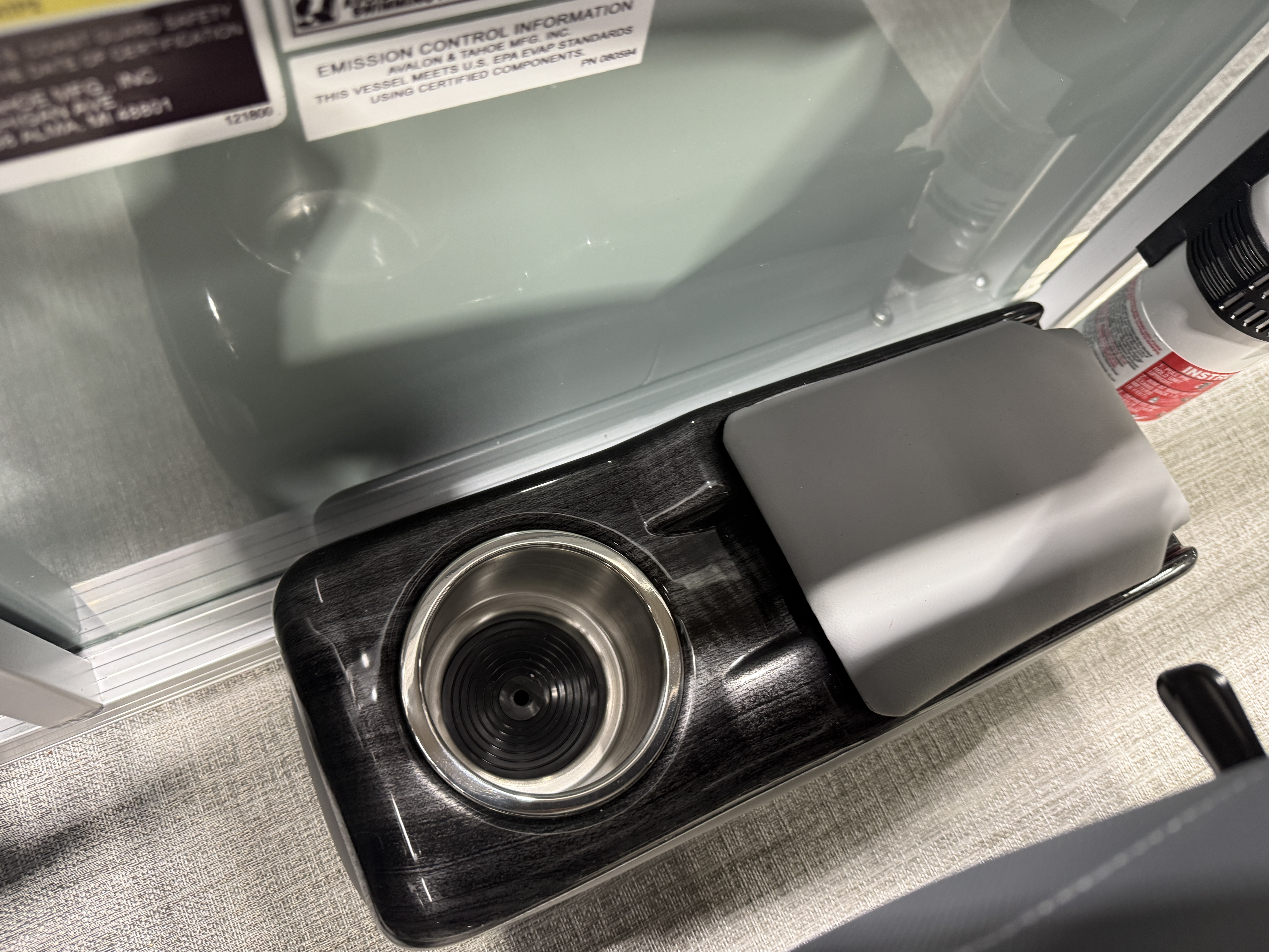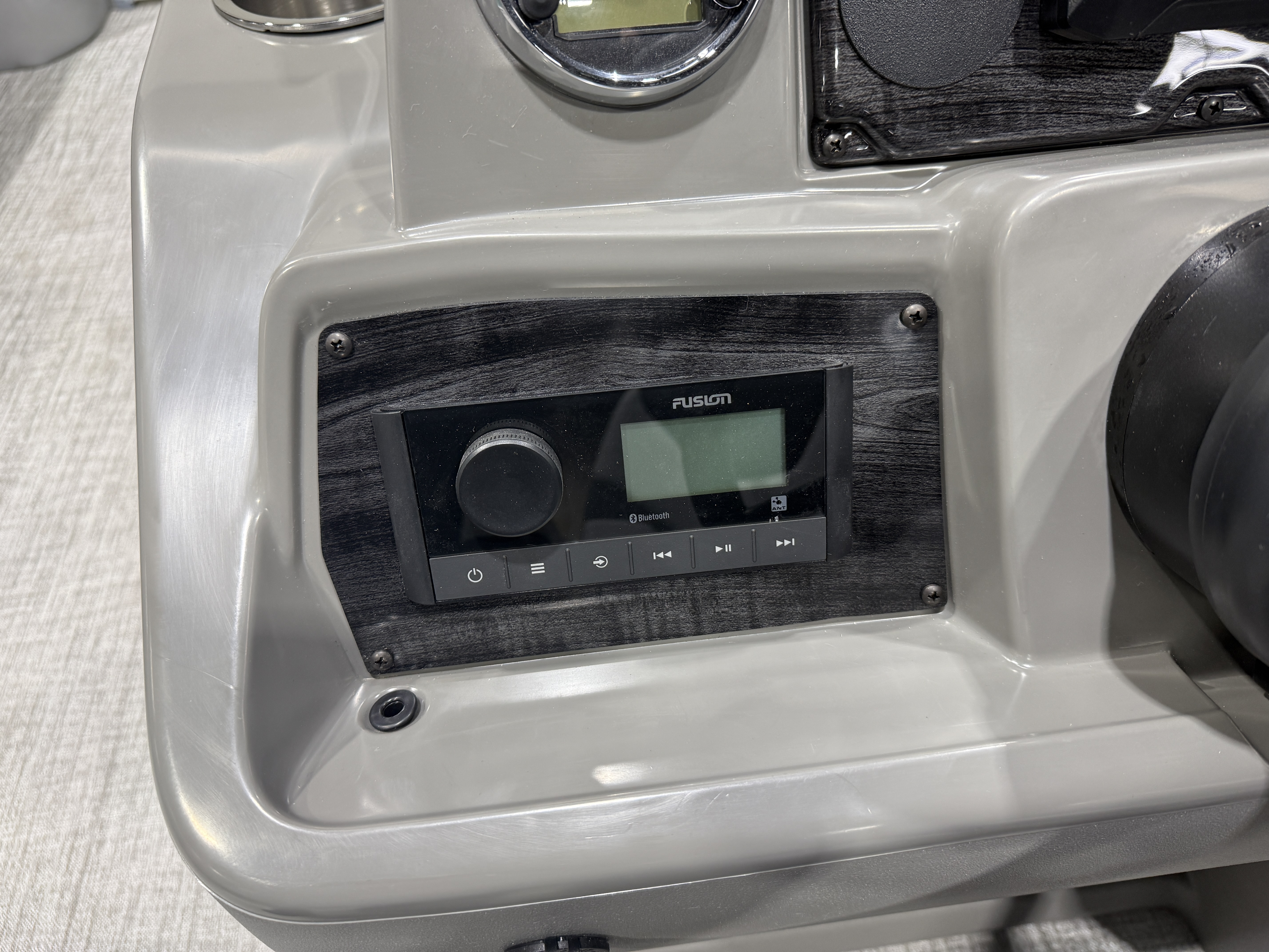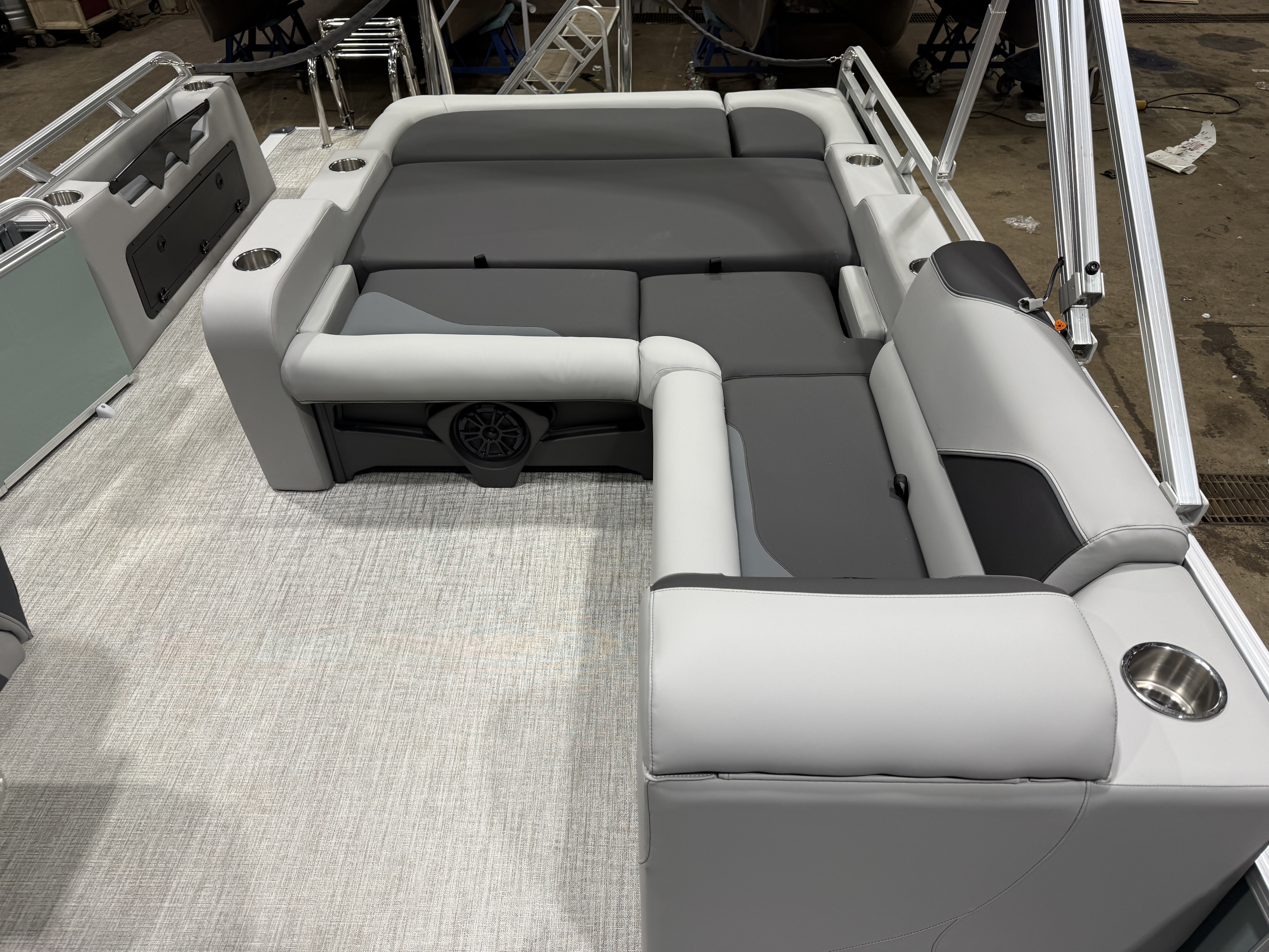 2026 Tahoe Sport 2385 Versatile Rear Bench (VRB) Swingback Pontoon & Honda 4-Stroke EFI. This Platinum Edition Pontoon Has Front Chaise Lounge Seating With Storage, Commander Reclining Captain's Chair, Wrap Around Chaise Lounge Seating With Storage, Seating That Turns Into A Bed Or Rear Facing Bench Seating, Rear Swim Deck, Riptide Vinyl Flooring, Smoked Chrome Docklights, Table, Mooring Cover, Garmin 52CV GPS Depth Finder, Fusion Bluetooth Radio, Multiple Cup Holders, 25" Tubes, 10' Bimini Top, Bead Blast Corner Caps, Gated Aft, Graphite Interior Package w/Kool Fab Black & Charcoal Accent, Ski Tow Bar w/Chains, Bow & Aft USB Charging Ports, Ladder, Side Storage Behind Captain's Seat, Front Deck. Rated For 11 People.