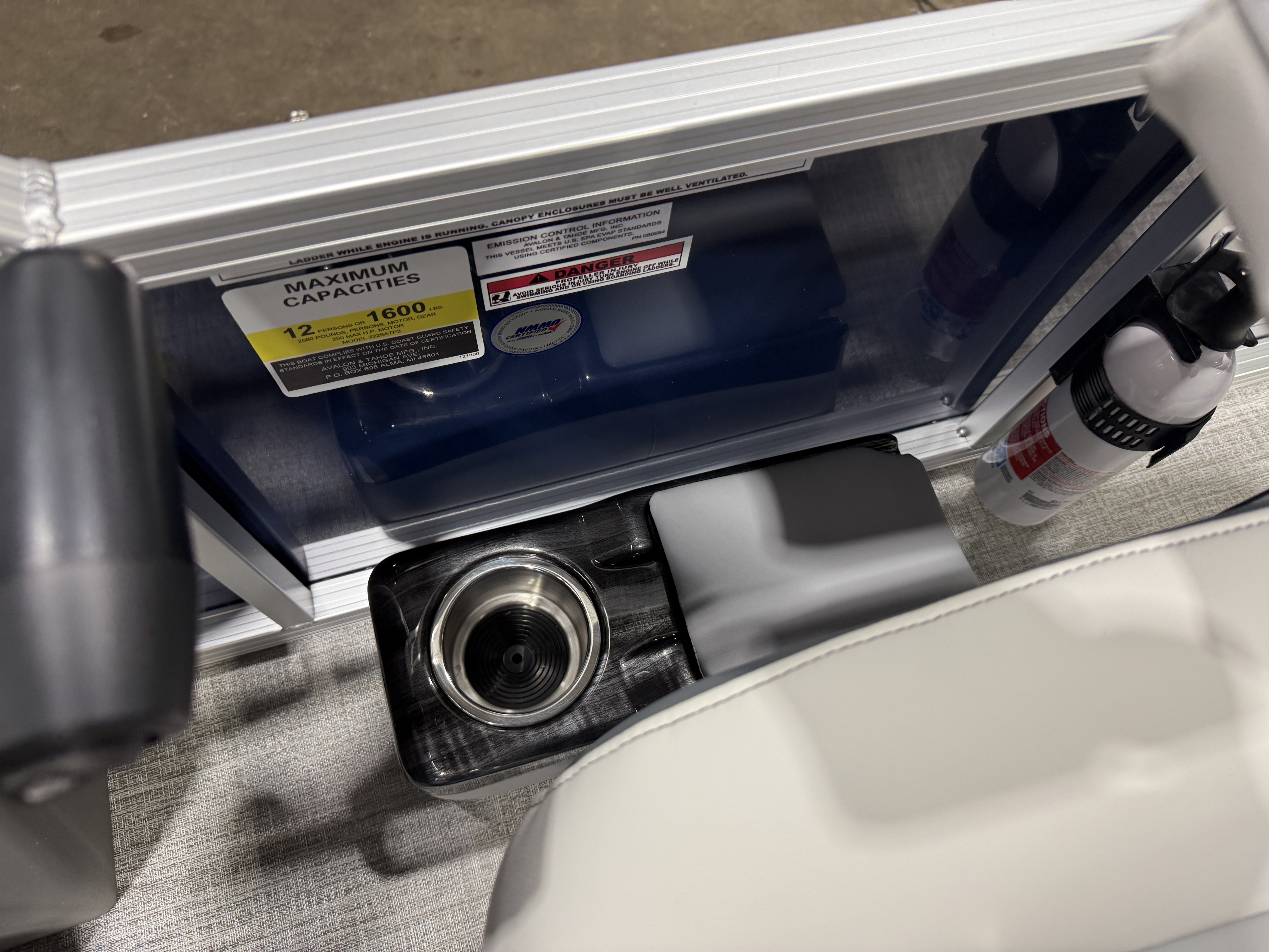 Storage Behind Captain's Seat, Front Deck. Rated For 12 People.