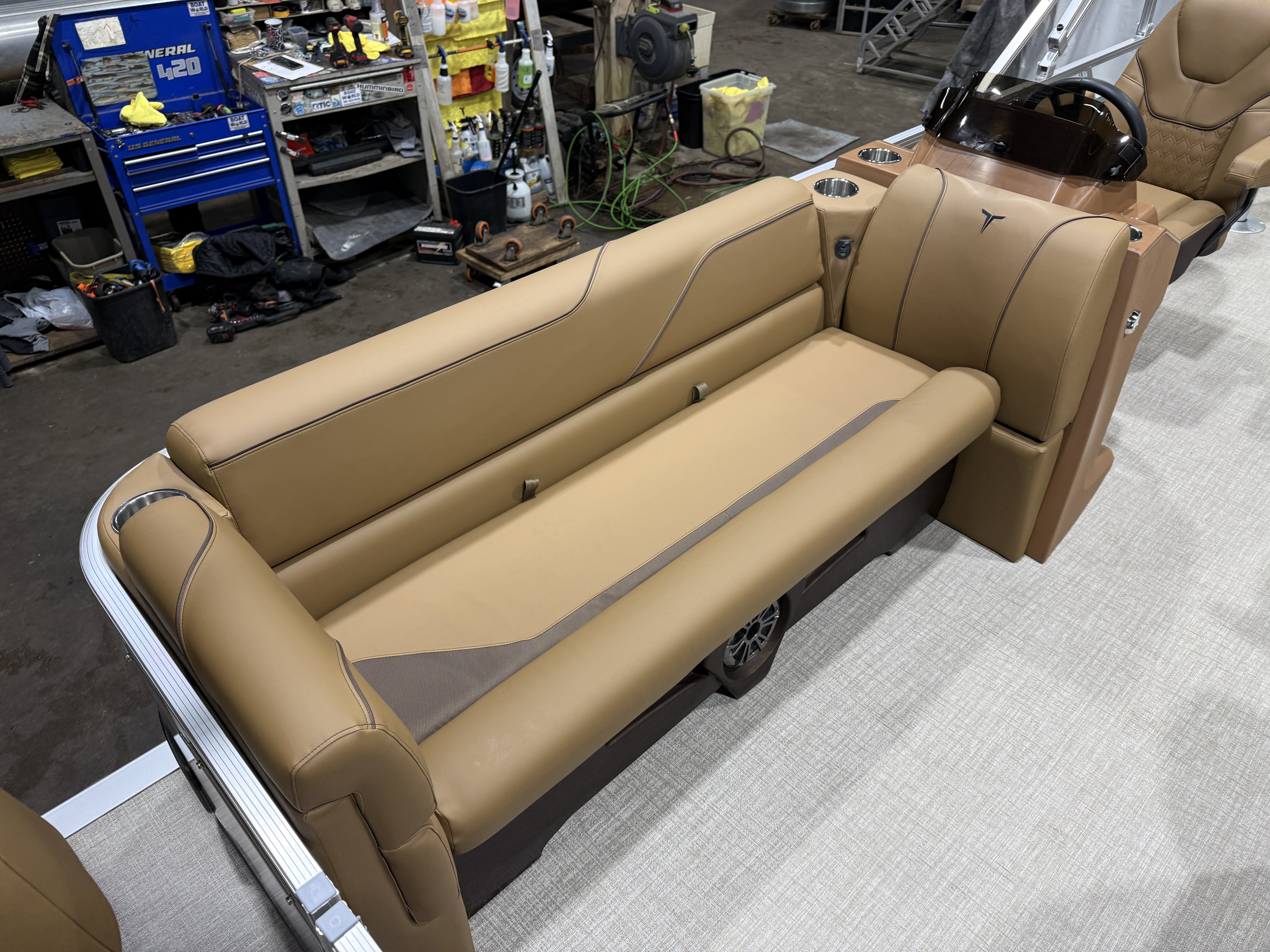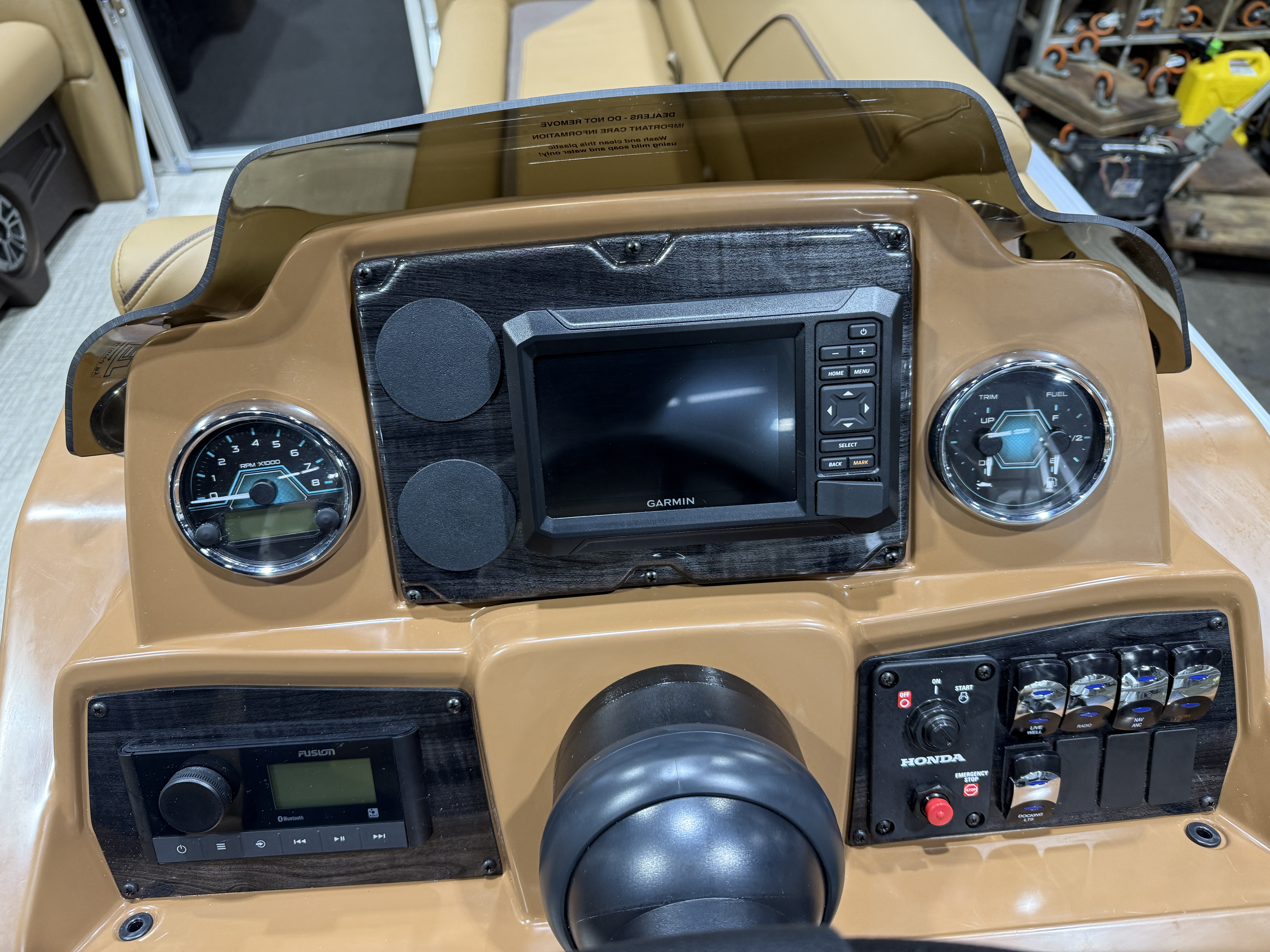 2026 Tahoe Sport 23E80 Fish & Cruise Pontoon & Honda 4-Stroke EFI. This 23' Fishing Pontoon Has A Front 2FT Bow Deck Extension With Two Fishing Seats & Seat Covers, Front Chaise Lounge Seating With Storage, Wrap Around Chaise Lounge Seating With More Storage, Reclining Commander's Captain's Seat With Slider, Two Rear Fishing Seats, Multiple Cup Holders, Sport Platinum Edition (Garmin 52CV GPS Depth Finder, 90 Degree Smoked Chrome Docklights, Polished Corner Caps, Platinum Edition Special Badging), Cognac Interior Vinyl Package w/Expresso Accent, Brushed Bronze Seat Cladding, Tilt Steering, Riptide Vinyl Flooring, 25" Tubes, Built In 25 Gas Tank, Trash Can In Lounge Arm, LED Nav Lights, 10' Bimini Top, Bluetooth Radio w/4 Speakers, Rear Live Well, Rod Holders, New Battery, Rear 4 Step Ladder, Rear Deck, Playpen Cover, Greywood Rectangle Table. Rated For 11 People.