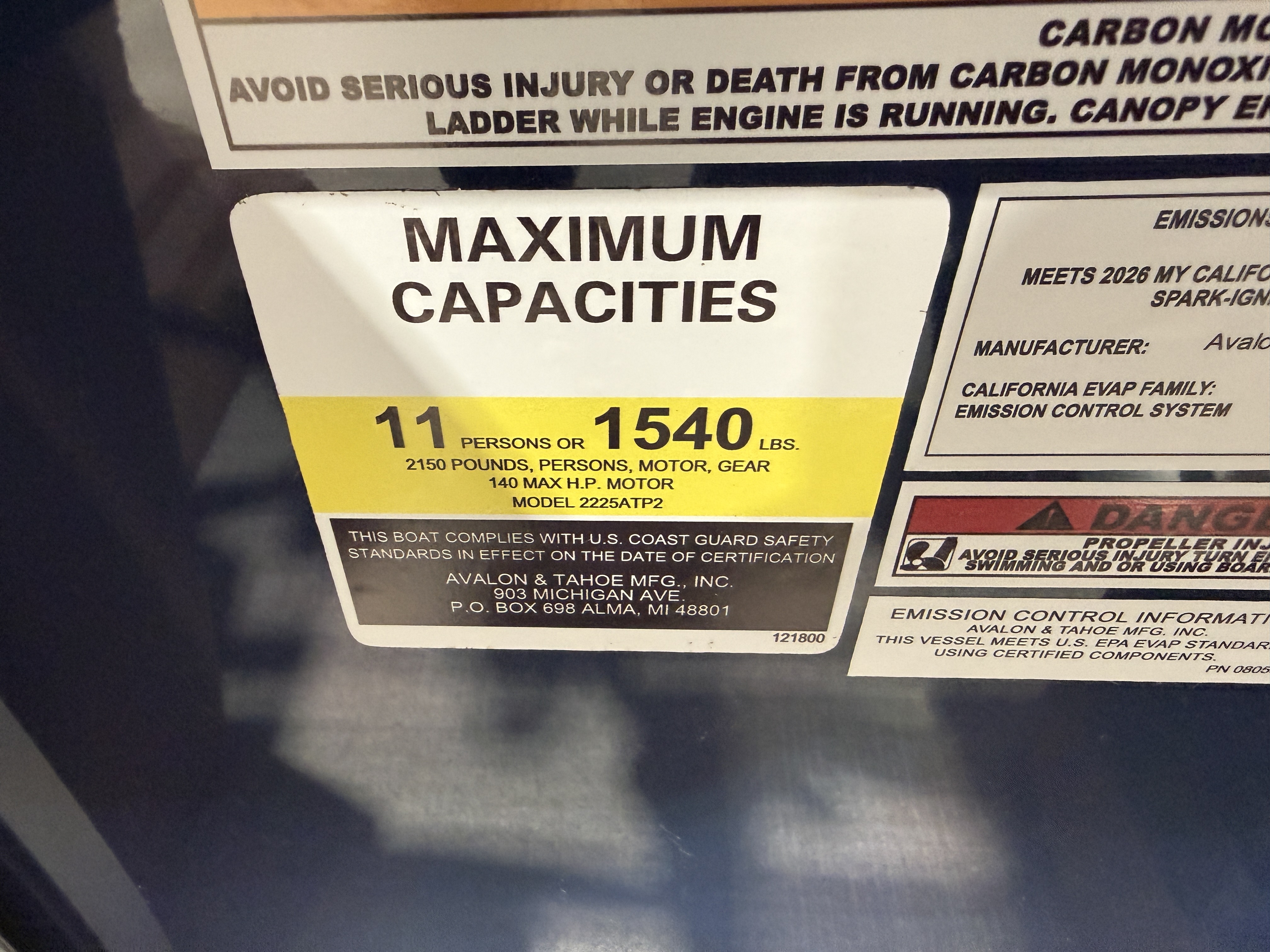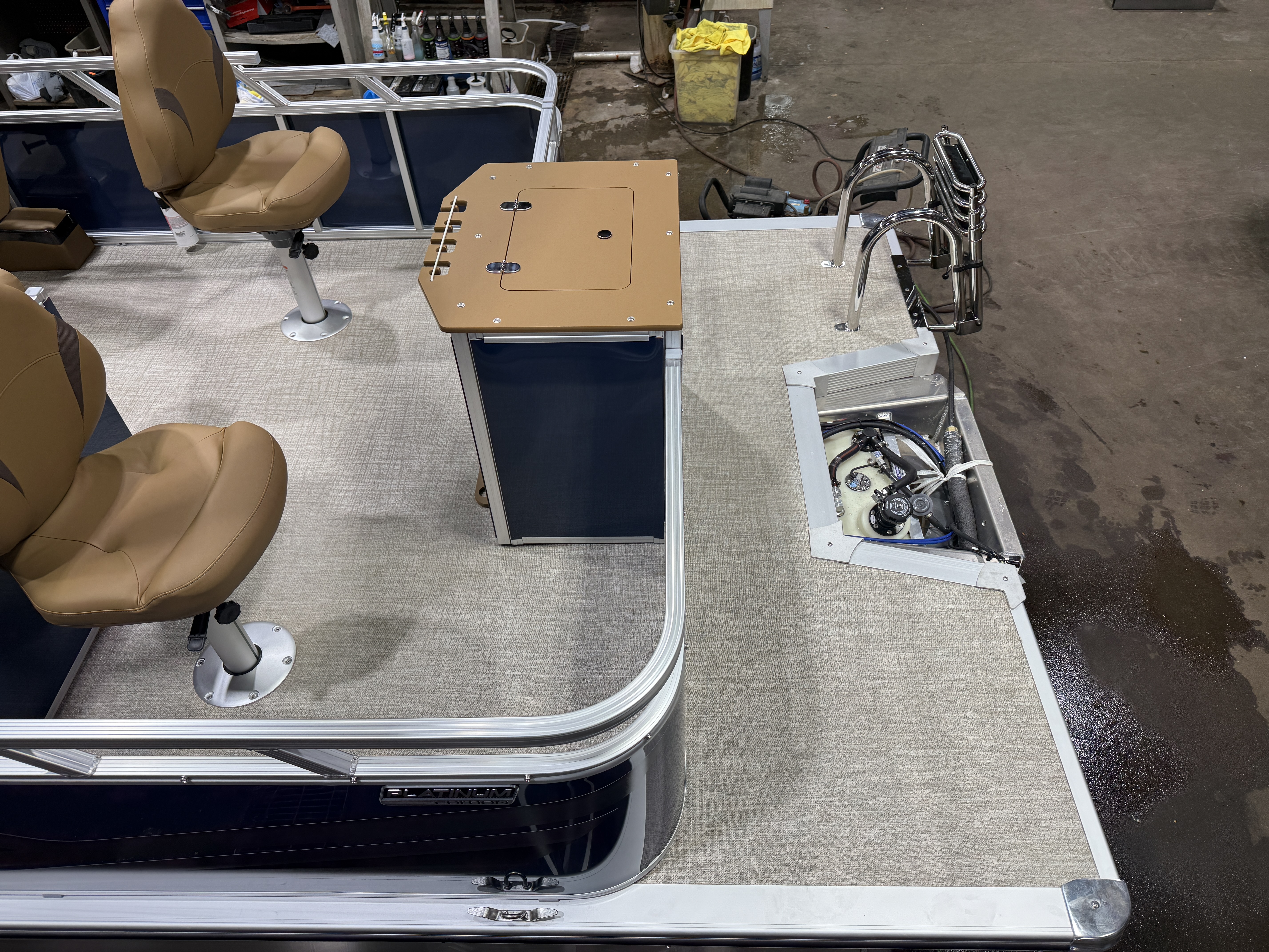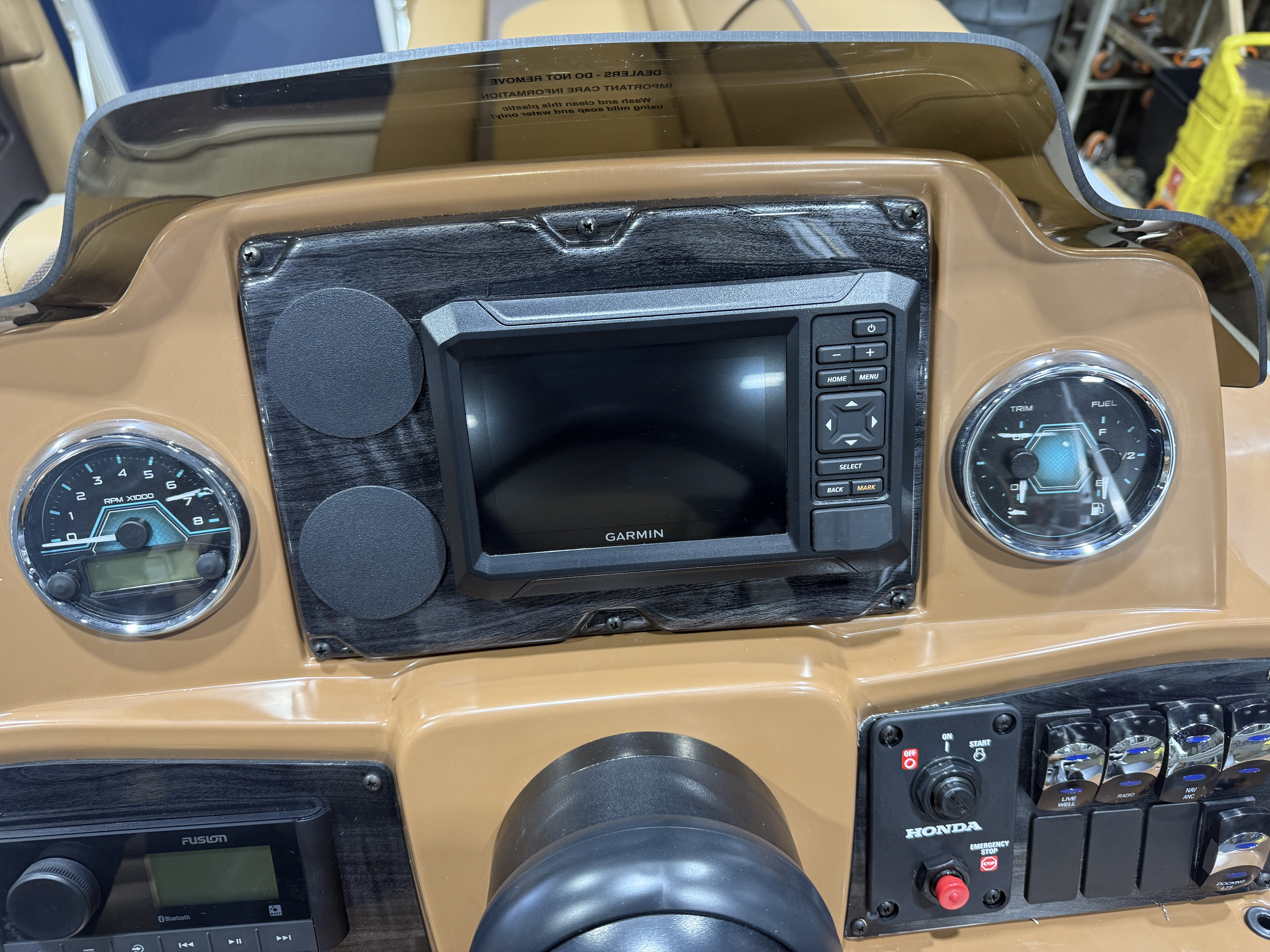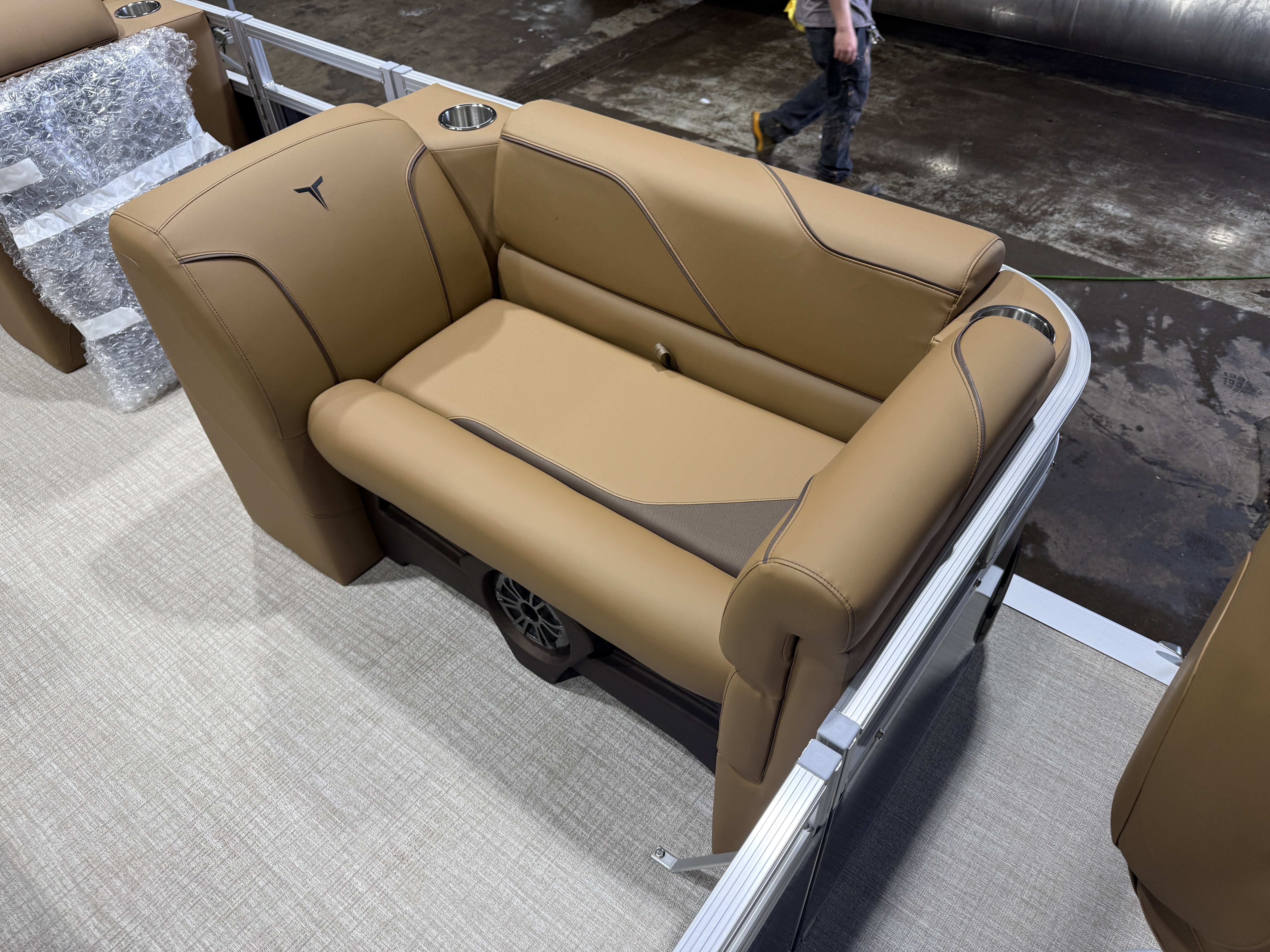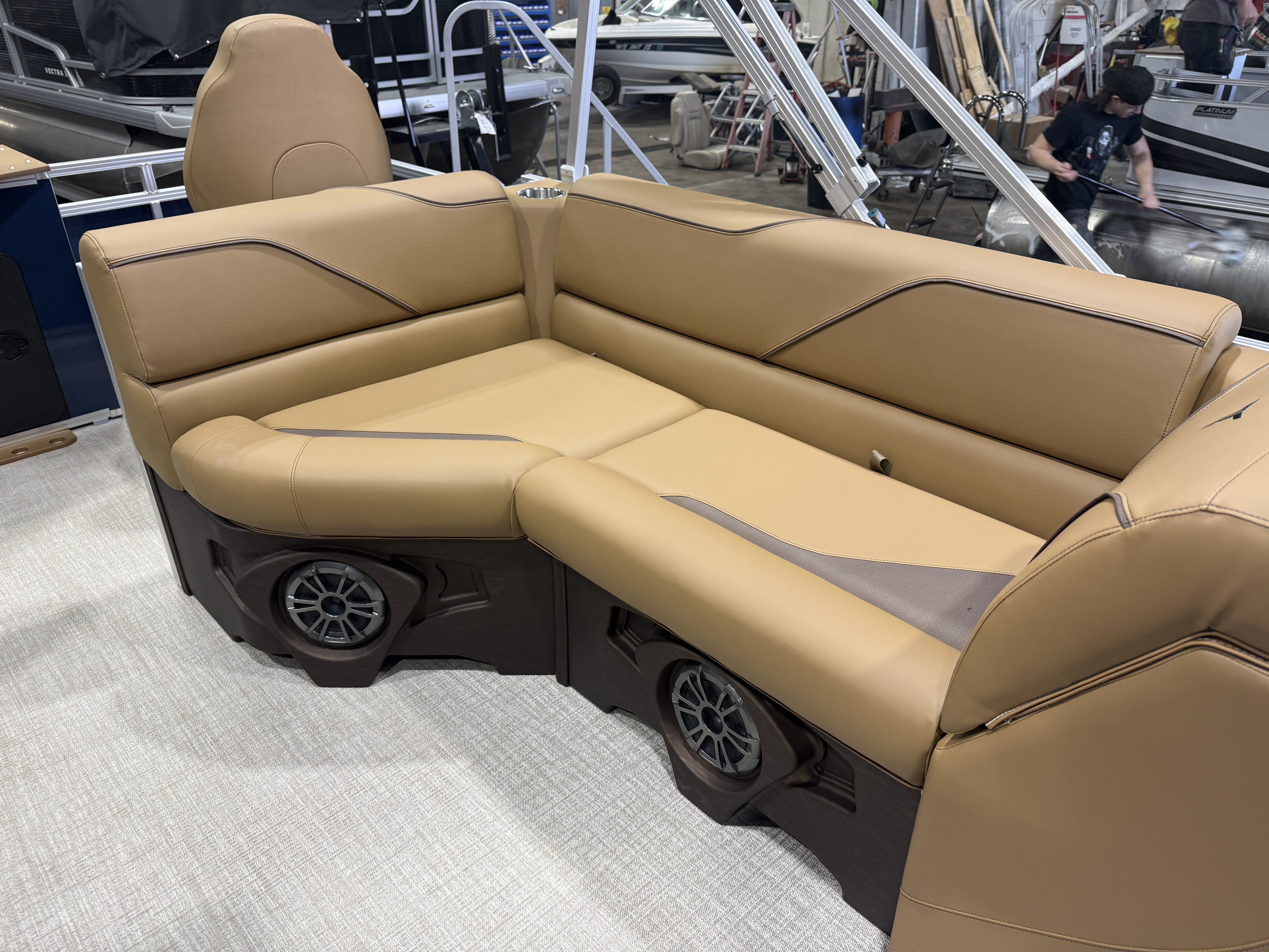 2026 Tahoe Sport 23E80 Fish & Cruise Pontoon & Honda 4-Stroke EFI. This 23' Fishing Pontoon Has A Front 2FT Bow Deck Extension With Two Fishing Seats & Seat Covers, Front Chaise Lounge Seating With Storage, Wrap Around Chaise Lounge Seating With More Storage, Reclining Commander's Captain's Seat With Slider, Two Rear Fishing Seats, Multiple Cup Holders, Sport Platinum Edition (Garmin 52CV GPS Depth Finder, 90 Degree Smoked Chrome Docklights, Polished Corner Caps, Platinum Edition Special Badging), Cognac Interior Vinyl Package w/Expresso Accent, Brushed Bronze Seat Cladding, Tilt Steering, Riptide Vinyl Flooring, 25" Tubes, Built In 25 Gas Tank, Trash Can In Lounge Arm, LED Nav Lights, 10' Bimini Top, Bluetooth Radio w/4 Speakers, Rear Live Well, Rod Holders, New Battery, Rear 4 Step Ladder, Rear Deck, Playpen Cover, Greywood Rectangle Table. Rated For 11 People.