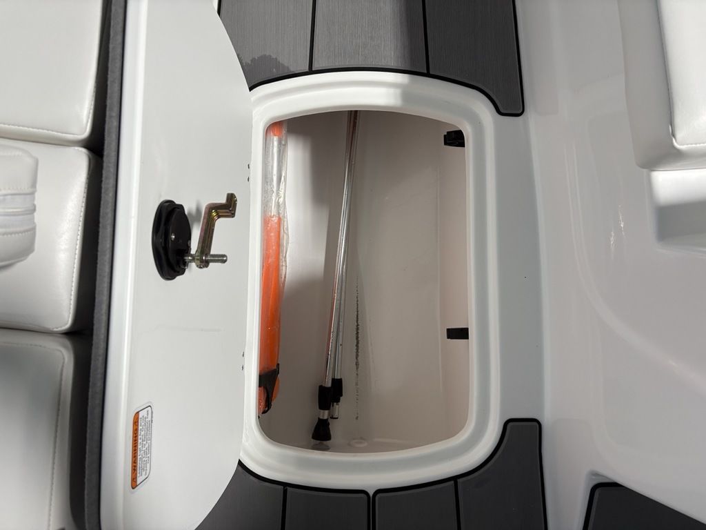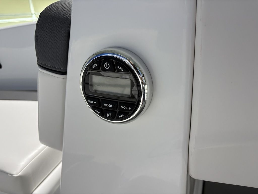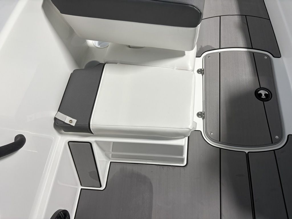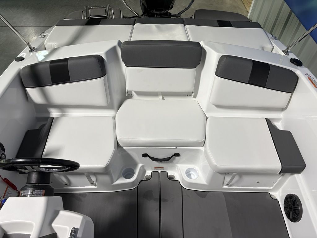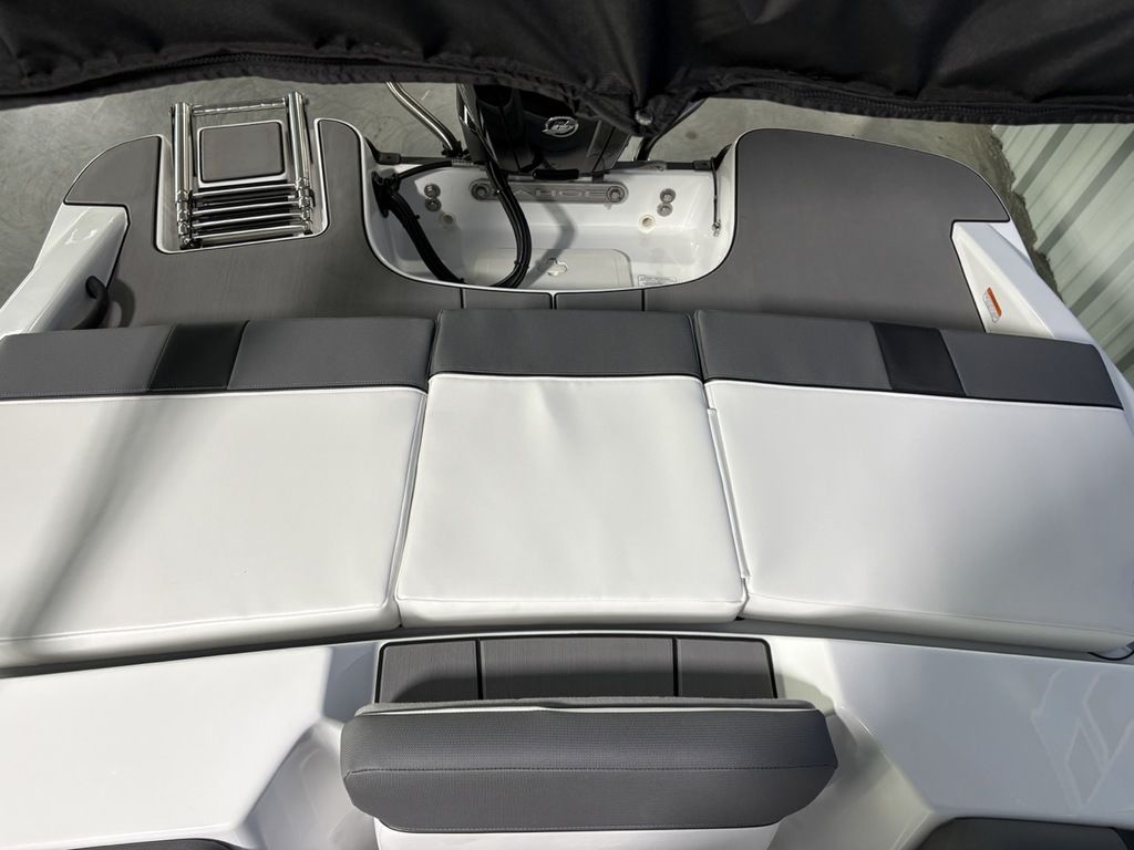 Relax on the water in this boat's midship bench seating and twin forward lounges with under-seat storage. The bow seats have reversible backrests that turn them into spotter seats. Lay out on the aft sun pad when you find your cove. The 4-step telescoping aft boarding ladder makes it easy to get back on the swim platform after diving into the water. Flip-up seat cushions and flip-down seat backs let passengers board the boat without stepping on upholstery. Claim 1 of the 9 drink holders, find your song on the 2-speaker Kicker® stereo, and search for excitement on the water!