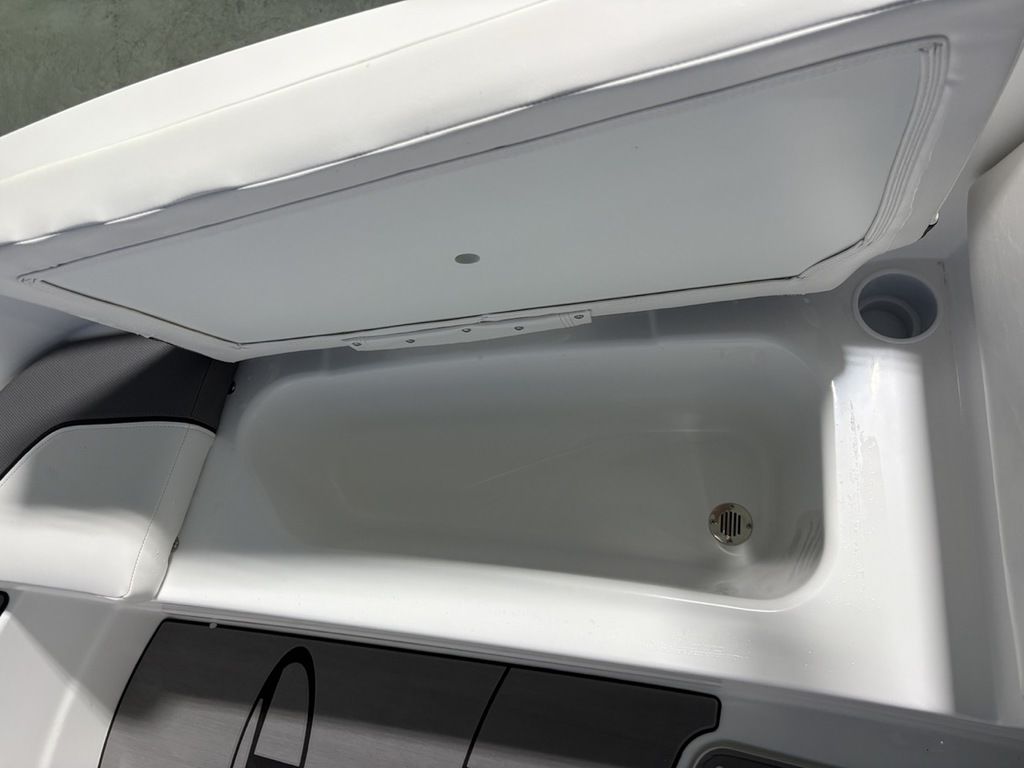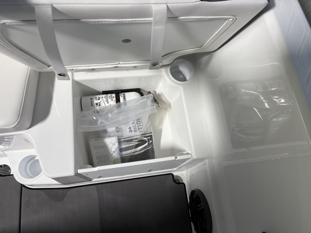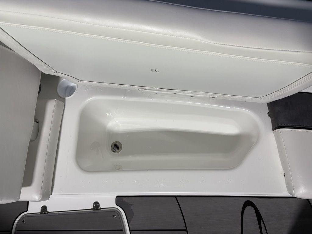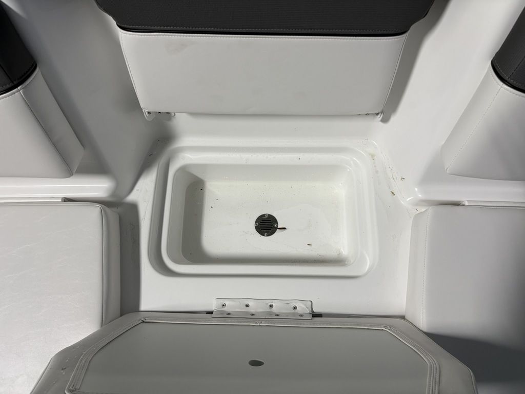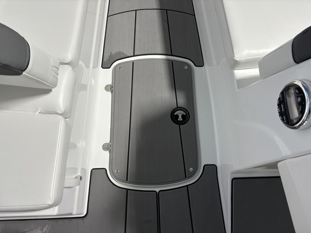 Relax on the water in this boat's midship bench seating and twin forward lounges with under-seat storage. The bow seats have reversible backrests that turn them into spotter seats. Lay out on the aft sun pad when you find your cove. The 4-step telescoping aft boarding ladder makes it easy to get back on the swim platform after diving into the water. Flip-up seat cushions and flip-down seat backs let passengers board the boat without stepping on upholstery. Claim 1 of the 9 drink holders, find your song on the 2-speaker Kicker® stereo, and search for excitement on the water!