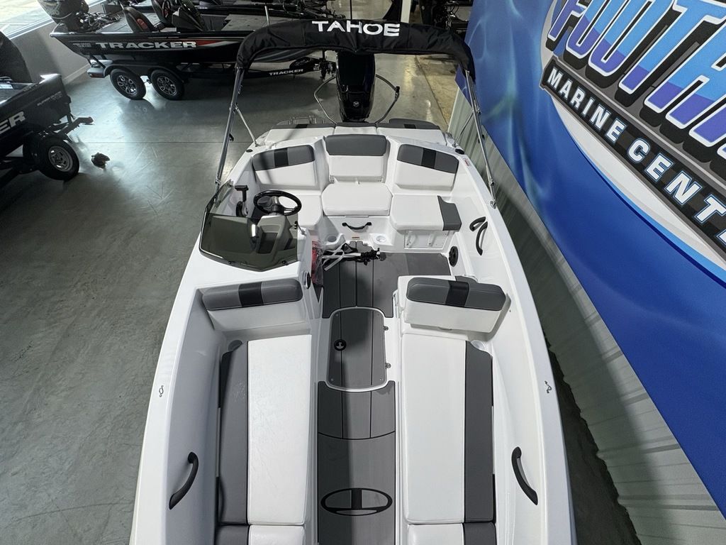 This affordable introduction to the TAHOE® family is a 6-passenger sports boat built to perform. Its POWERGLIDE® hull design features HYDROSTEP strakes that deliver exciting and stable riding experiences. Use the 7" TAHOE CRUISE touch screen to monitor GPS-accurate speed, water depth, your motor's vitals, and more. Opt for the available TurboSwing® to prepare your T16 for watersports.
