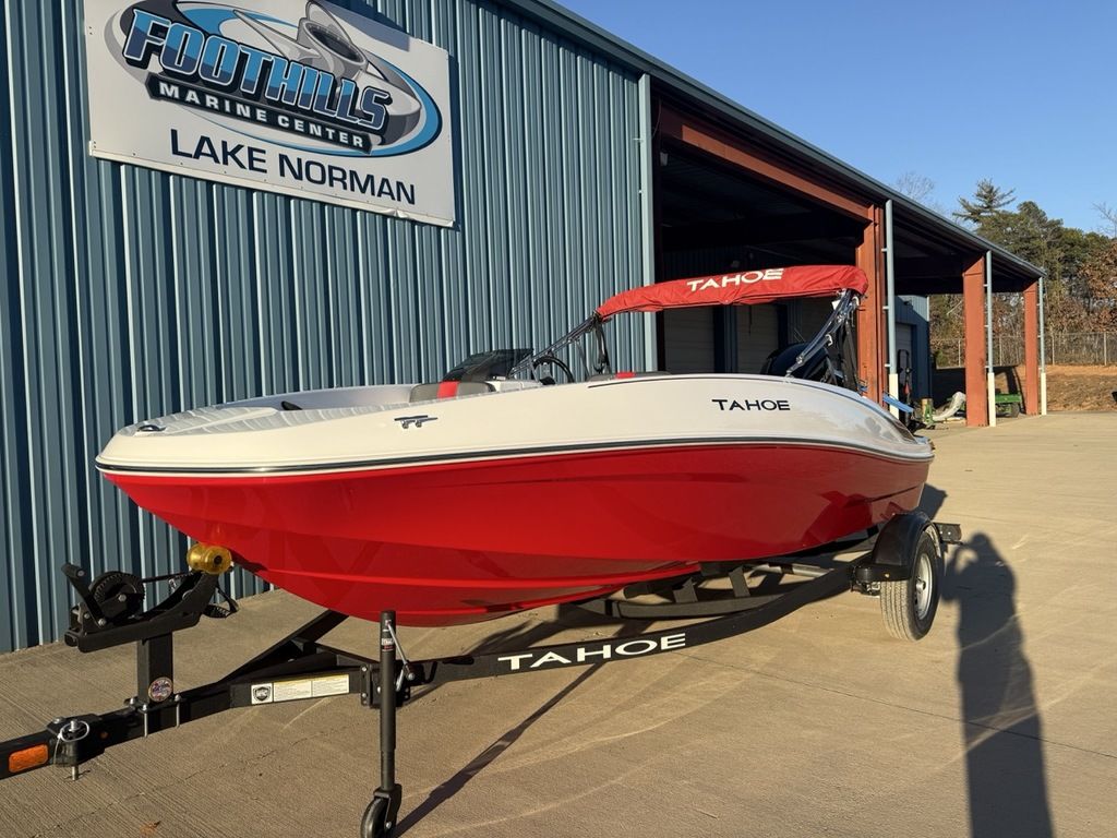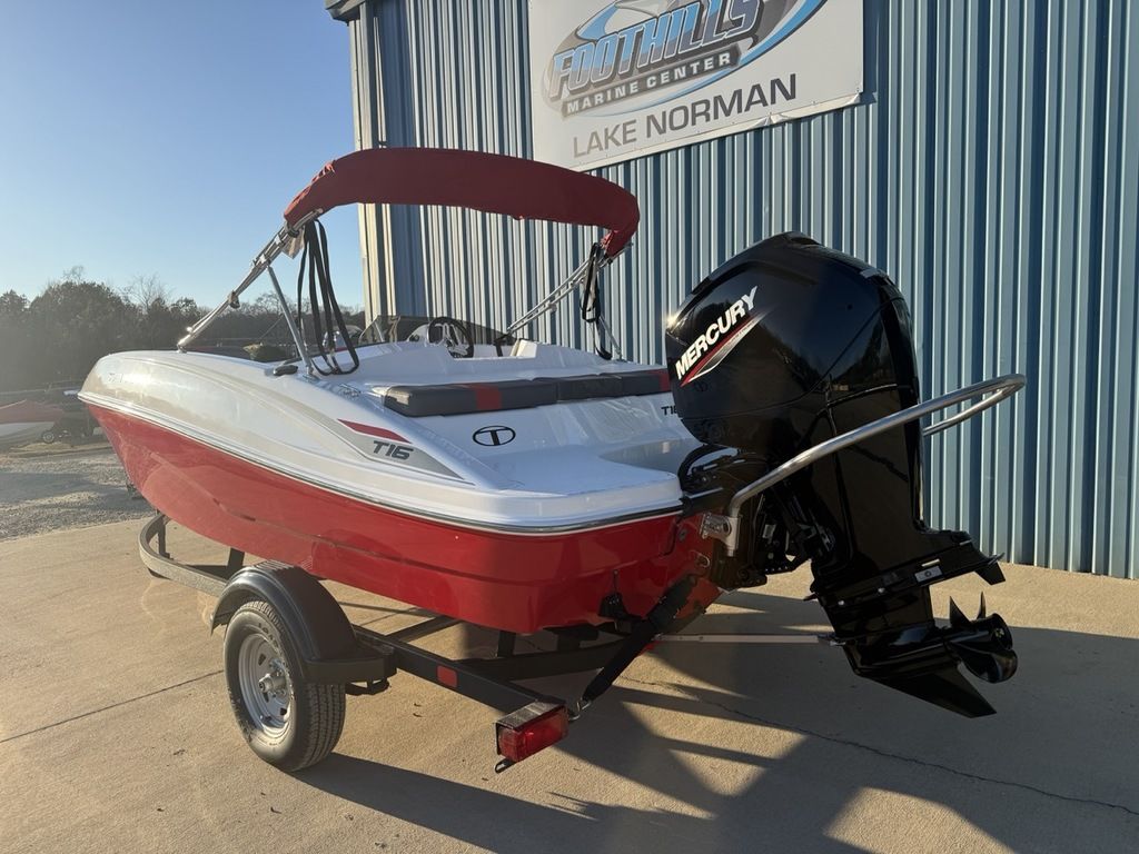 The 2026 TAHOE® T16 comes standard with a 60hp Mercury® ELPT FourStroke outboard motor and has a recommended maximum 75hp rating. This model is packaged with a trailer.