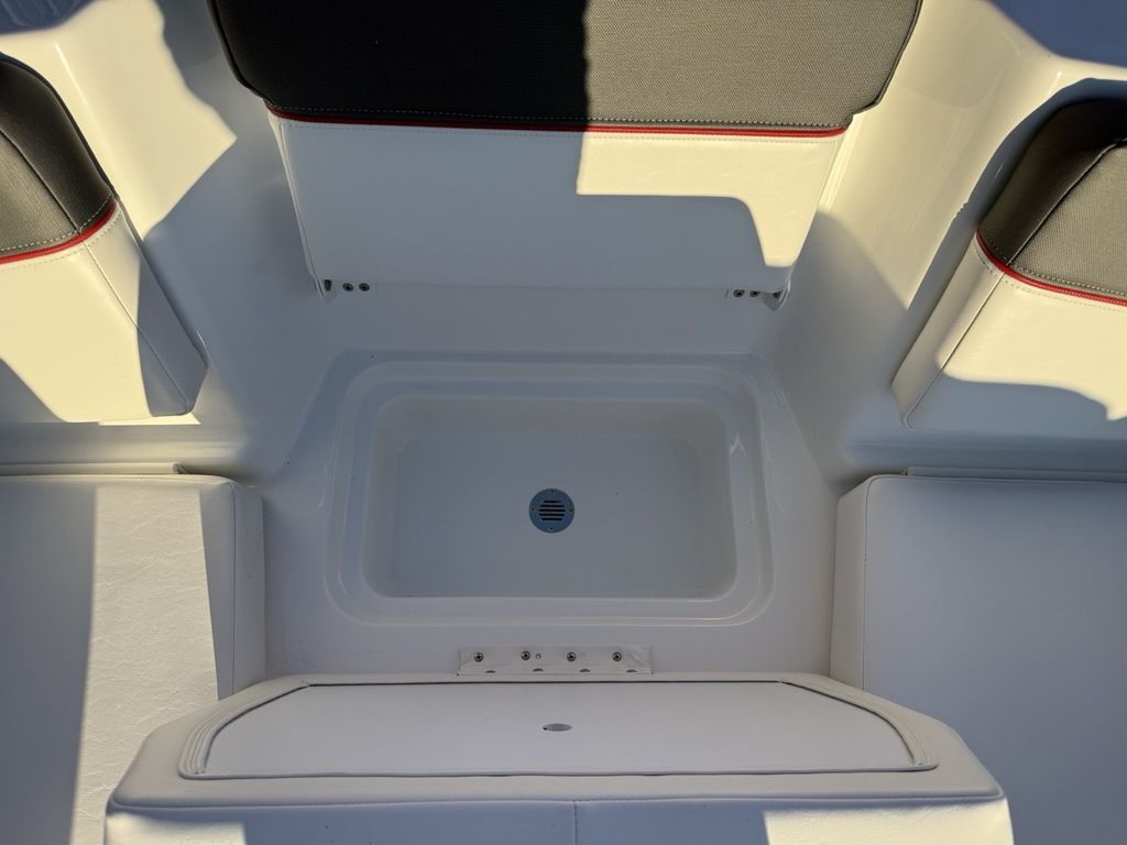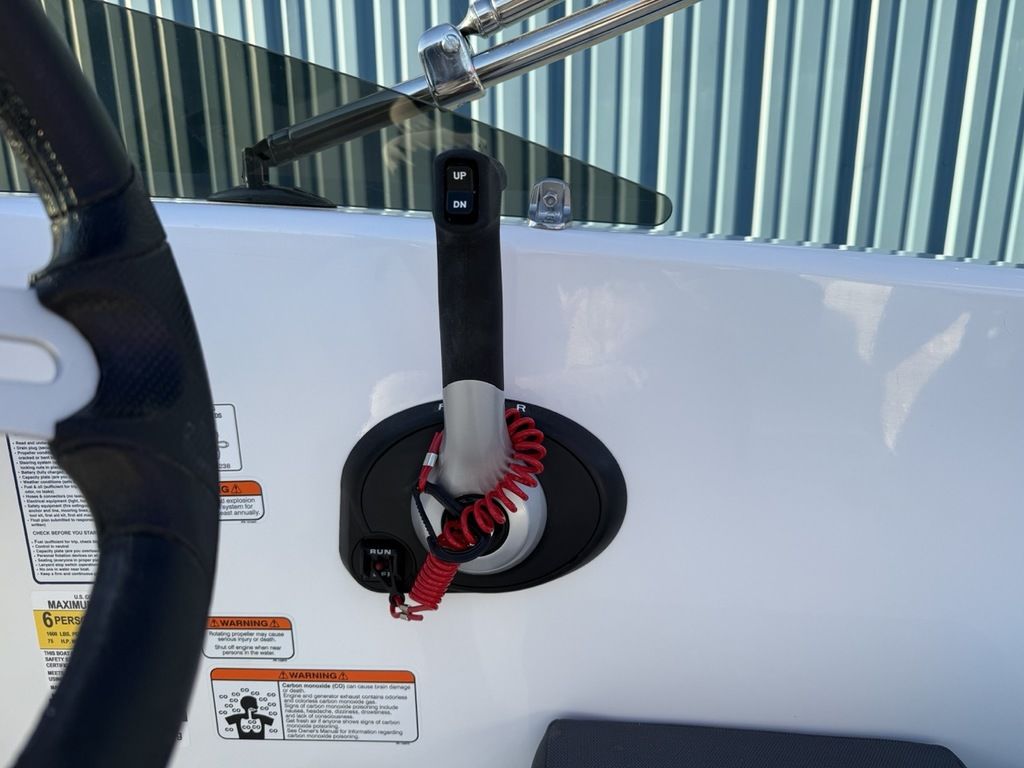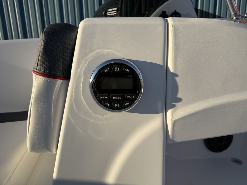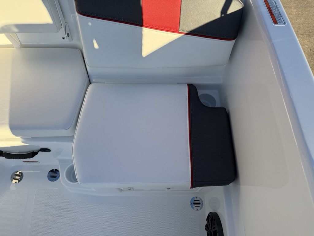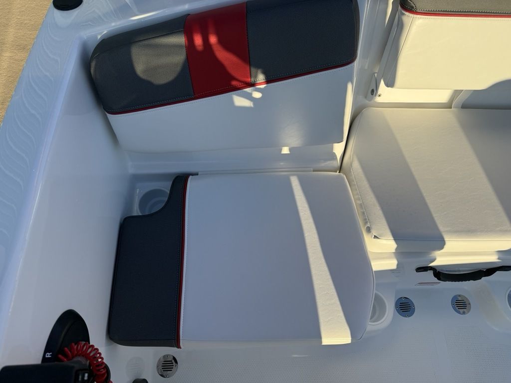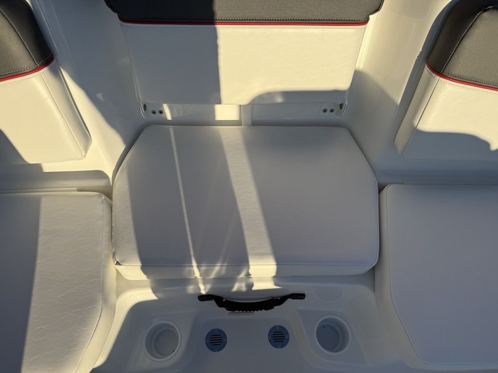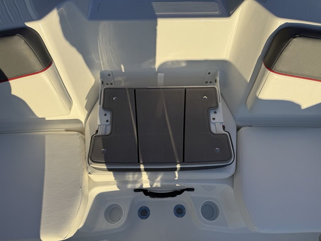Relax on the water in this boat's midship bench seating and twin forward lounges with under-seat storage. The bow seats have reversible backrests that turn them into spotter seats. Lay out on the aft sun pad when you find your cove. The 4-step telescoping aft boarding ladder makes it easy to get back on the swim platform after diving into the water. Flip-up seat cushions and flip-down seat backs let passengers board the boat without stepping on upholstery. Claim 1 of the 9 drink holders, find your song on the 2-speaker Kicker® stereo, and search for excitement on the water!