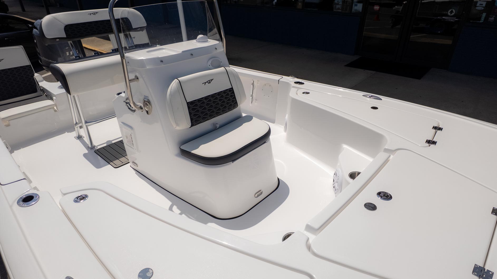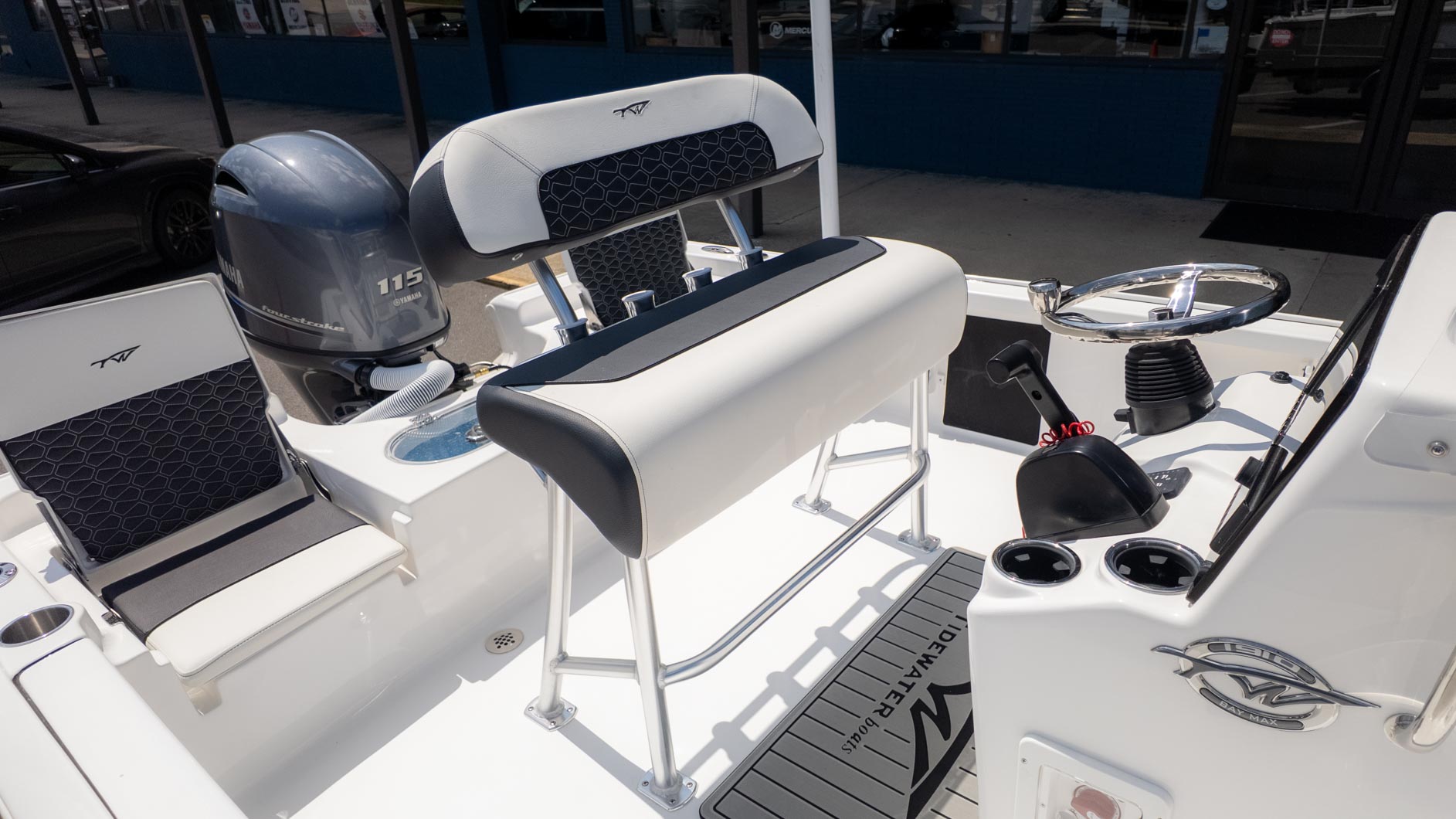 Designed with fun in mind, the 1910 BM features a layout that keeps everyone comfortable and ready for adventure. You'll find stern flip-up jump seats on both the port and starboard sides, providing plenty of room for guests to relax. For the captain, a leaning post with a removable backrest provides both comfort and support.