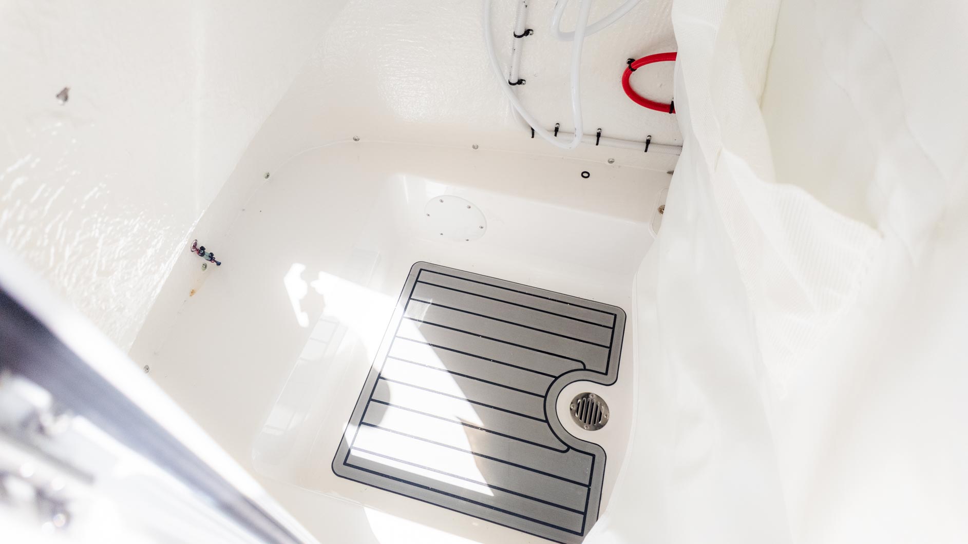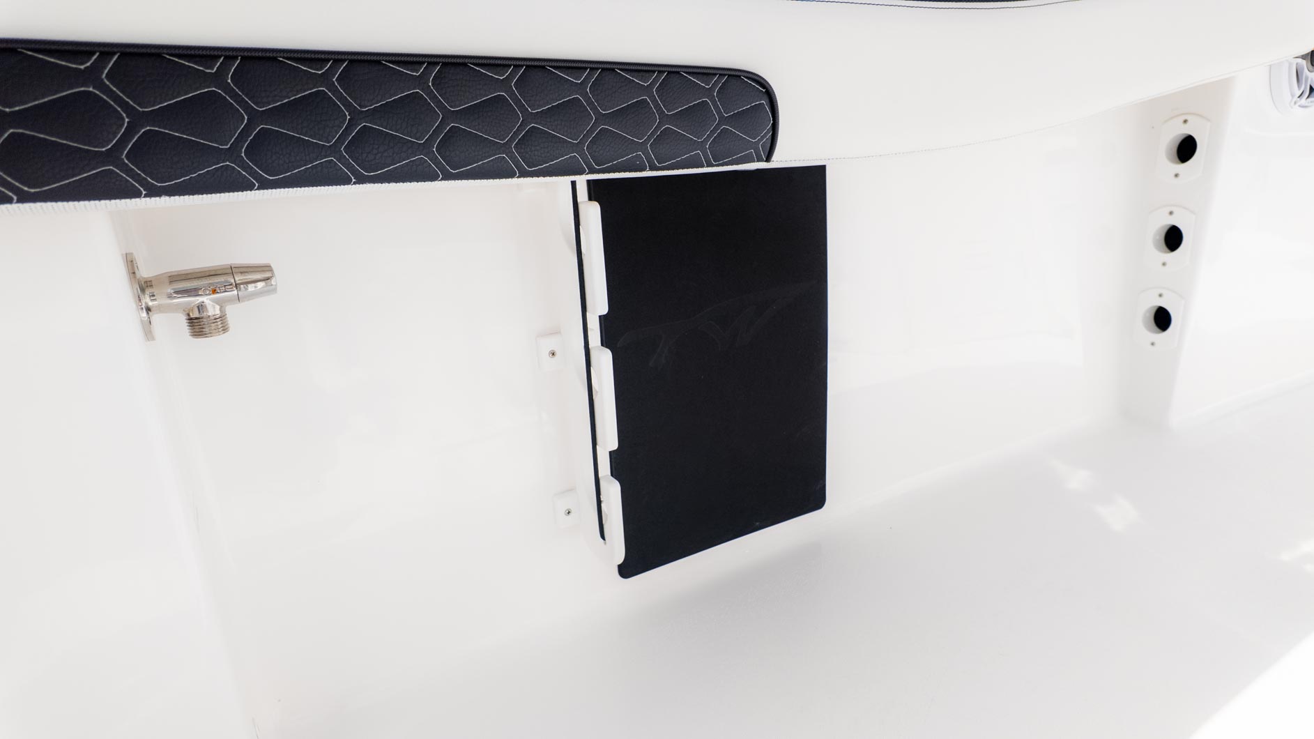 After a successful day of fishing, you can convert the boat for relaxation and fun with the family. The fold-down transom seat and custom hinged bow backrests offer plenty of seating. With a freshwater shower and swim ladder, you can cool off with a quick dip and rinse off the salt. The JL MM 105 sound system with six JL speakers will keep the party going all day long. With features like these, you can easily go from a hardcore fishing trip to a family sandbar day without a hitch.
