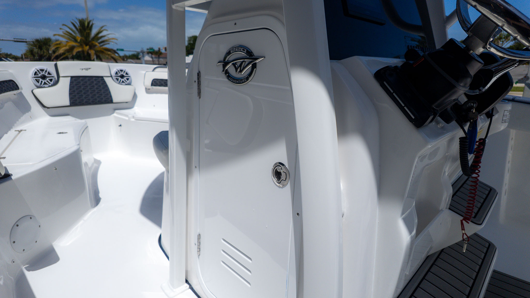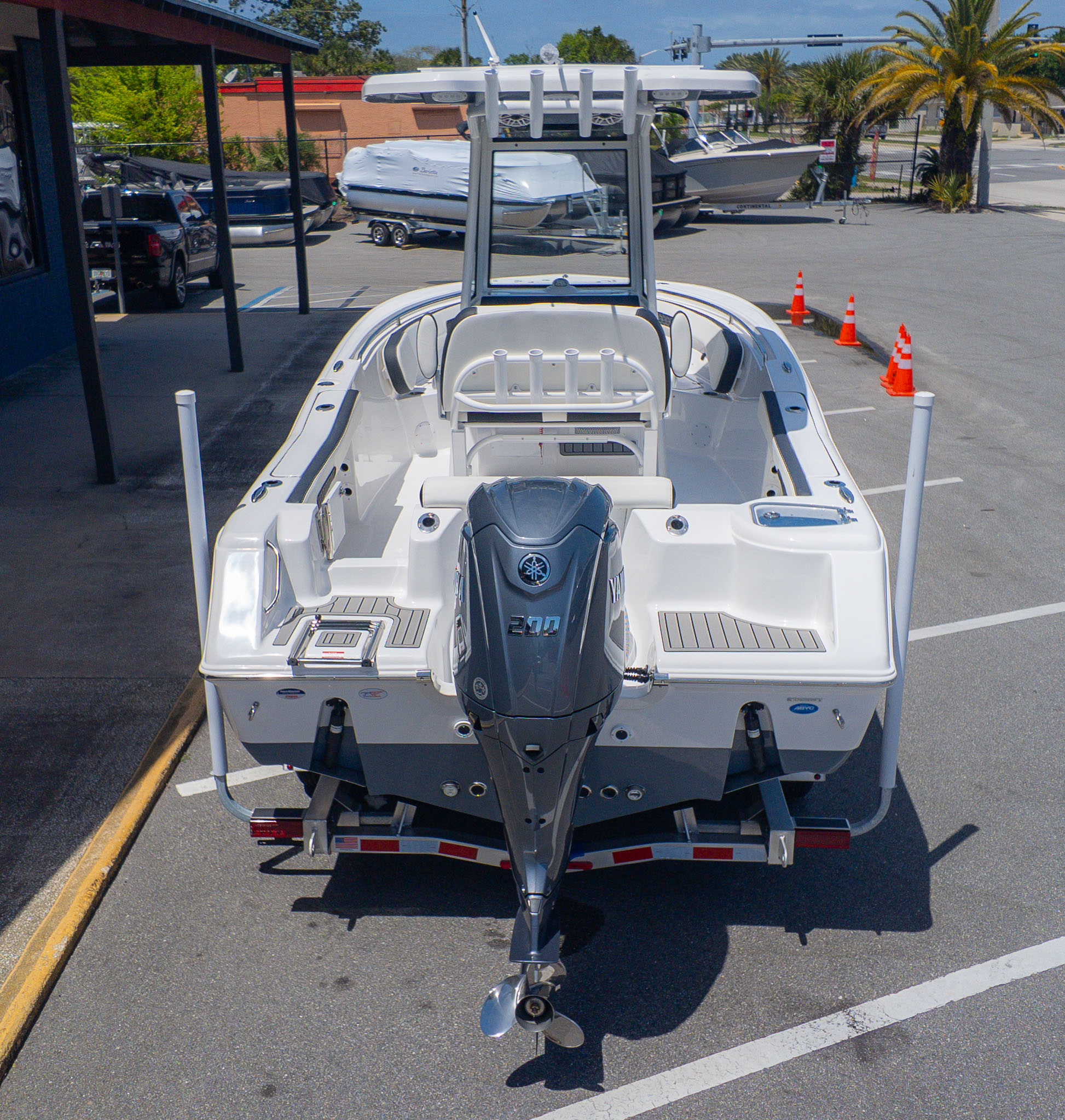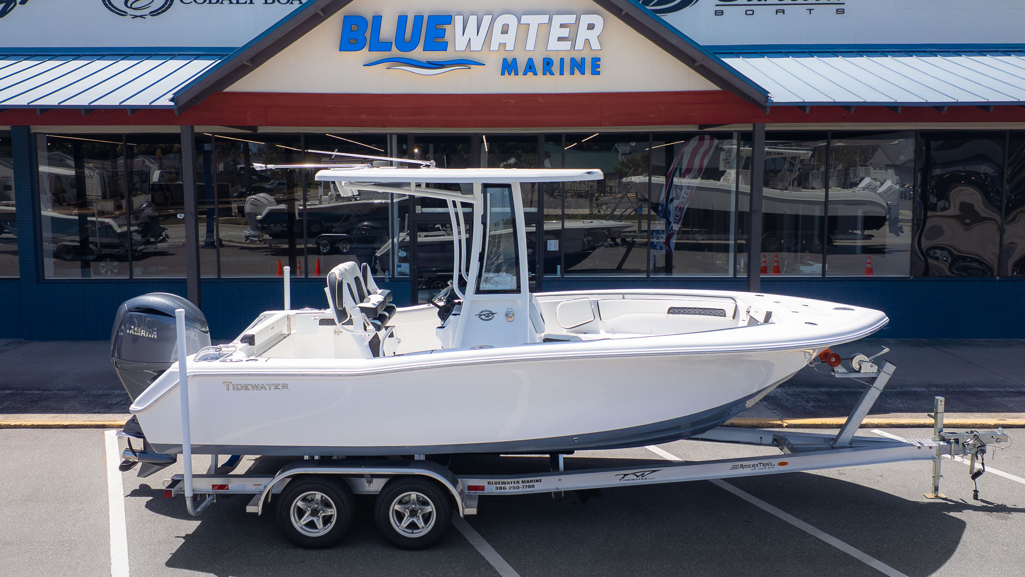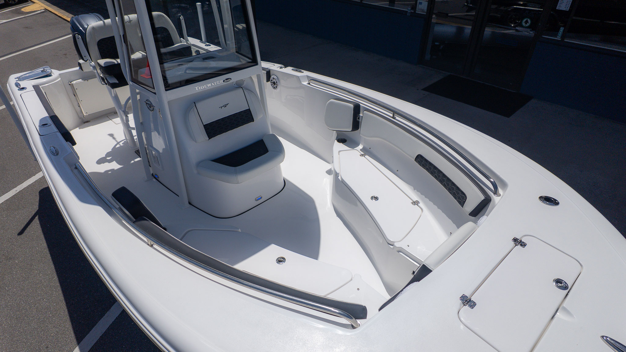 With its Oyster Gray hull and sleek fiberglass T-top, you’ll be the envy of the marina. Whether you are exploring hidden coves, pulling up to a dockside restaurant using the convenient pull-up cleats, or taking a sunset dip via the transom ladder, this Tidewater is designed to maximize your time on the water. It’s not just a boat; it’s your new favorite weekend destination.