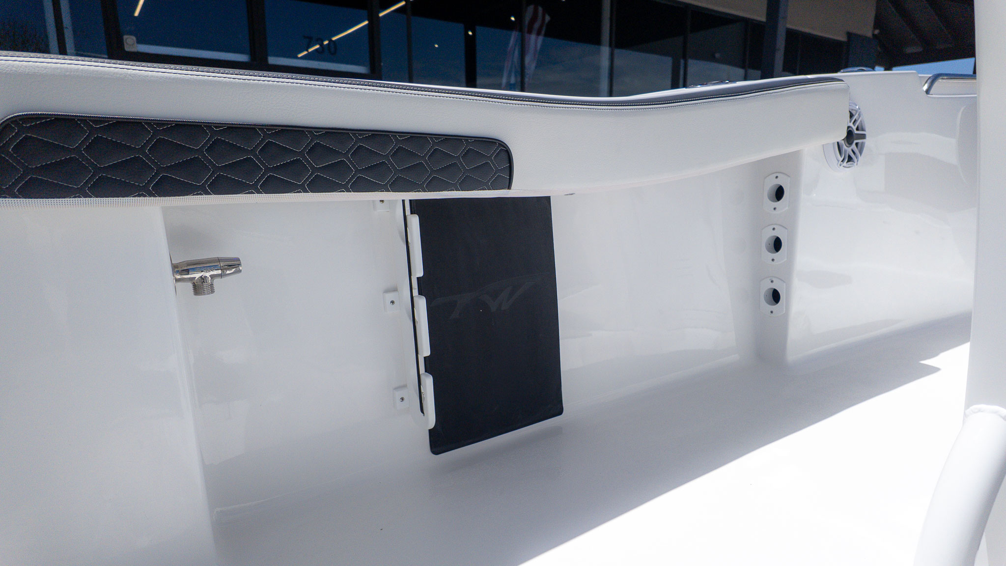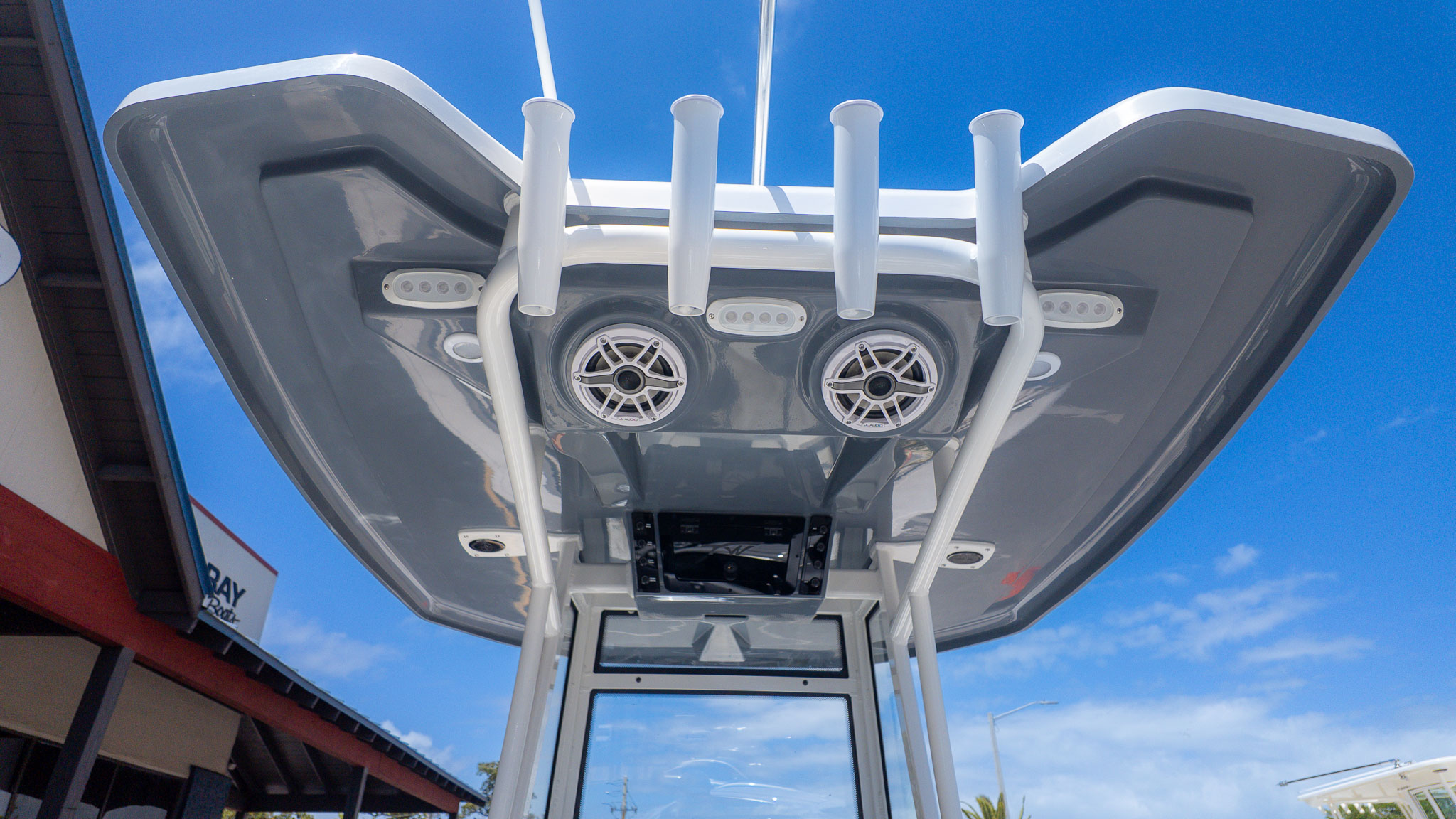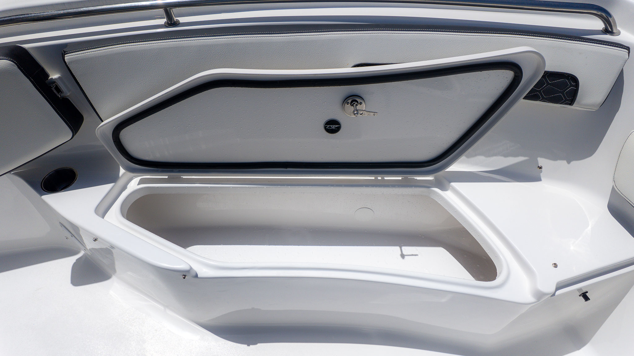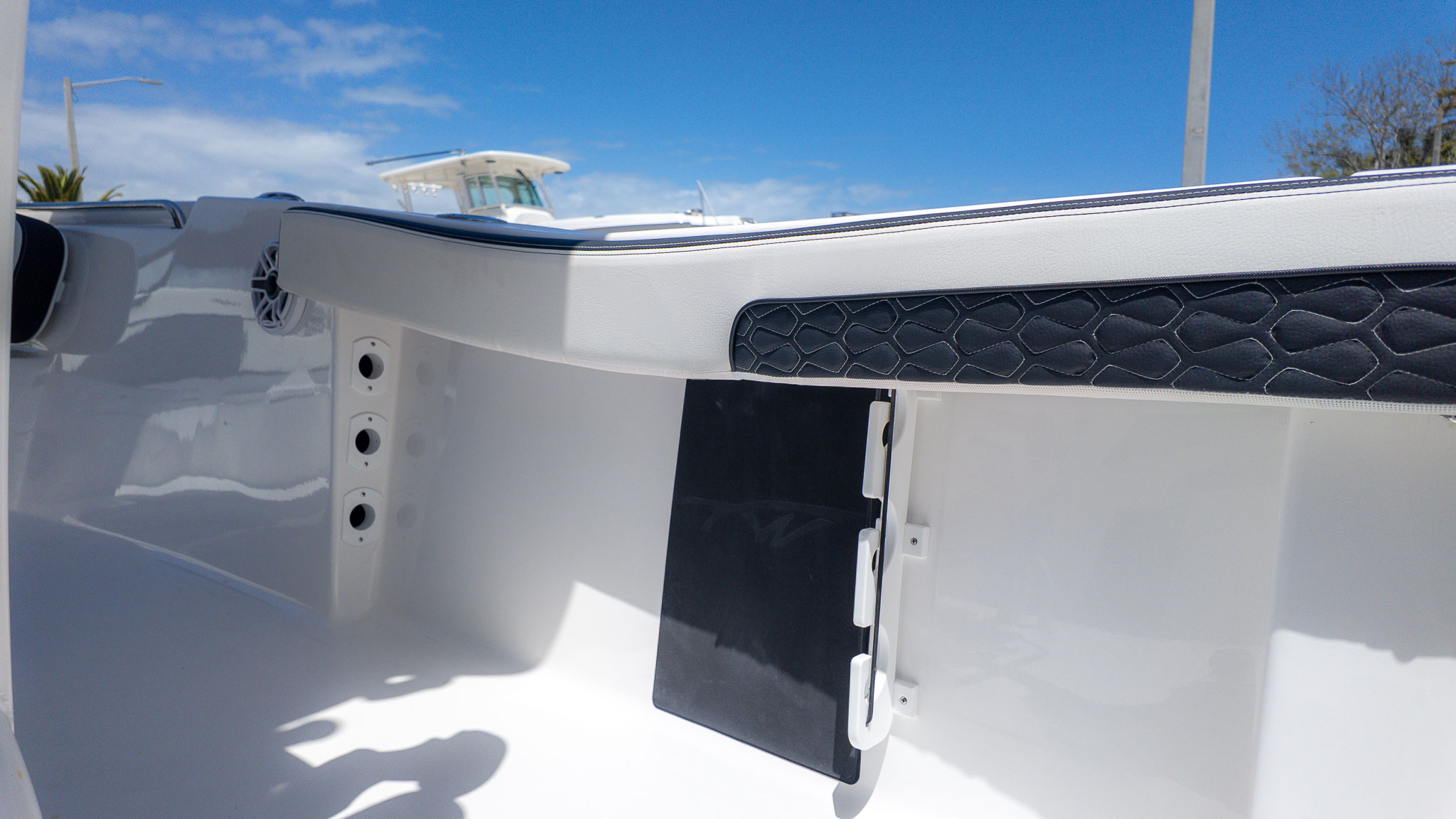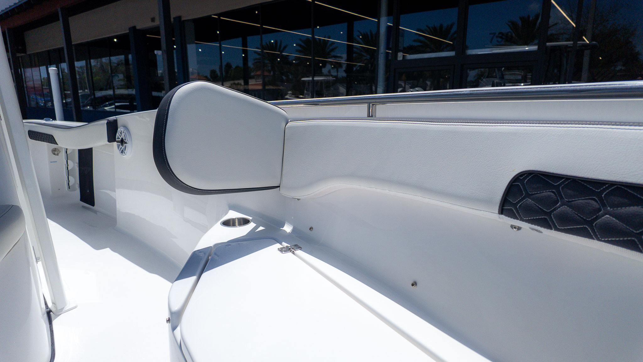 Entertainment is built into its DNA, featuring a high-end Fusion RA-770 sound system paired with six JL Speakers to keep the vibes high. For those focused on the catch, the 26-gallon aerated livewell and integrated Garmin electronics ensure you have the tools to find the big ones. Meanwhile, the comfort-seekers will gravitate toward the plush bow bolsters and the clever flip-out backrests that transform the front of the boat into a premium lounge.