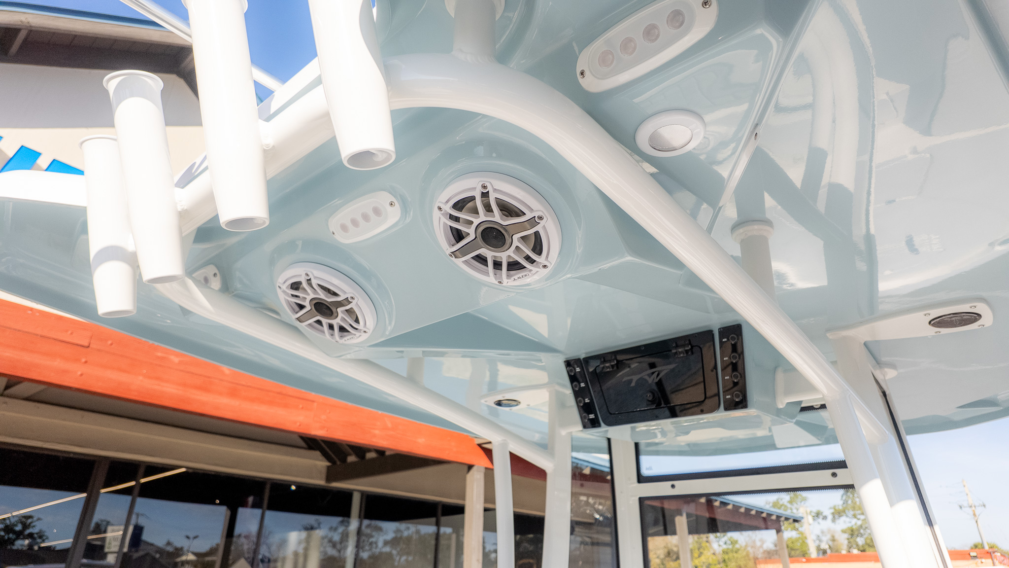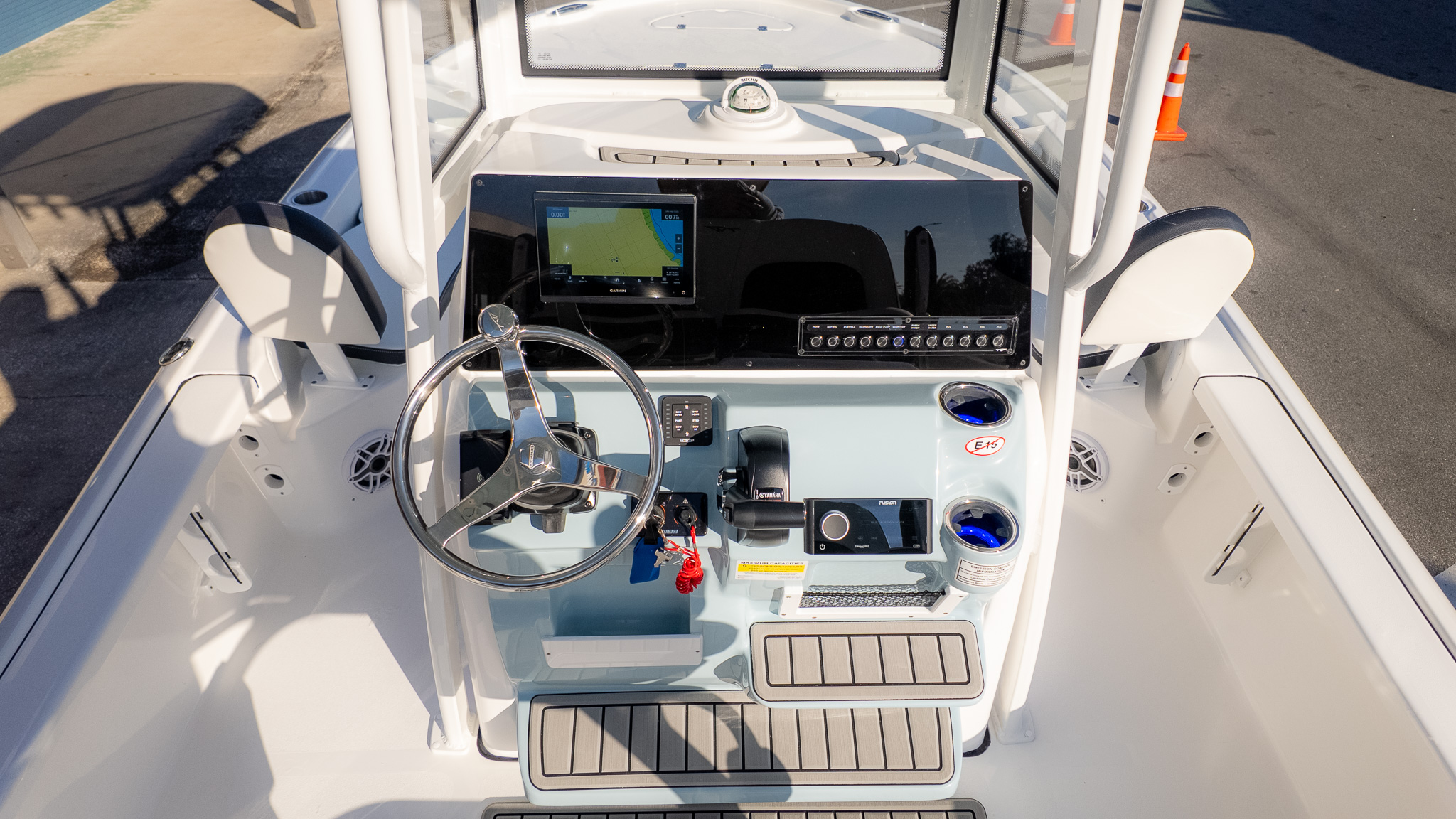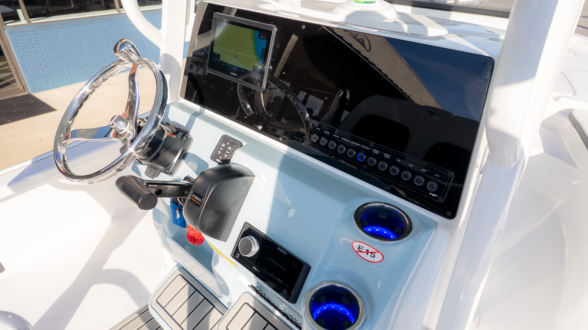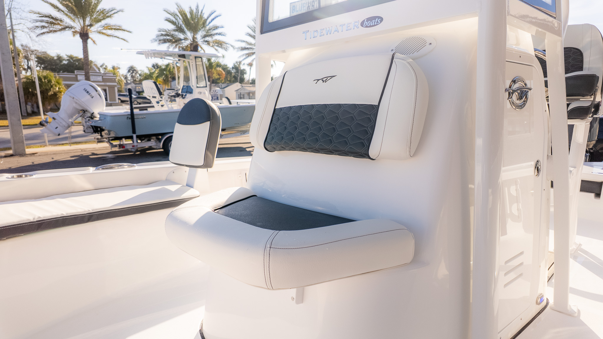 When it is time to switch gears for family day, the 2210 CB shines with comfort features like the flip-up stern bench seat and plush bow cushions with backrests. The fiberglass T-Top provides a stylish escape from the sun while the JL Audio system, complete with a 6-channel amp and M6 speakers, ensures your favorite playlist is the soundtrack to every sunset cruise. For those who love a refreshing dip, the integrated swim platform with a three-step ladder makes water access a breeze. Powered by a Yamaha F 200 XD, this boat delivers a dry, stable ride thanks to Tidewater's signature Carolina flare, making it as impressive a "family fun machine" as it is a tournament-ready rig.