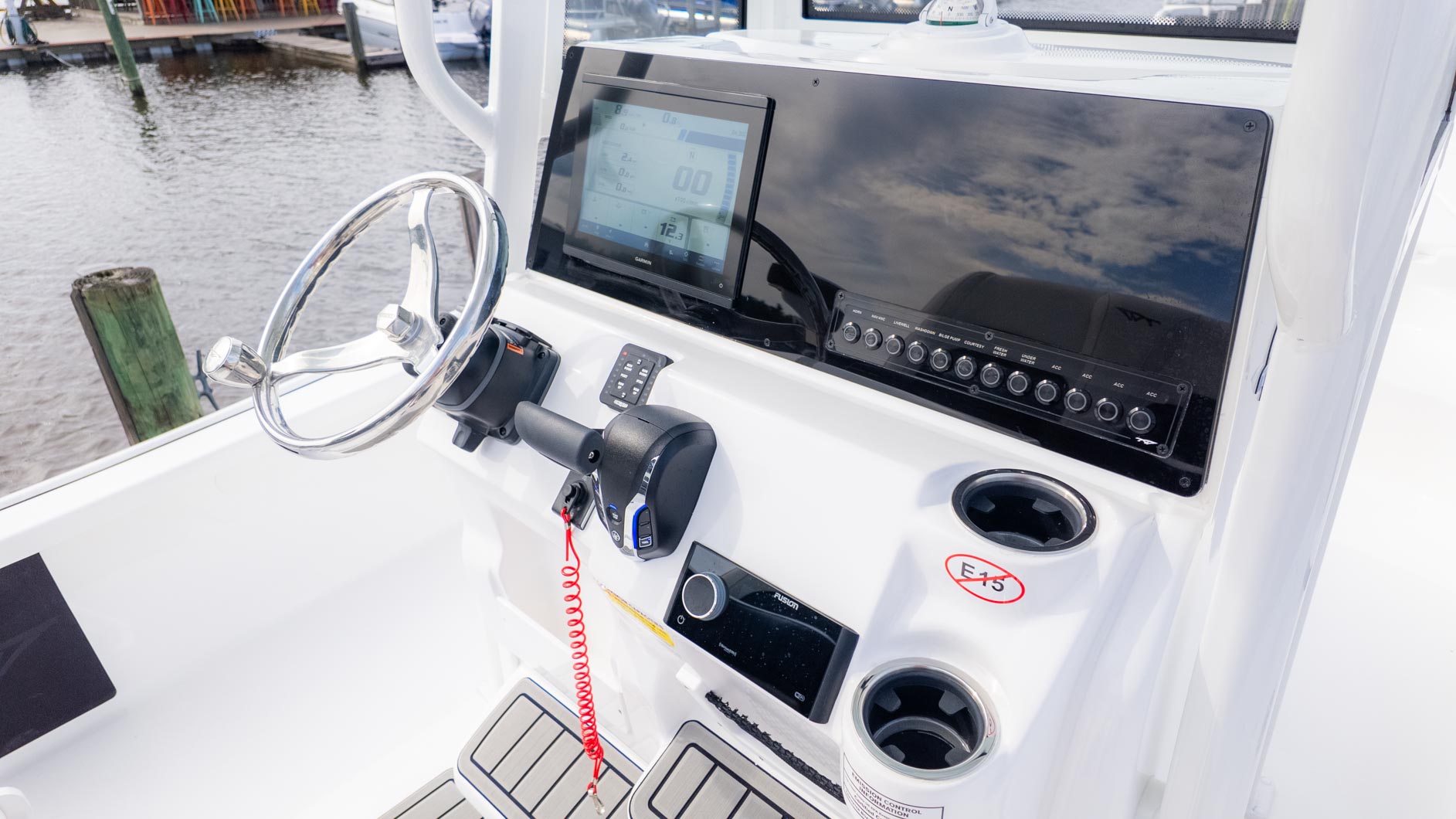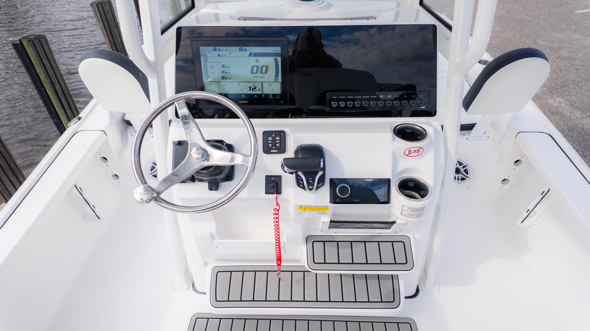The Tidewater 2210 CB comes with a variety of features to enhance your boating experience. The fiberglass T-Top with a glass enclosure provides shade and protection from the elements, while the JL audio system with four M6 JL speakers and a 6-channel amp ensures your favorite tunes are always on hand. The dual battery switch and raw water wash down are convenient additions, and the Lumitec Sea Blaze Mini RGBW underwater lights add a touch of flair for evening cruises. With its blend of fishing-friendly features and entertainment options, this boat is a fantastic choice for anyone who loves to have a good time on the water with a Yamaha F 250 XB.