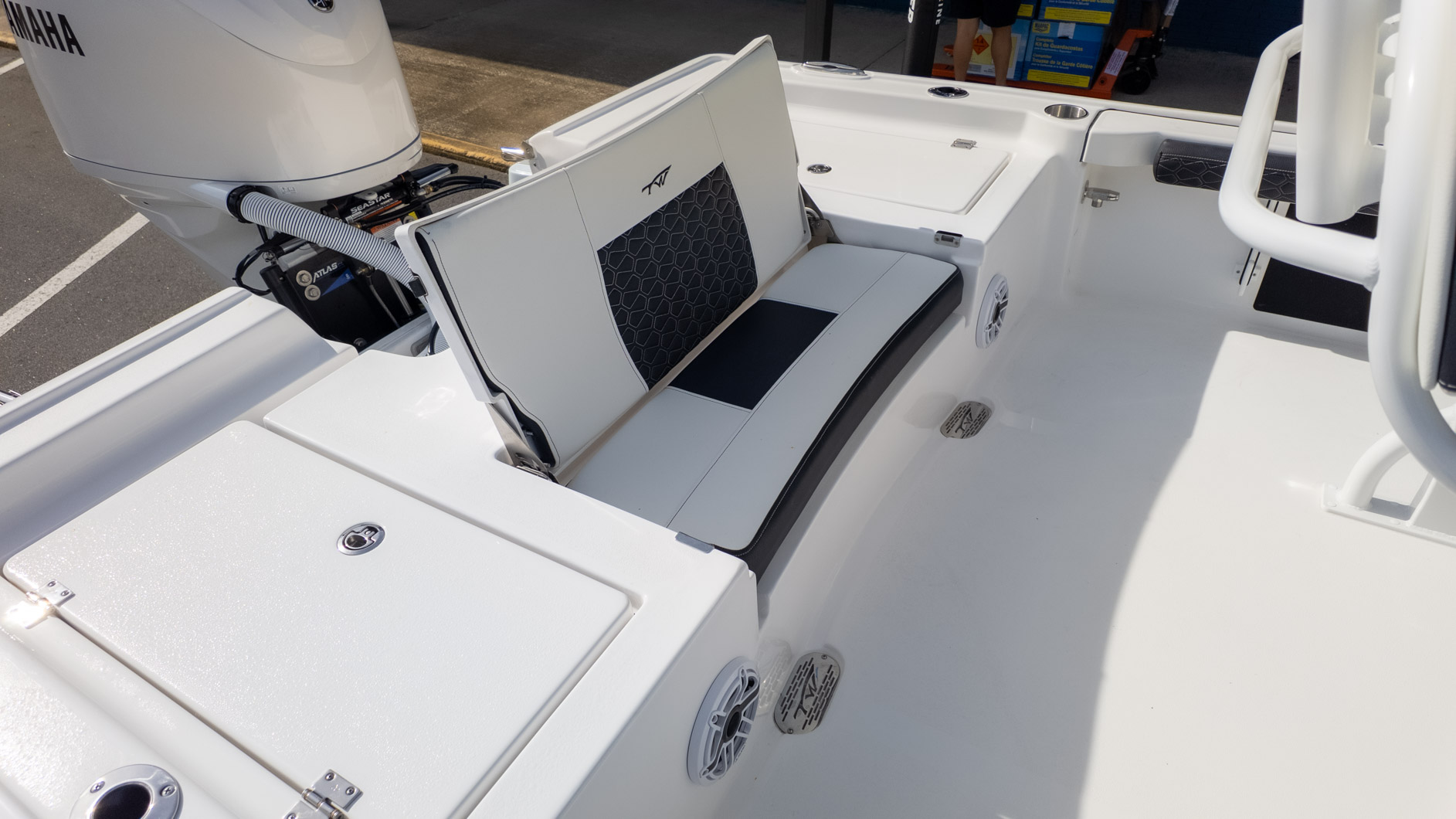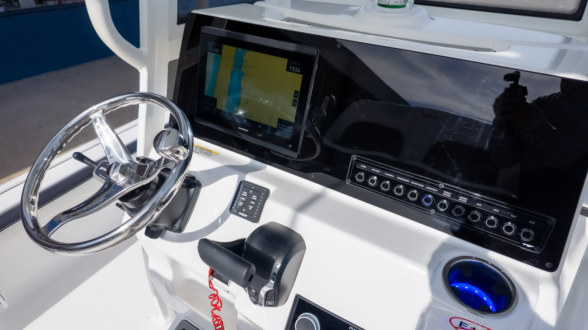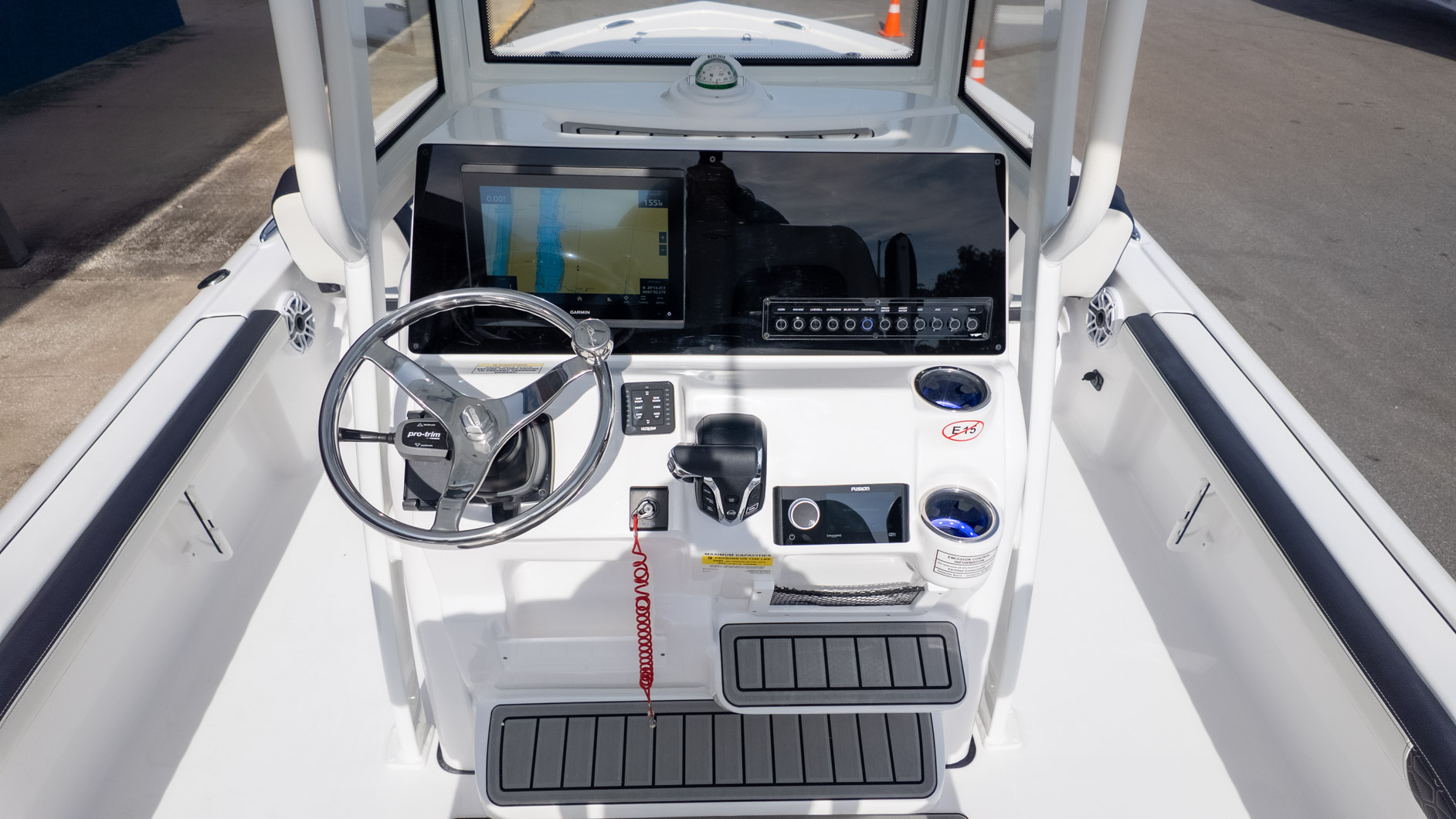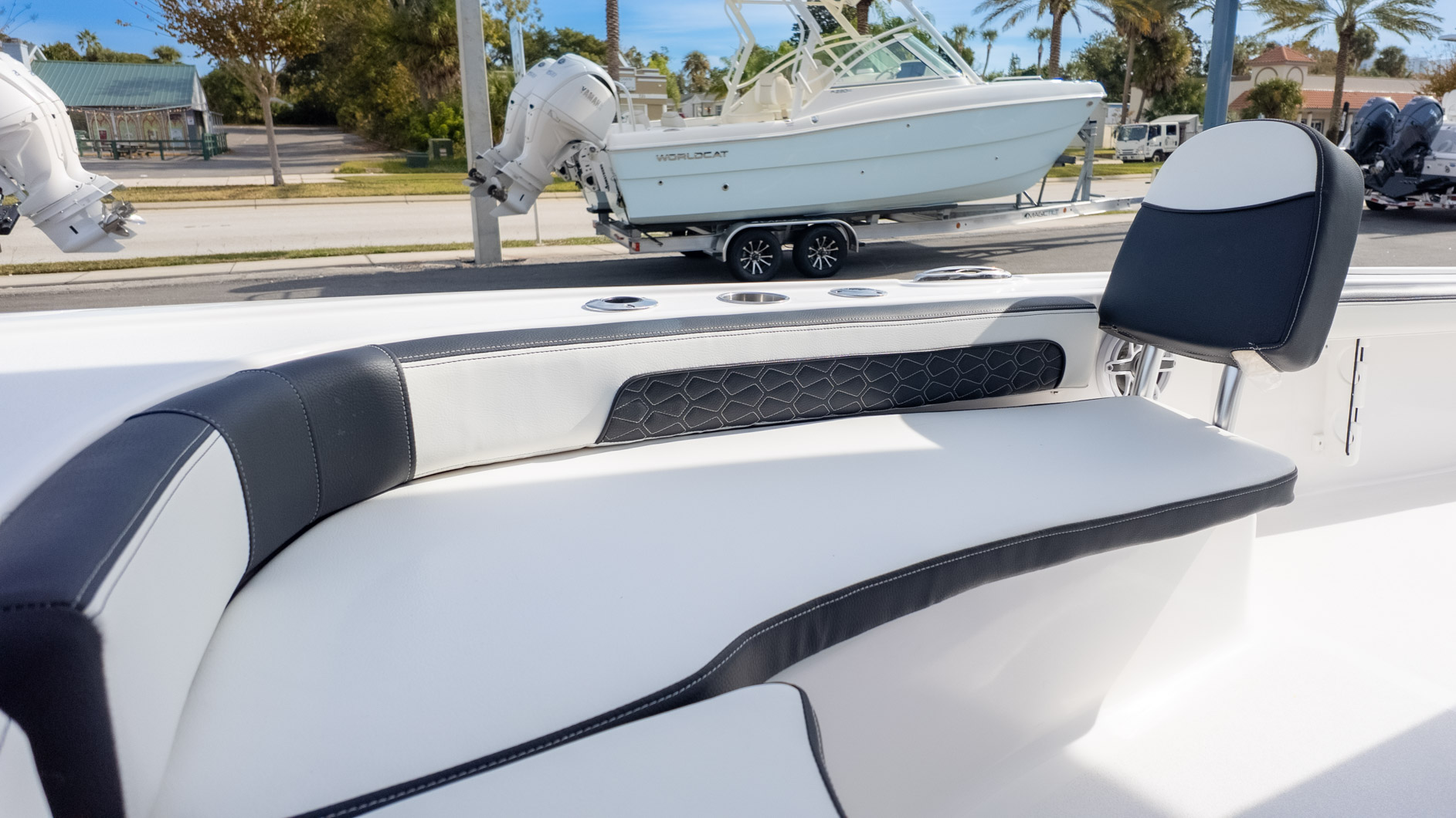 The boat is powered by an included Yamaha digital engine, known for its smooth performance. A few luxurious touches like the Lumitec Sea Blaze Mini RGBW underwater lights and a Fusion RA-770 stereo system with JL speakers mean the party continues well after sunset. Whether you’re casting a line or just enjoying the sunset, the 2300 CB is built for making memories.