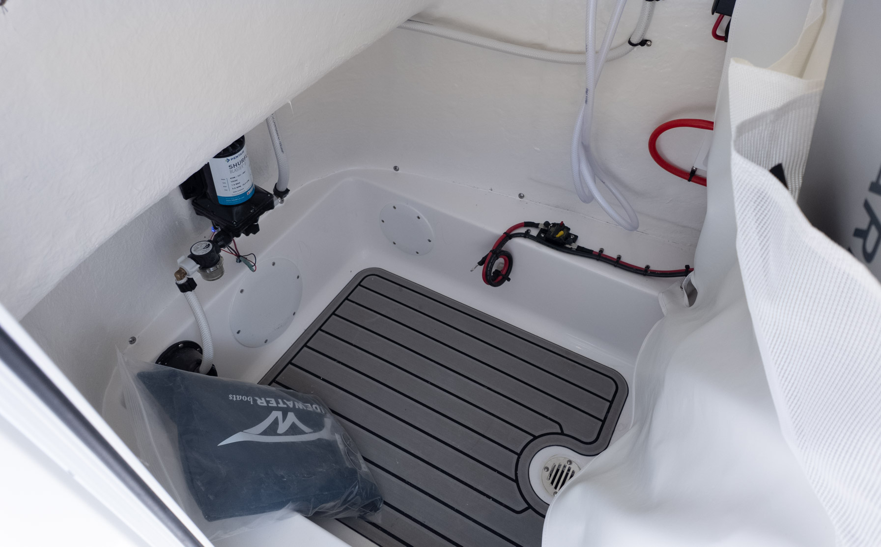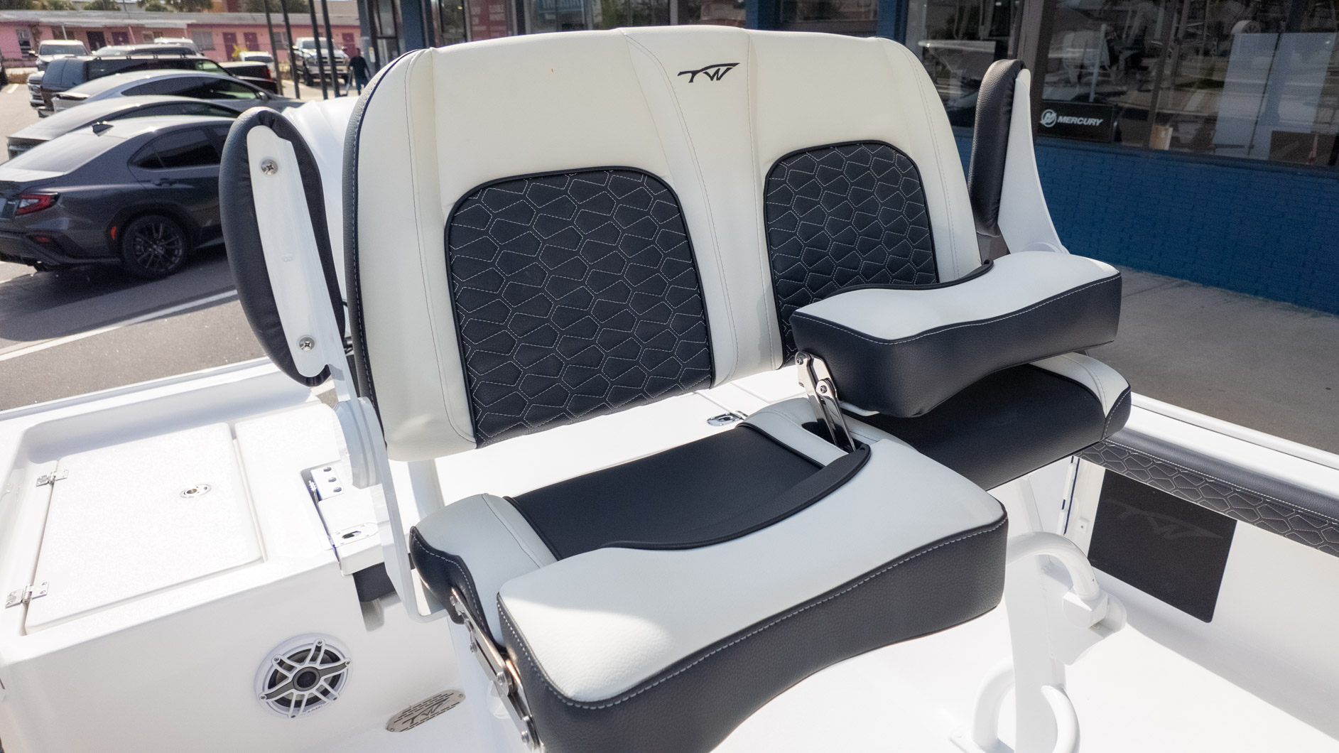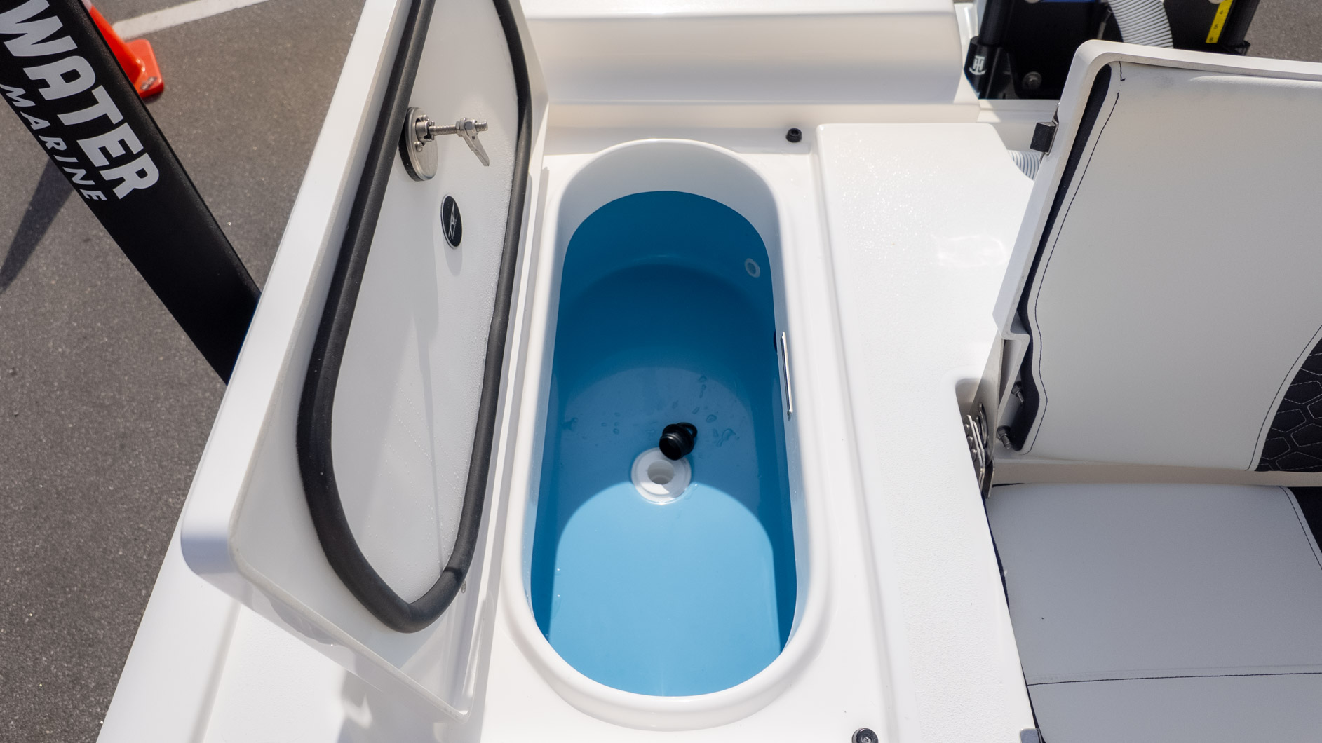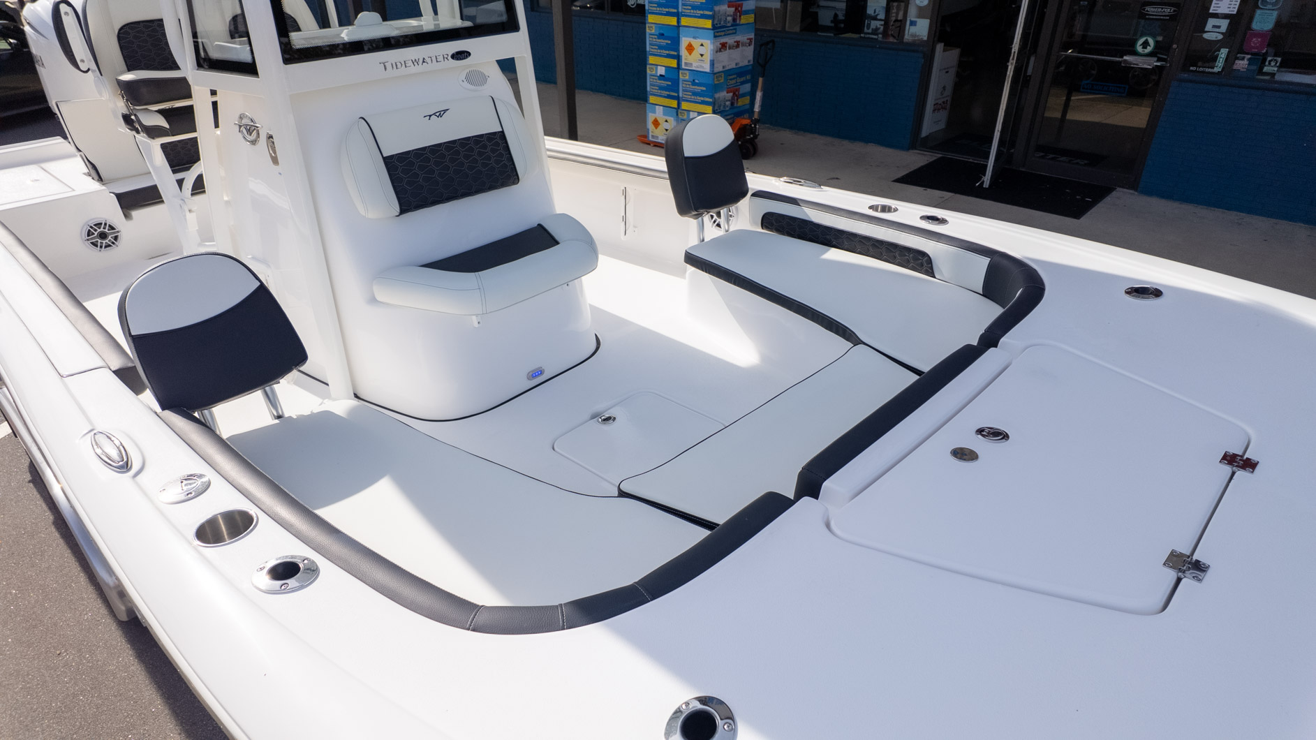 Dedicated anglers will appreciate the dual 30-gallon insulated stern livewells and the 12-gallon insulated bow livewell, perfect for keeping bait fresh all day. But this boat is also ready to transition to cruising and sandbar hopping. The spacious layout features bow seat cushions with a backrest and a comfortable forward console seating area, providing plenty of spots for the crew to relax. When it’s time for a dip, the dual swim platforms with a three-step ladder make getting in and out of the water a breeze.