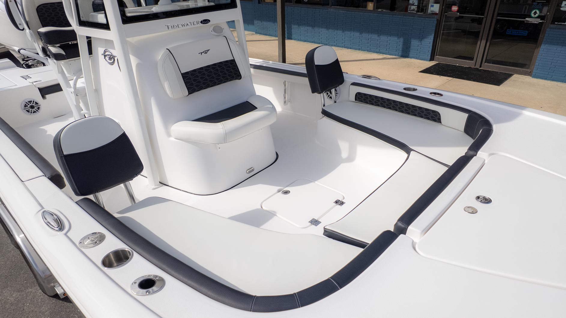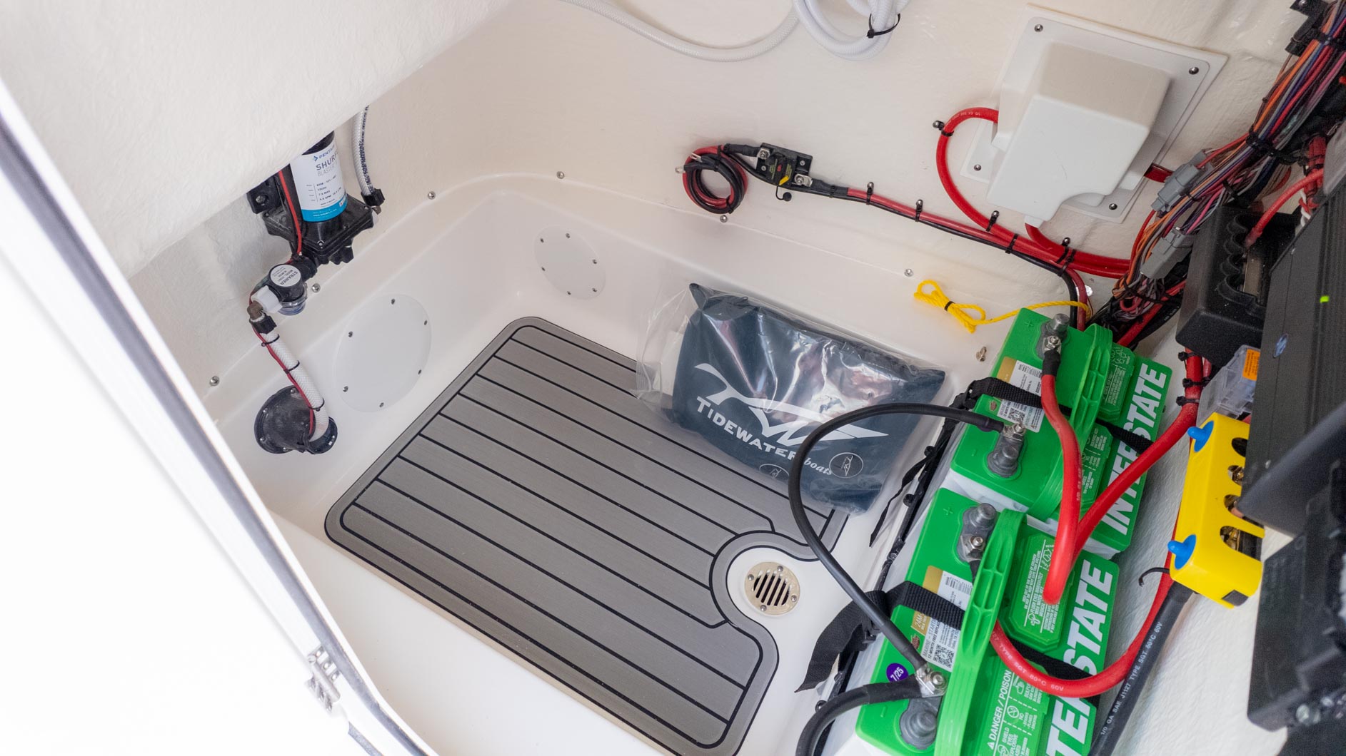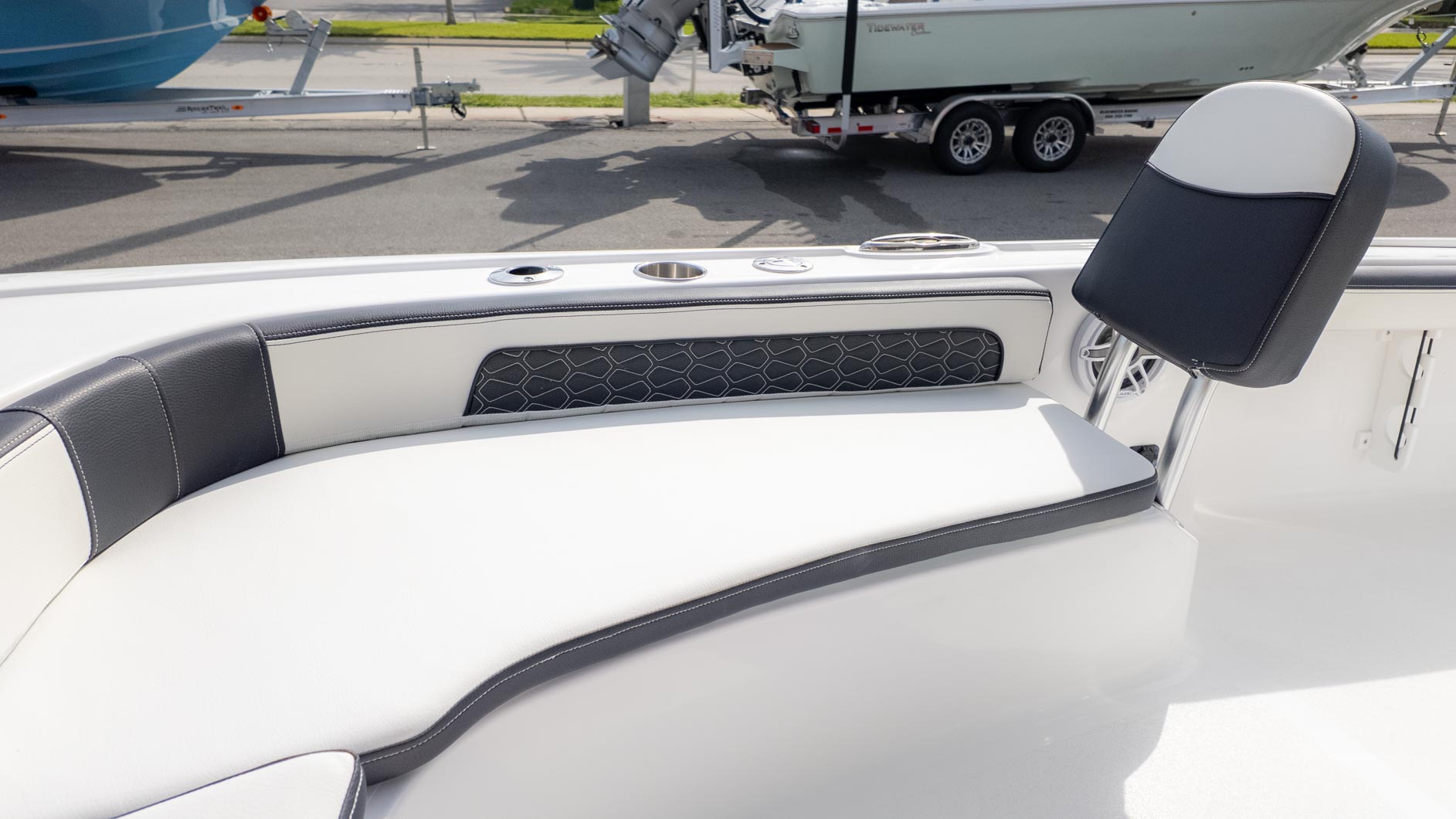 Beyond the impressive storage, the 2300 CB is packed with amenities that elevate your boating experience. The deluxe drop bolster leaning post with tackle storage and a cooler slide is a game-changer for keeping your gear organized and easily accessible. A fiberglass T-top with a glass enclosure provides ample shade and protection from the elements, while the JL audio system ensures your favorite tunes are always on deck. The dual swim platforms with a three-step ladder make for easy boarding, whether you're taking a quick dip or just enjoying the view. The Tidewater 2300 CB is the ultimate vessel for those who love to fish and play on the water, offering a perfect blend of functionality and fun.