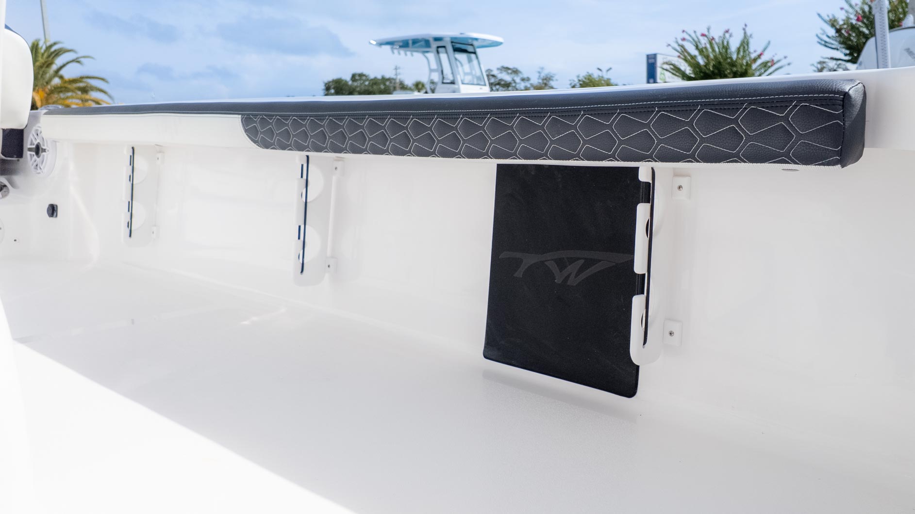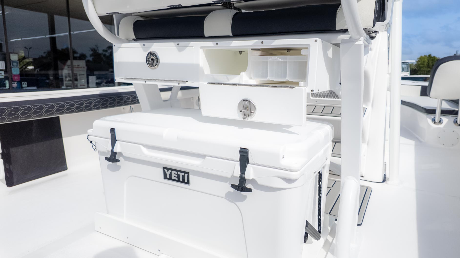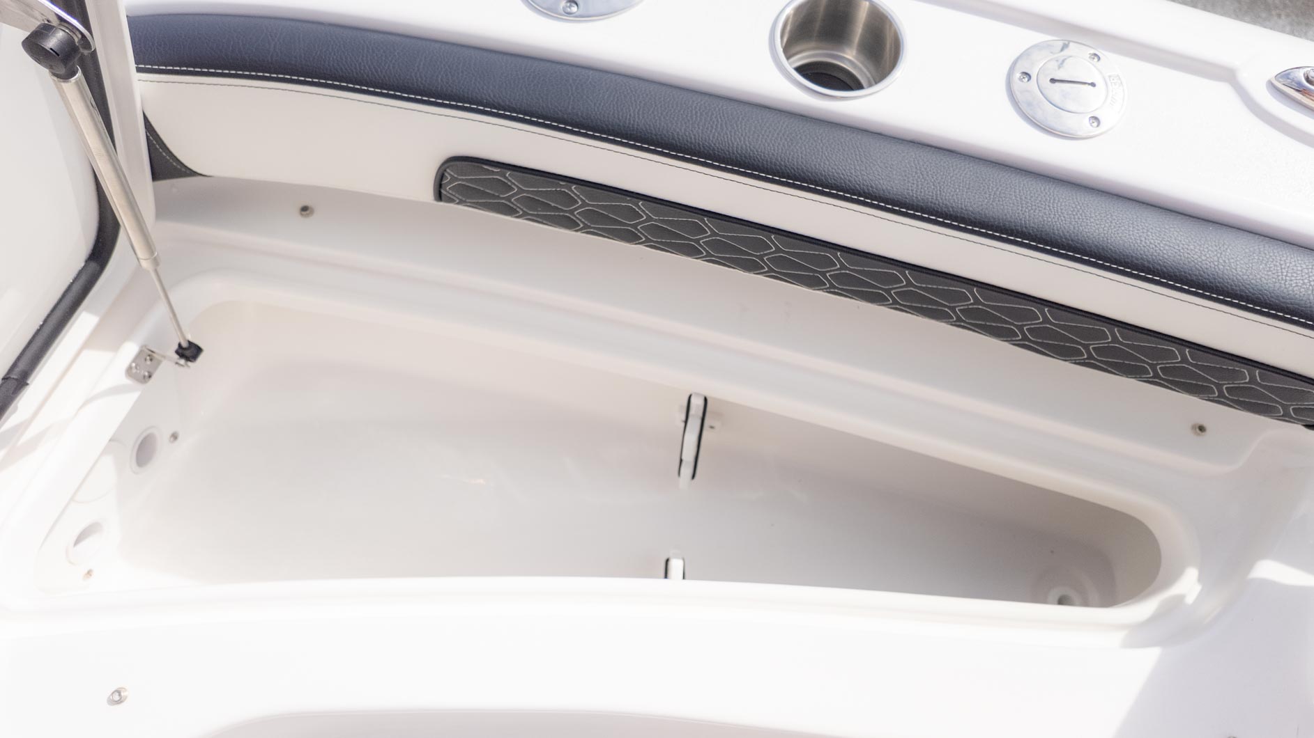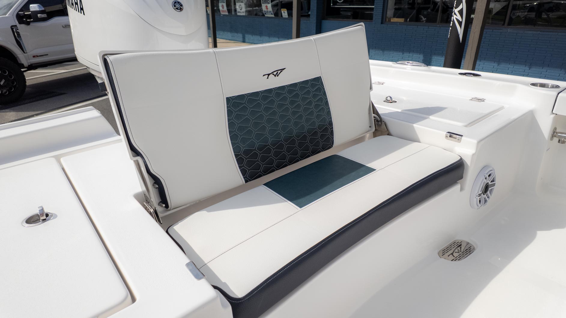 Beyond the impressive storage, the 2300 CB is packed with amenities that elevate your boating experience. The deluxe drop bolster leaning post with tackle storage and a cooler slide is a game-changer for keeping your gear organized and easily accessible. A fiberglass T-top with a glass enclosure provides ample shade and protection from the elements, while the JL audio system ensures your favorite tunes are always on deck. The dual swim platforms with a three-step ladder make for easy boarding, whether you're taking a quick dip or just enjoying the view. The Tidewater 2300 CB is the ultimate vessel for those who love to fish and play on the water, offering a perfect blend of functionality and fun.