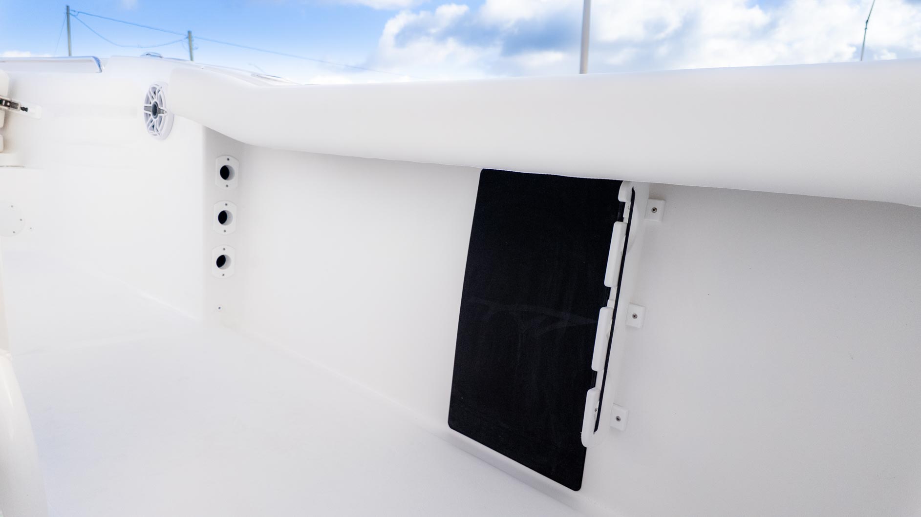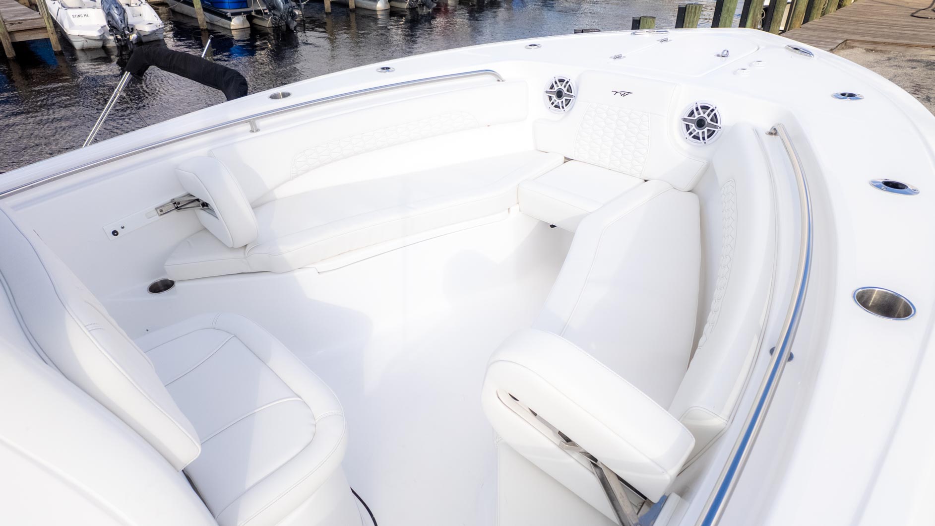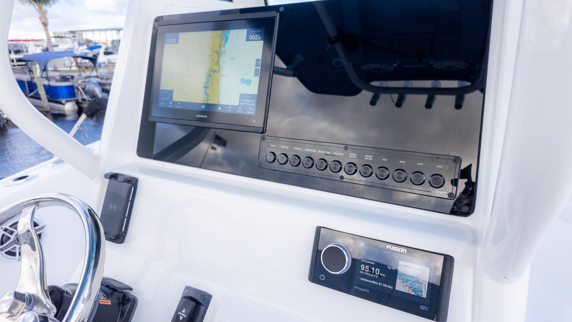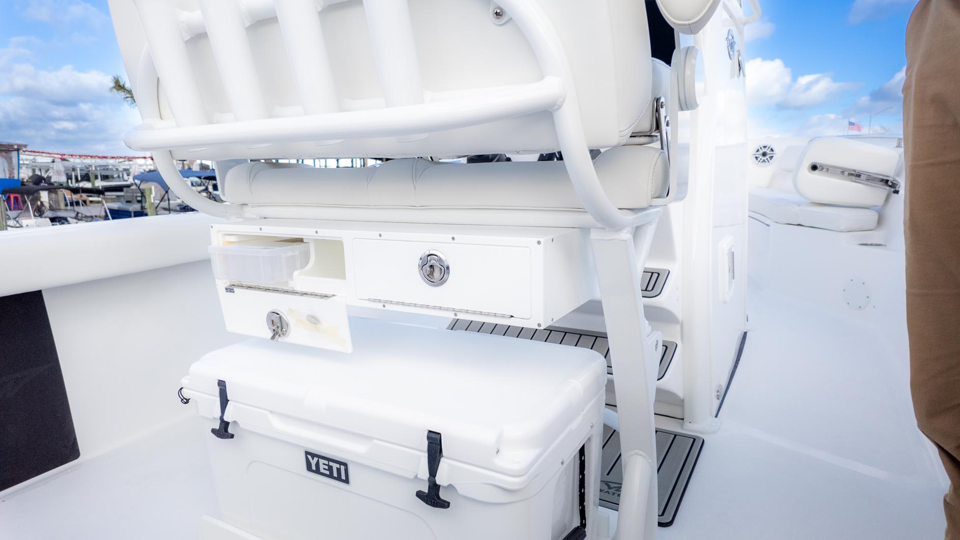 Picture this: you are out with friends, and the 30-gallon insulated livewell is keeping your bait fresh for that prize catch. When it is time to celebrate, the Yeti 65qt cooler, snugly fitted into a dedicated slide, is ready with refreshing drinks. The Fusion RA-770 sound system, complete with six JL speakers and an amplifier, will be pumping out your favorite tunes, making every moment a party on the water.