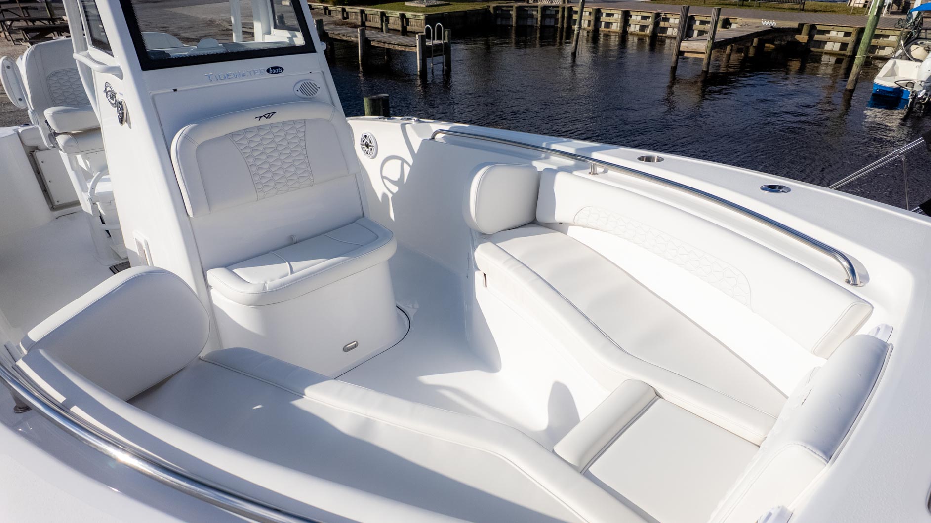 This boat is built for serious enjoyment, featuring a SeaKeeper Ride system to ensure a smooth, stable ride even when things get a little choppy. For those who love to explore, the windlass with 200 feet of rode makes anchoring in your favorite hidden cove a breeze. As the sun sets, Lumitec Sea Blaze underwater lights add a cool, colorful glow for evening adventures. Whether you are chasing the big one or cruising with loved ones, this Tidewater is engineered for unforgettable moments.