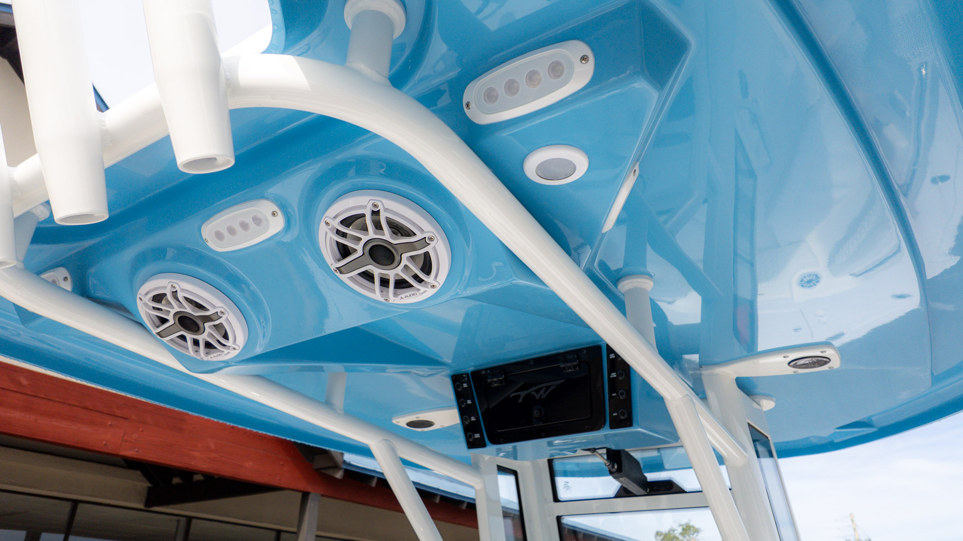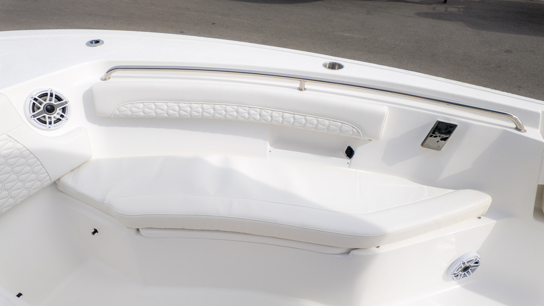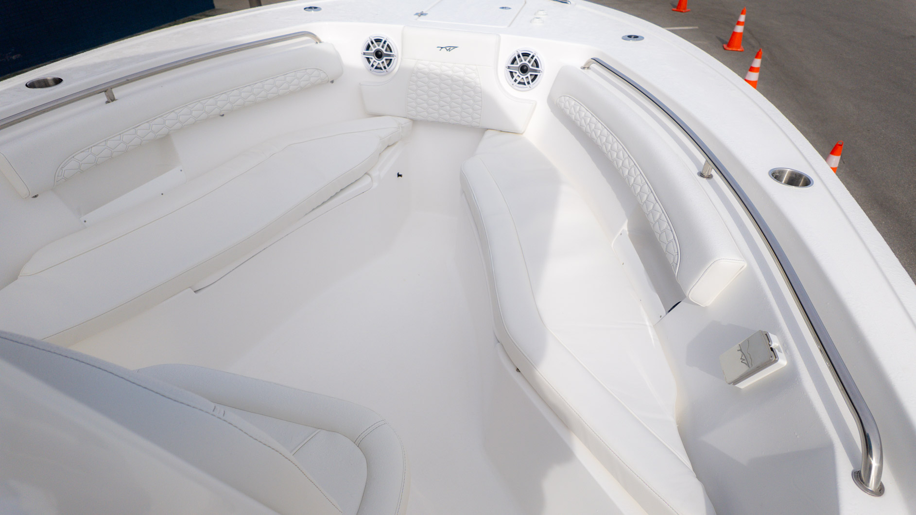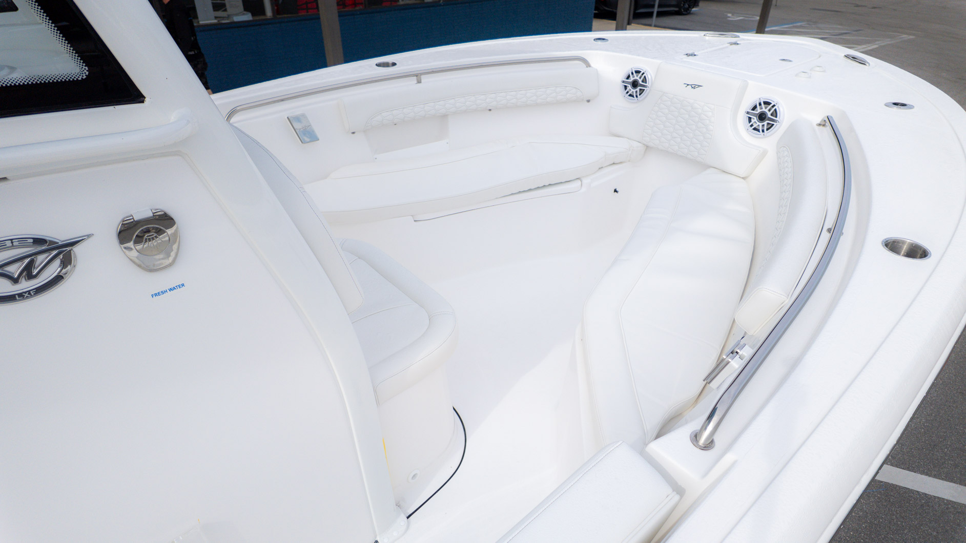 The LXF is a luxury hybrid, making it the perfect vessel for day cruising, sandbar hopping, and finding those secluded coves. The bow is a total party zone, featuring plush, wrap-around seating and hinged backrests that transform into a sun-lounge paradise. Crank up the tunes on the premium JL Audio system and keep the fun going. After a refreshing dip, the convenient fresh water shower and swim ladder are a treat. As the sun sets, the Lumitec Sea Blaze underwater lights add a fantastic glow to the water, perfect for extending the fun well past cocktail hour. With a wide 8' 10" beam and generous space, you can comfortably load up your ten favorite people for an unforgettable day on the water.