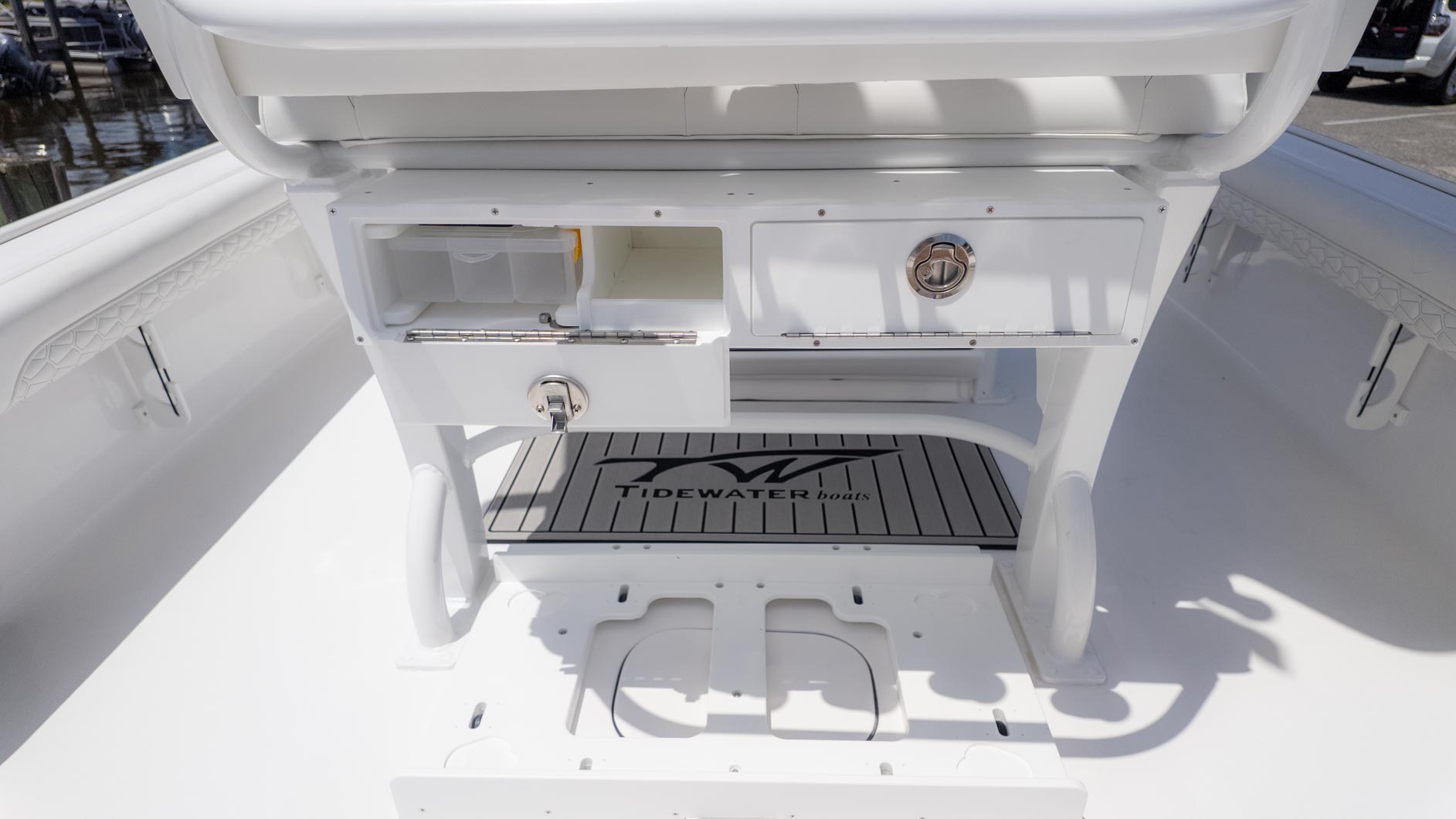 This boat truly shines when it comes to entertaining and enjoying the aquatic lifestyle. The comfortable seating throughout, including bow seat cushions and a stern flip-up bench, ensures everyone has a prime spot. And with thoughtful features like motion-activated interior and storage lighting, your evenings on the water will be just as enjoyable as your days. Whether you're an avid angler who enjoys a social outing or simply someone who loves to gather friends and family for sun-drenched adventures, the 2500 CB Tidewater with its Yamaha motor is your perfect match.