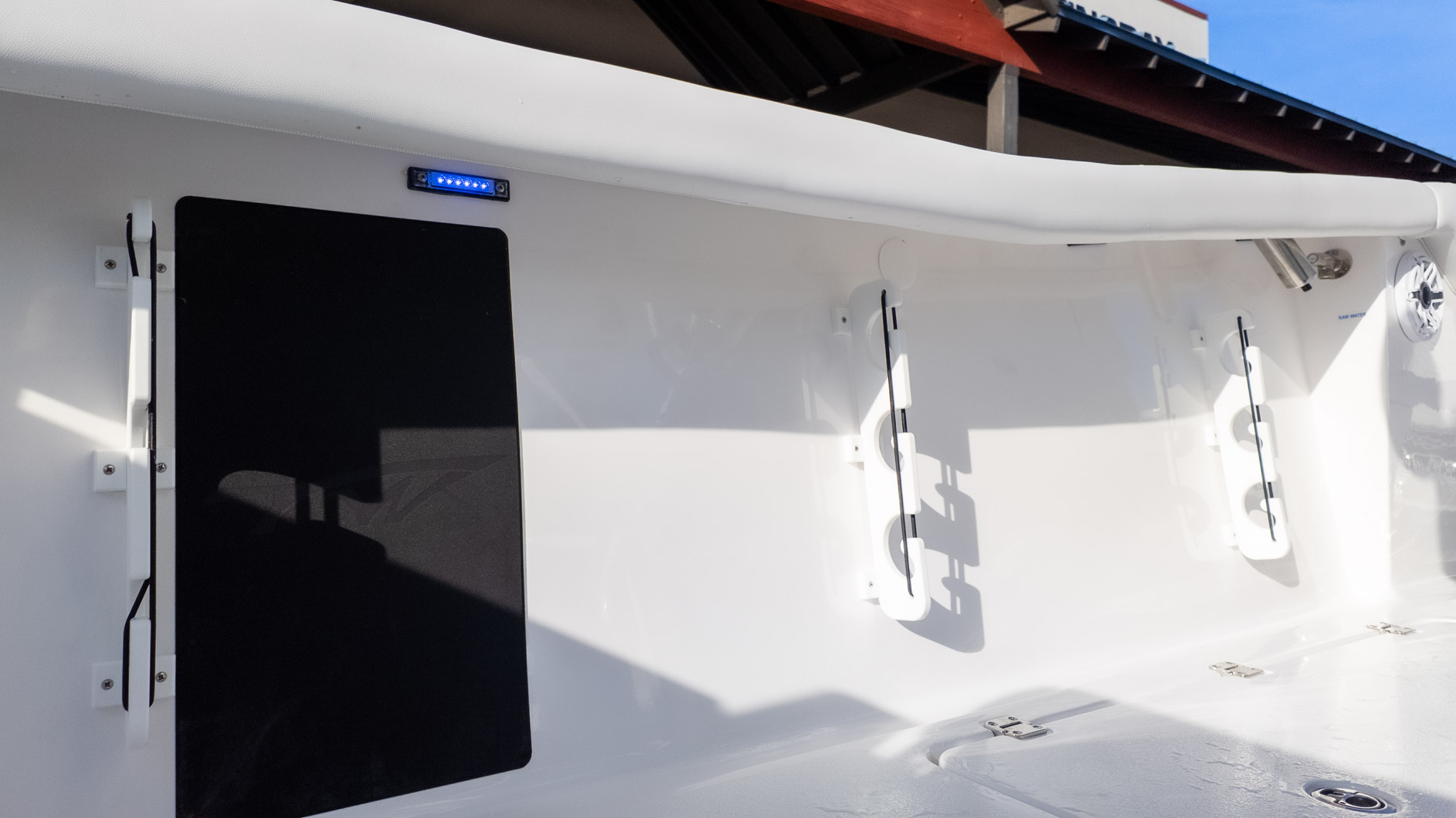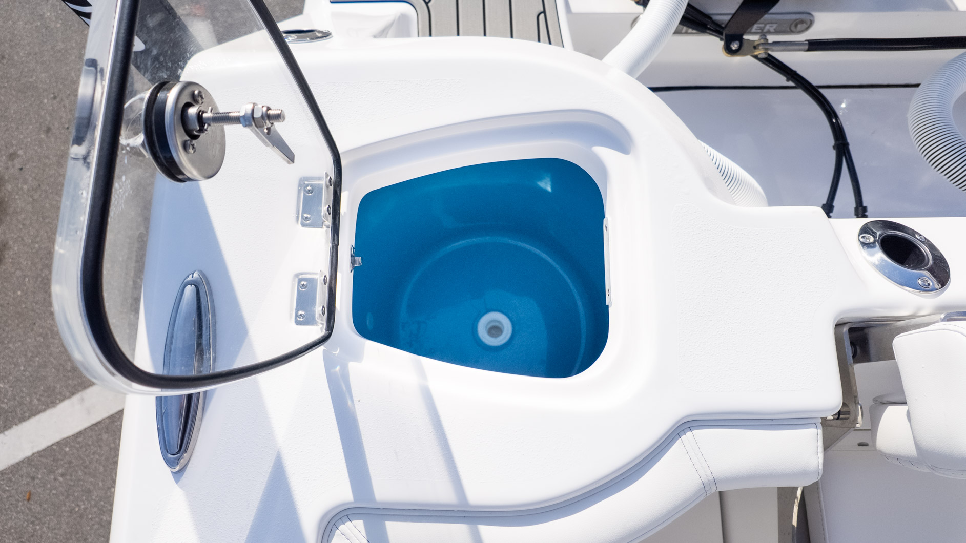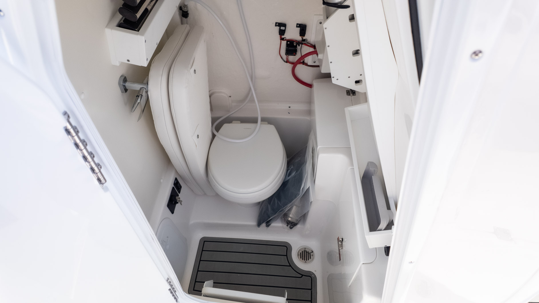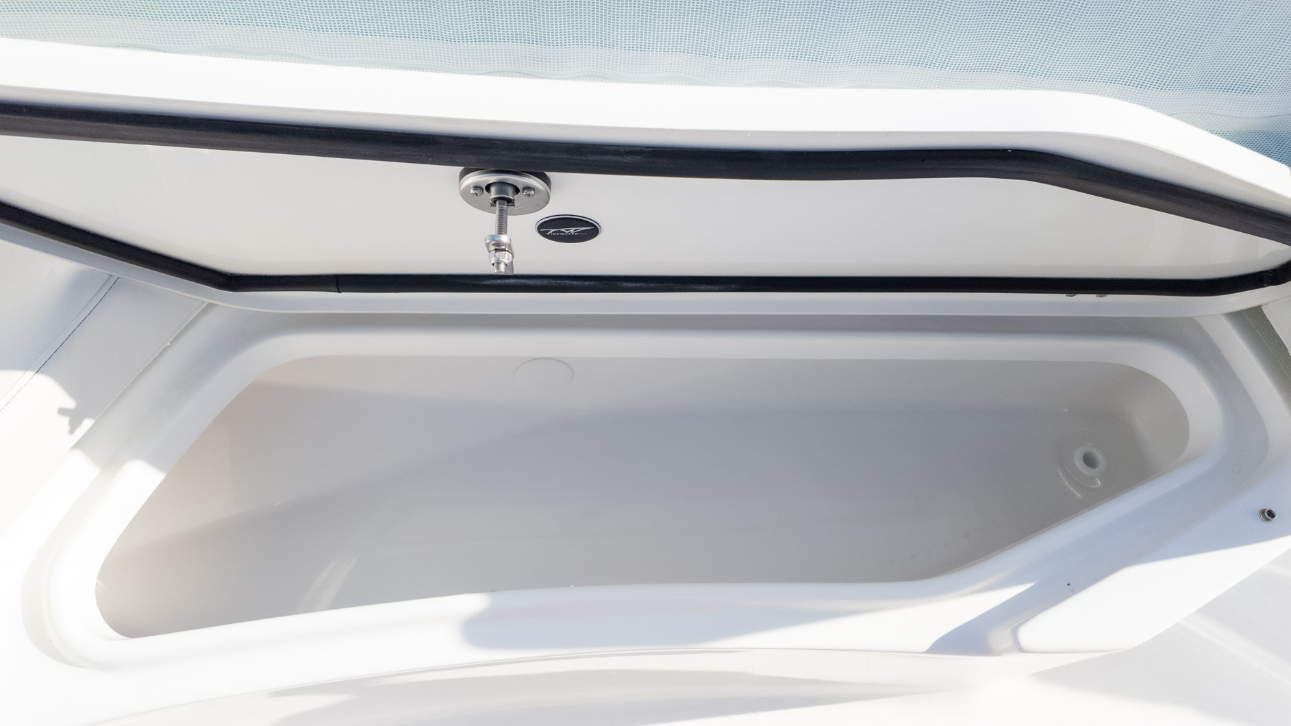 For the anglers, the twin 30-gallon macerated floor fish boxes and 28-gallon livewell mean business, while the extra bow rod holders ensure you’re always ready for the strike. When the rods are stowed, the vibe shifts instantly to entertainment. The premium JL Audio system, complete with subwoofers and an amp, sets the soundtrack, while the adjustable bow table with filler creates the ultimate alfresco dining spot. Use the dive door for easy dips in the turquoise water, then rinse off with the fresh water shower before settling into the fold-down transom seat. Powered by reliable Twin Yamaha engines and smoothed out by the SeaKeeper Ride system, this center console turns every outing into a masterclass in fun.